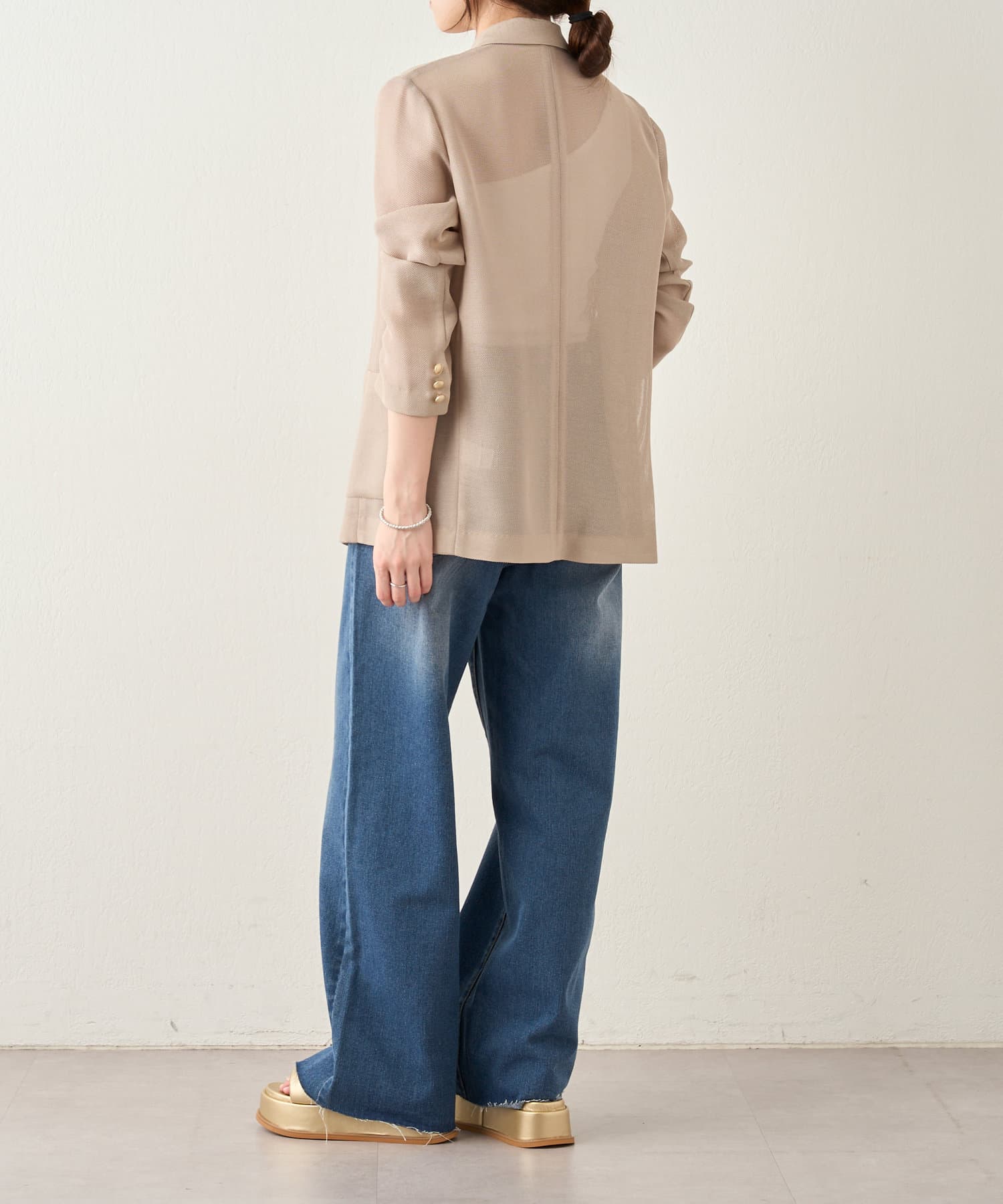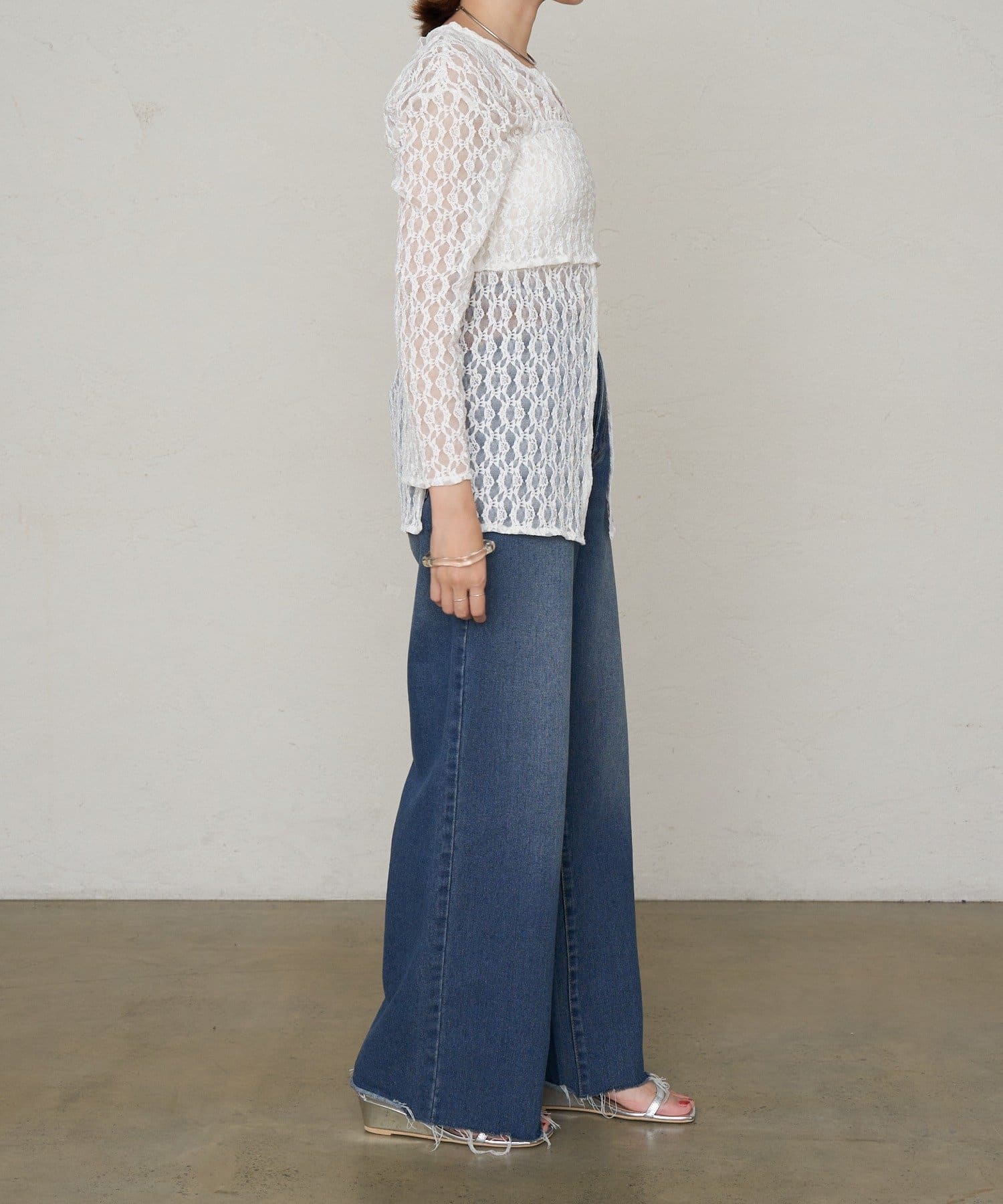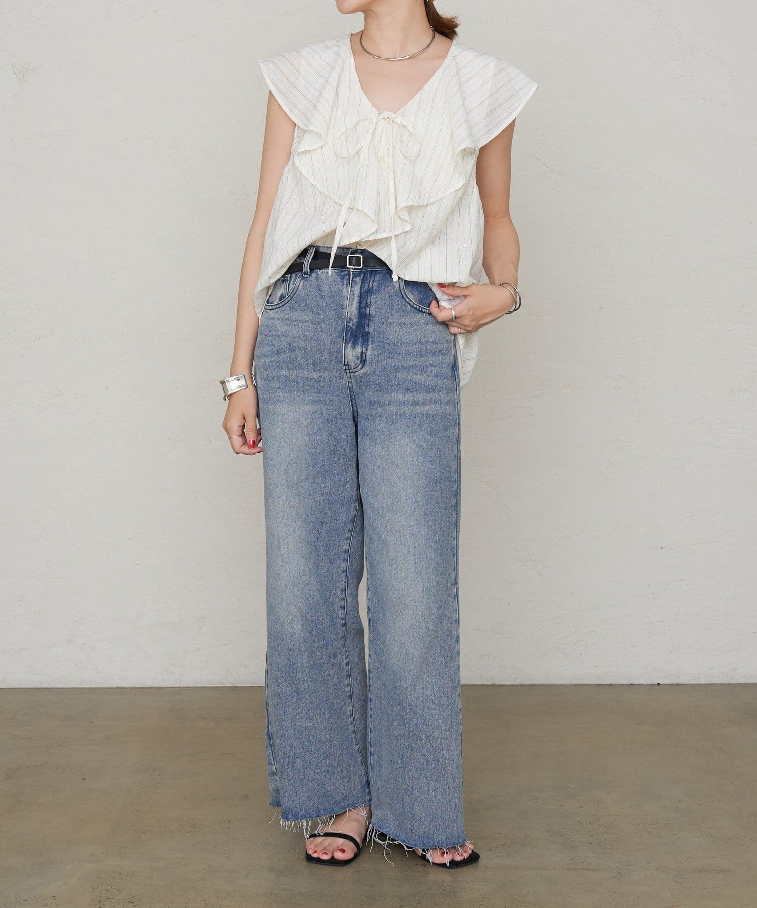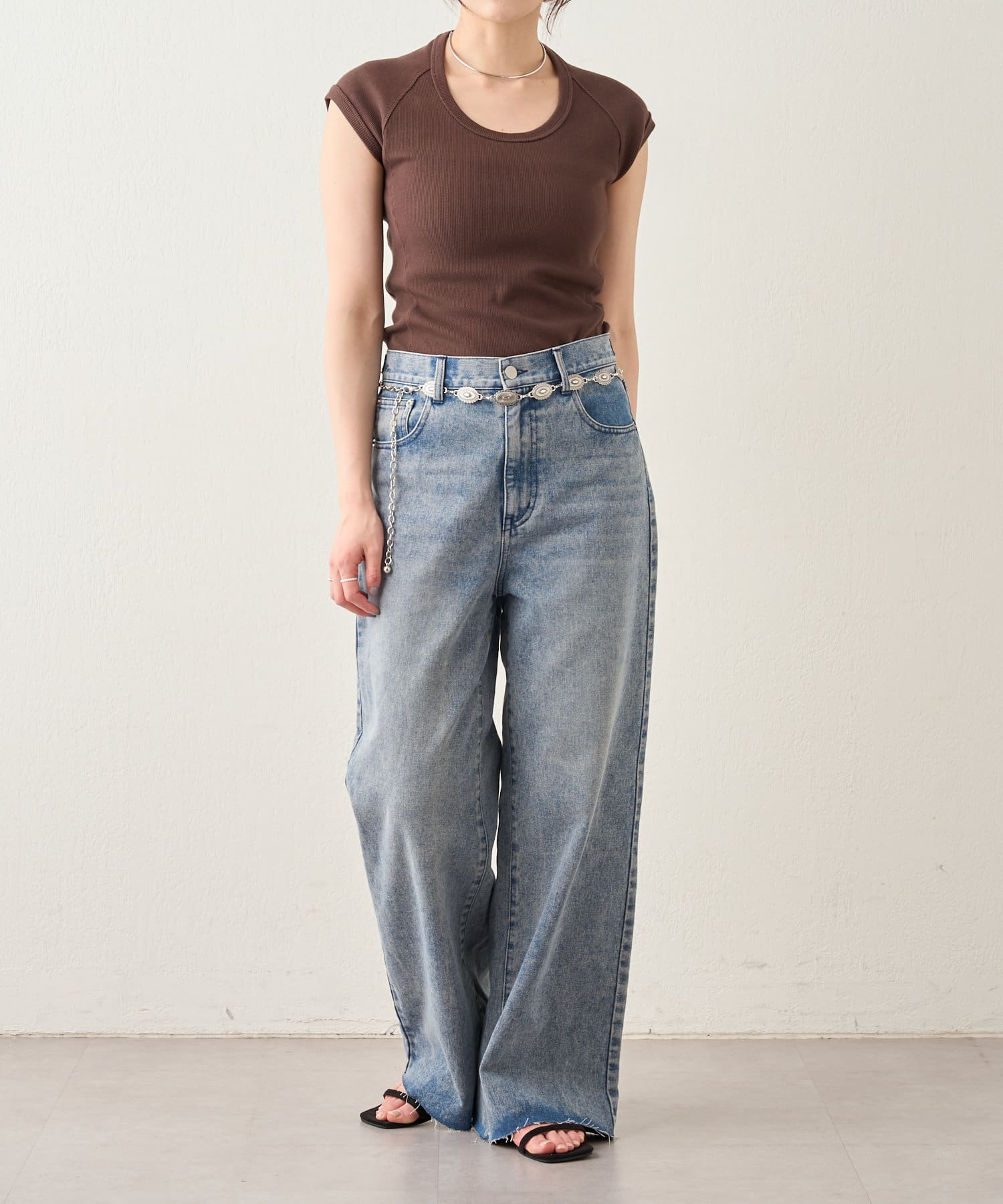 薄手になっていくこれからの季節に、ワイドシルエットのデニムを合わせることで