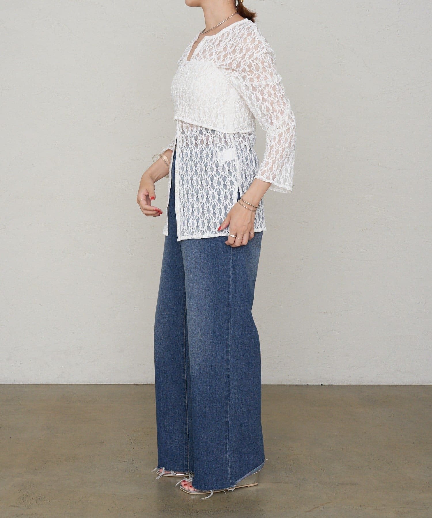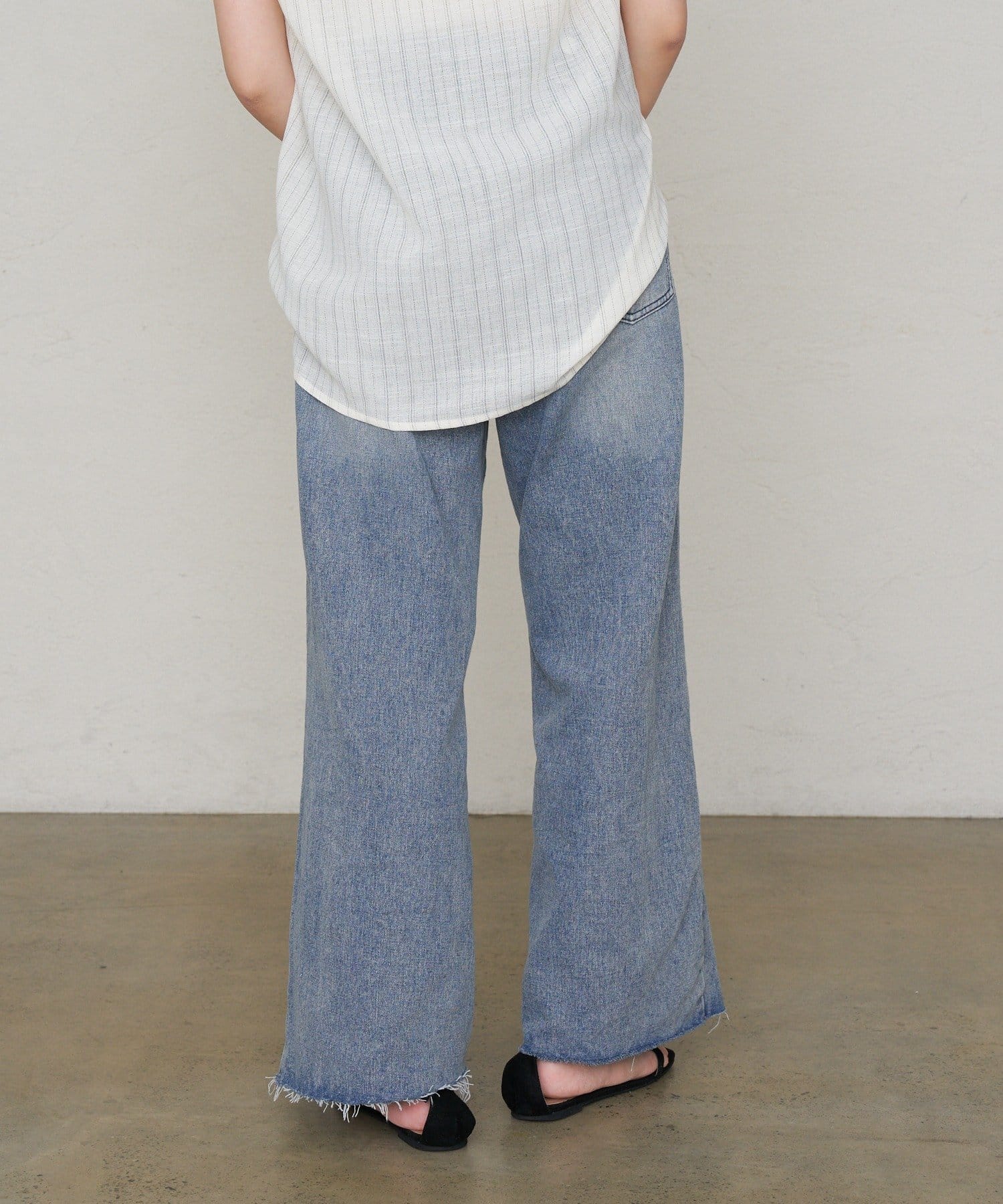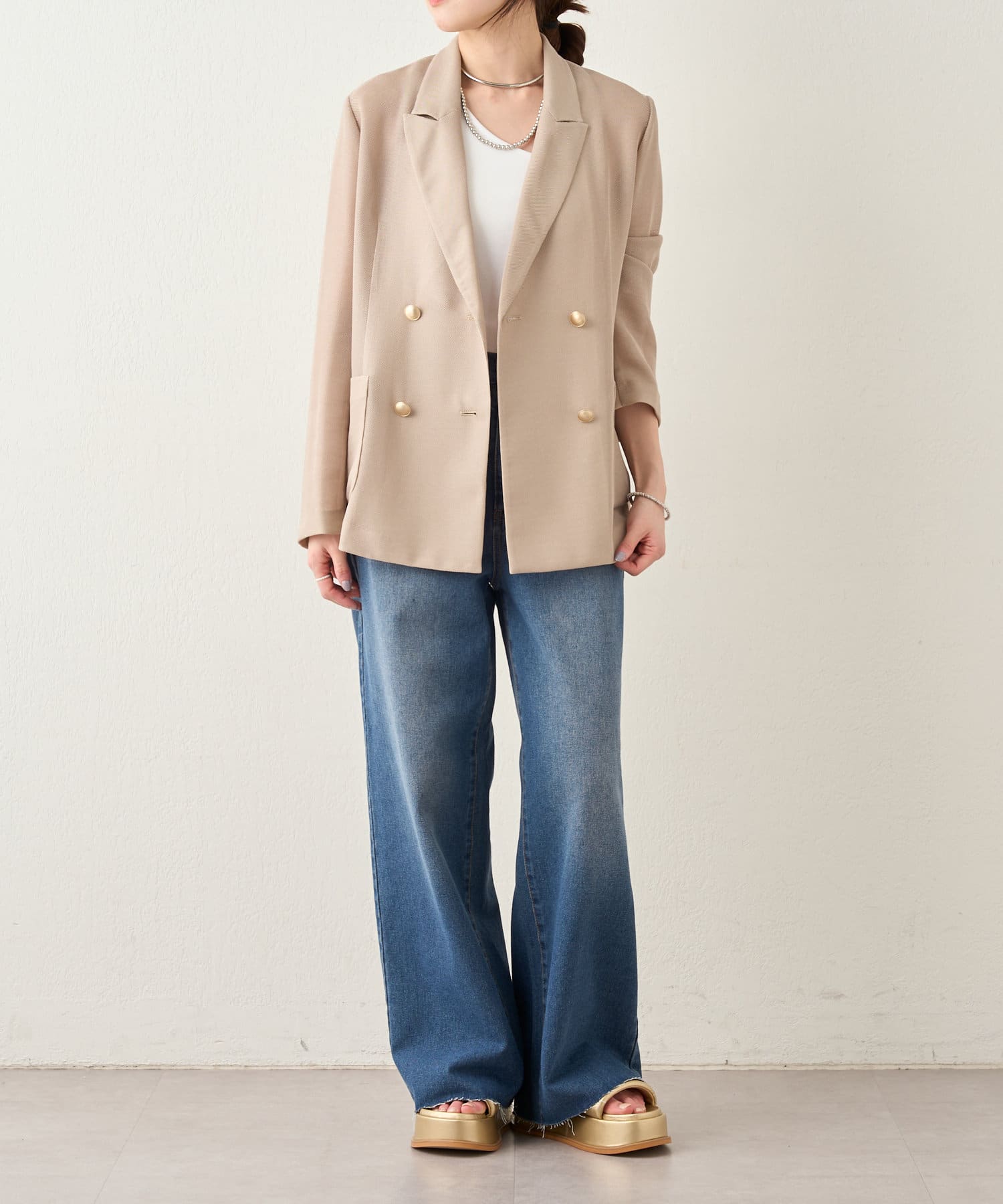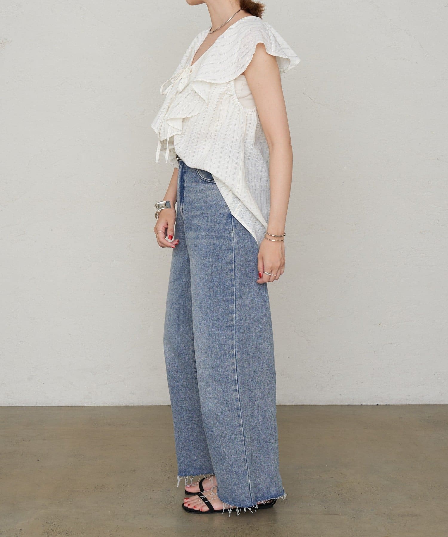 薄手になっていくこれからの季節に、ワイドシルエットのデニムを合わせることで