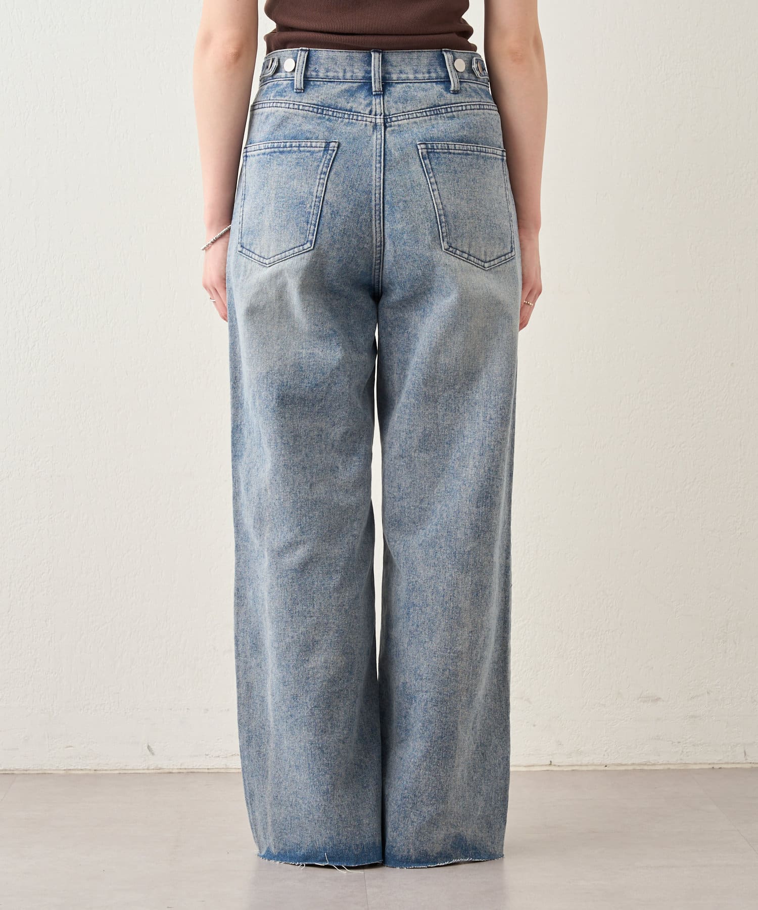 着用や洗濯を繰り返すことで生地の端がほつれたようになっていきますが、デザインの特徴の一つです。ご了承下さい。