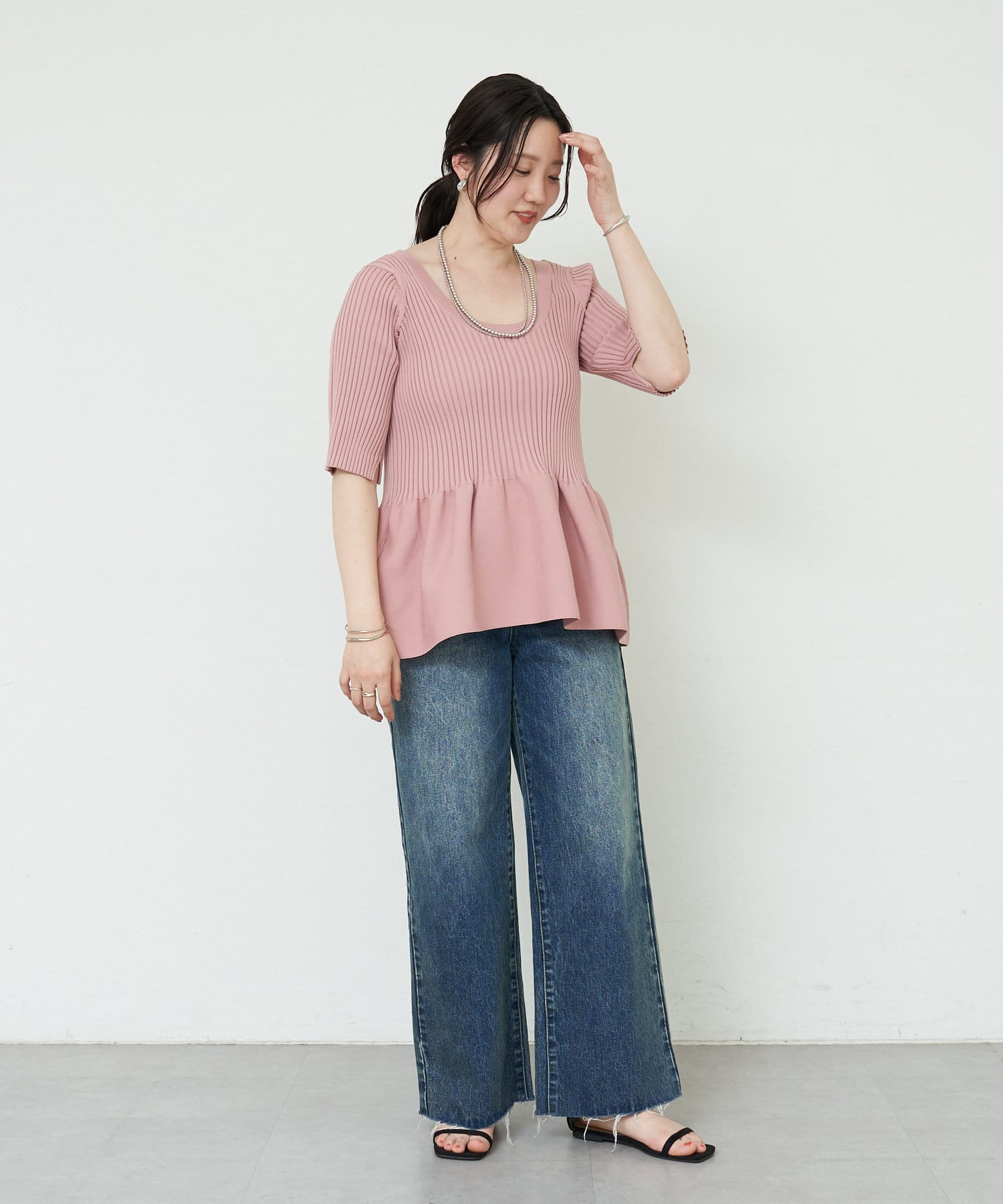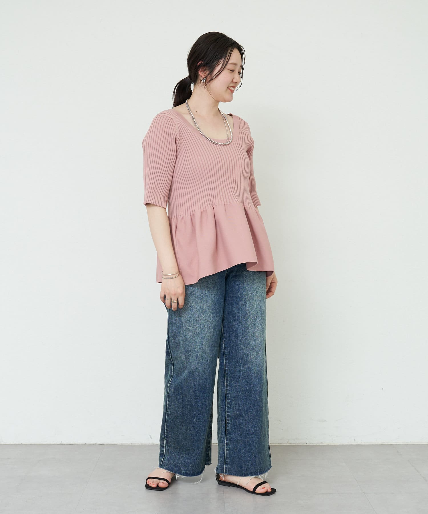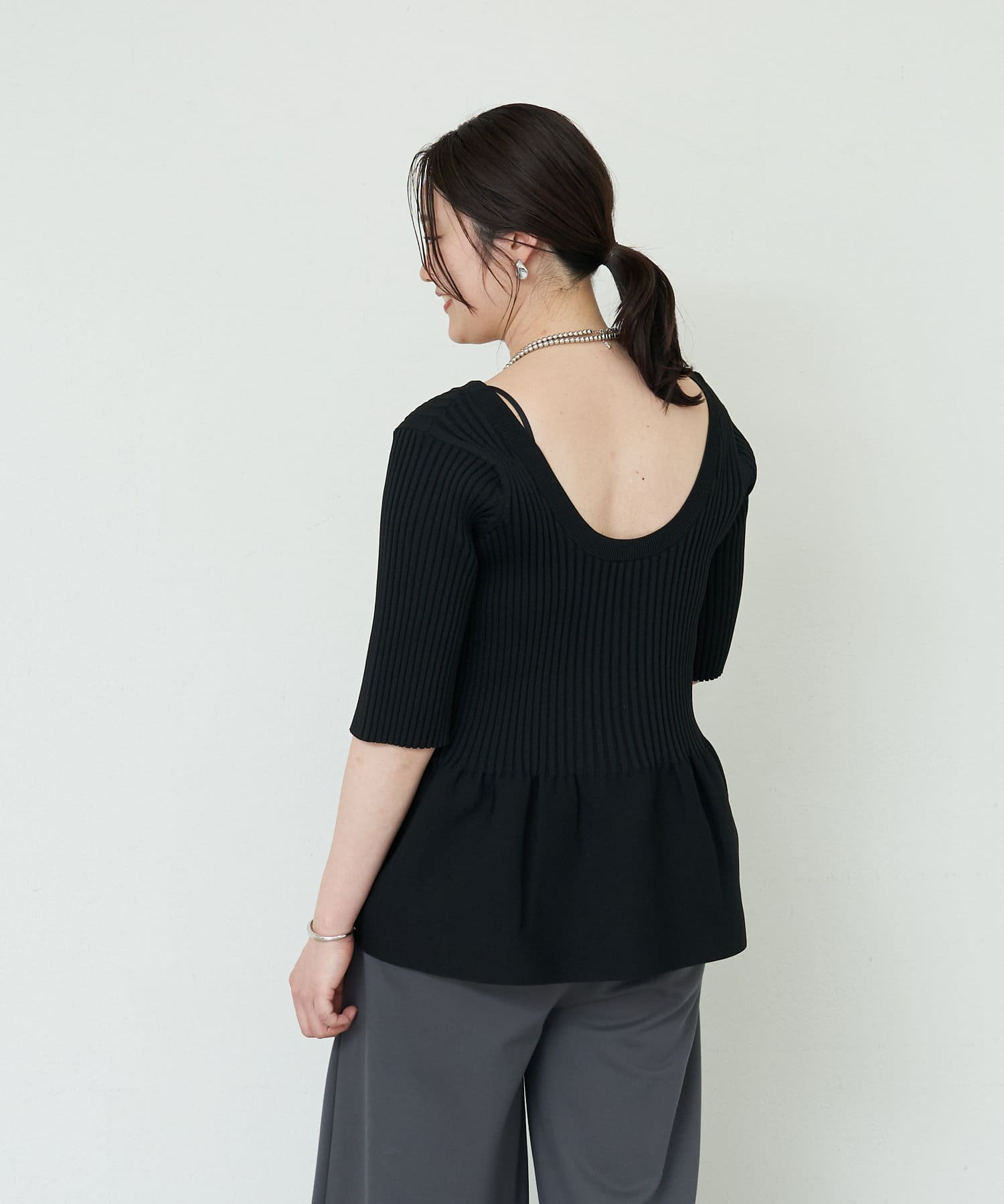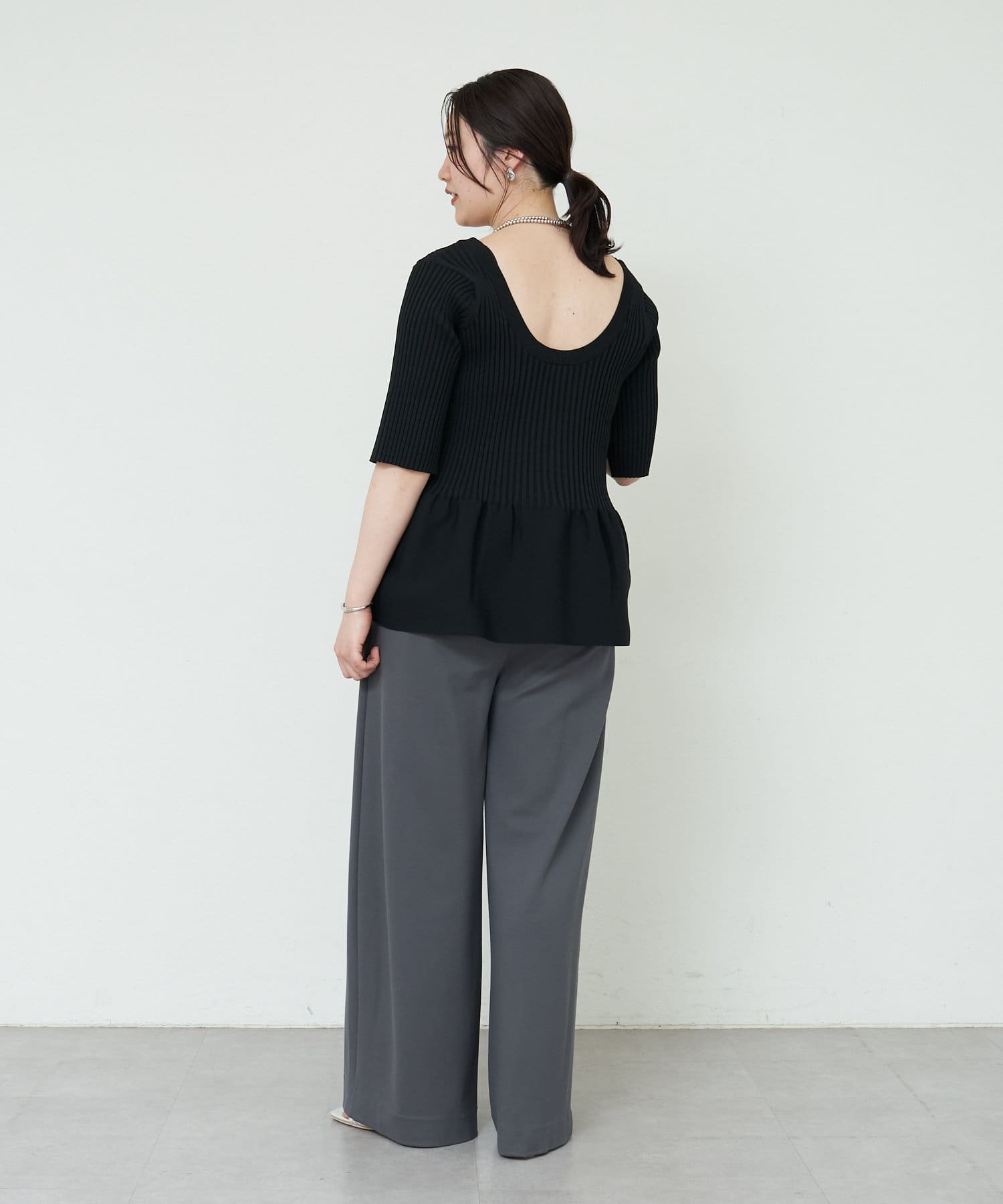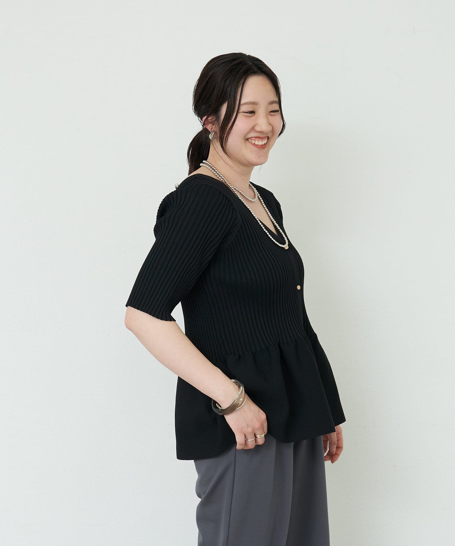 着痩せ効果抜群!簡単に垢抜けられる前後で着れるペプラムニット