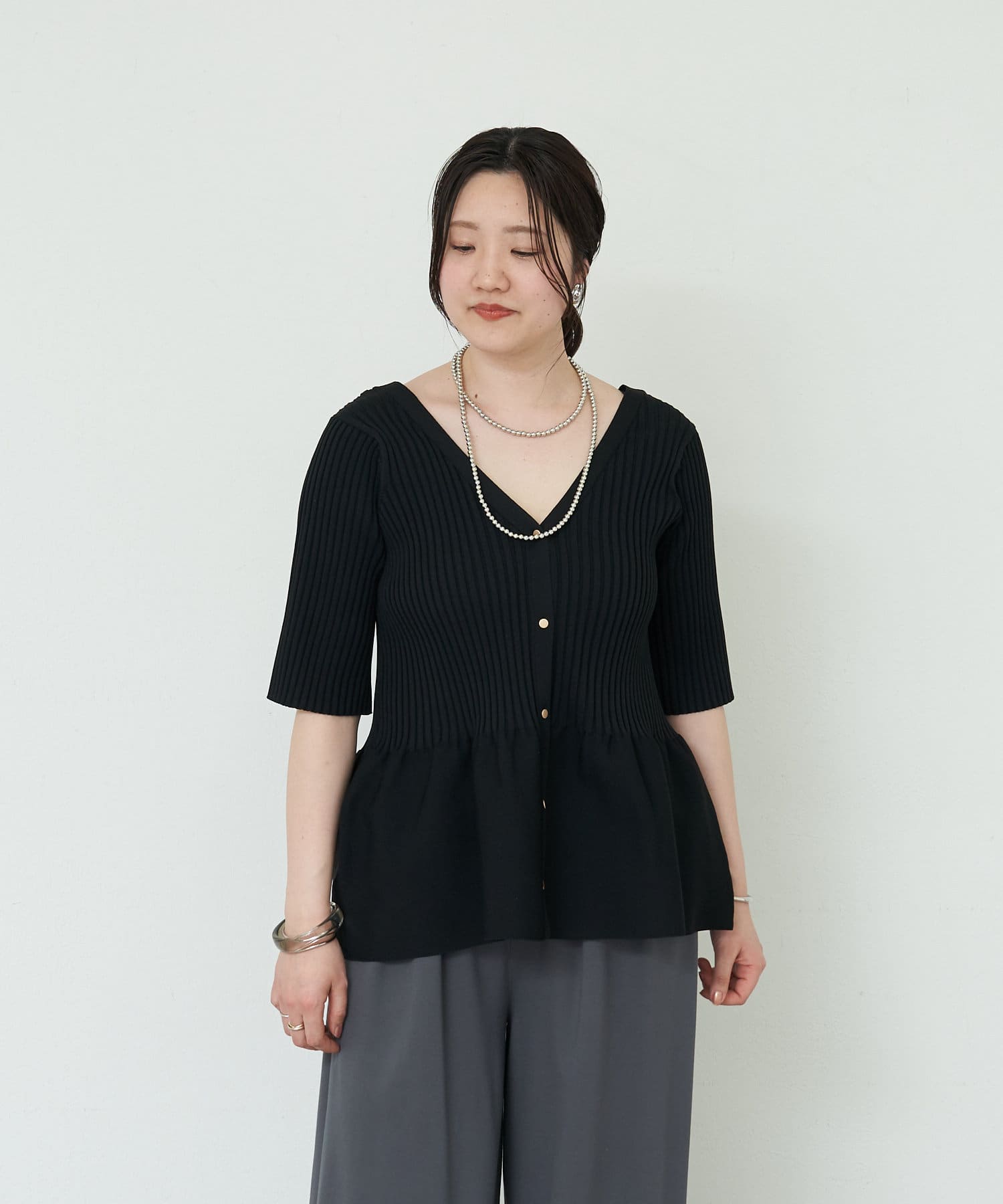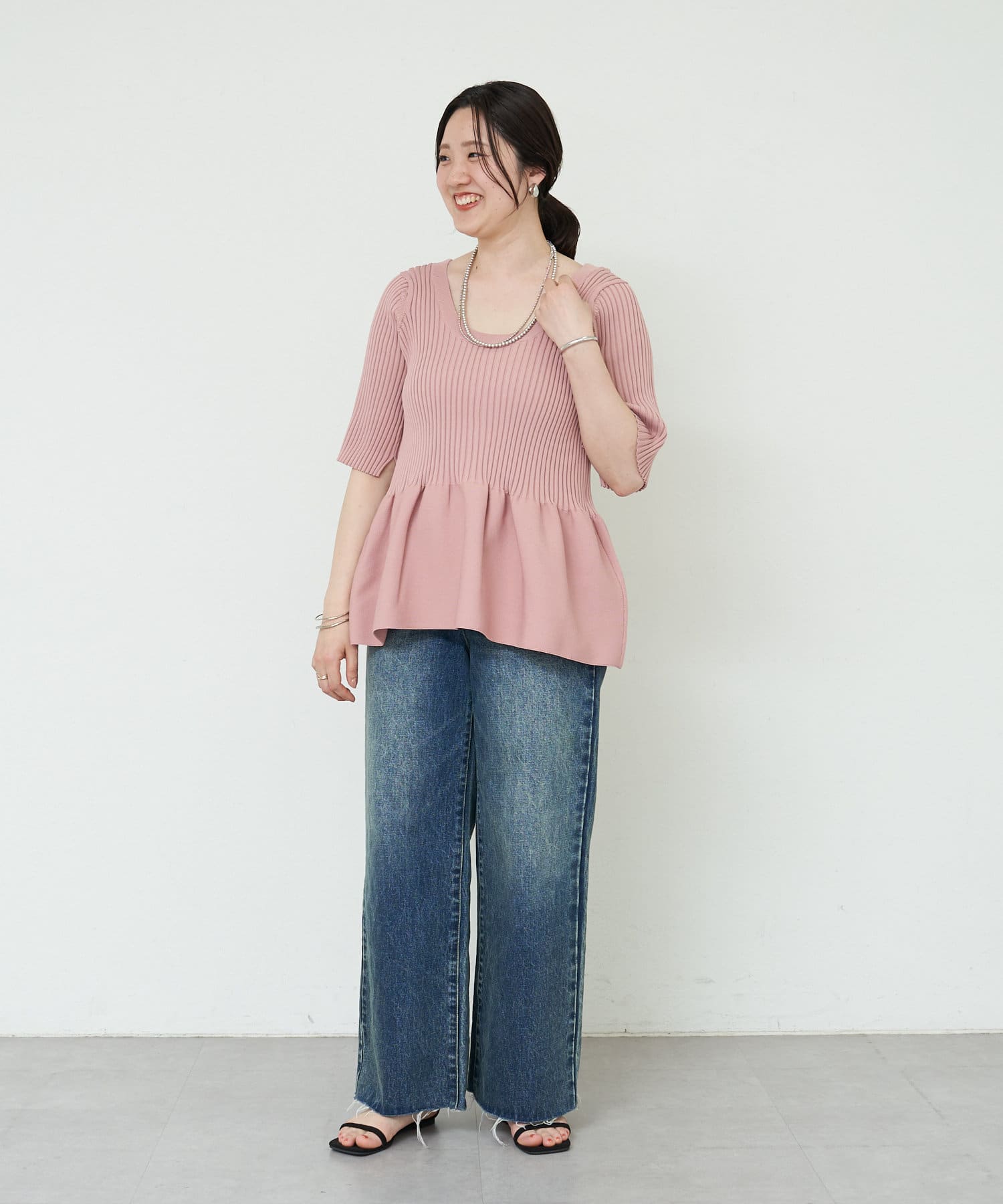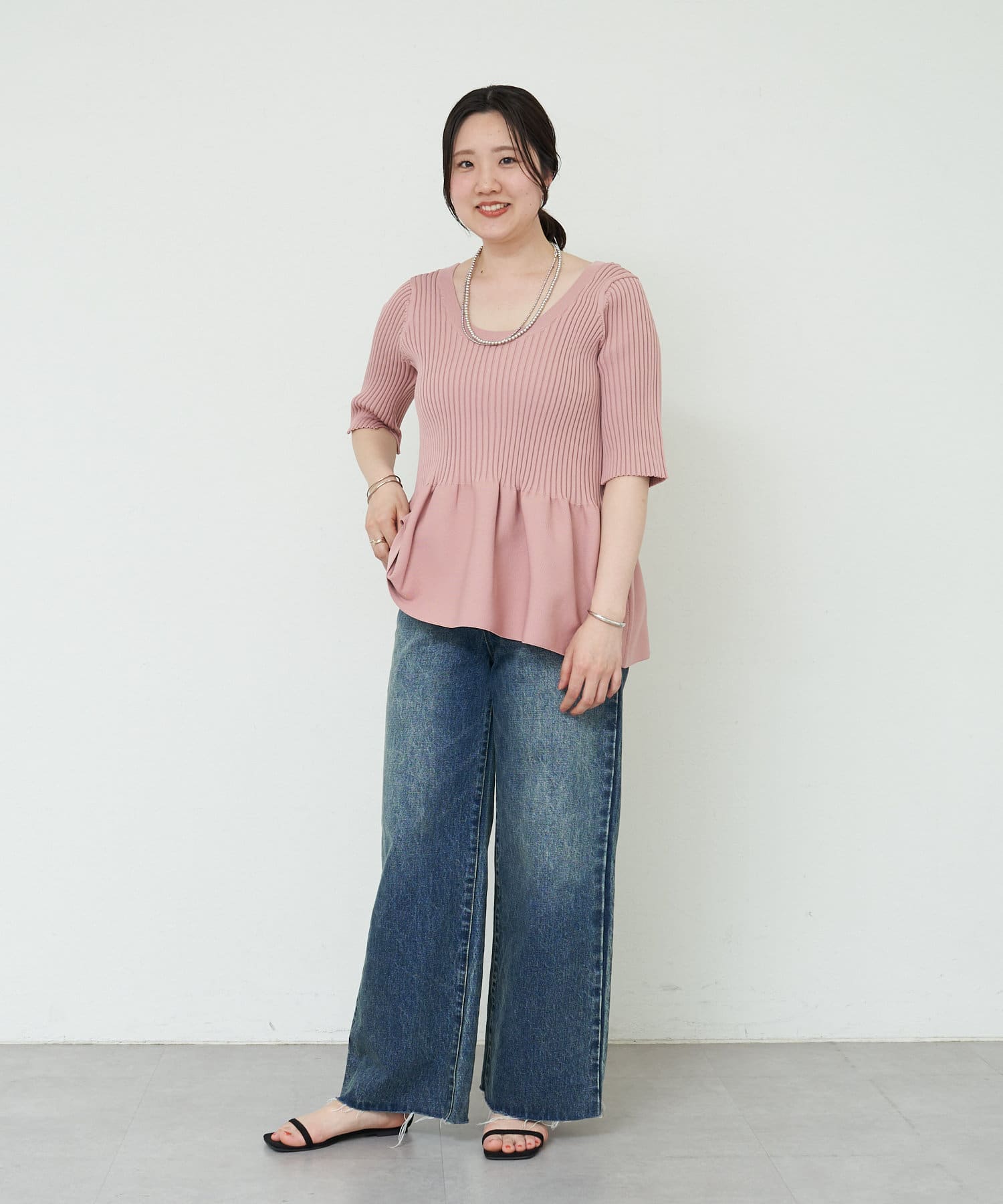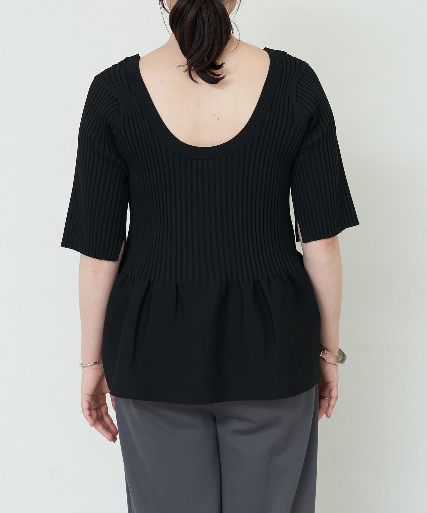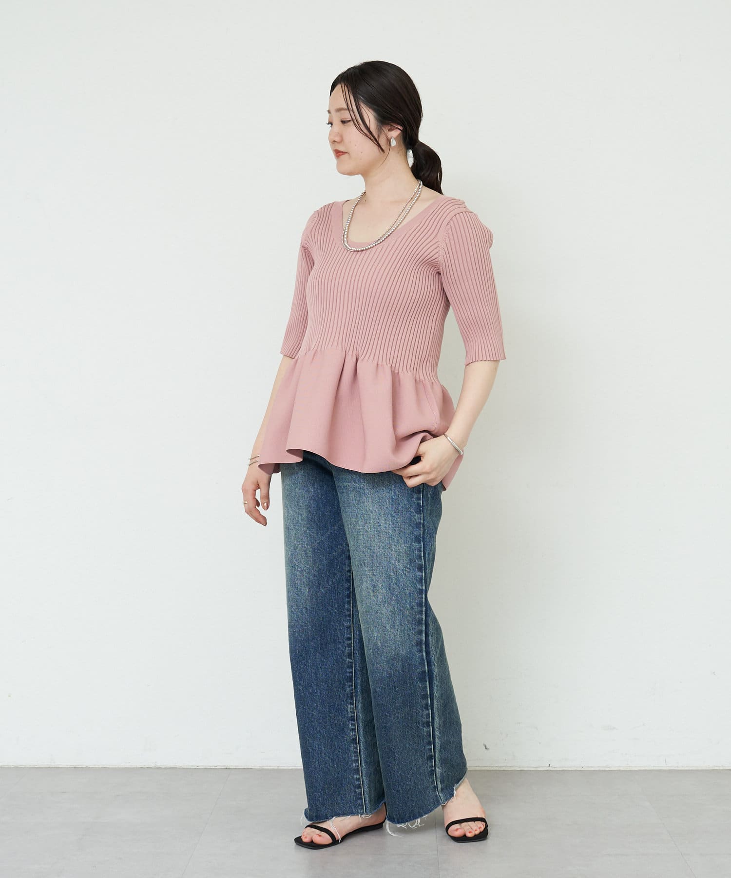 着痩せ効果抜群!簡単に垢抜けられる前後で着れるペプラムニット