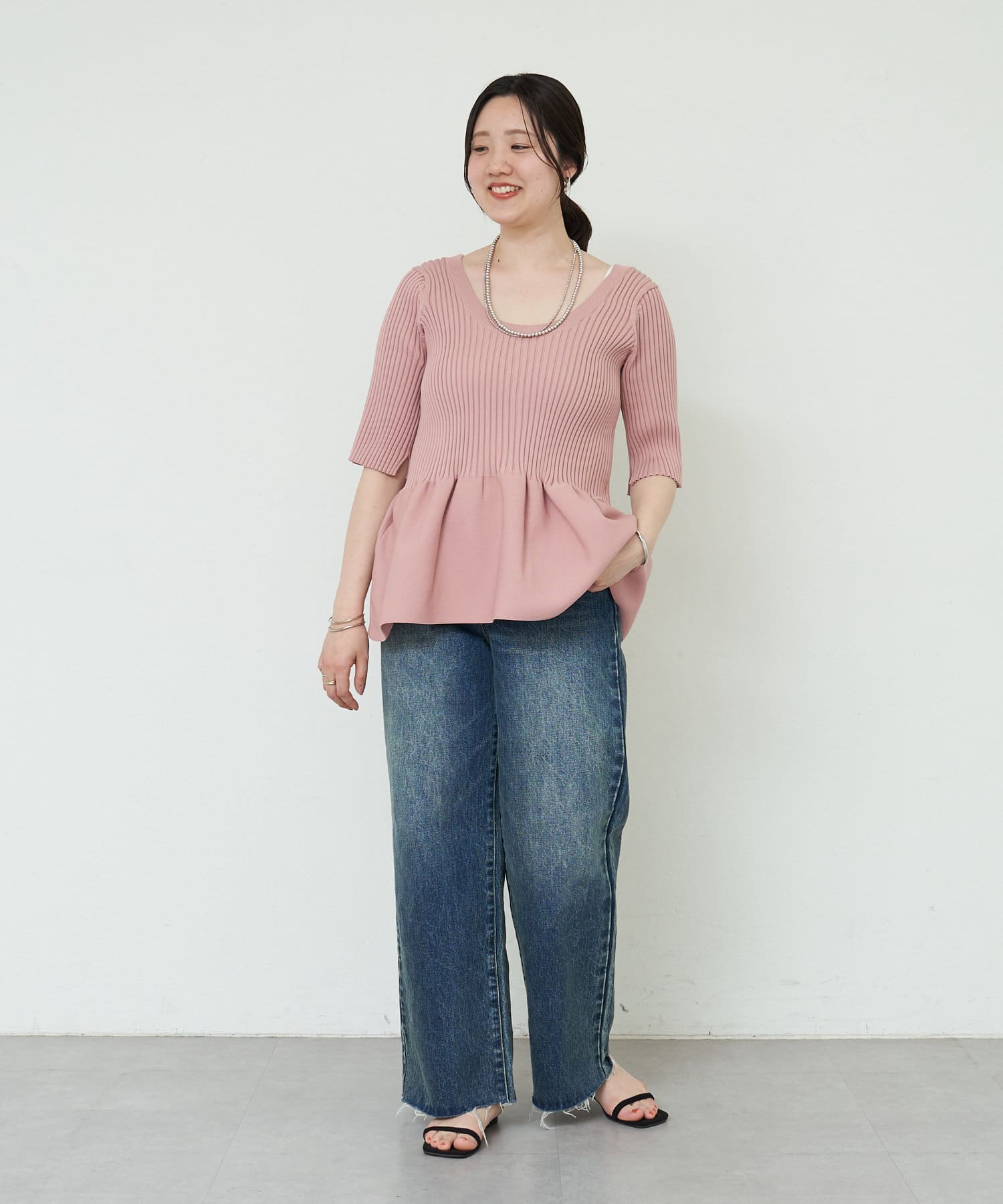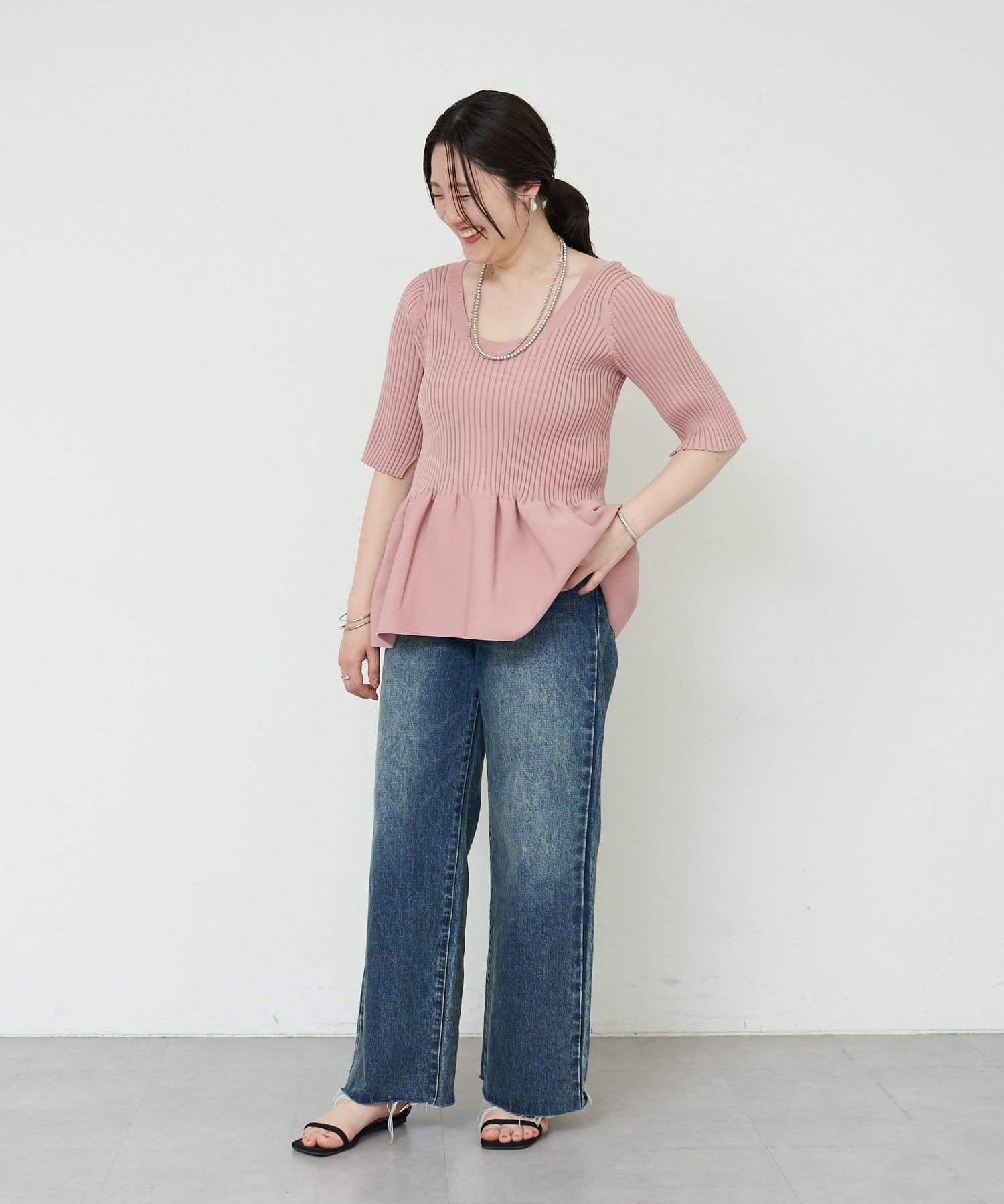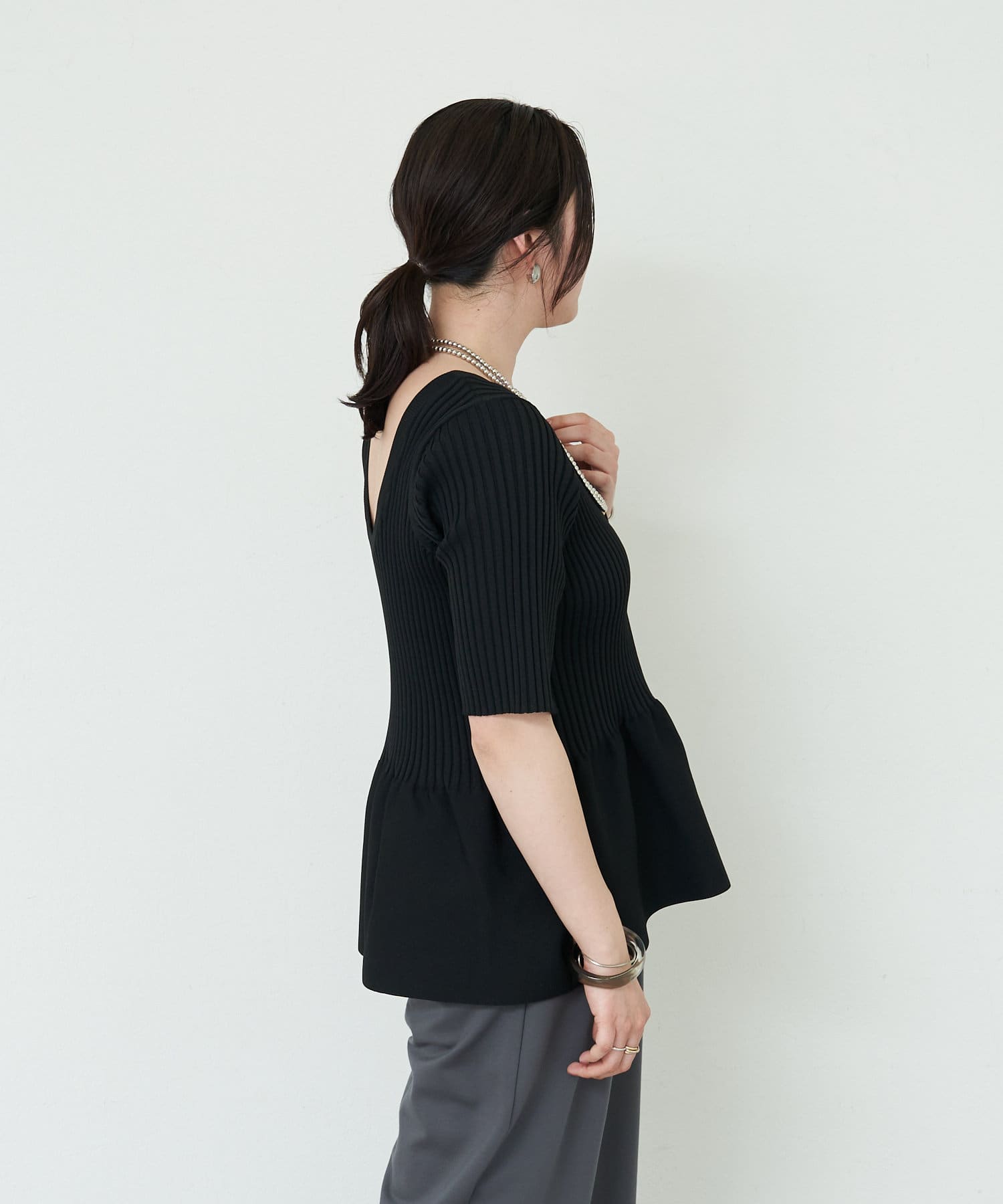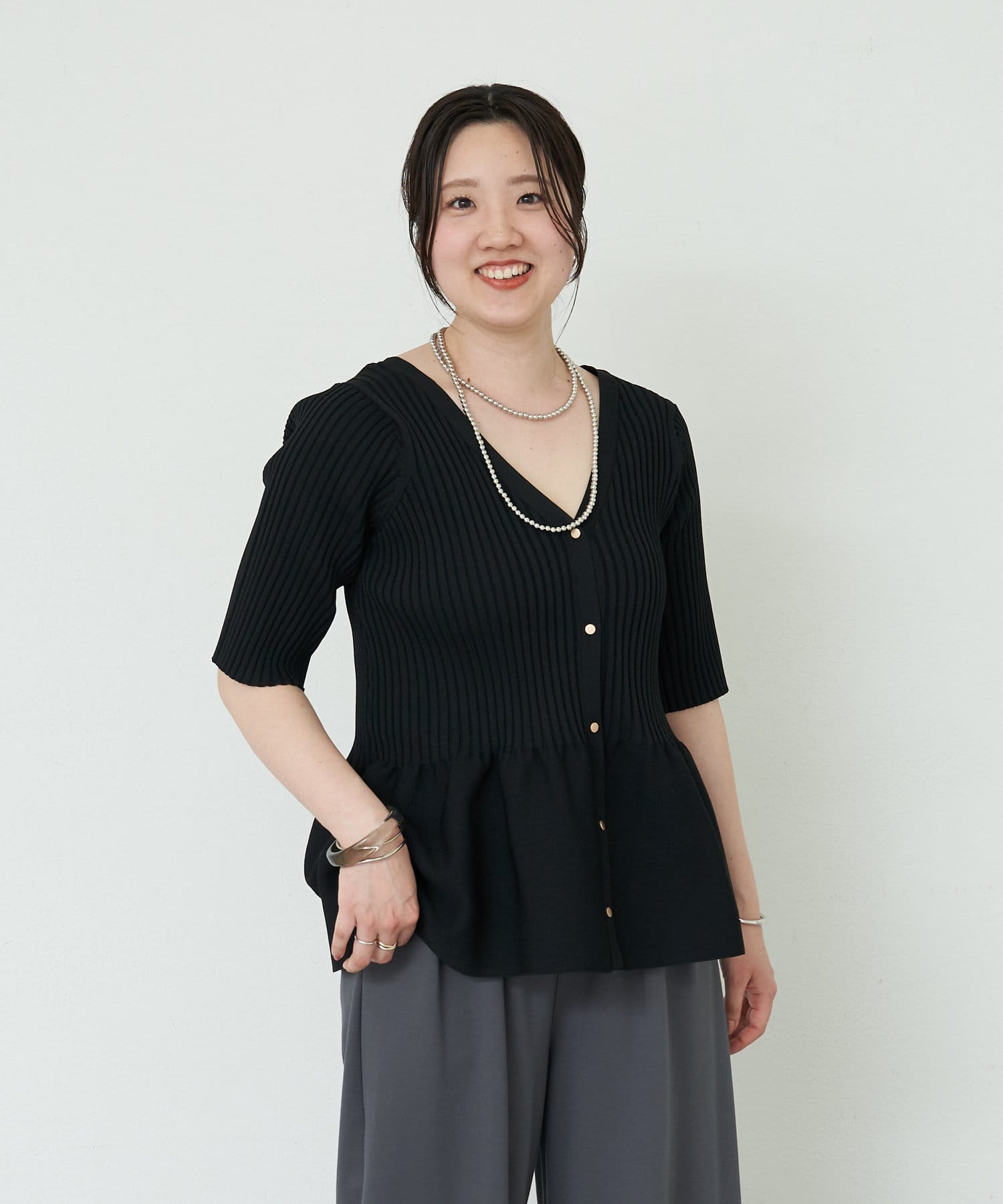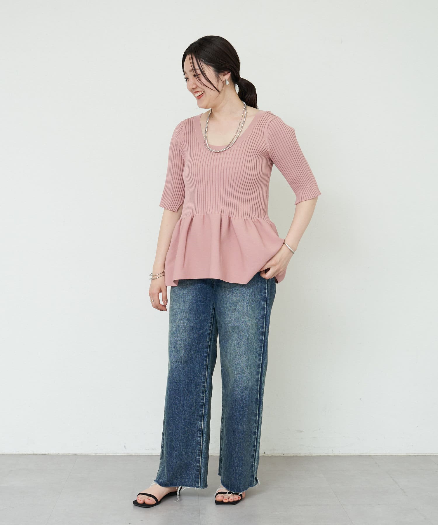 着痩せ効果抜群!簡単に垢抜けられる前後で着れるペプラムニット