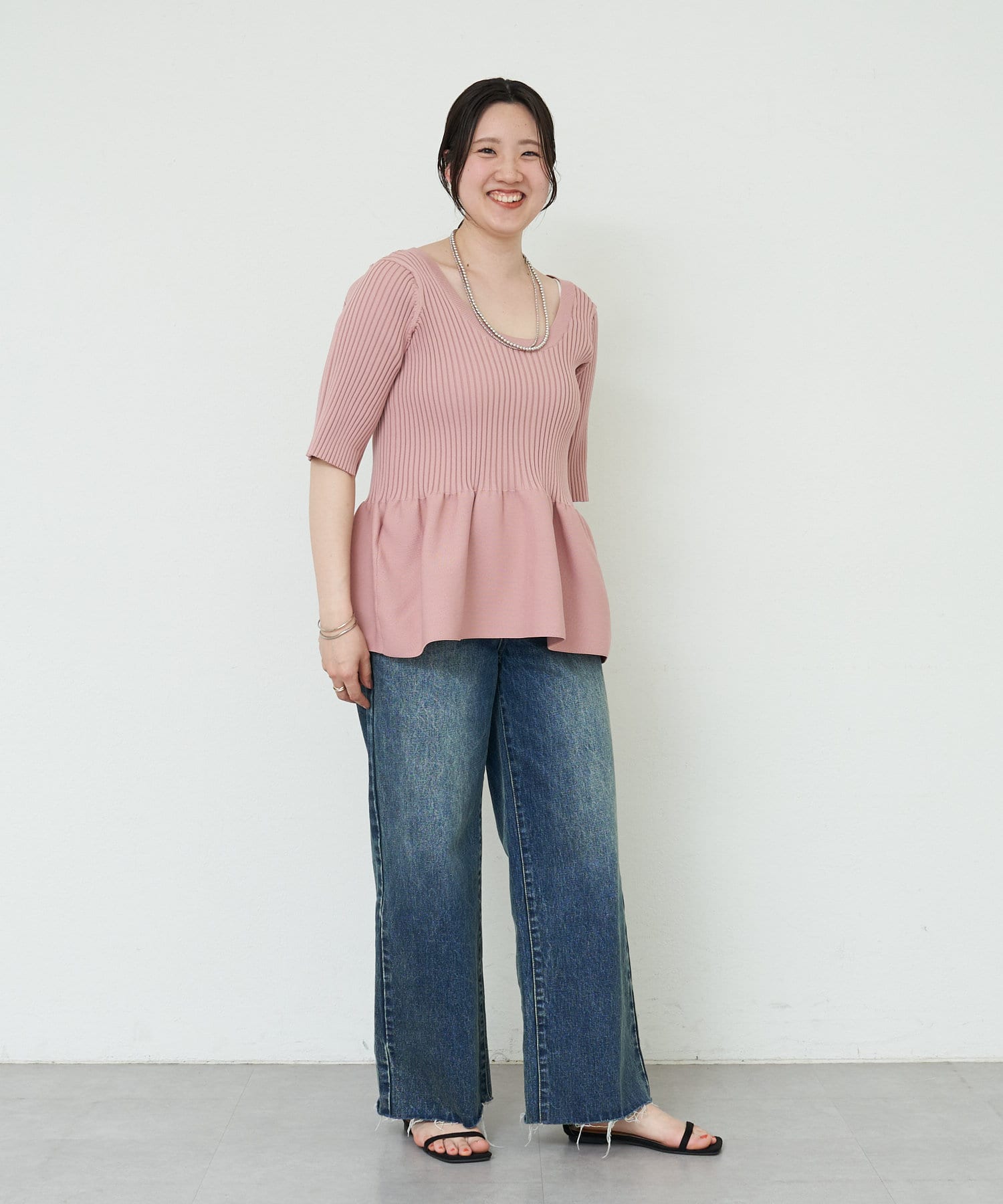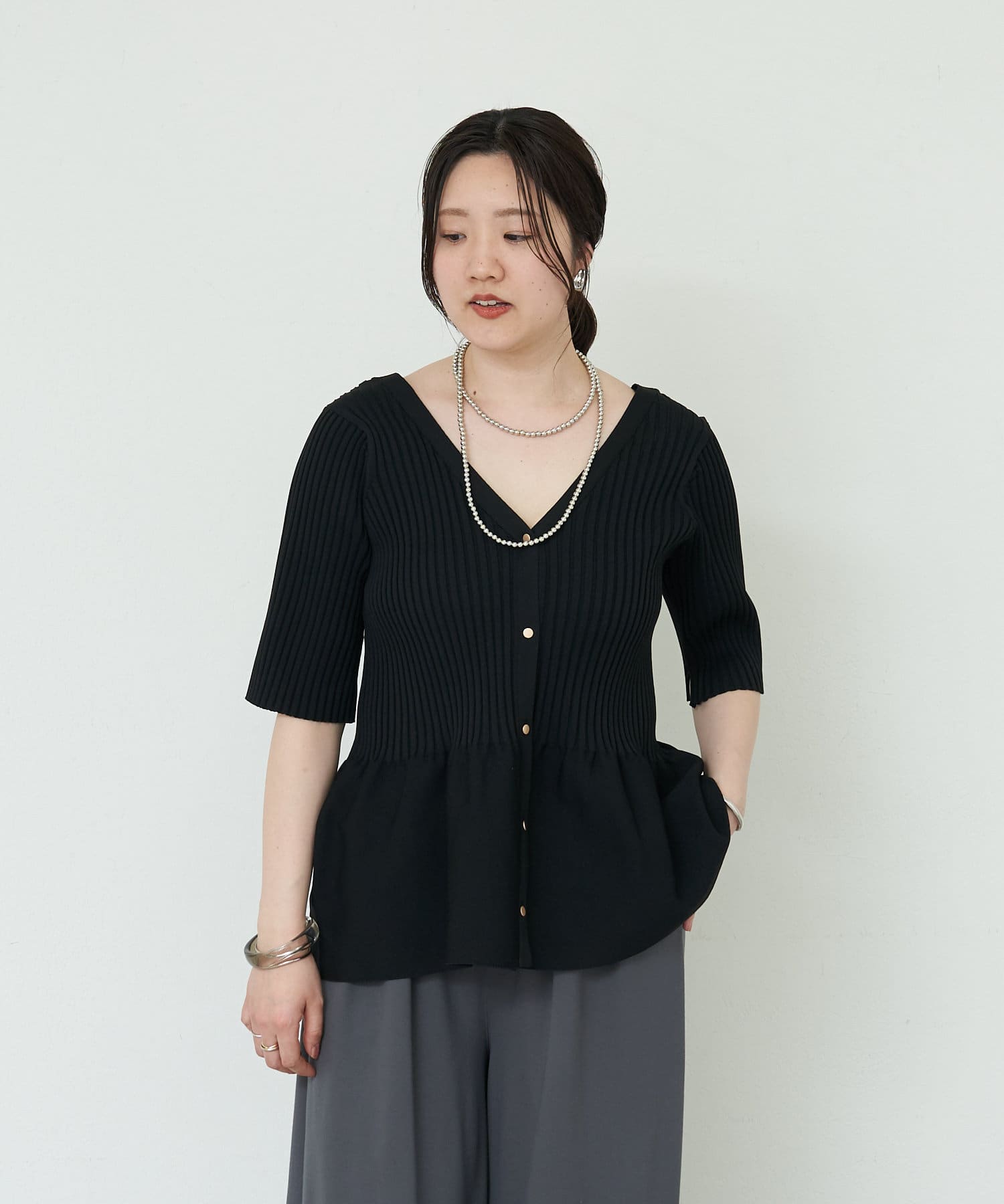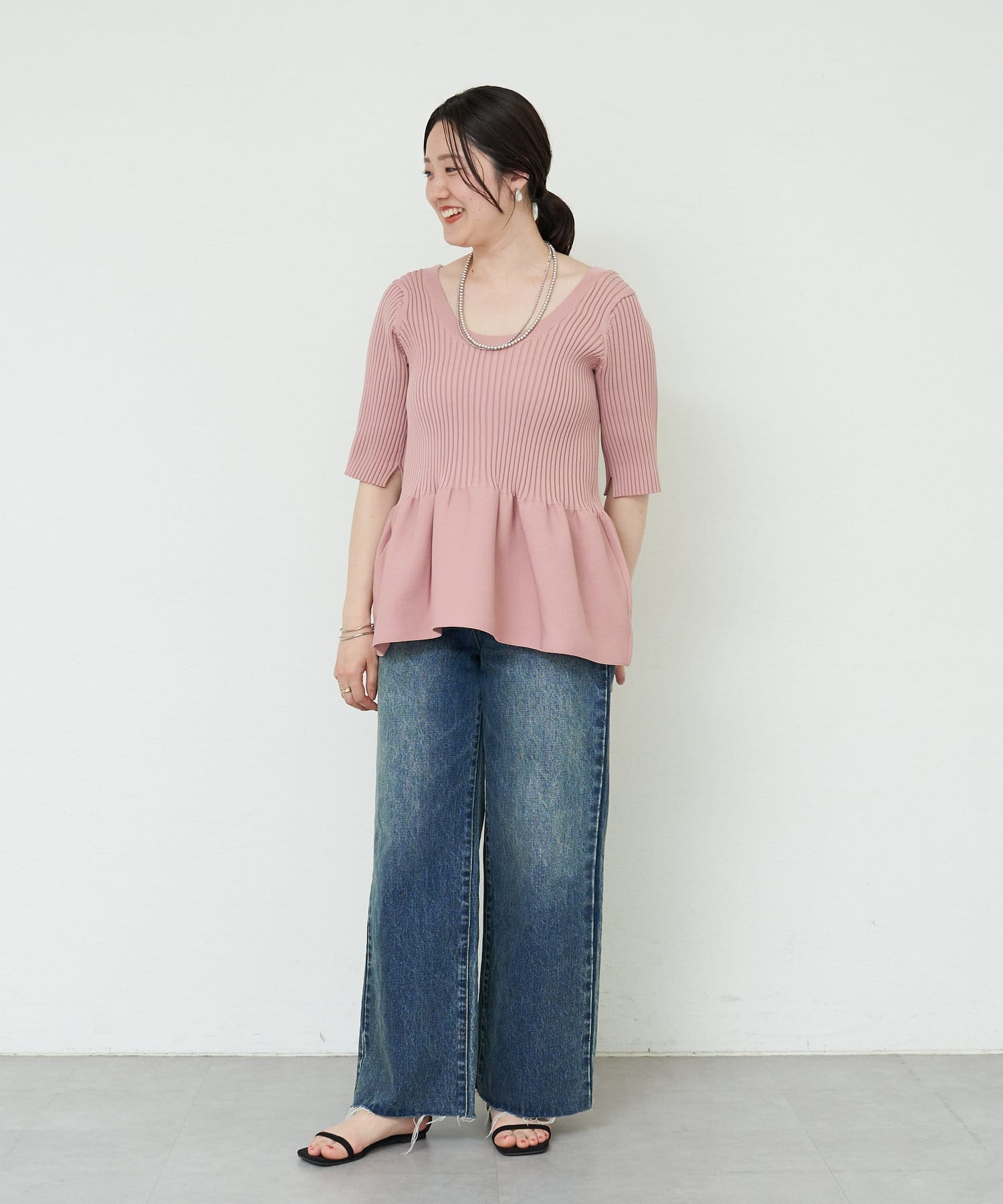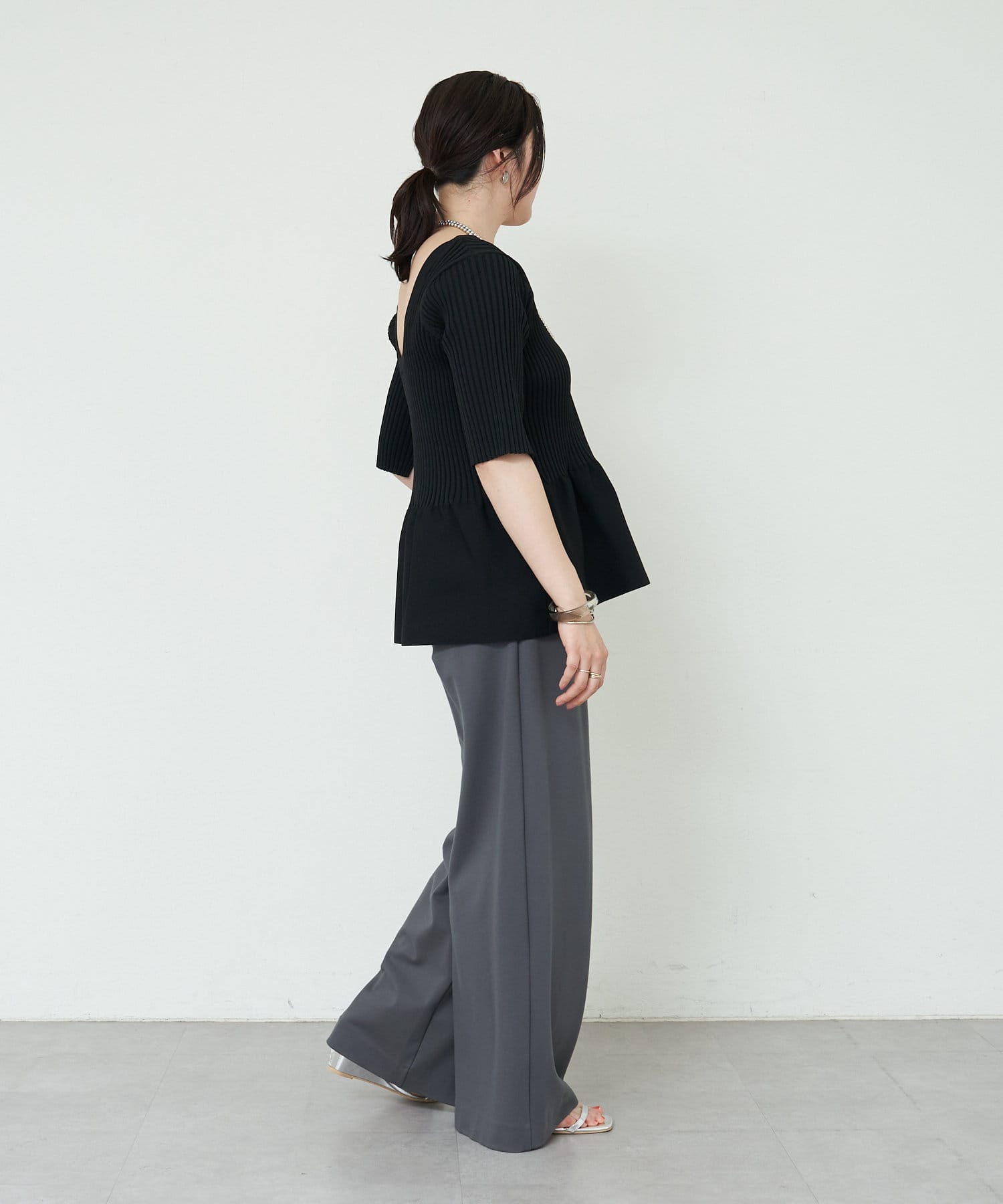 着痩せ効果抜群!簡単に垢抜けられる前後で着れるペプラムニット