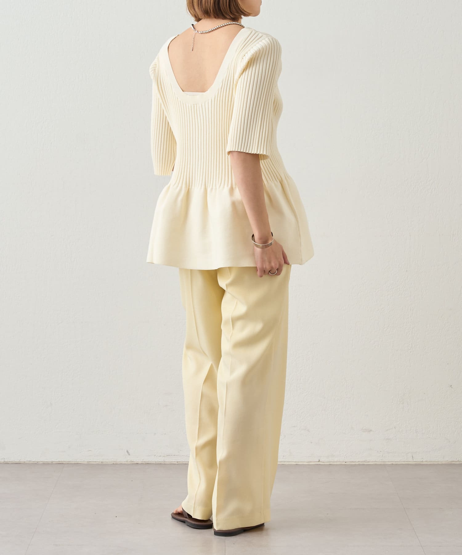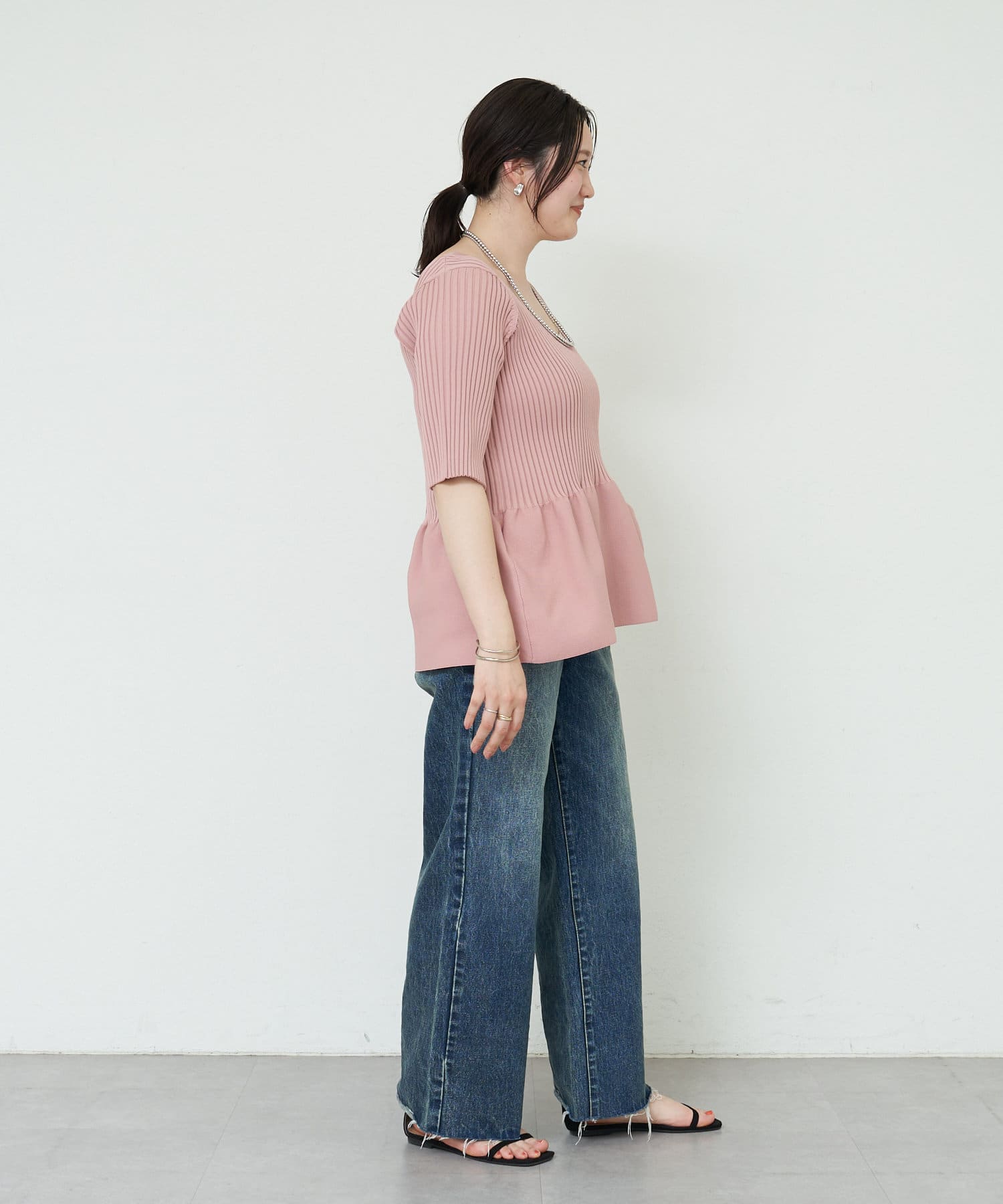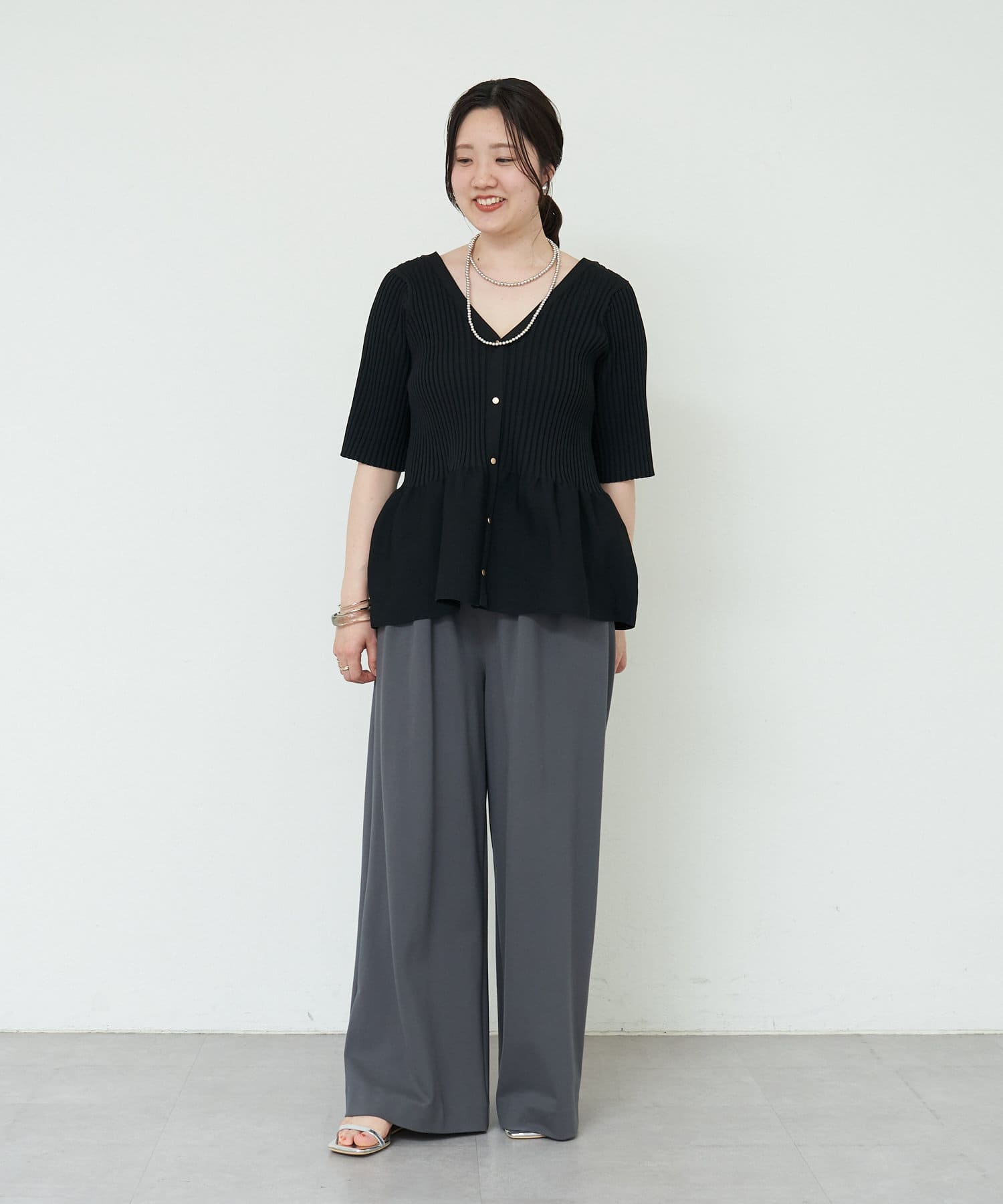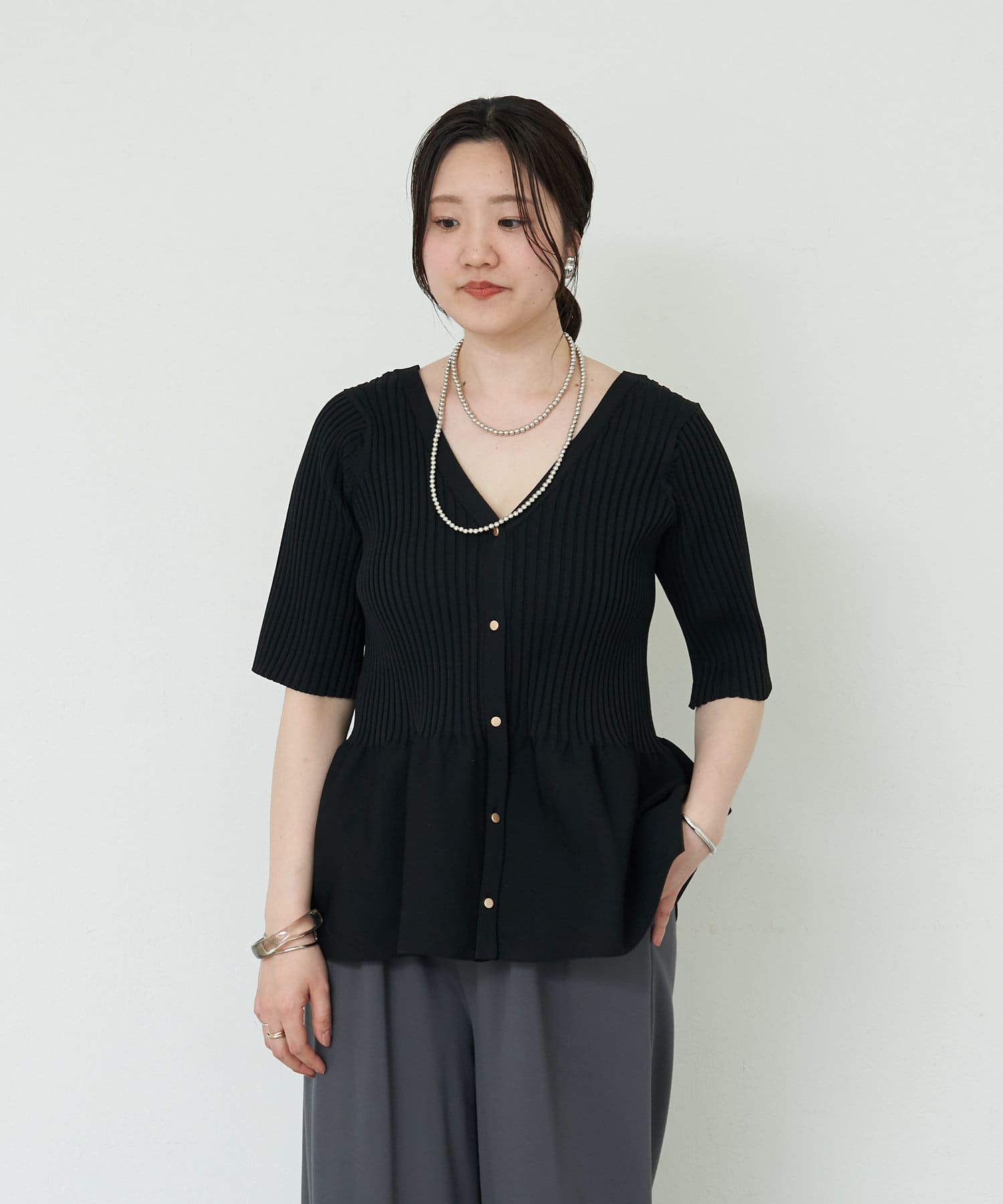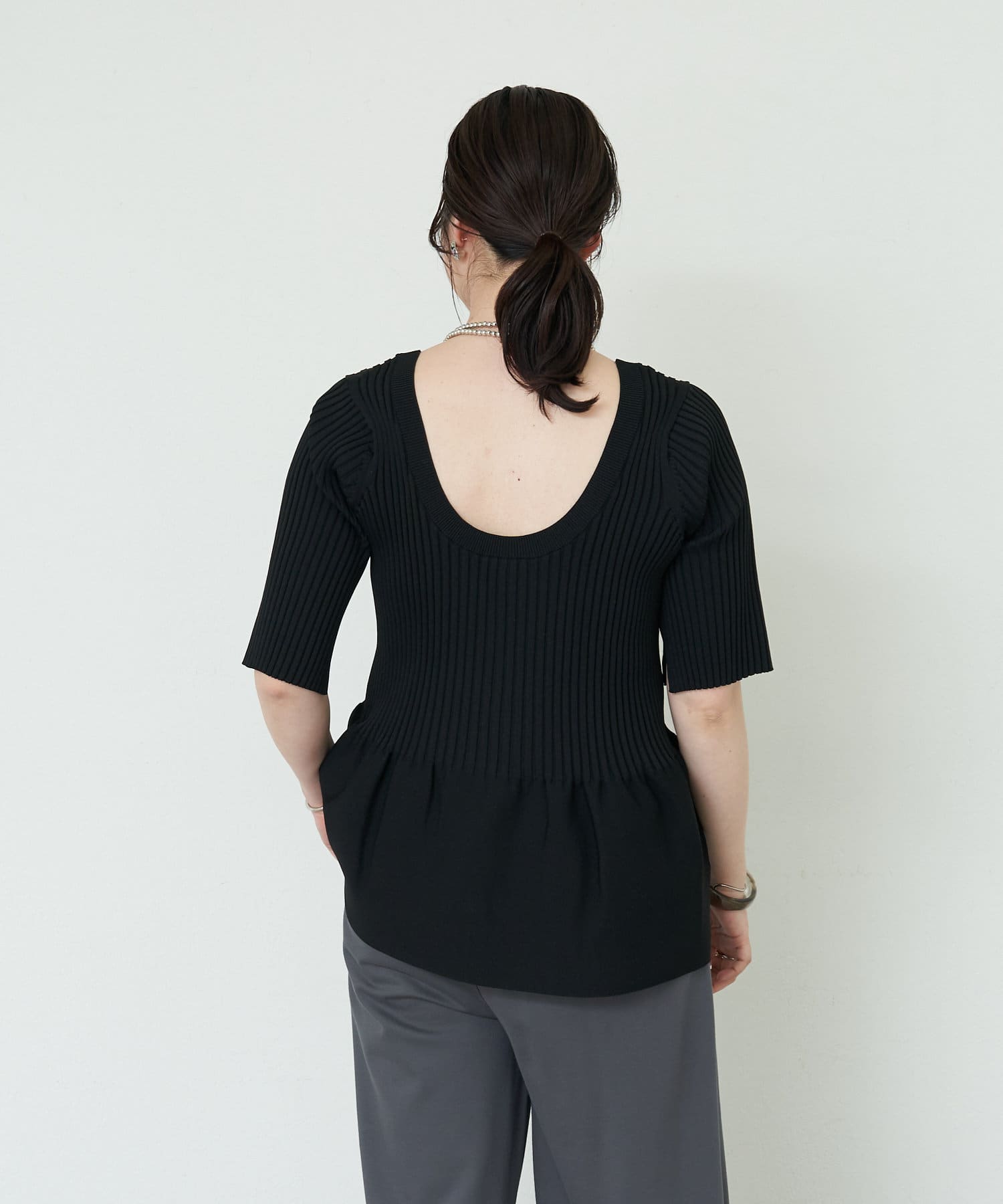着痩せ効果抜群!簡単に垢抜けられる前後で着れるペプラムニット