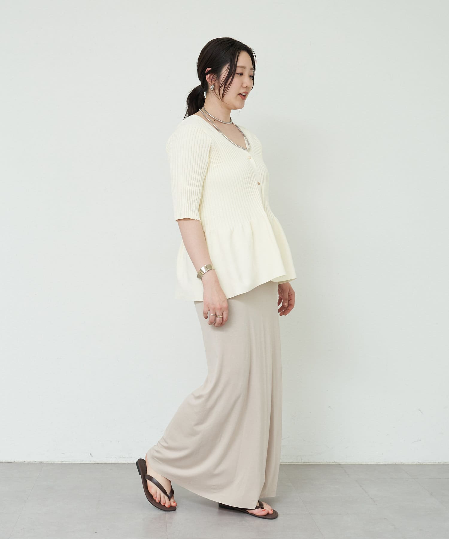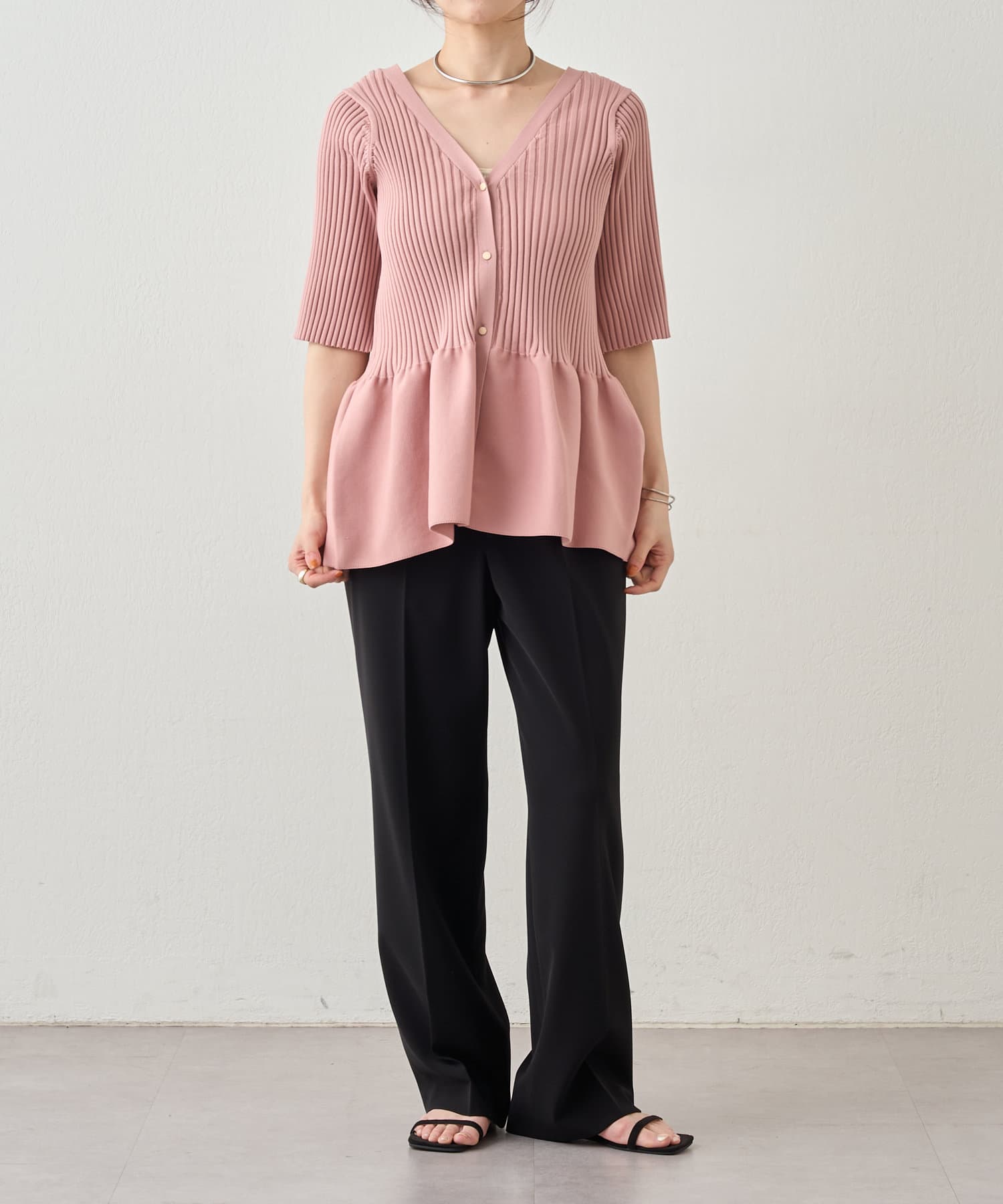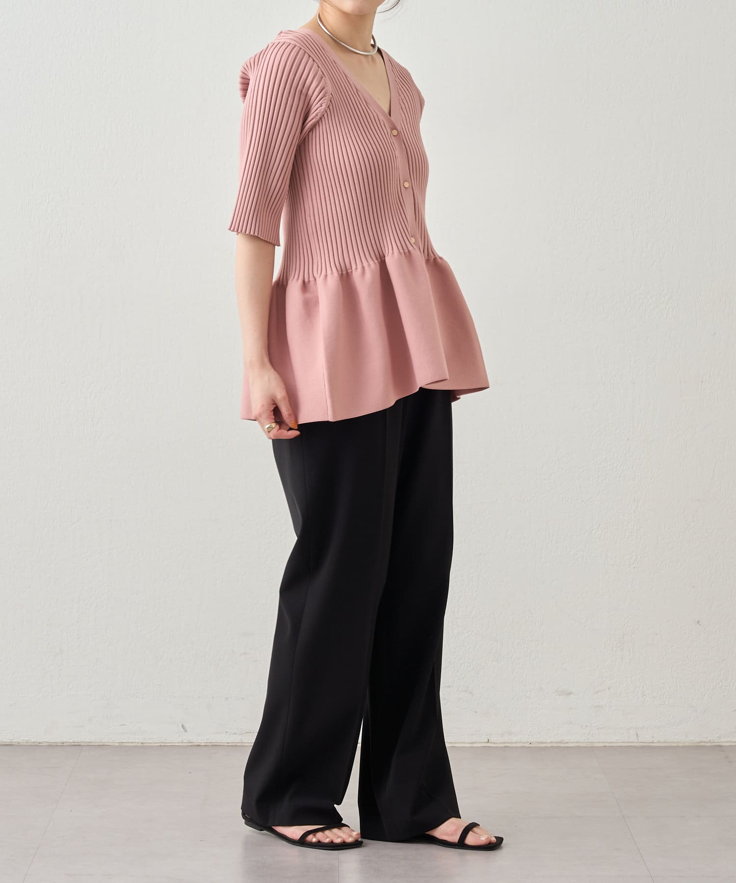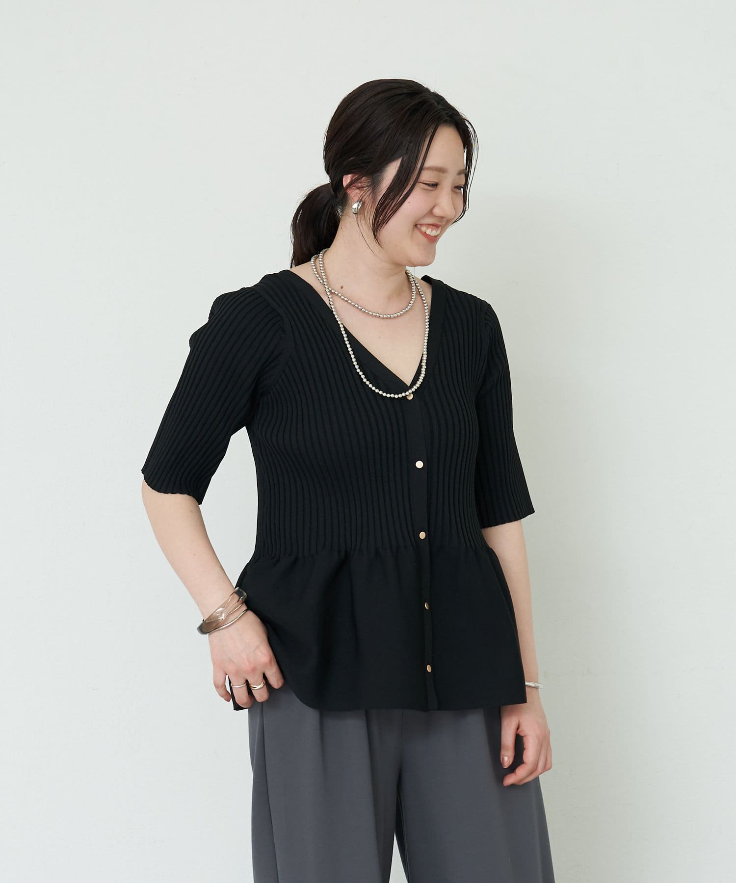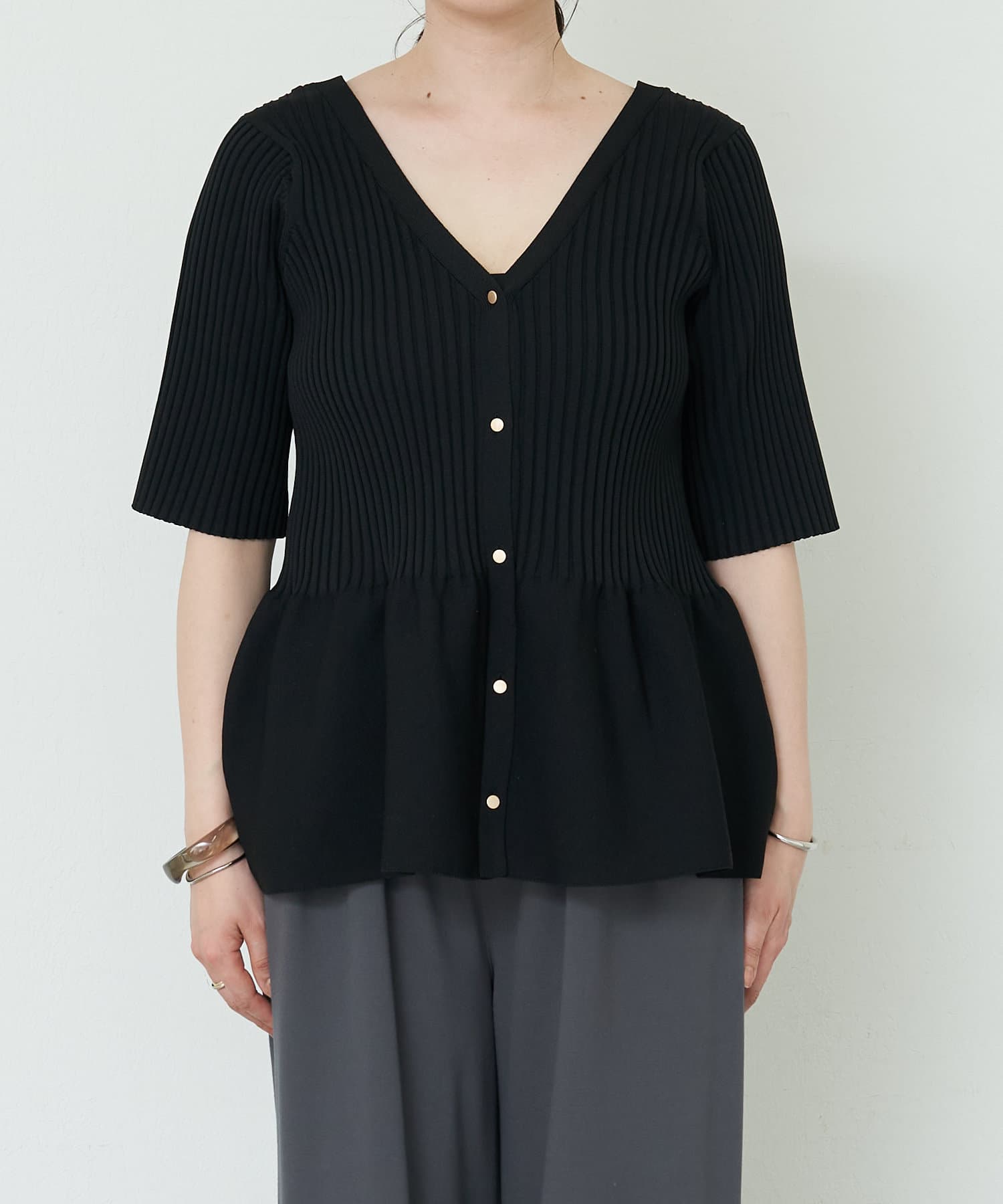 着痩せ効果抜群!簡単に垢抜けられる前後で着れるペプラムニット