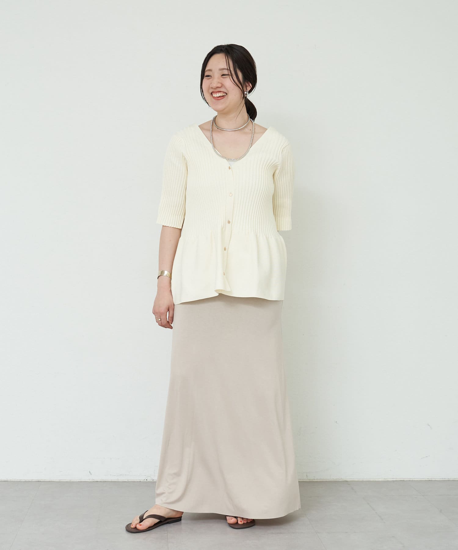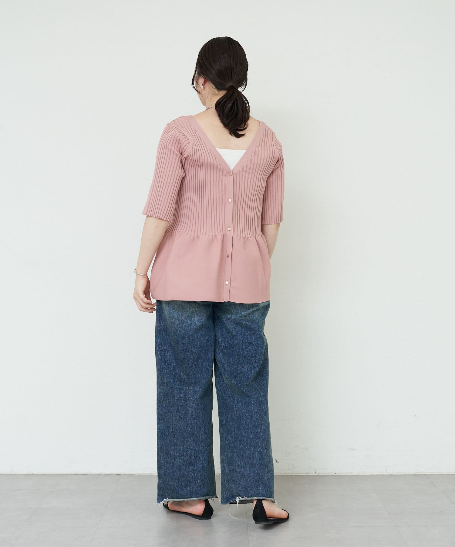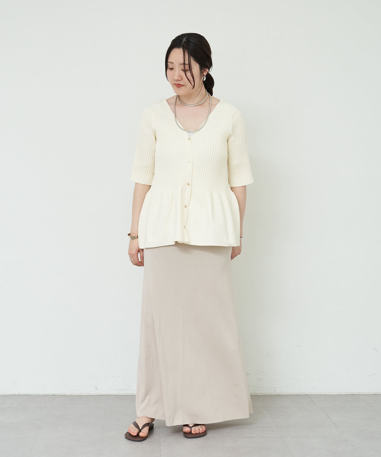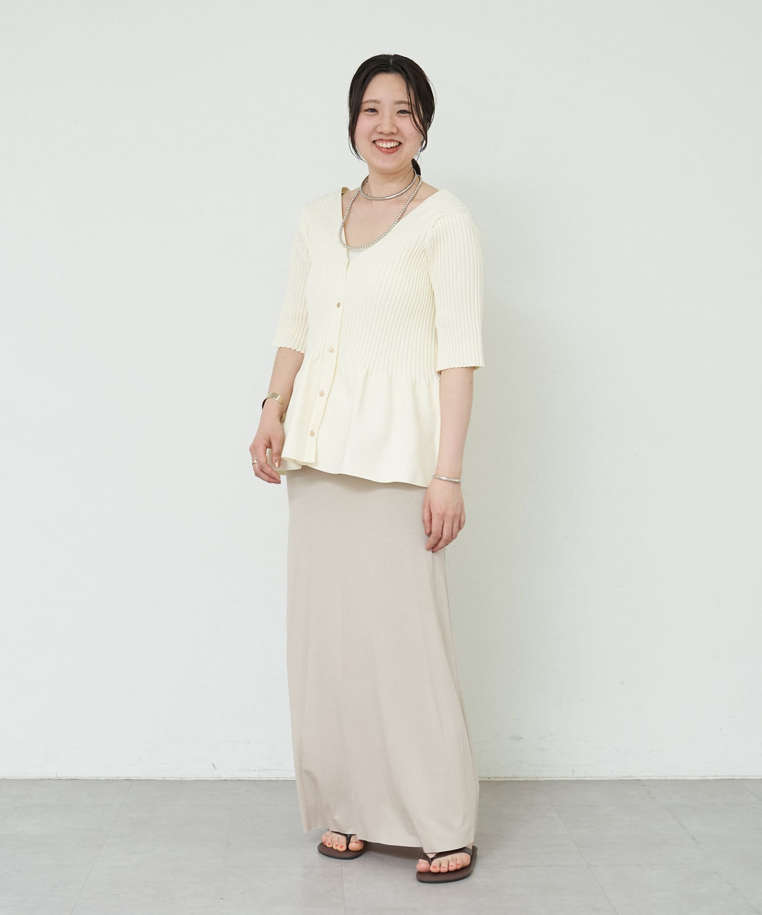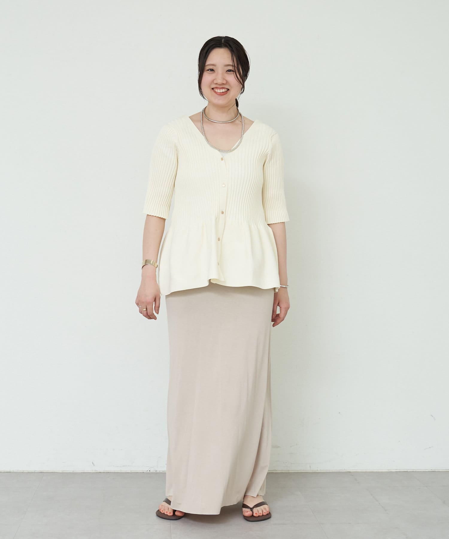 着痩せ効果抜群!簡単に垢抜けられる前後で着れるペプラムニット