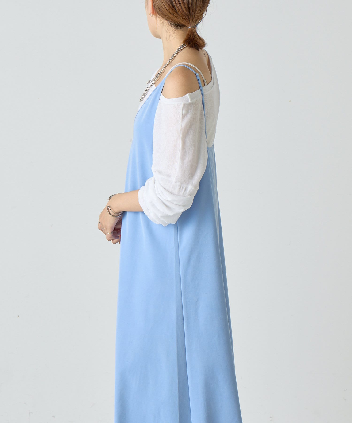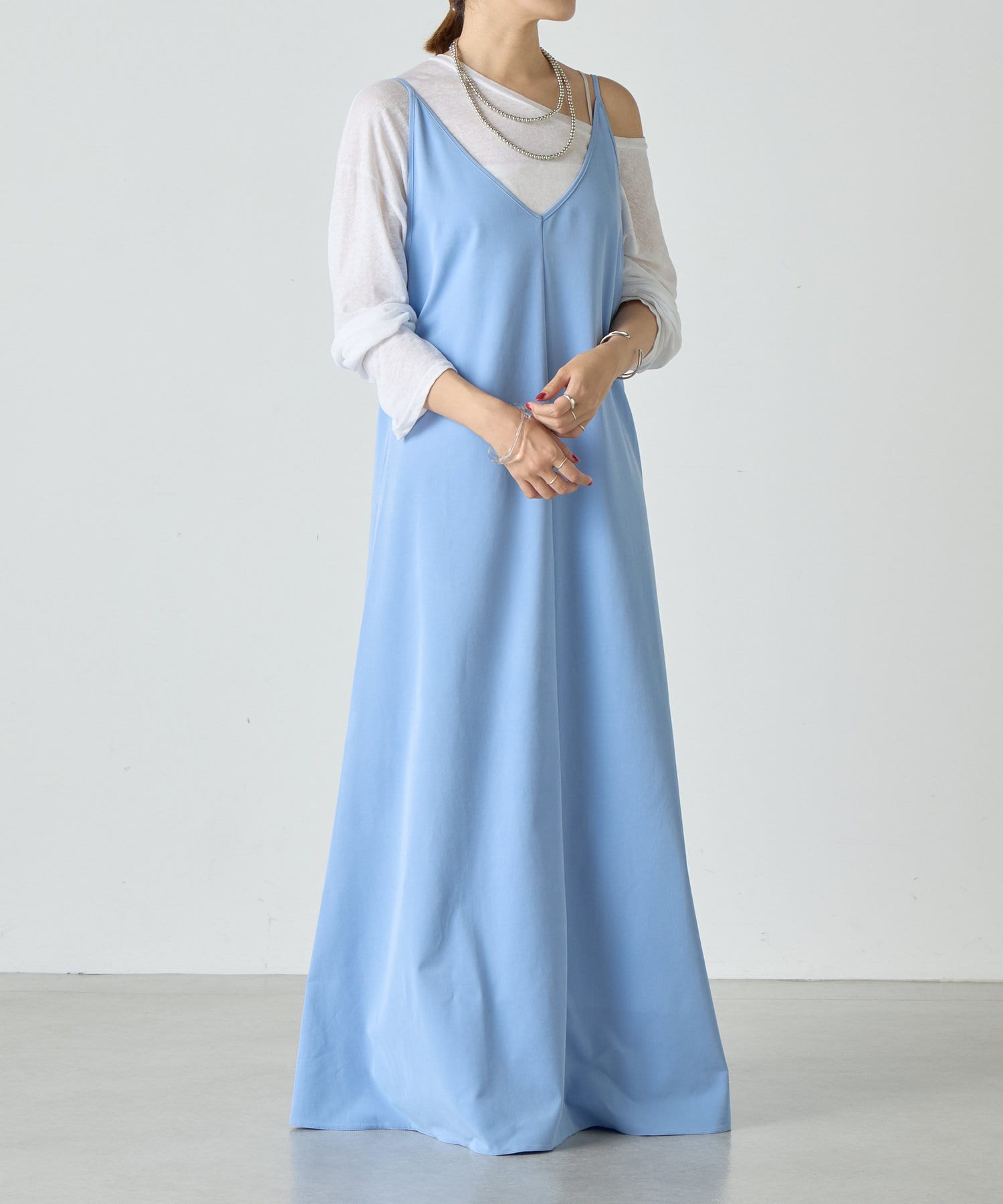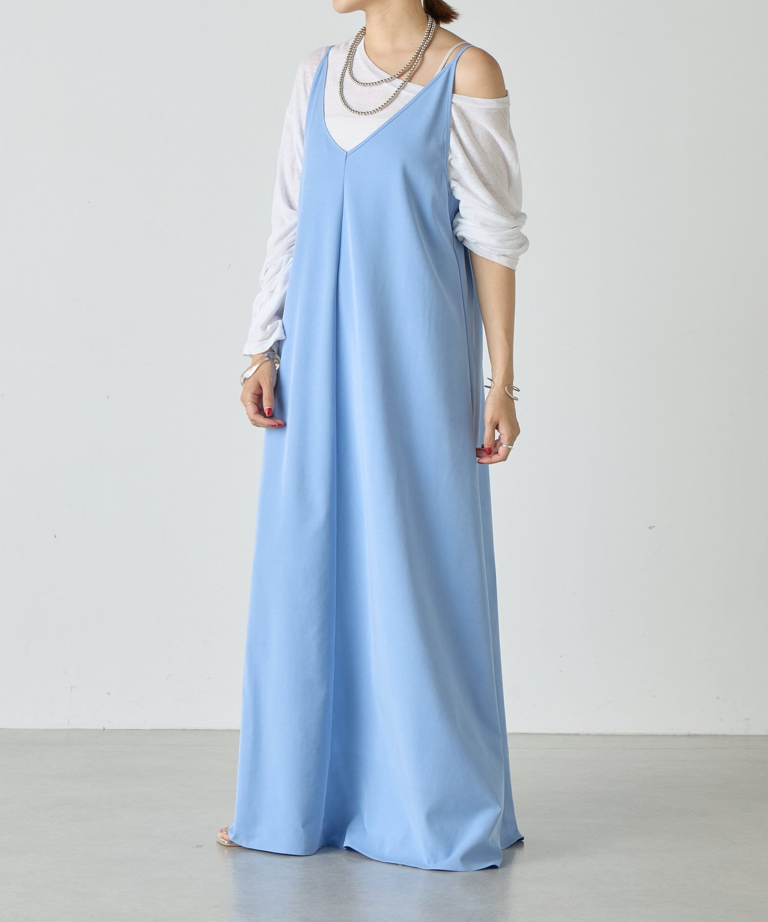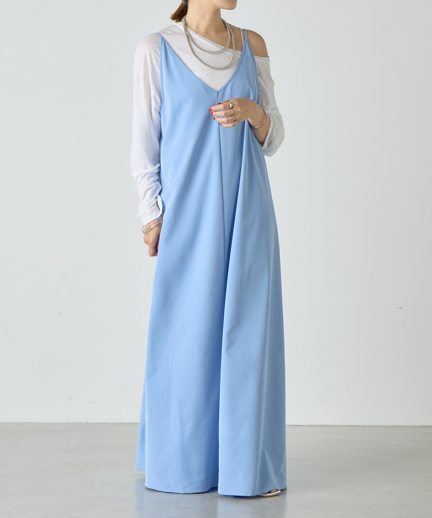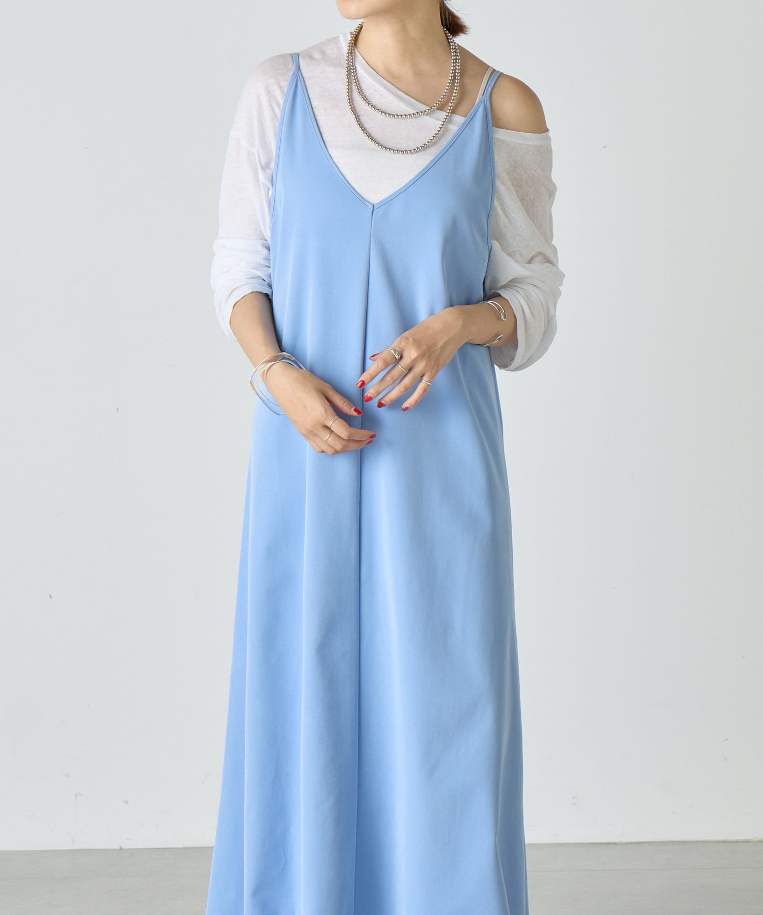 華奢で深めに開いたV開きが大人っぽいキャミ ワンピース。