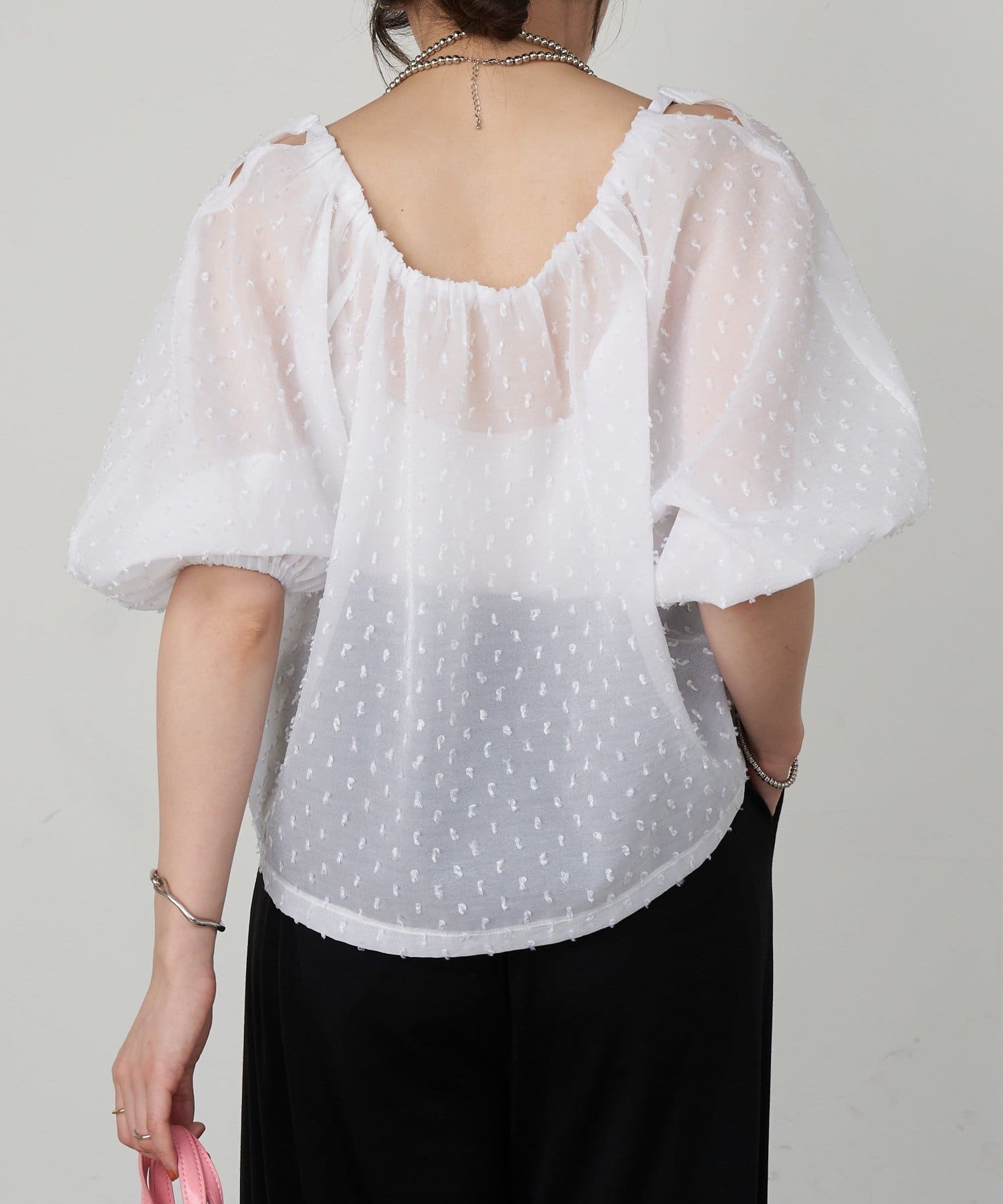 一枚で華やかに、決まるアイテムになっています。