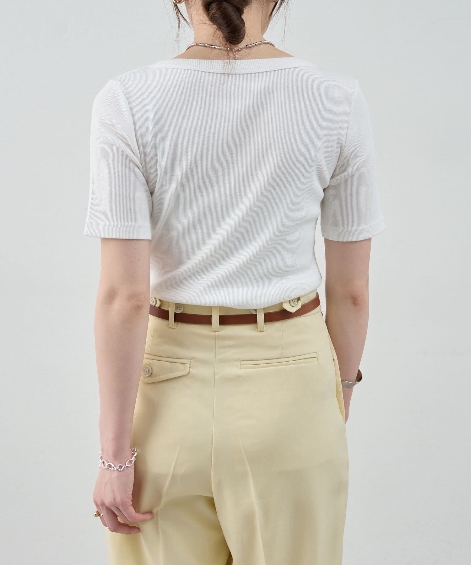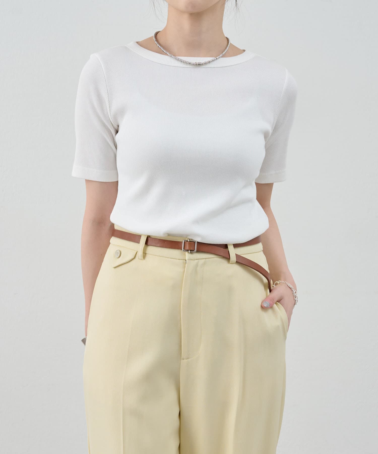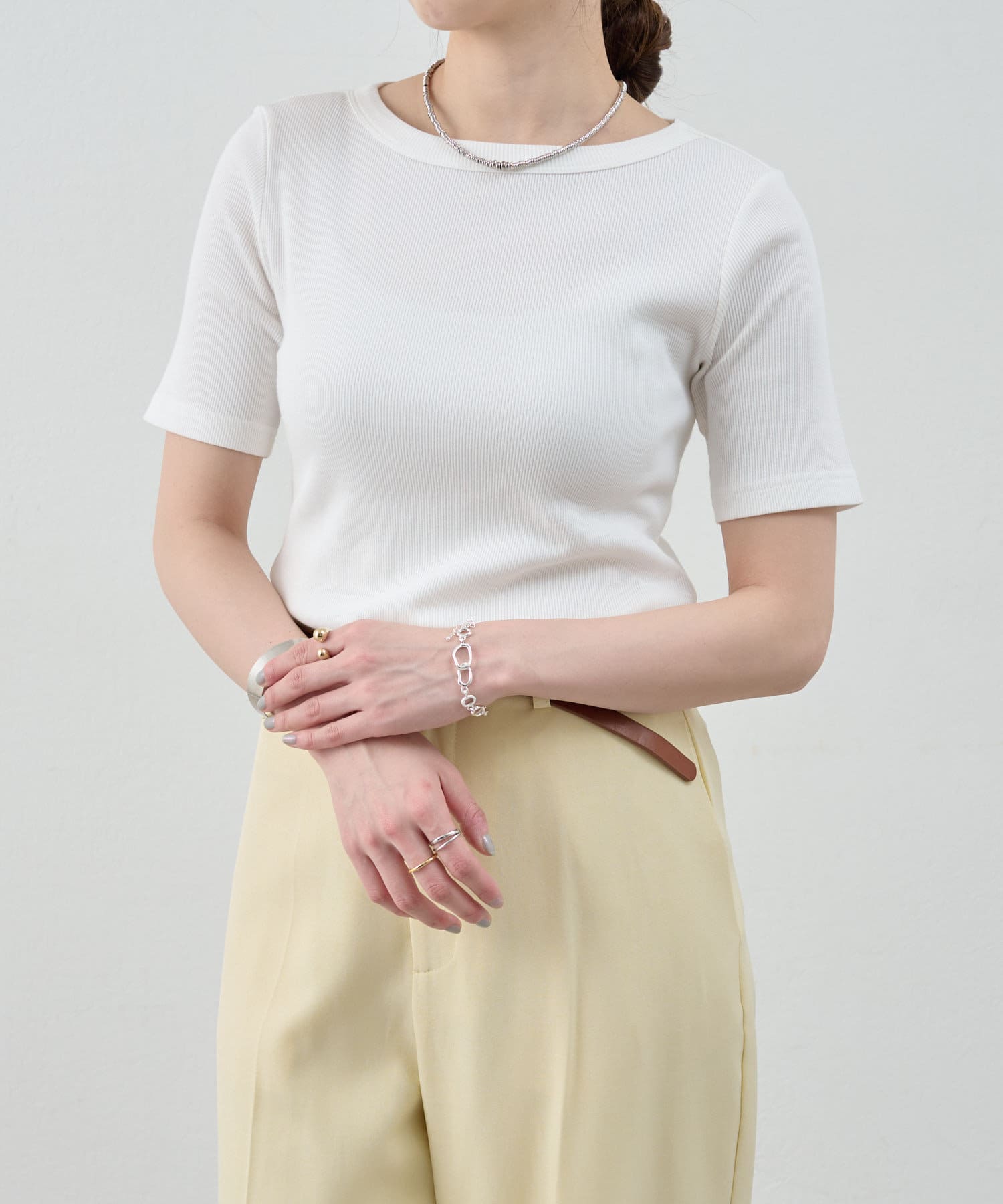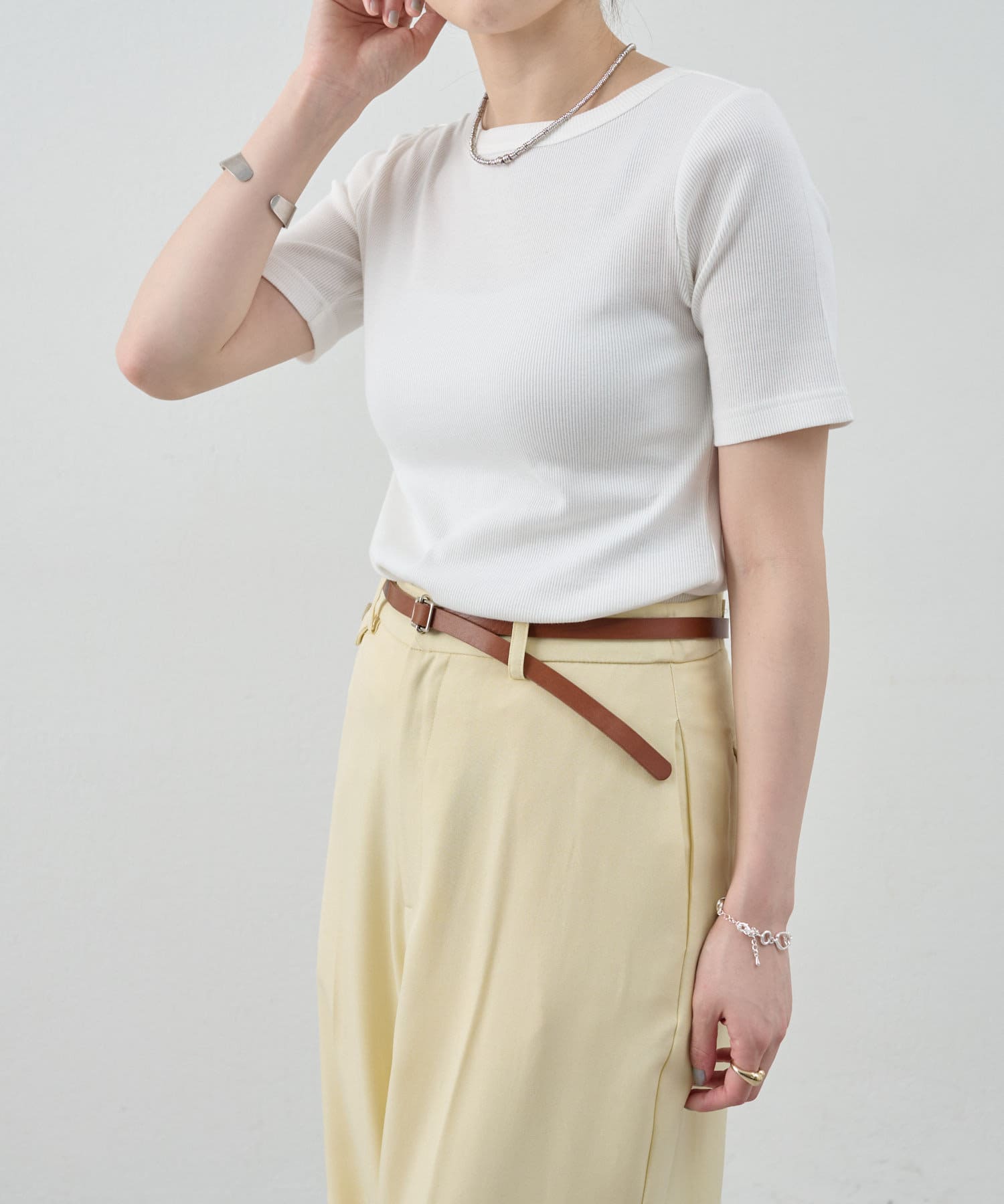 《毎年人気の万能アイテム》ショートスリーブリブトップス