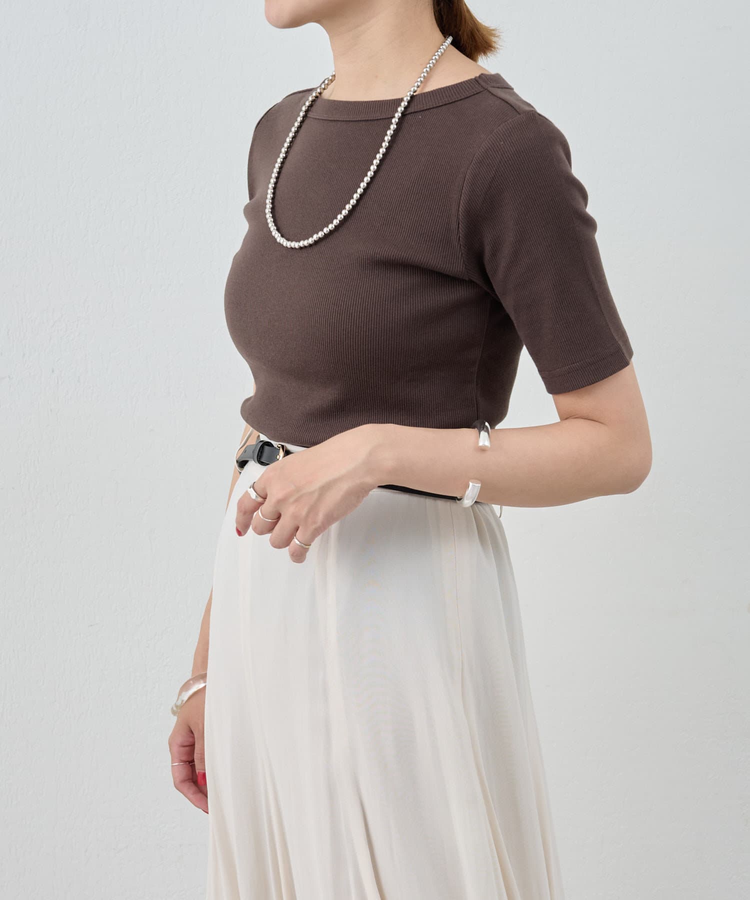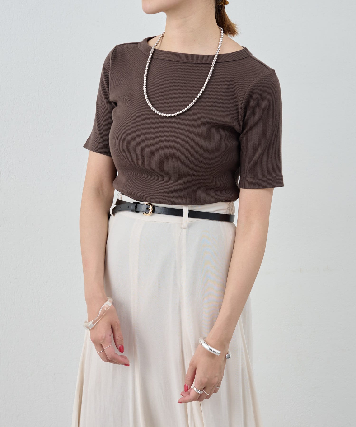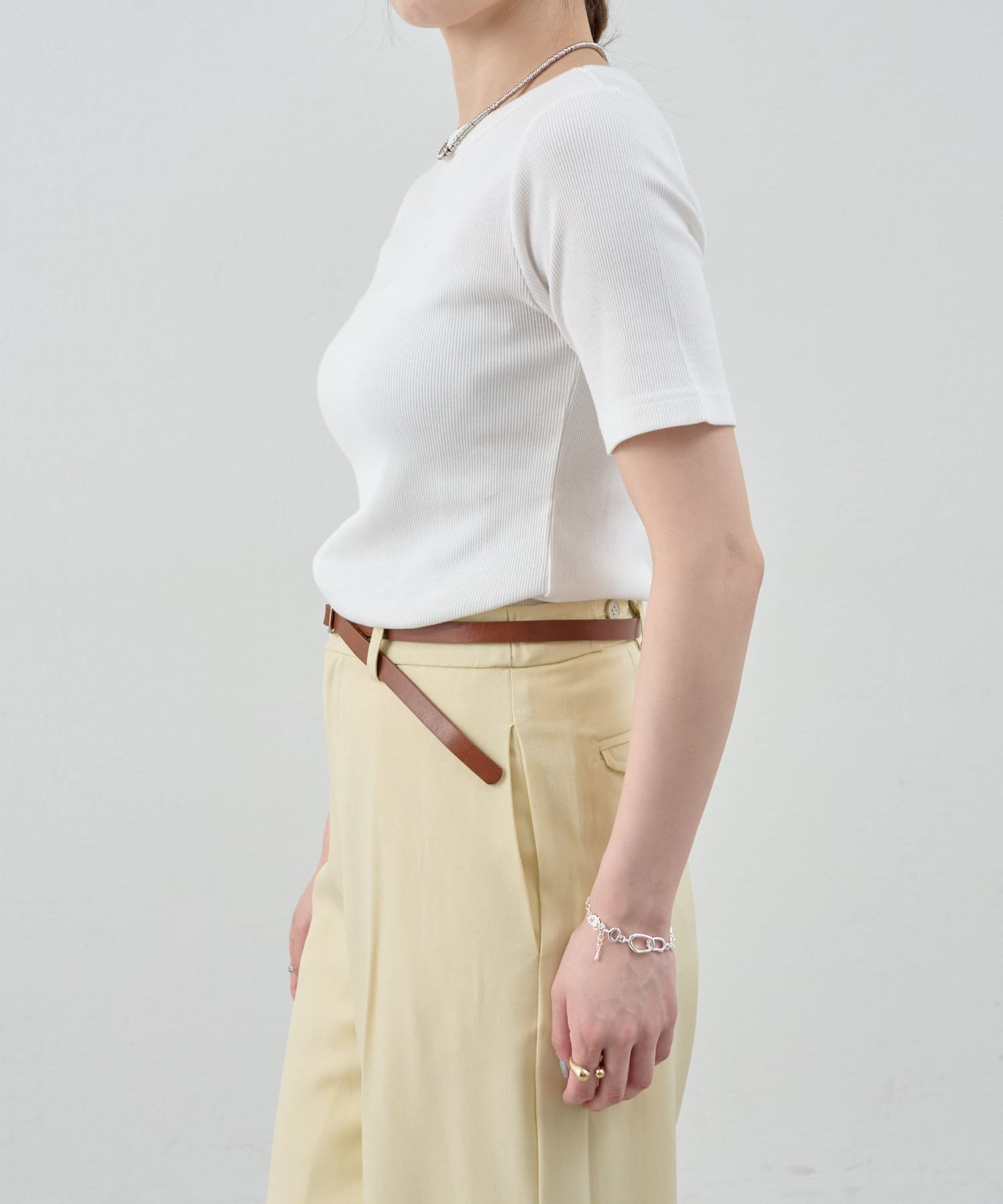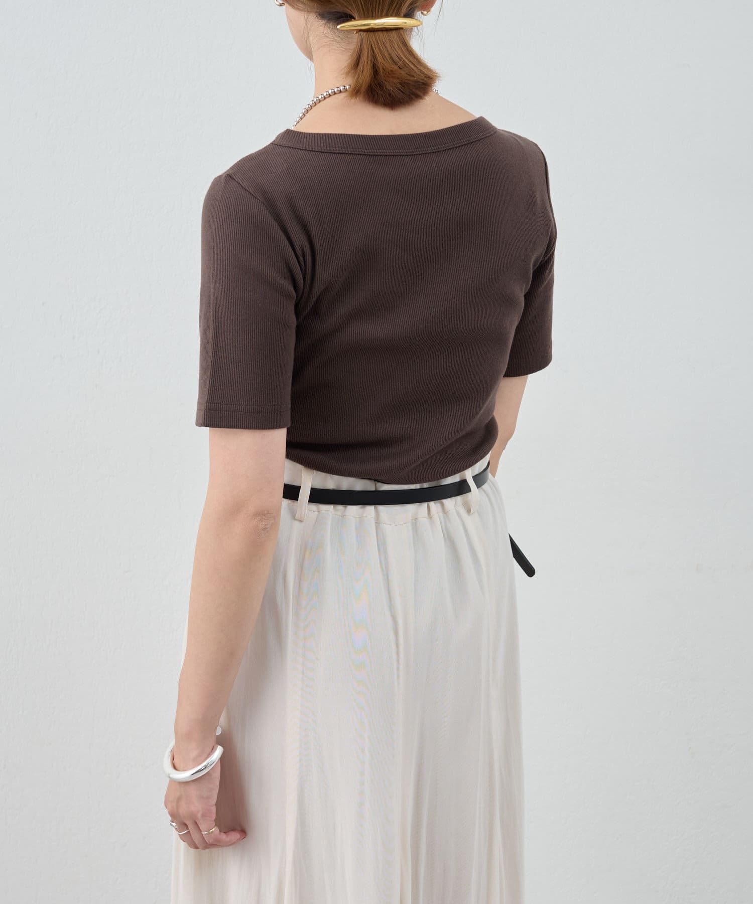 《毎年人気の万能アイテム》ショートスリーブリブトップス