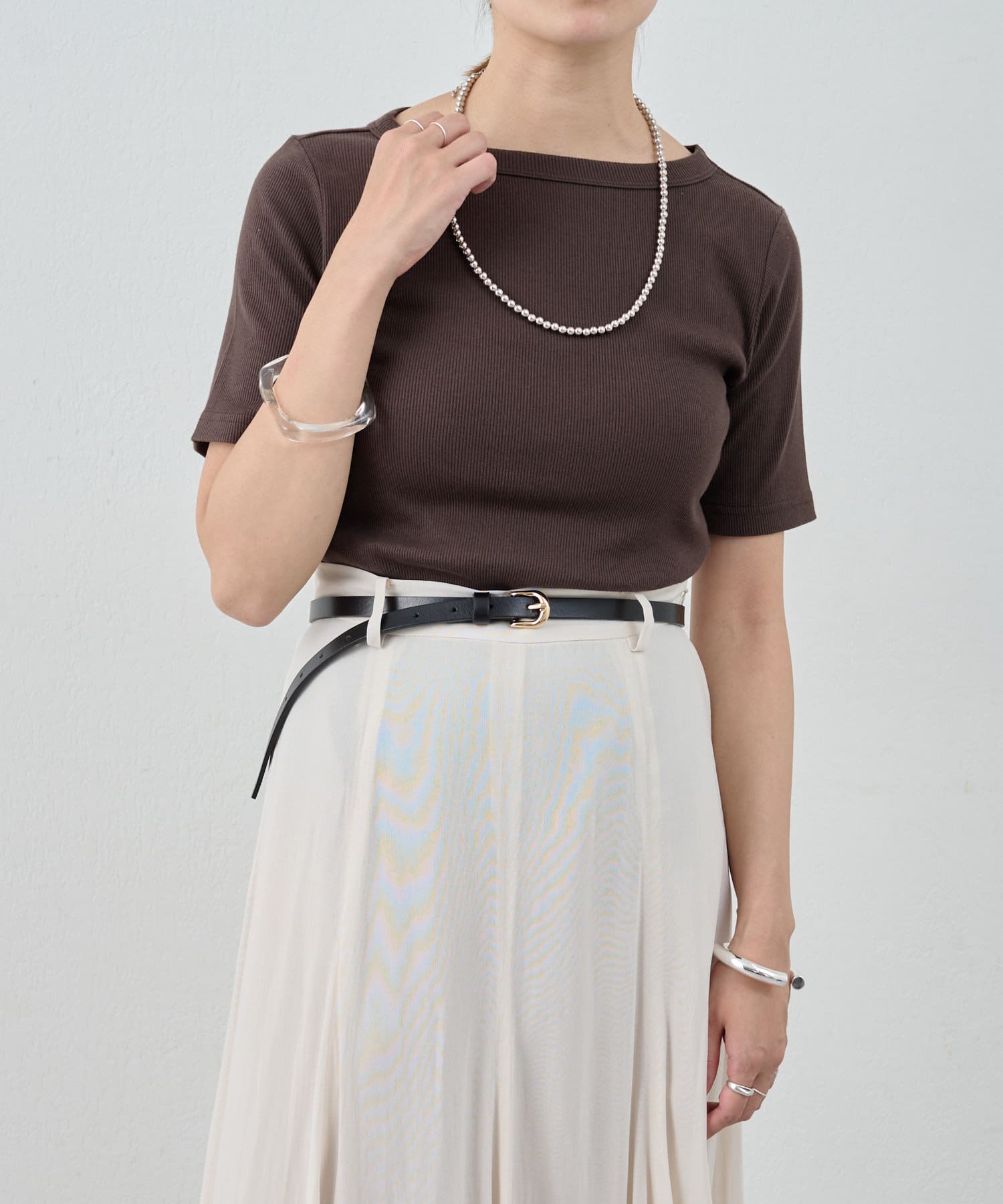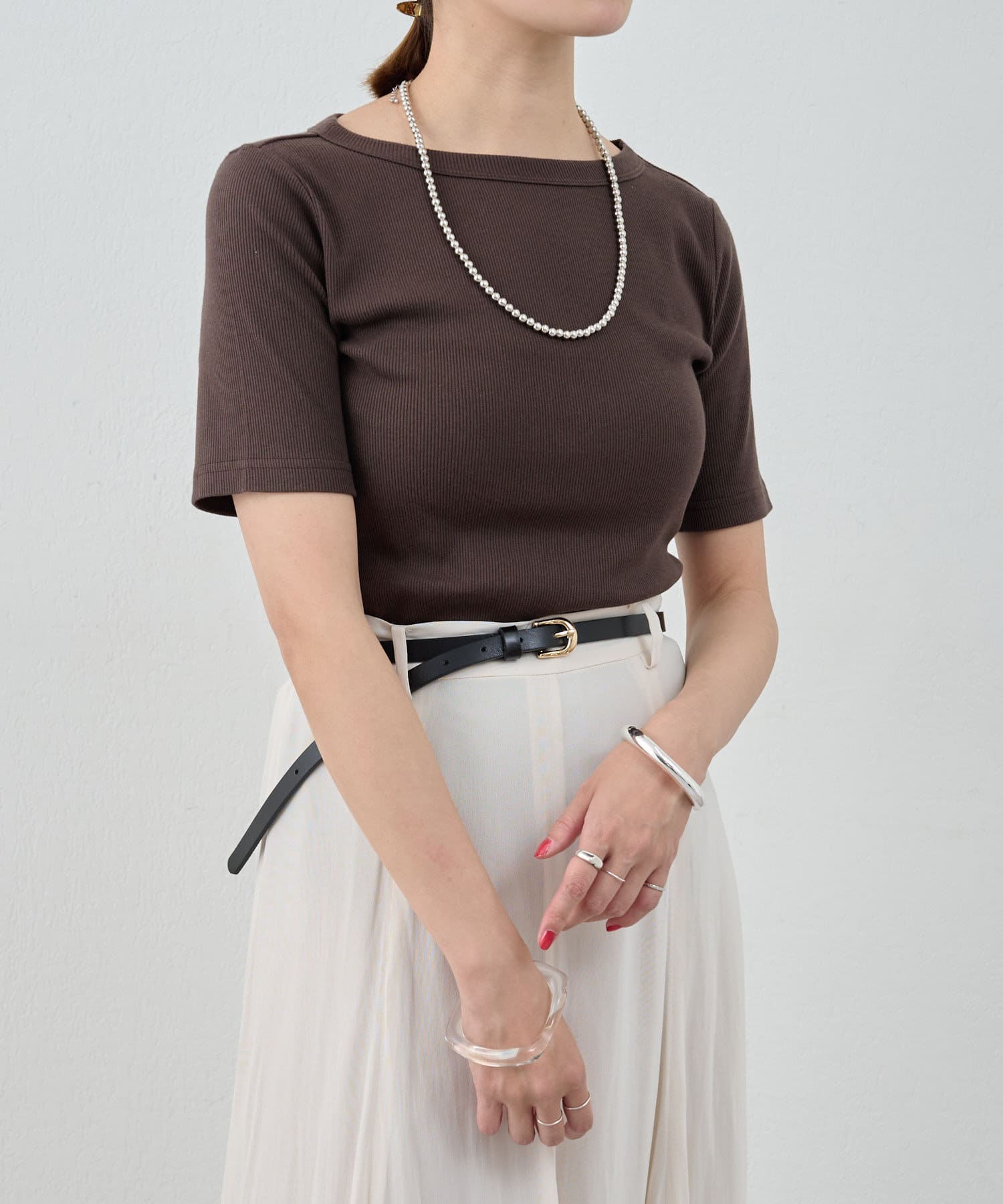 ボートネックになっていたり、リブがはいっている為、