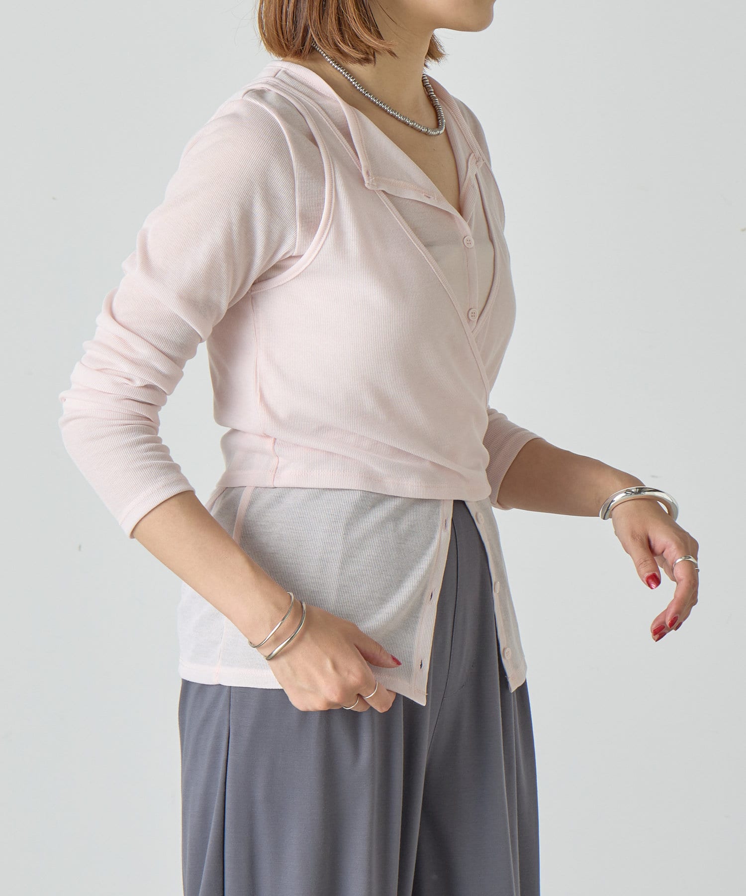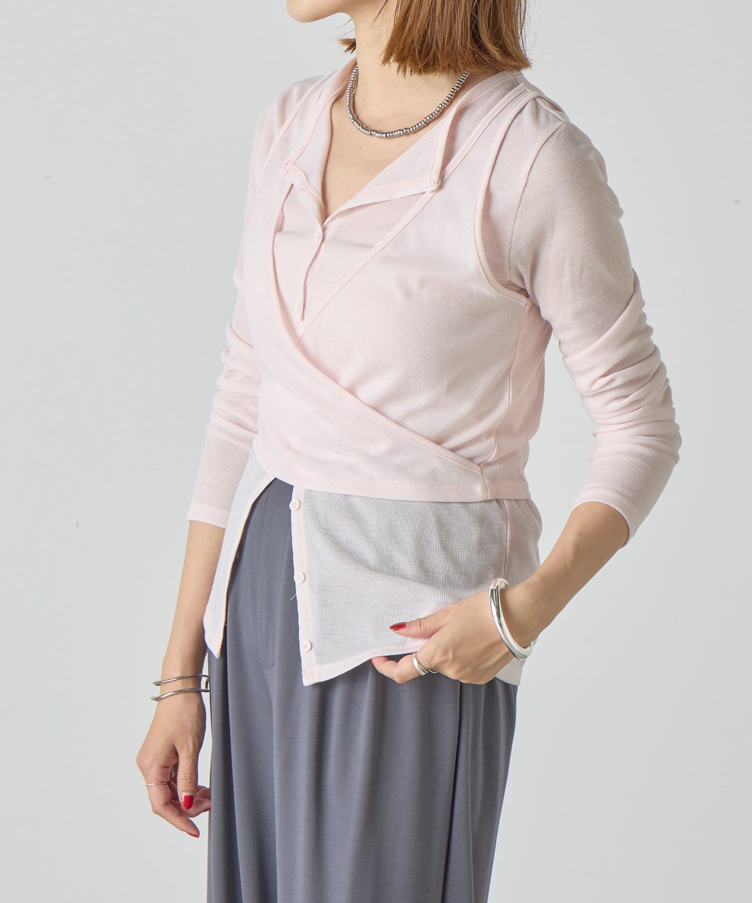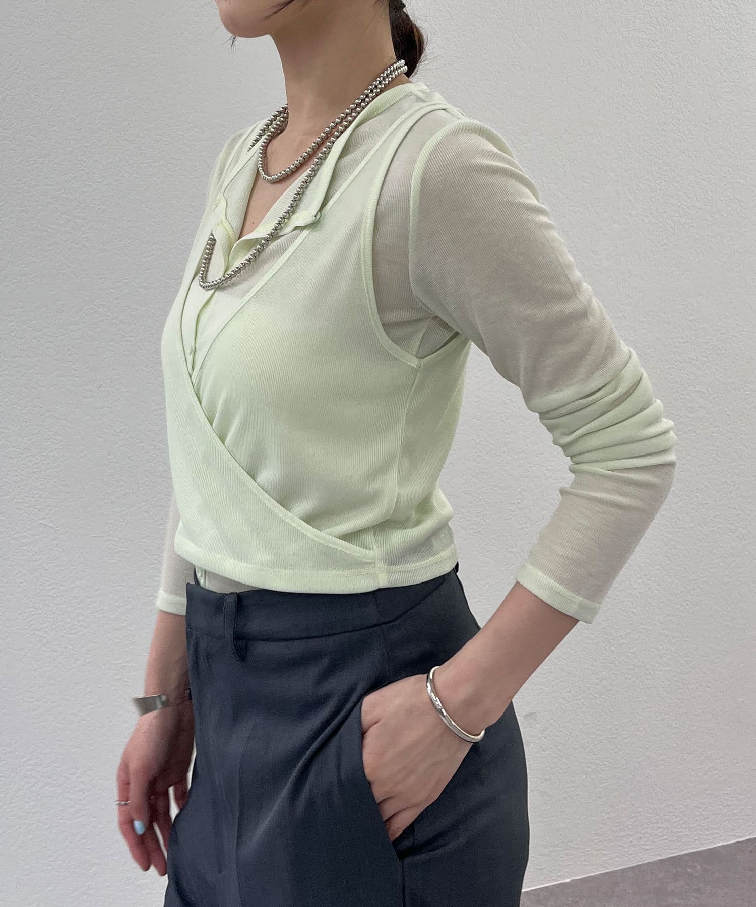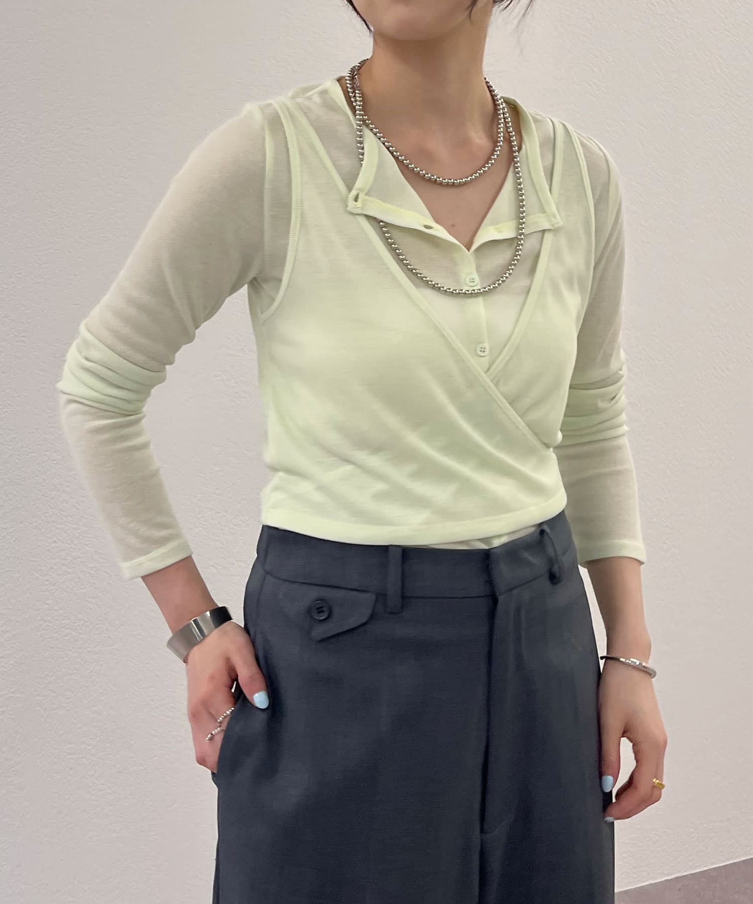 トレンドのレイヤードアイテム。