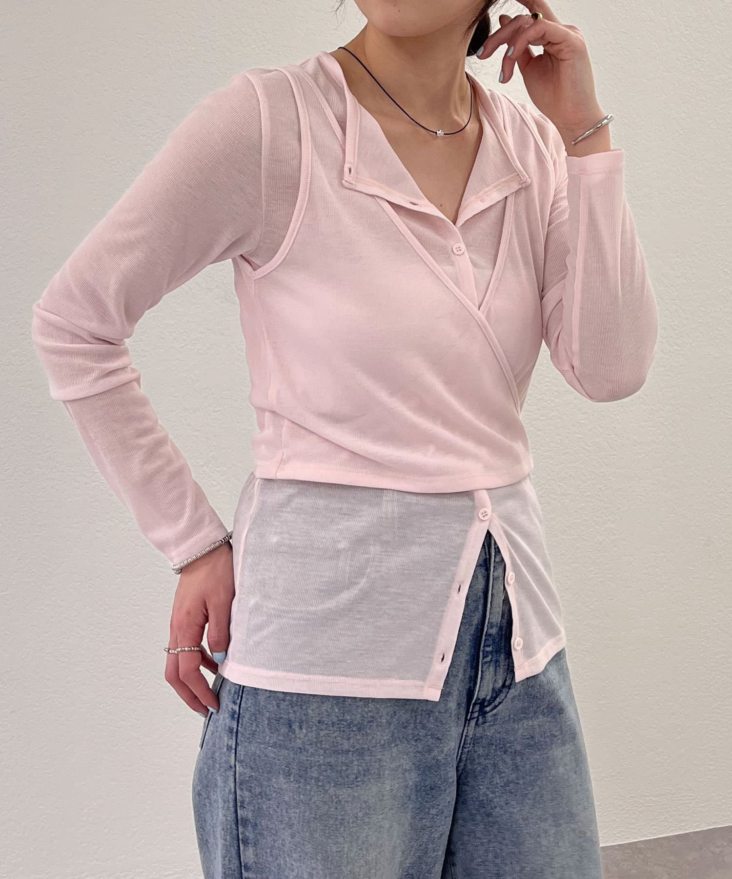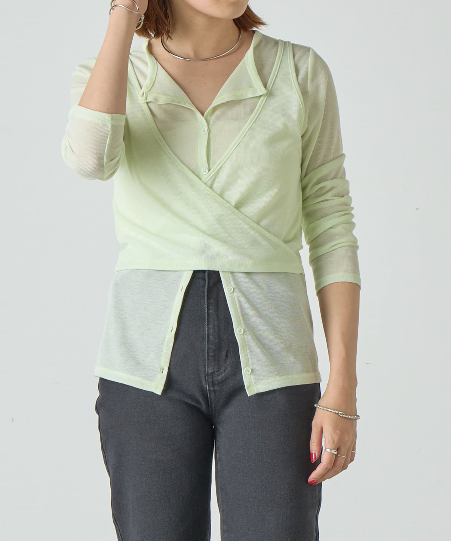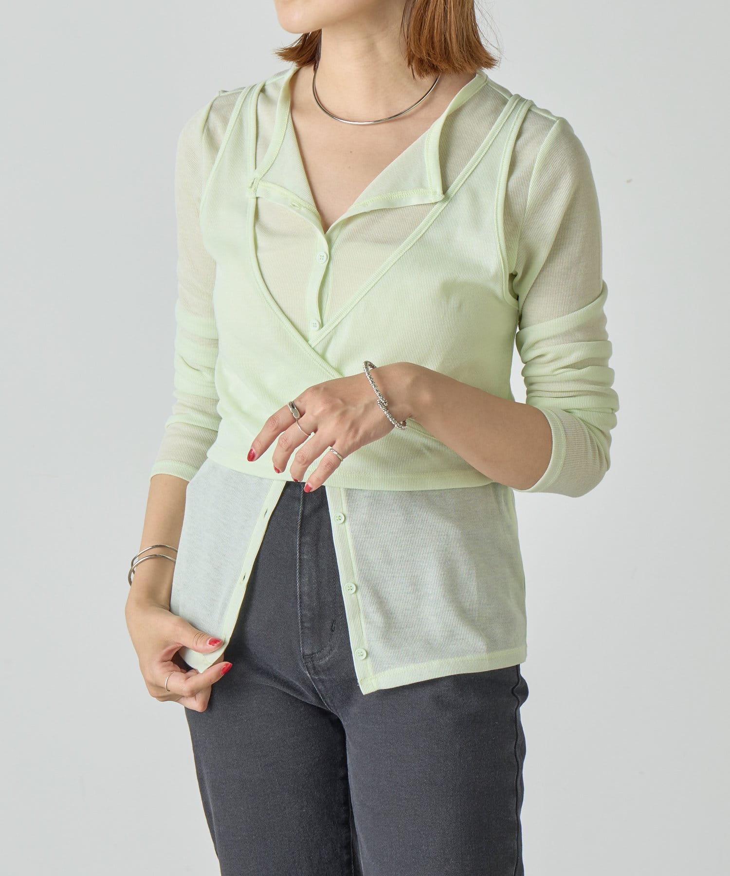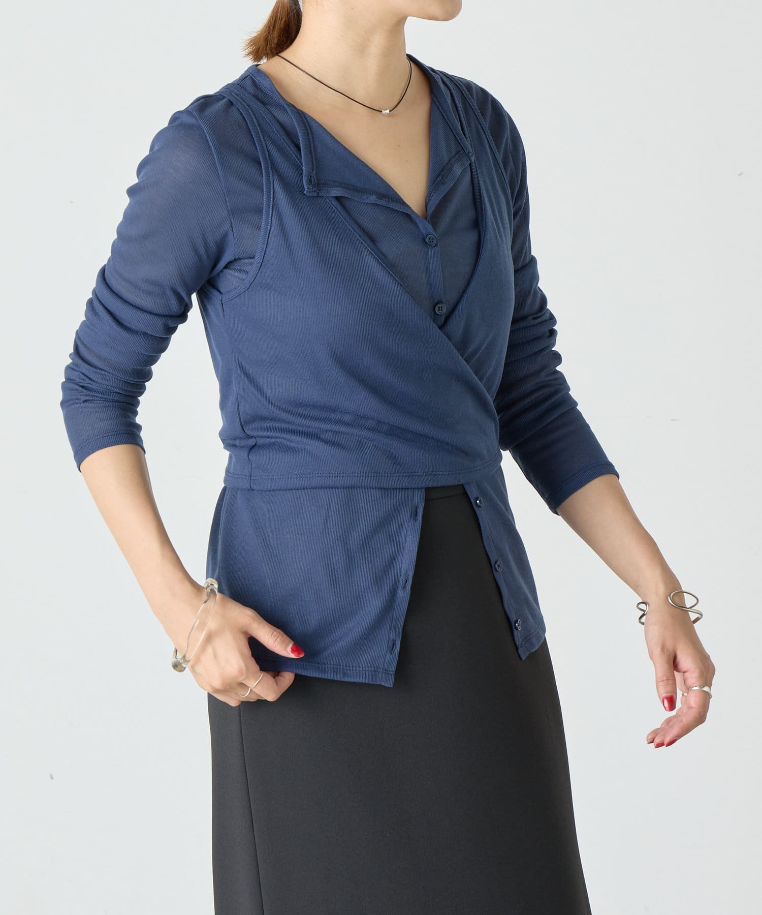 トレンドのレイヤードアイテム。