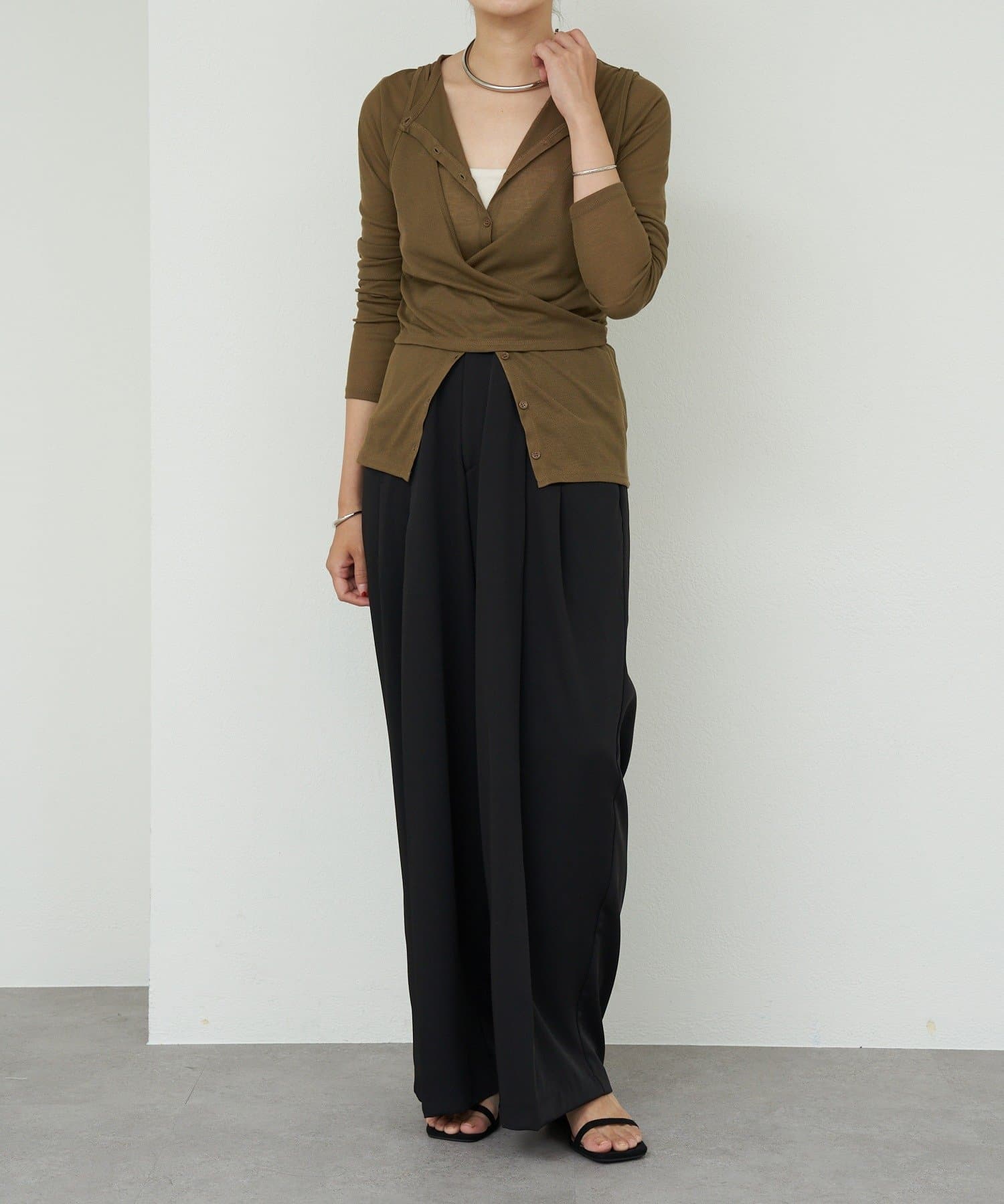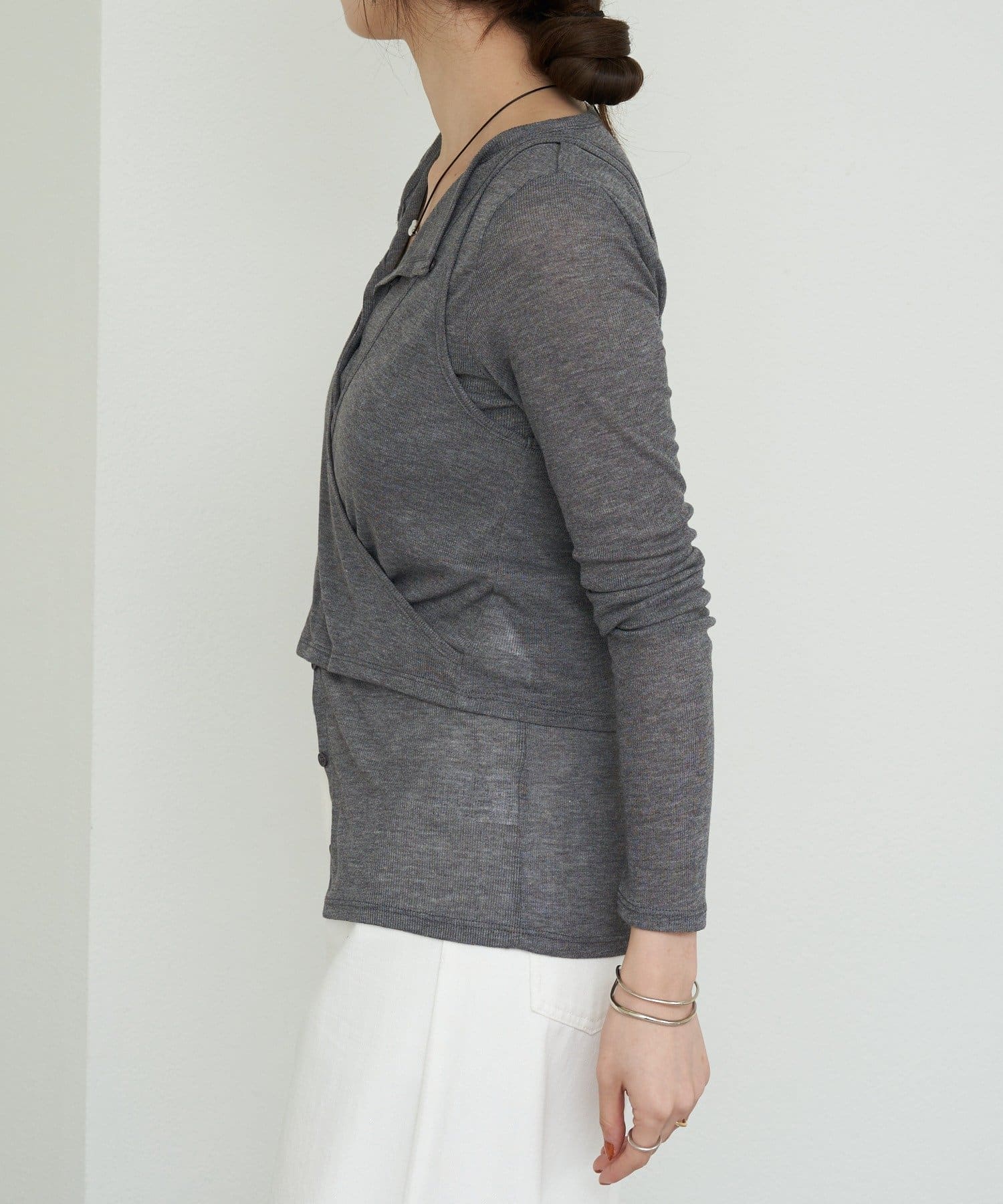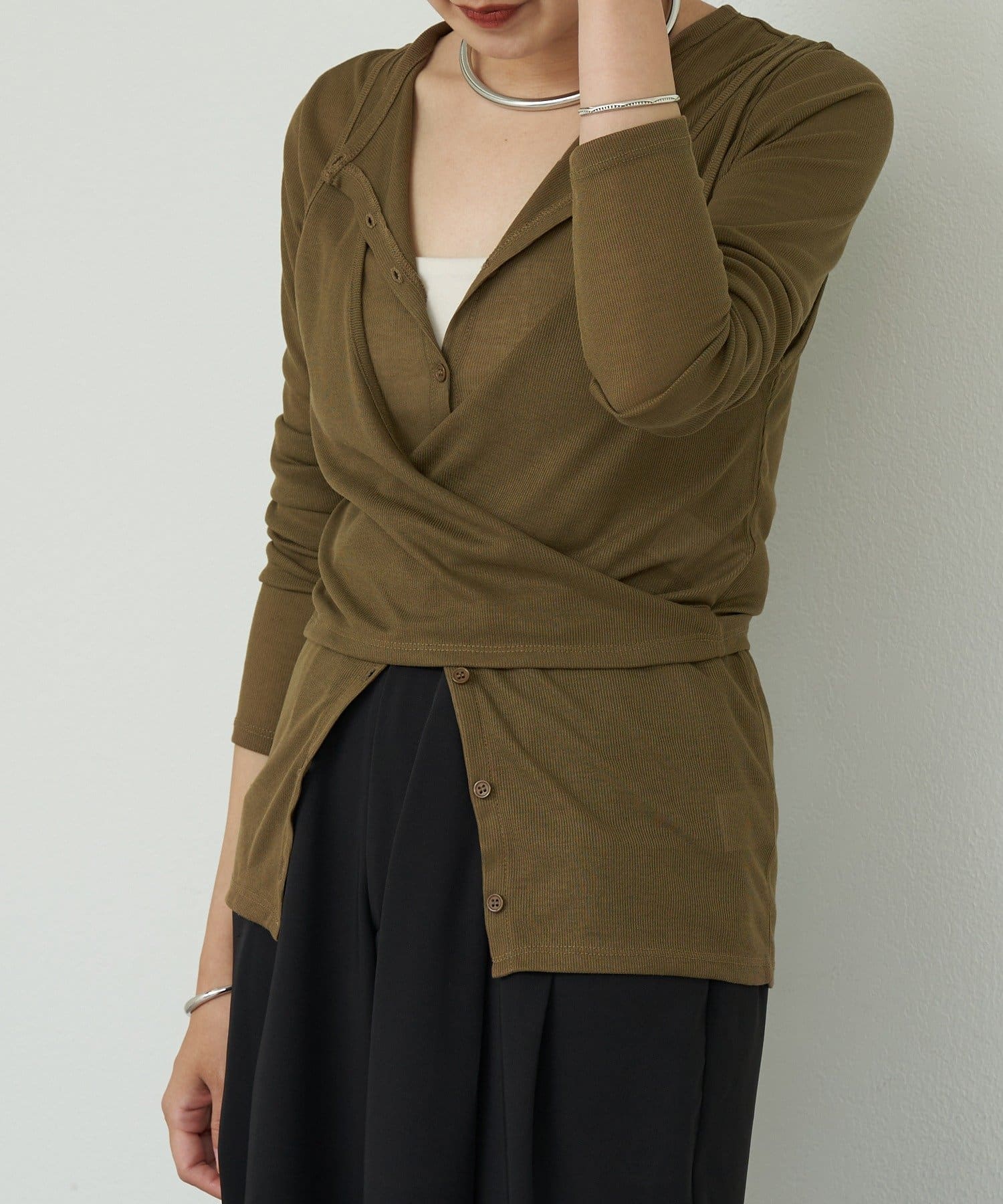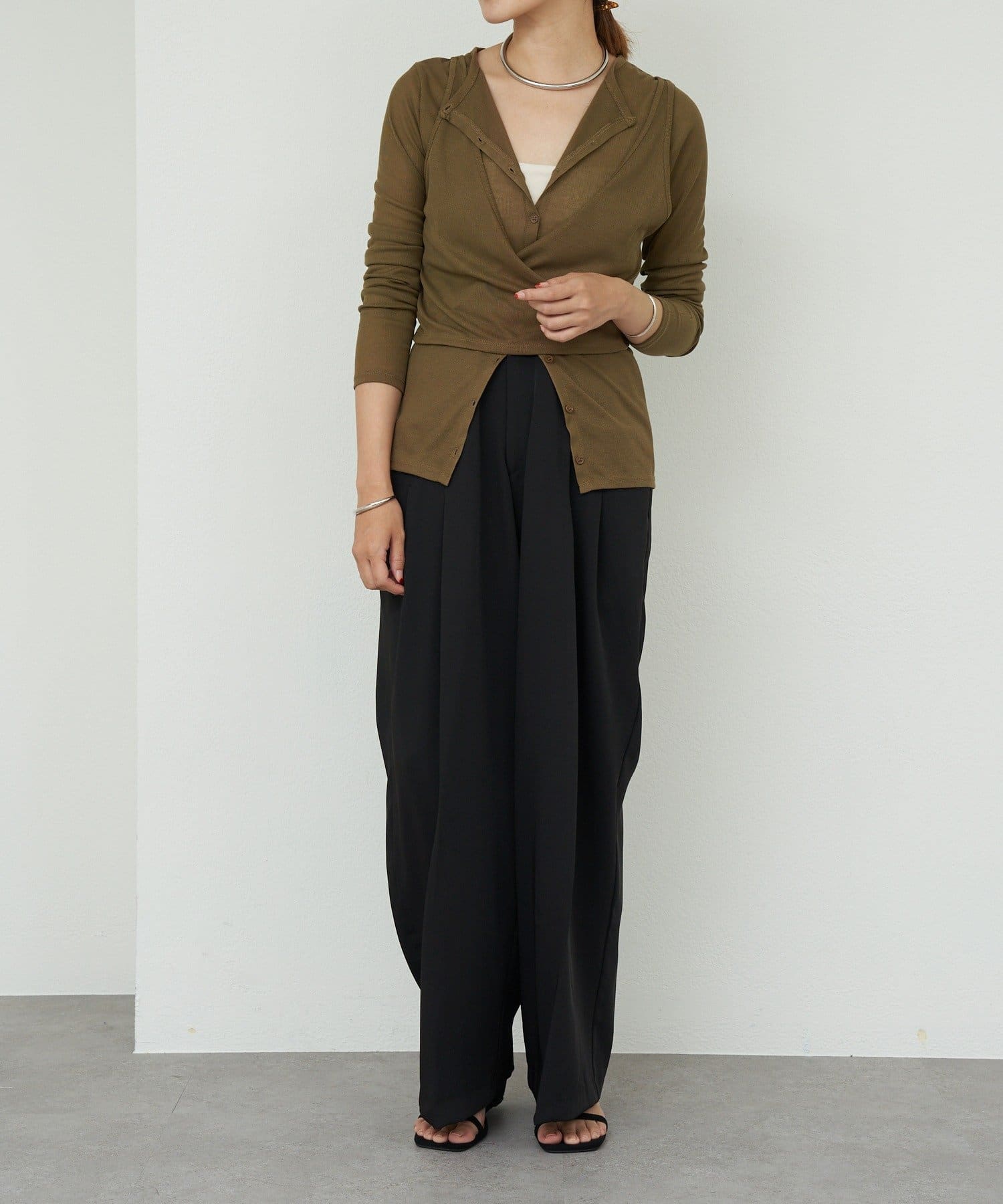 カーディガンのボタンを少し開けることで