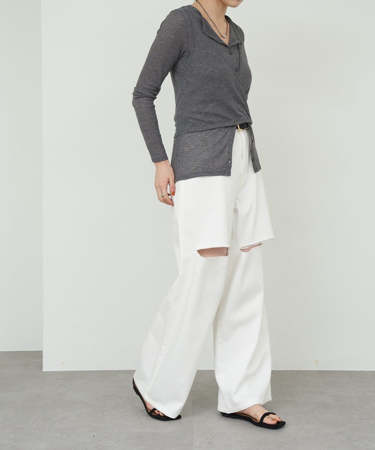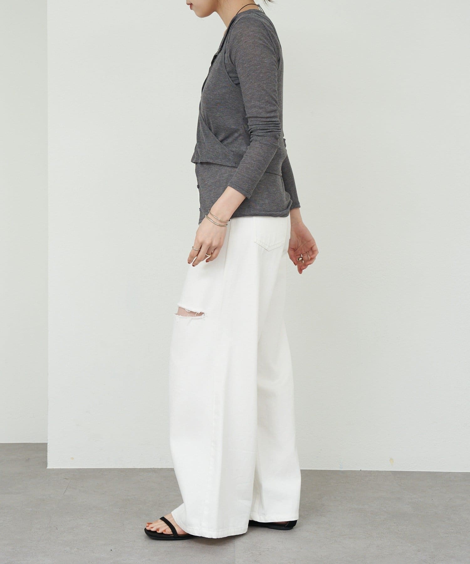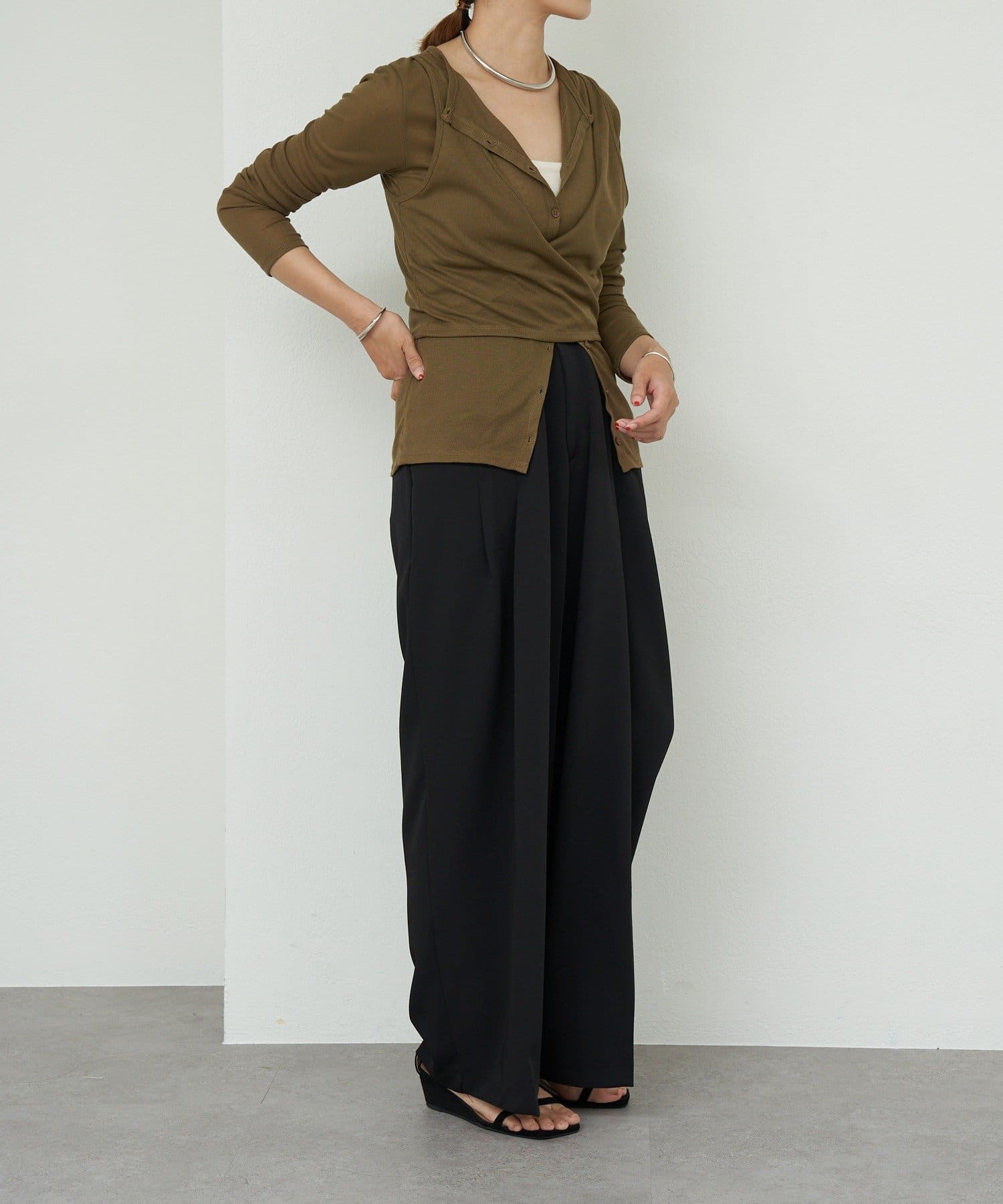 カーディガンのボタンを少し開けることで