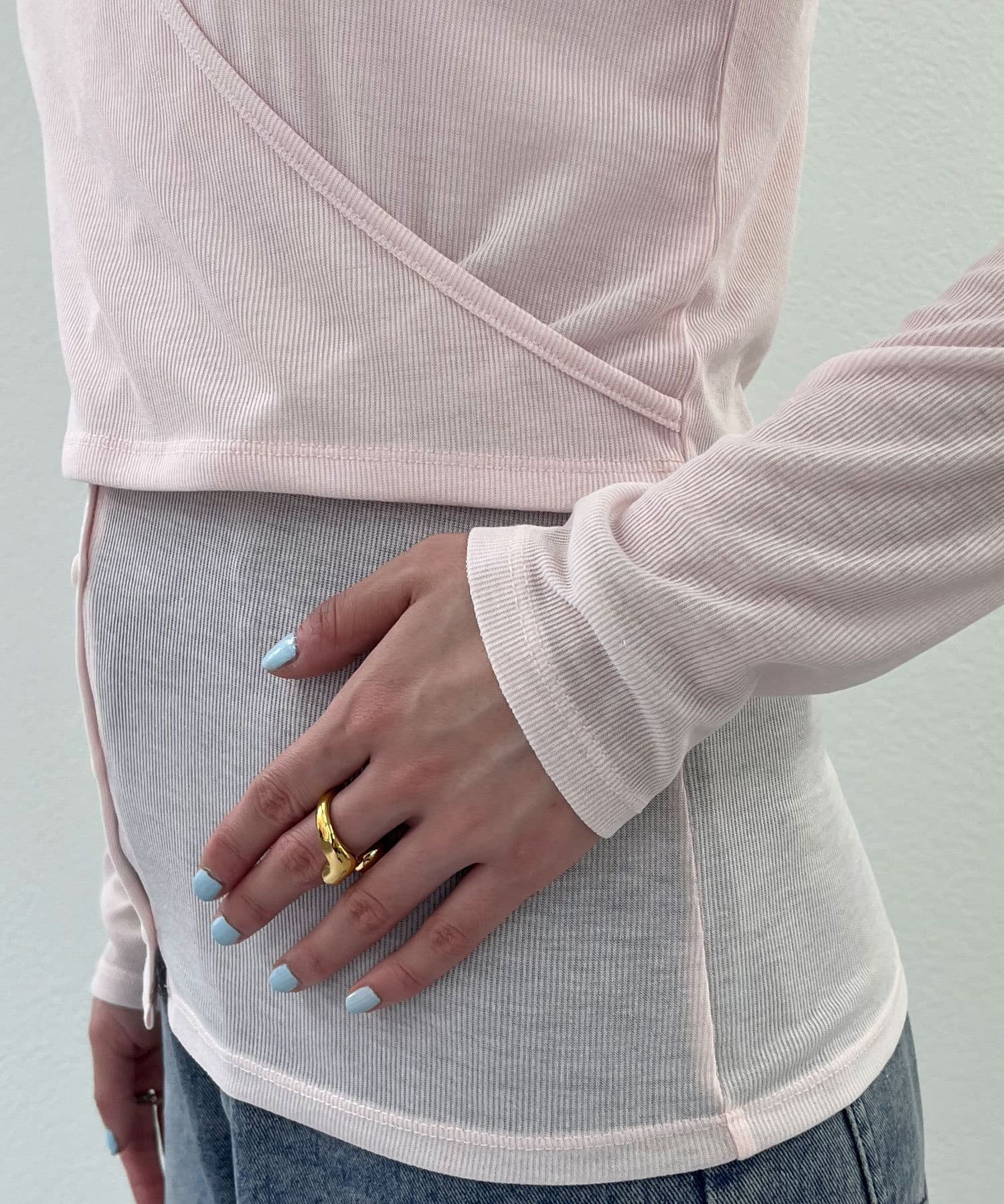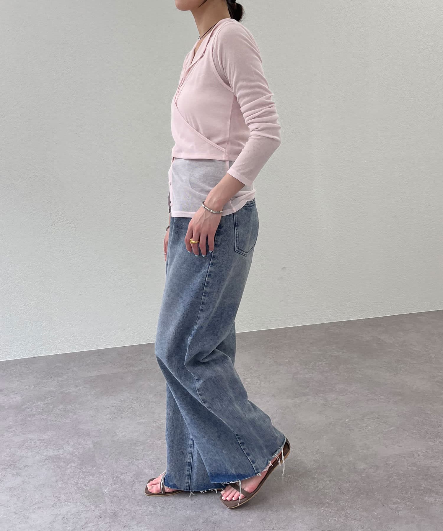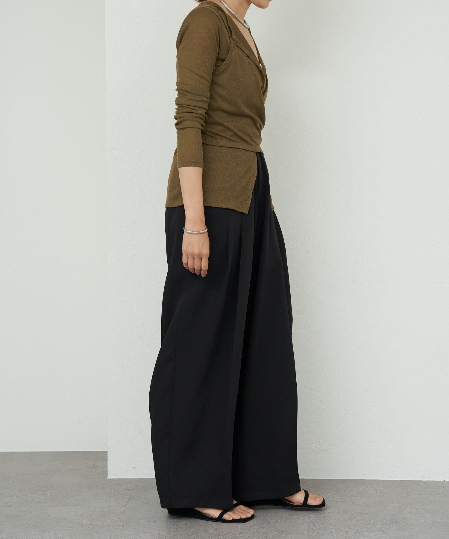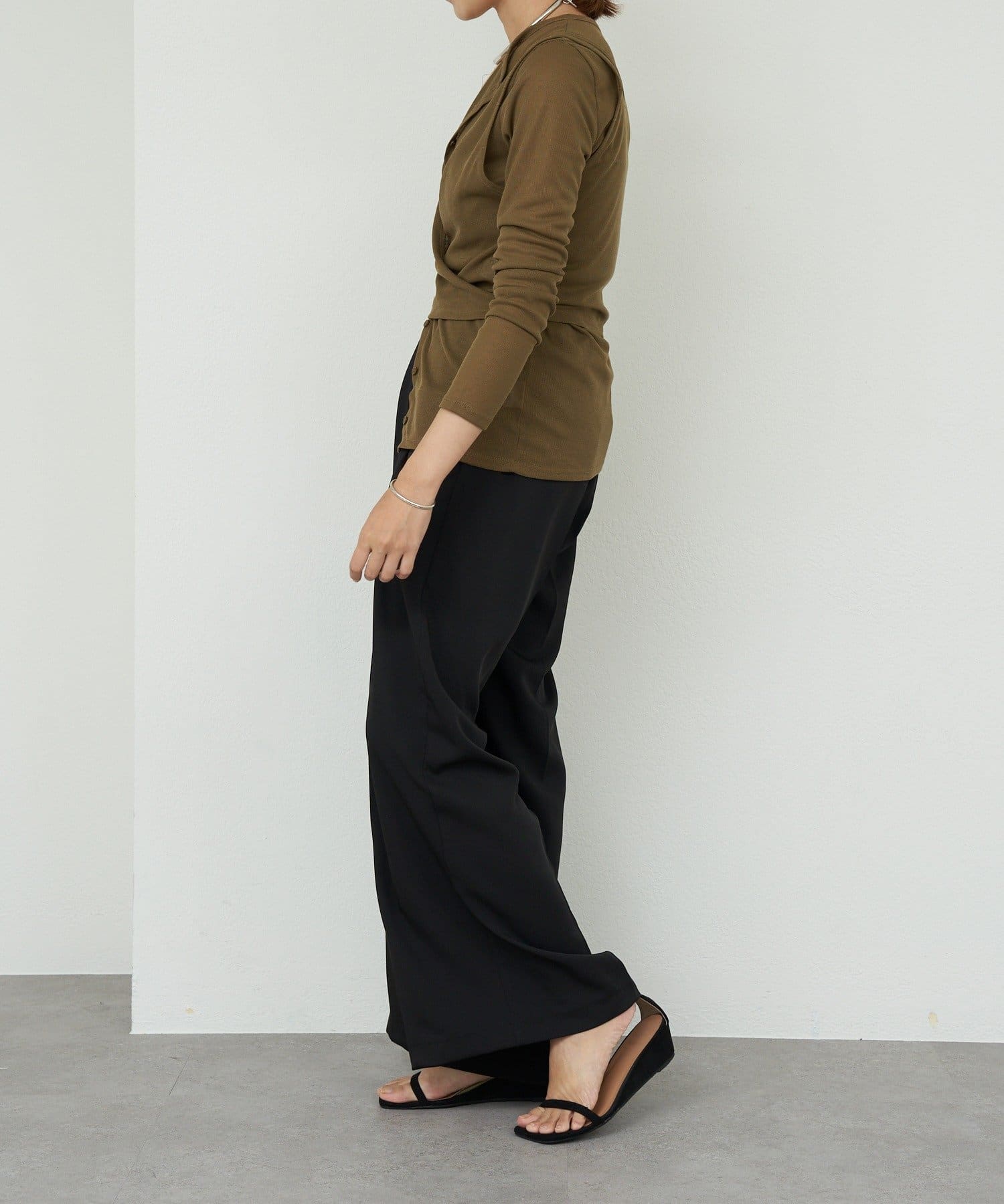 カーディガンのボタンを少し開けることで