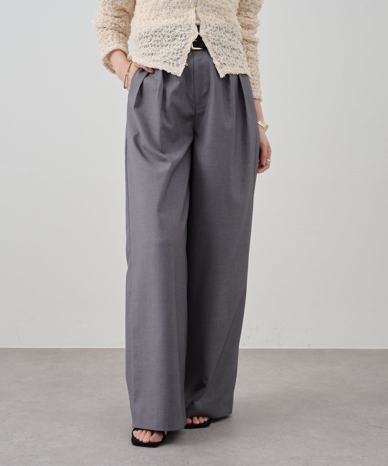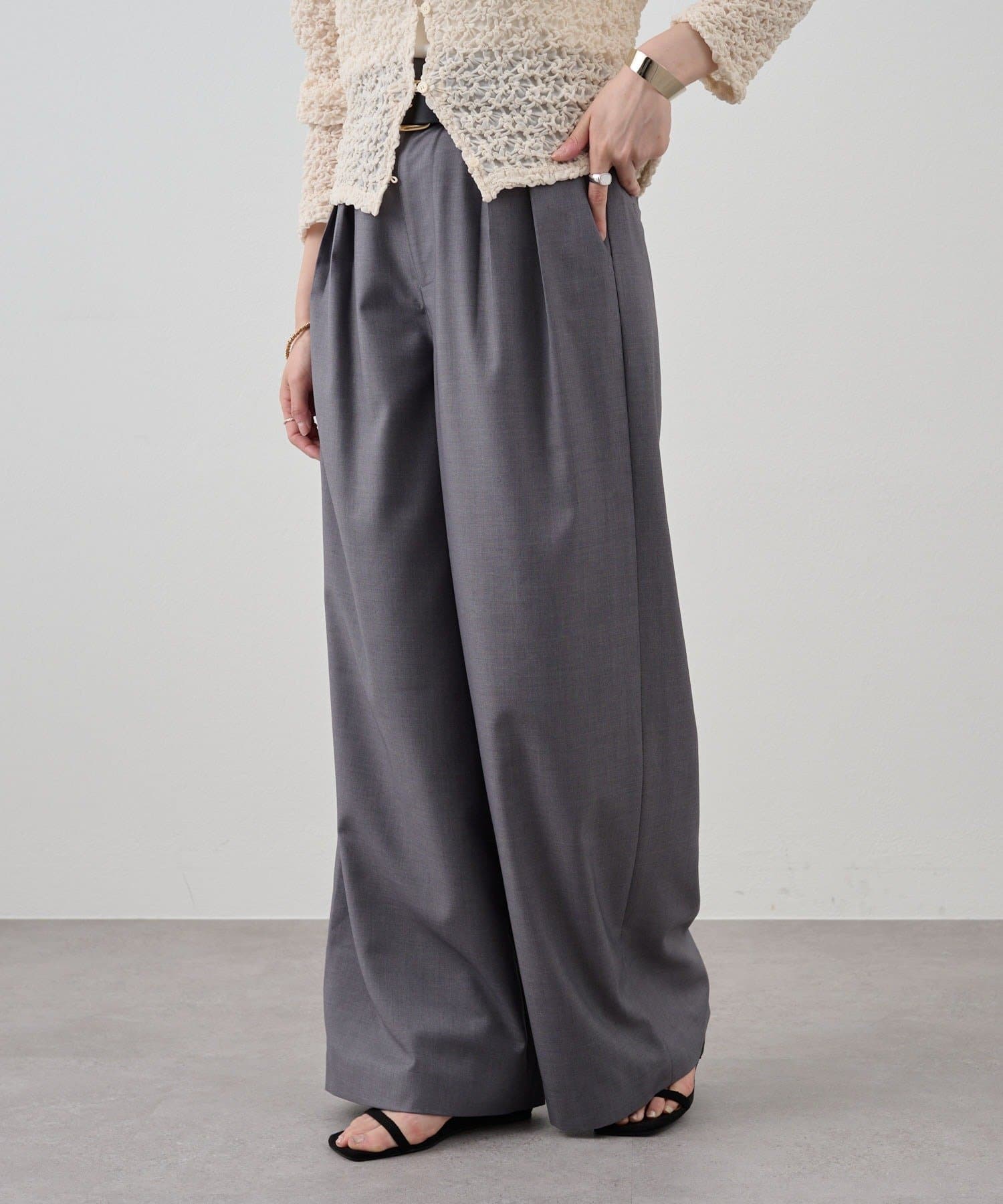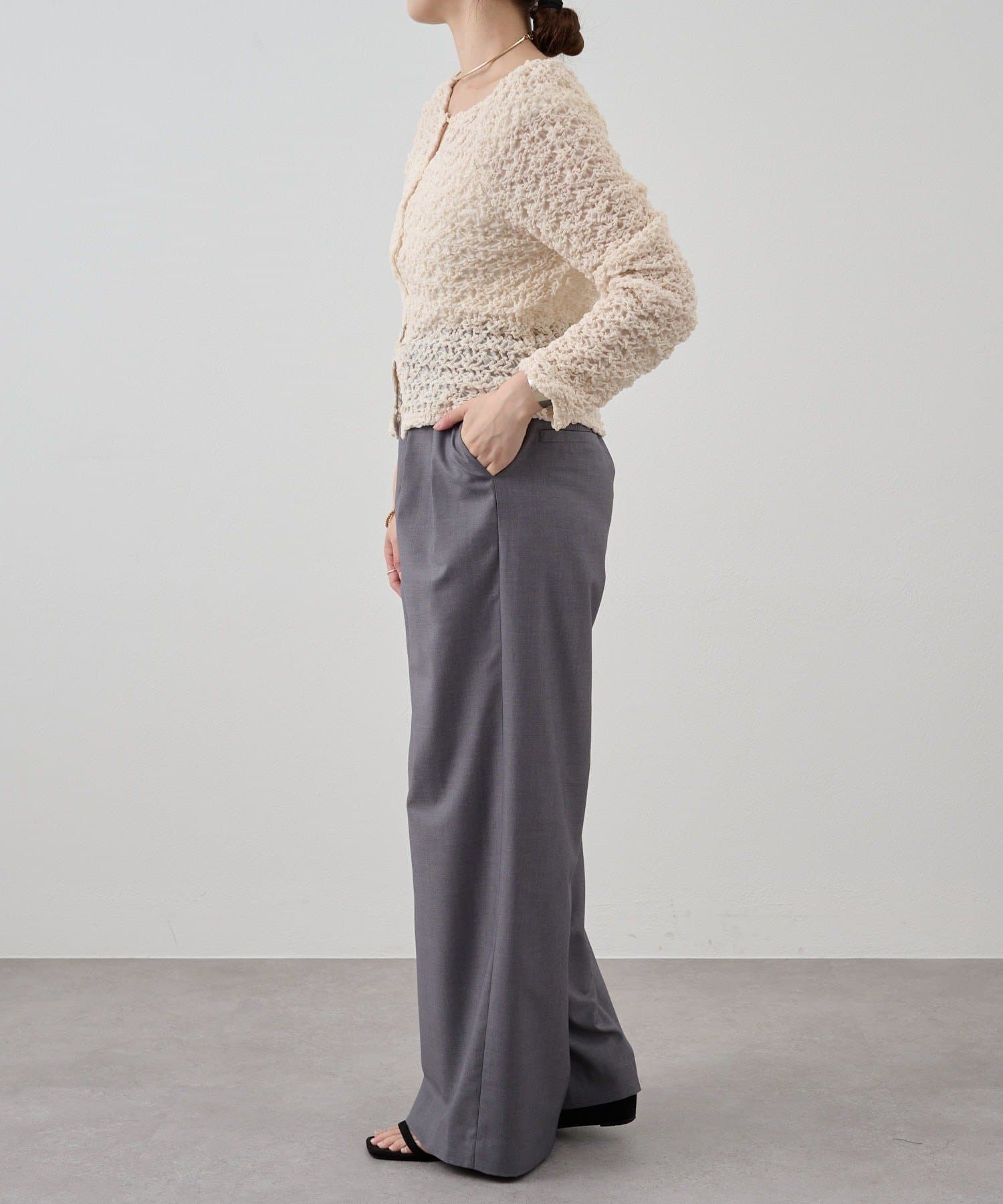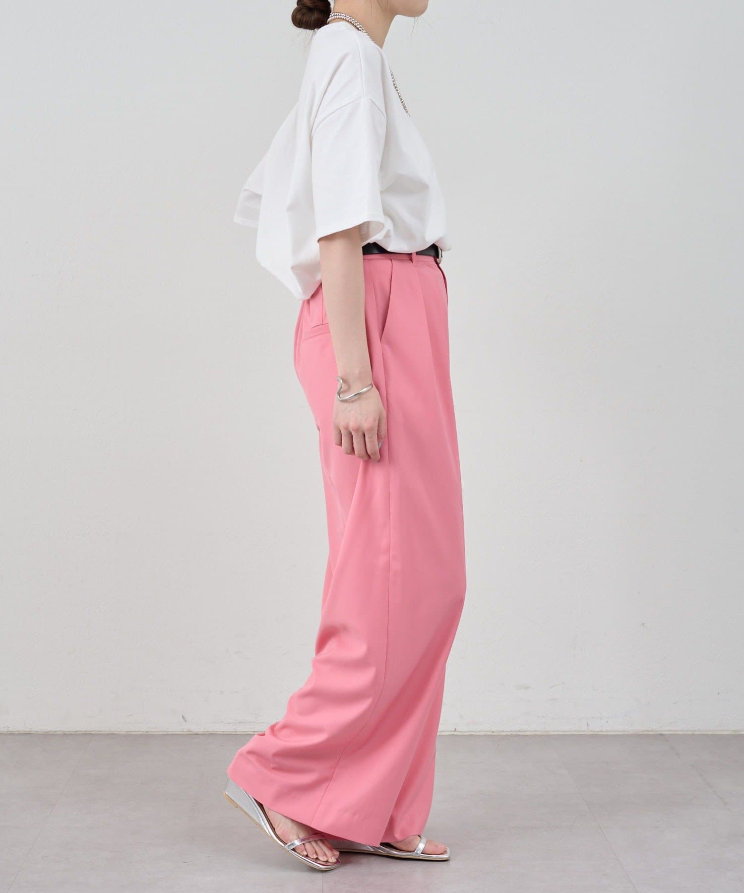 すっきりとしたセミワイドシルエットと、ラフなトップスが多くなる時期に合わせて