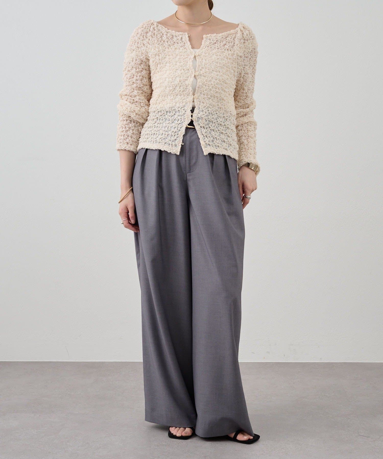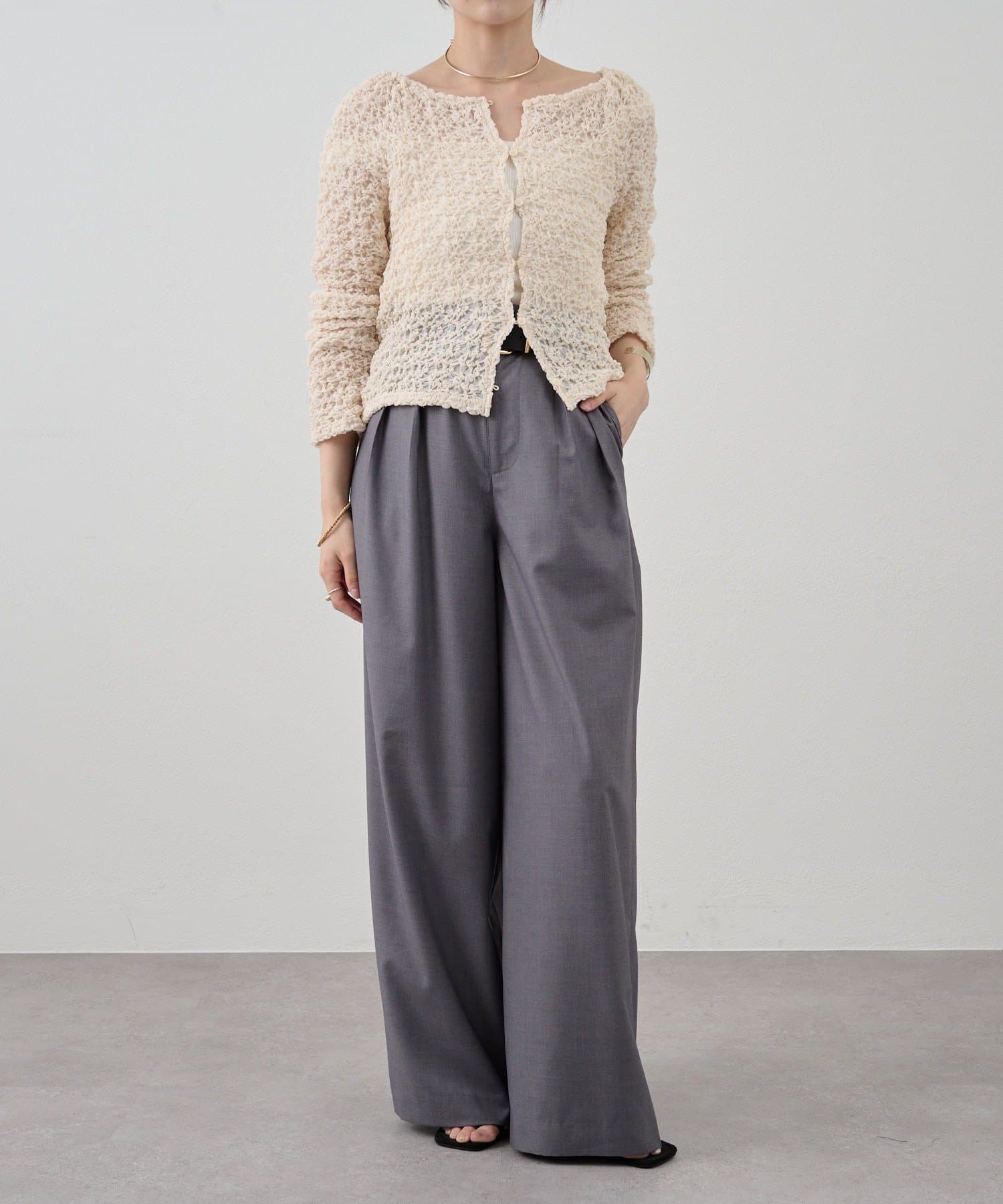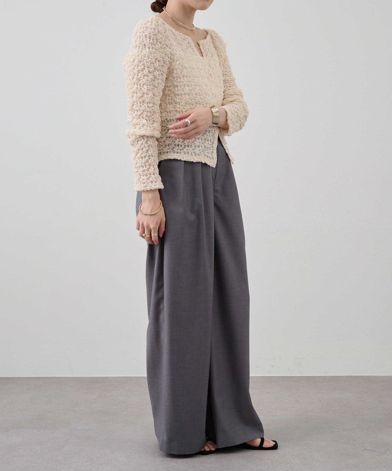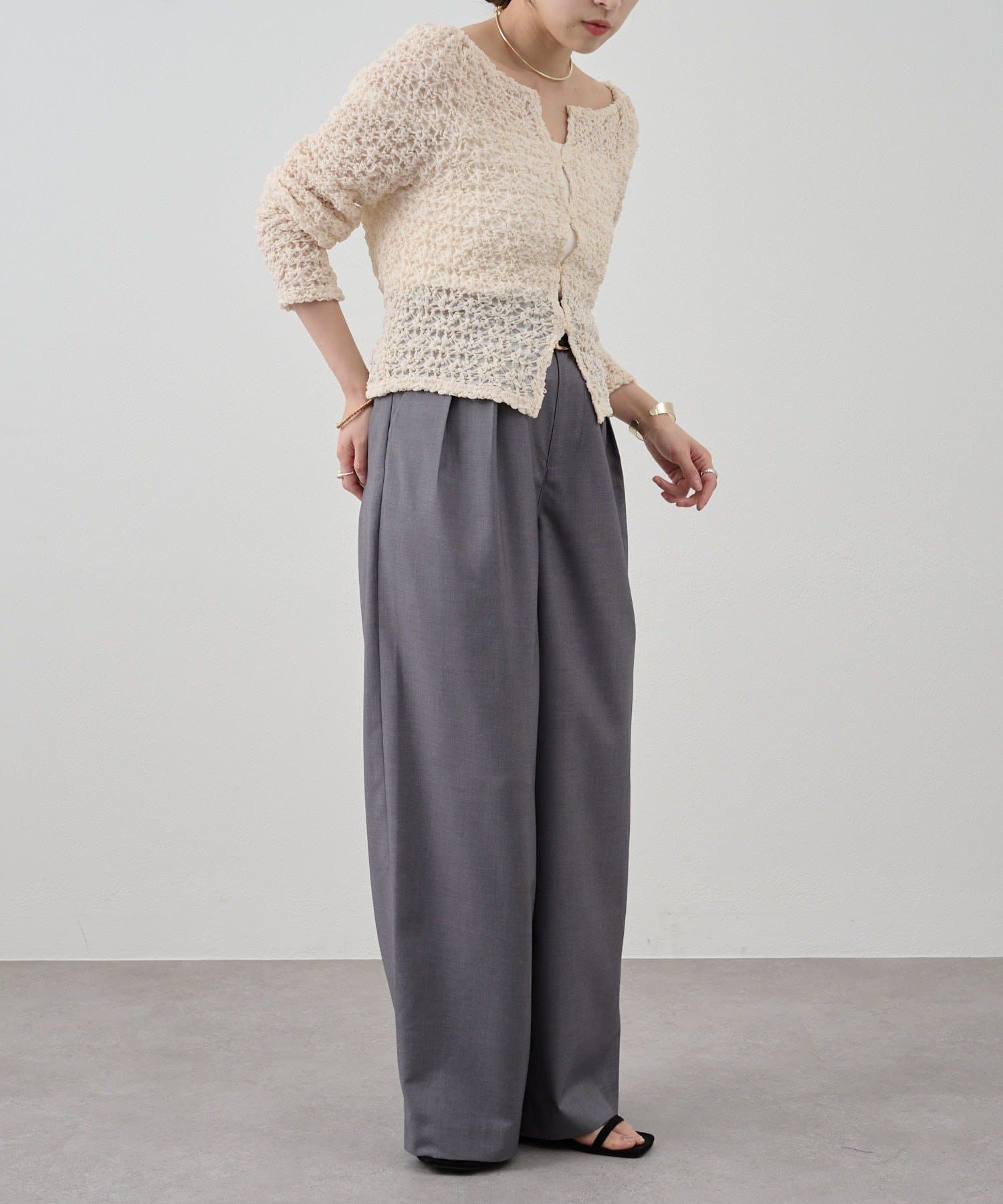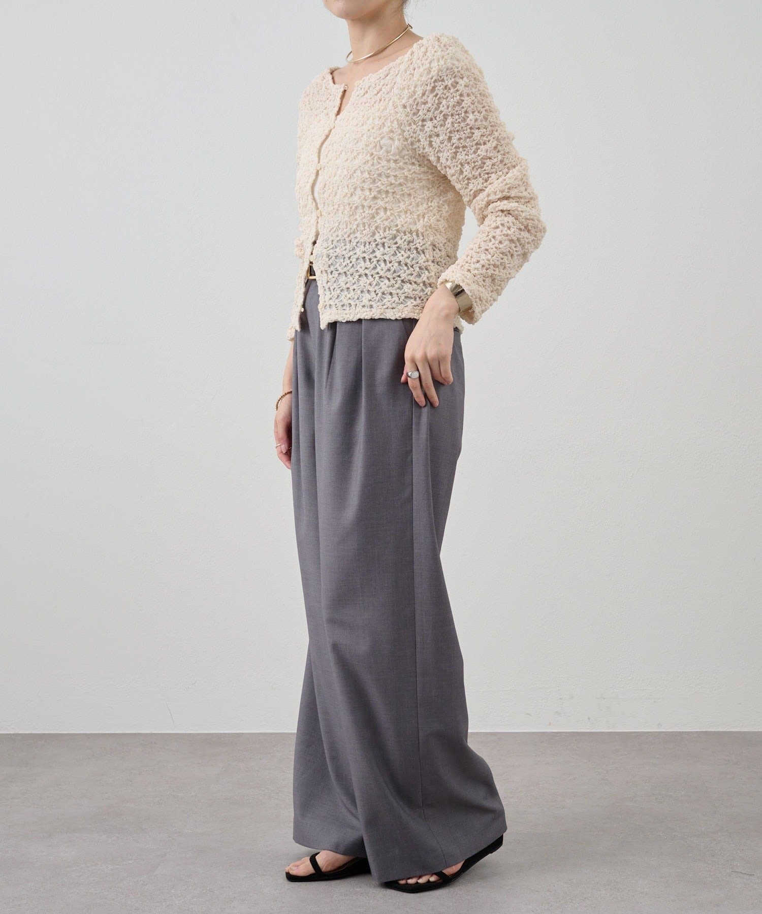 すっきりとしたセミワイドシルエットと、ラフなトップスが多くなる時期に合わせて