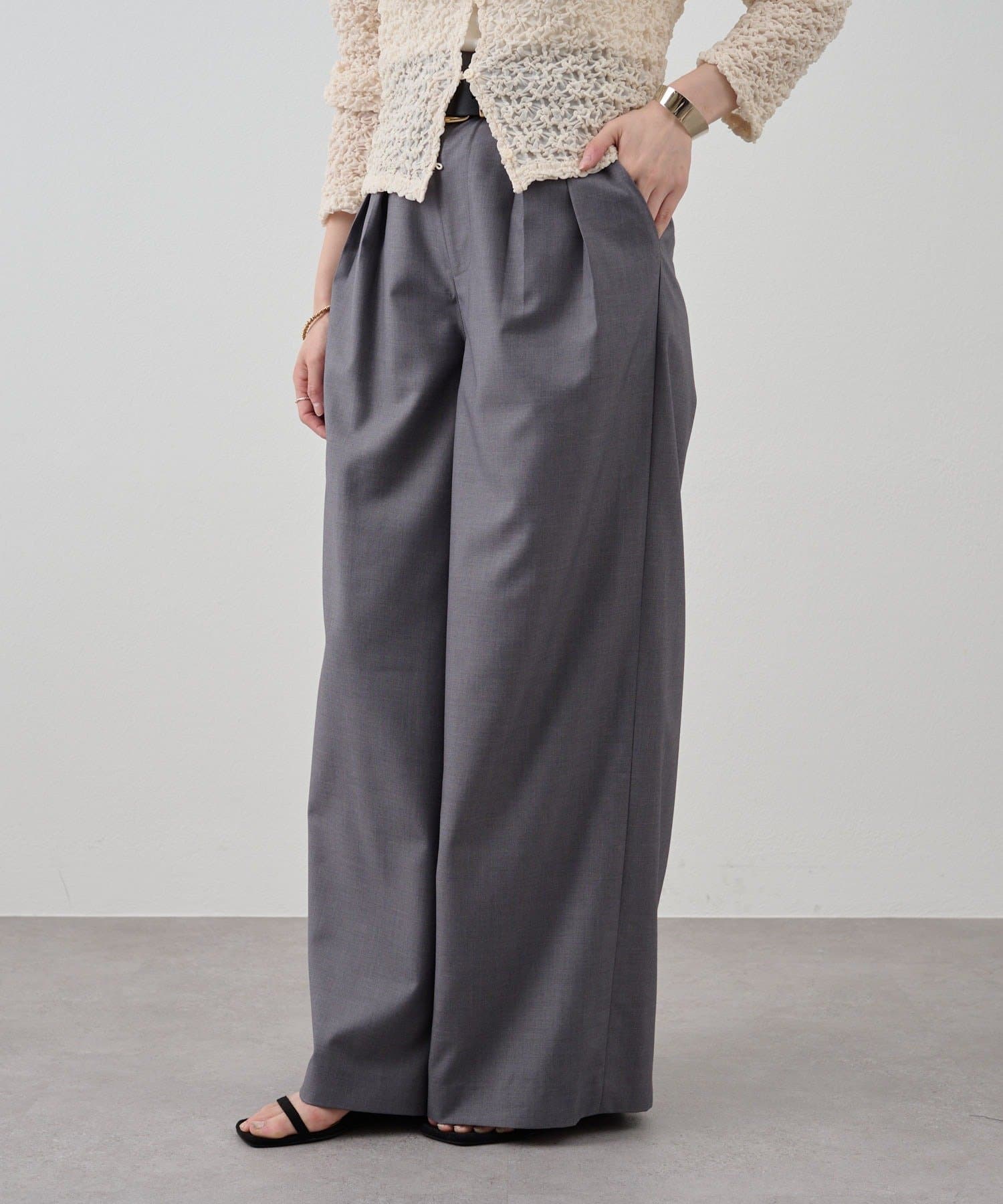 タックが入ることで太もも周りは程よくゆとりがあり履き心地も抜群。
