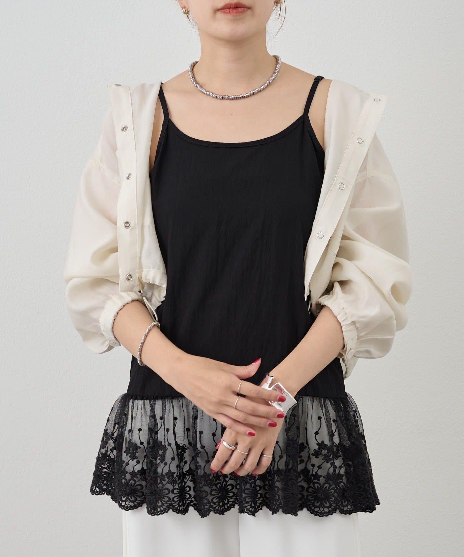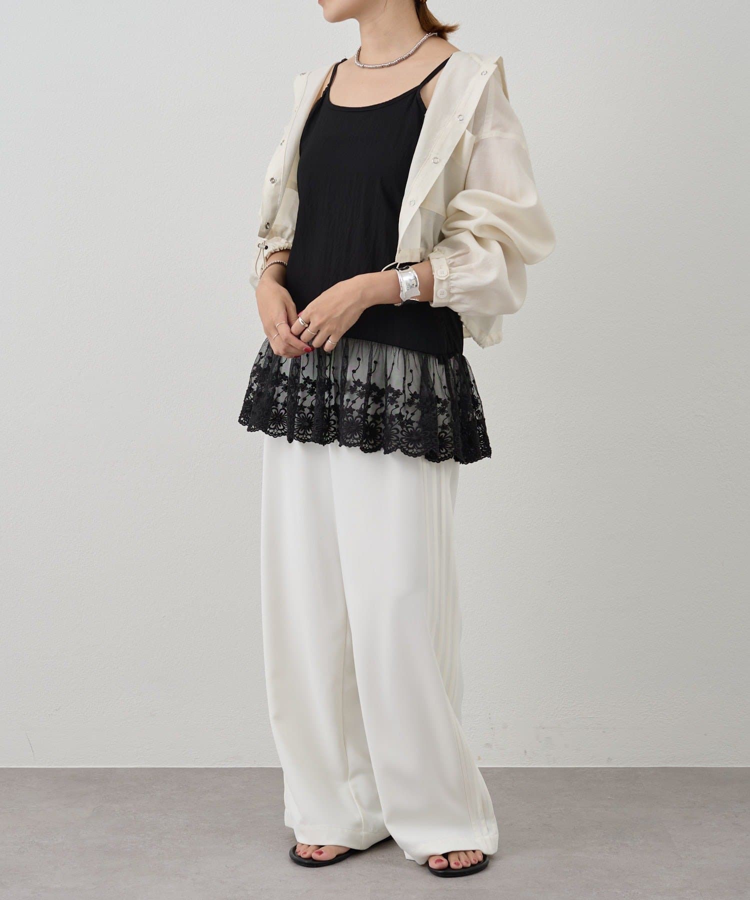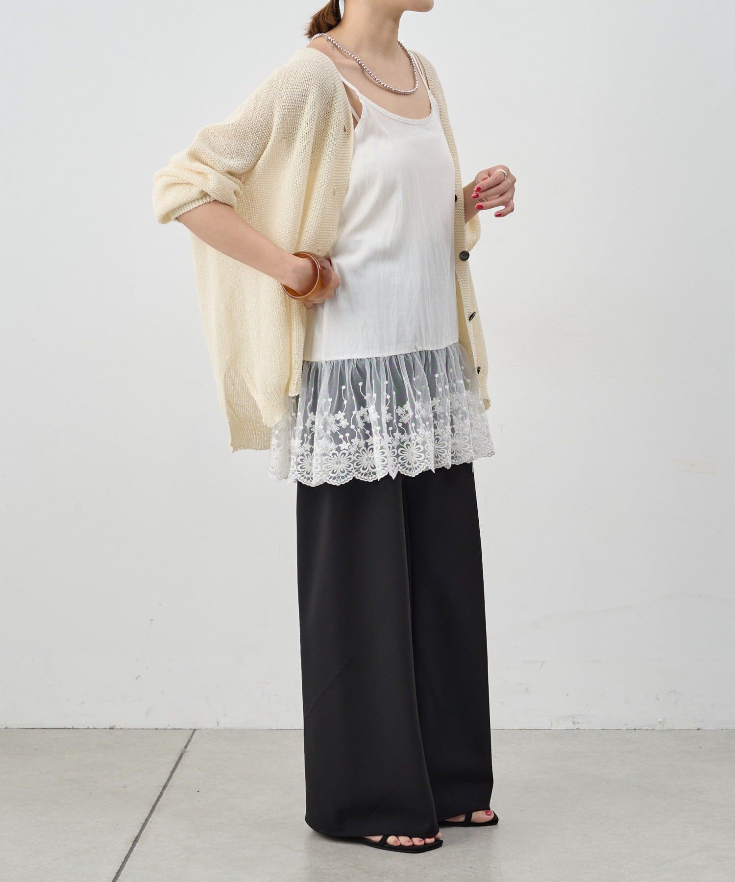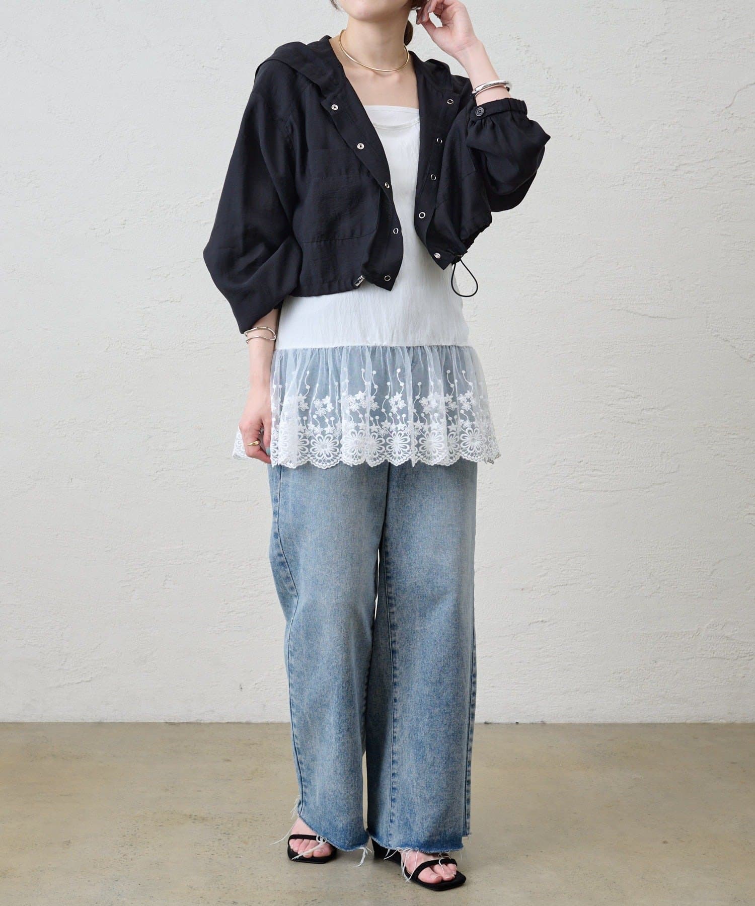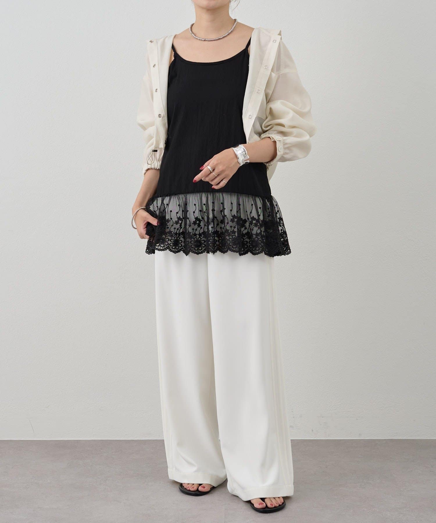 長めの丈がボトムスと被り、レースがスタイリングのアクセントになってくれます!