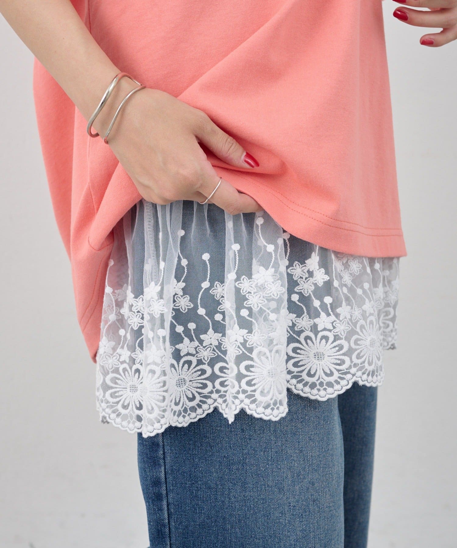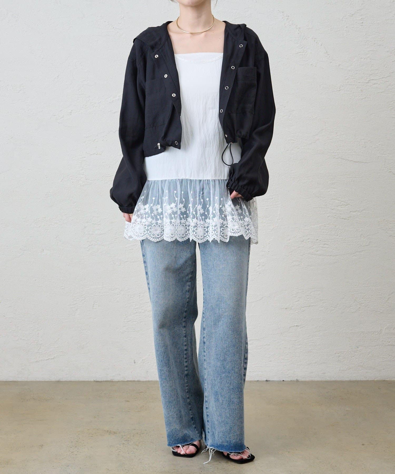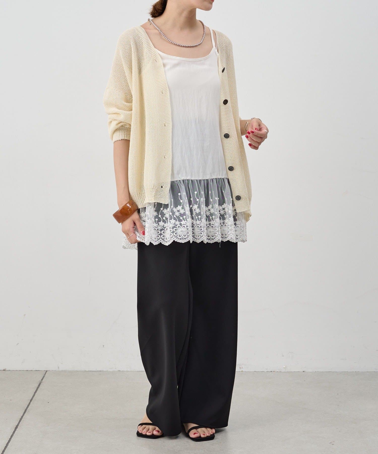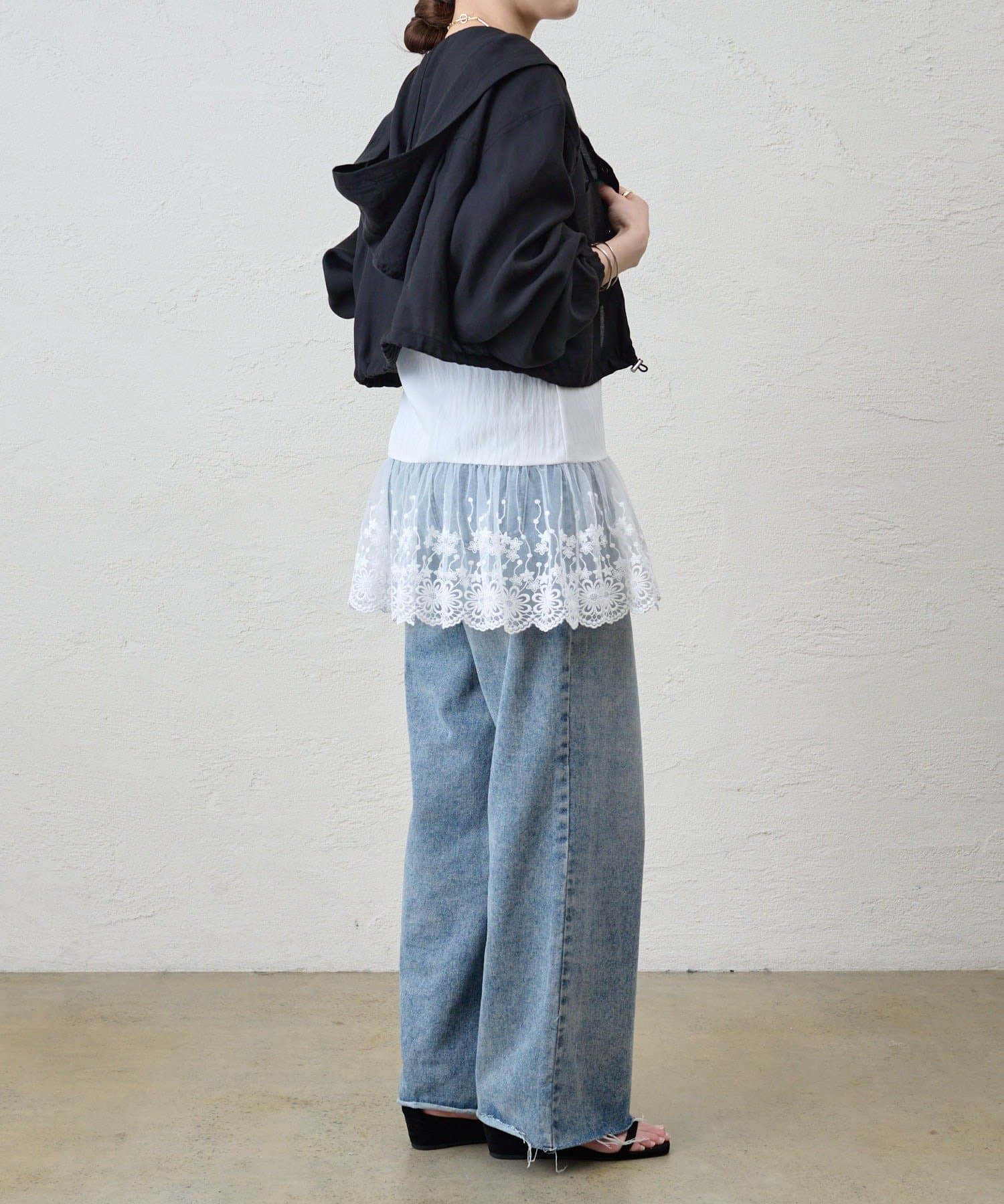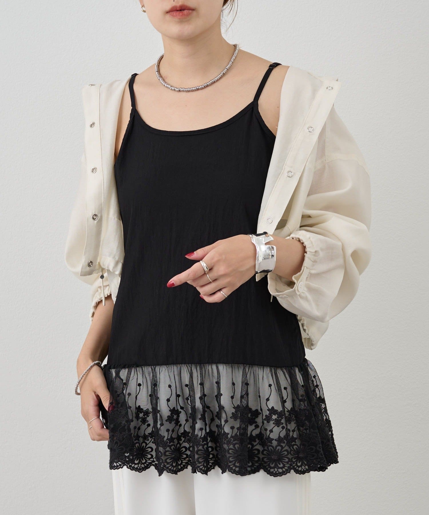 長めの丈がボトムスと被り、レースがスタイリングのアクセントになってくれます!