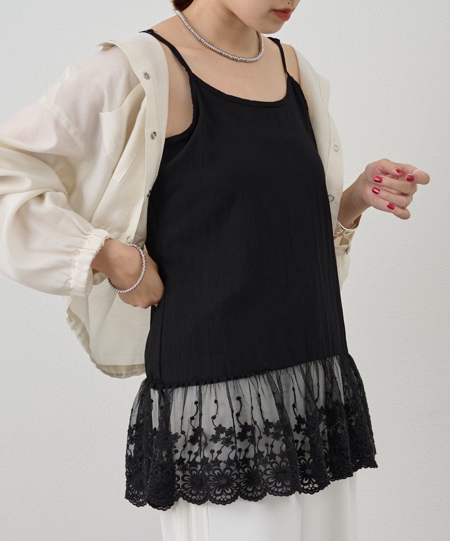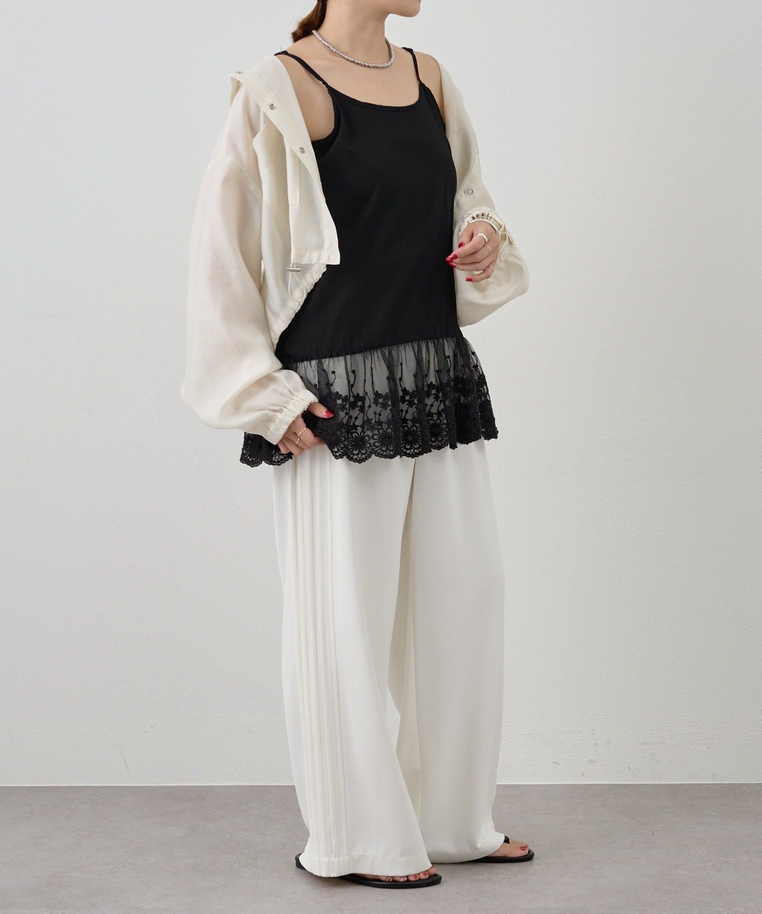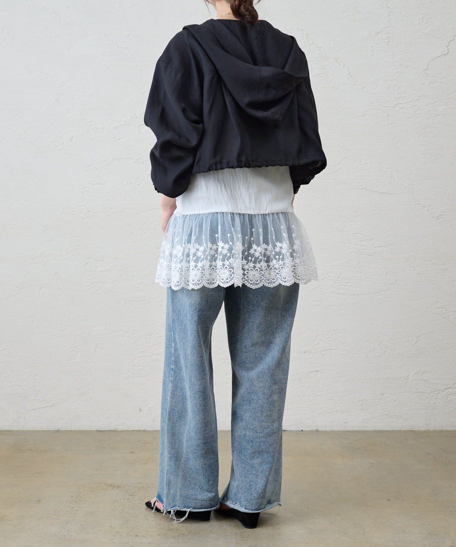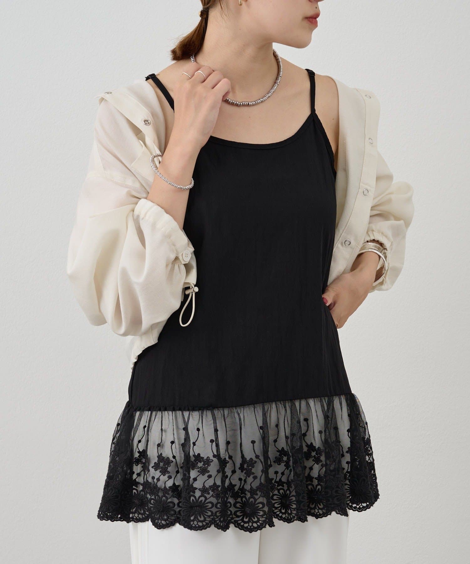 長めの丈がボトムスと被り、レースがスタイリングのアクセントになってくれます!