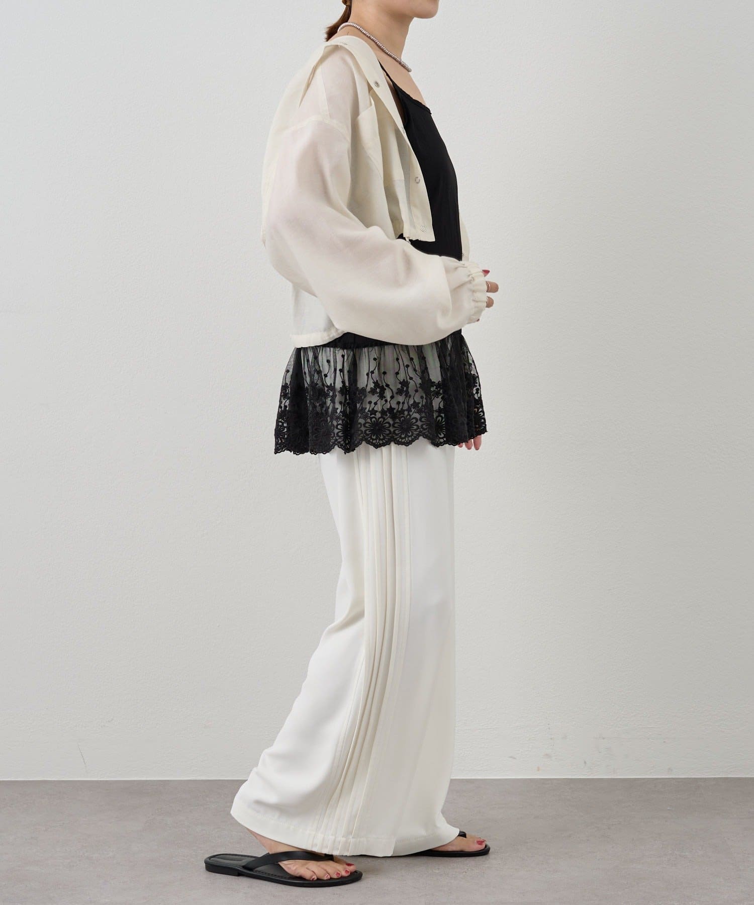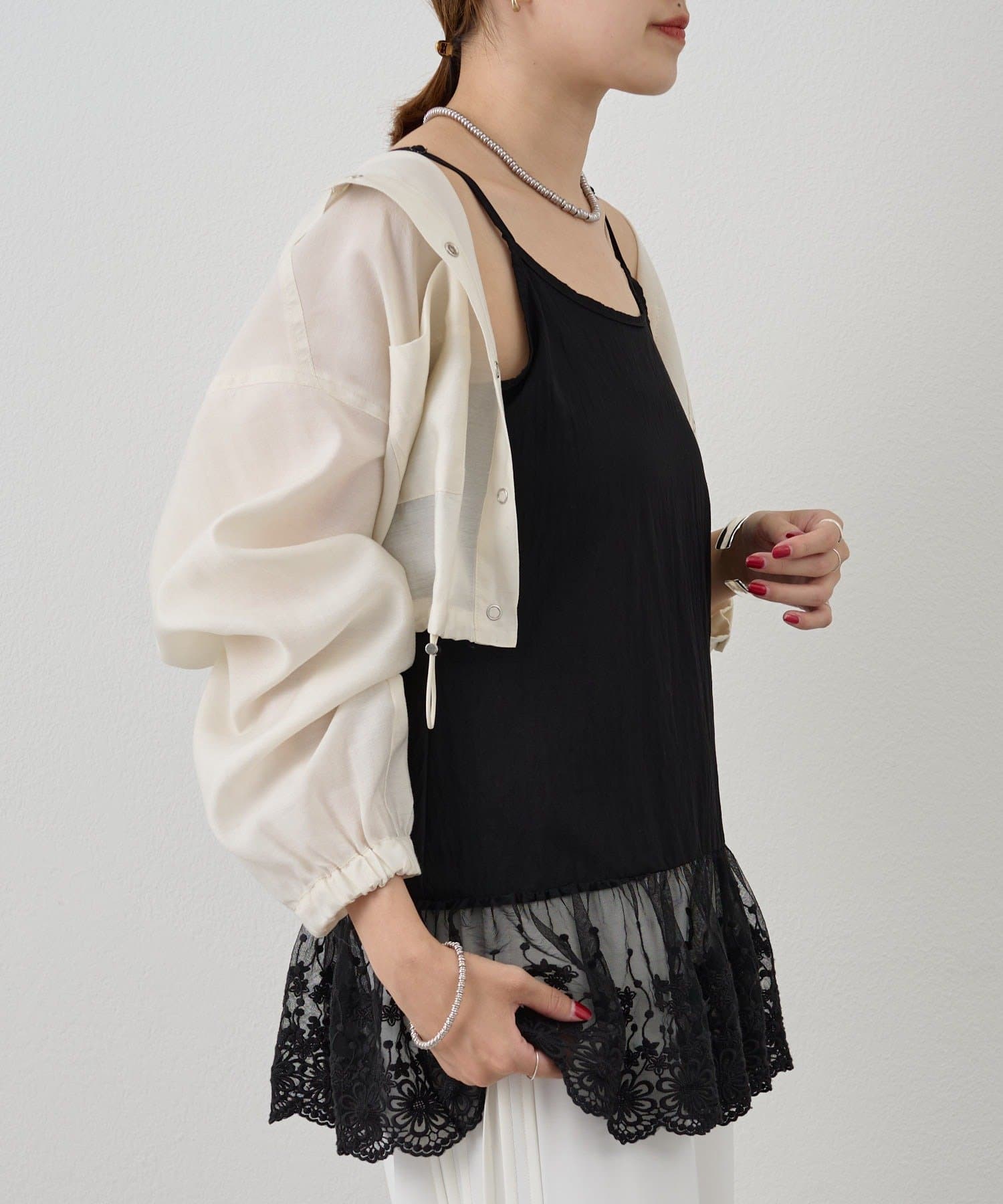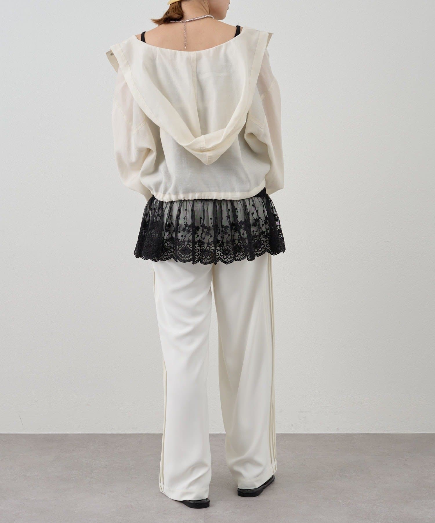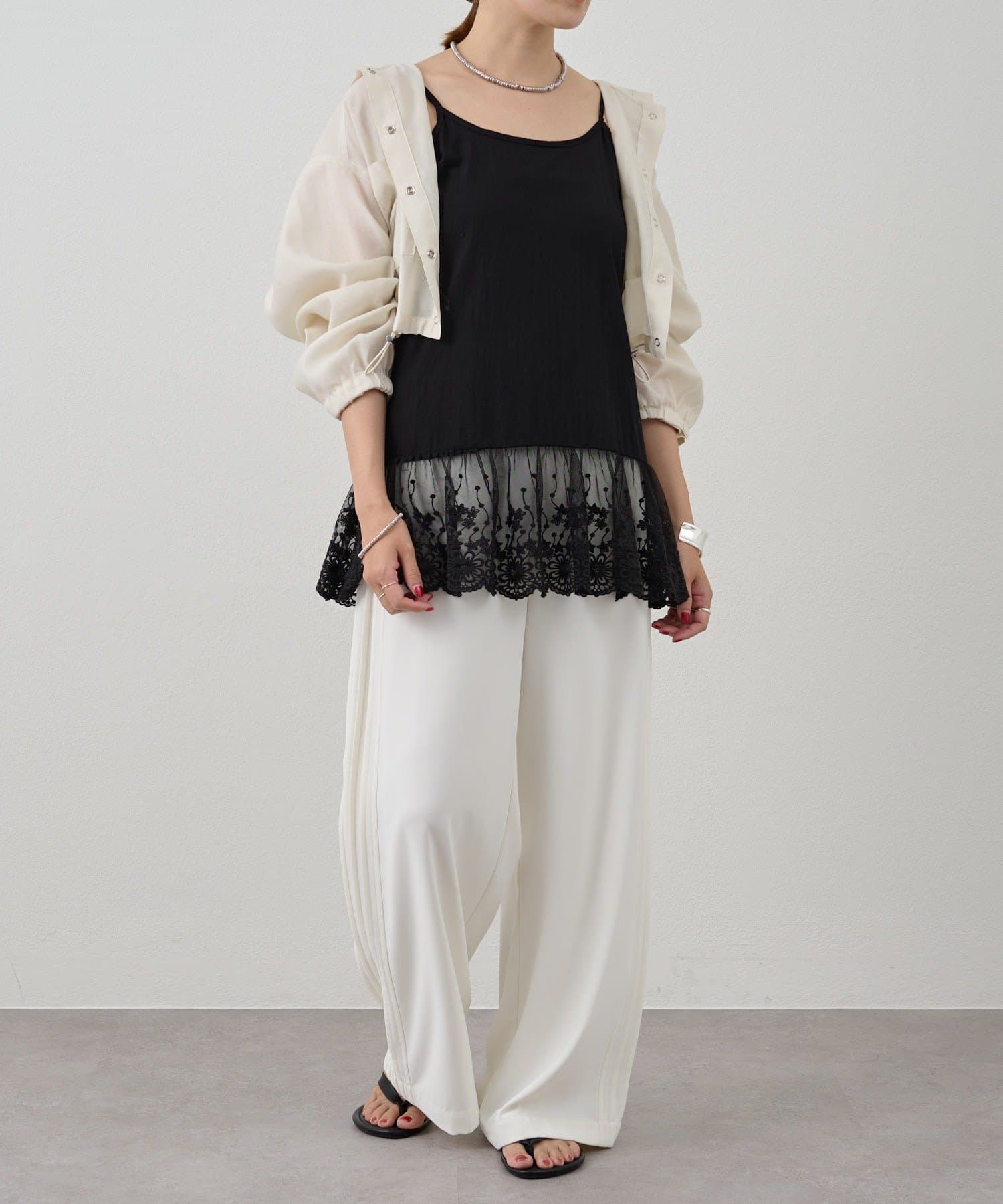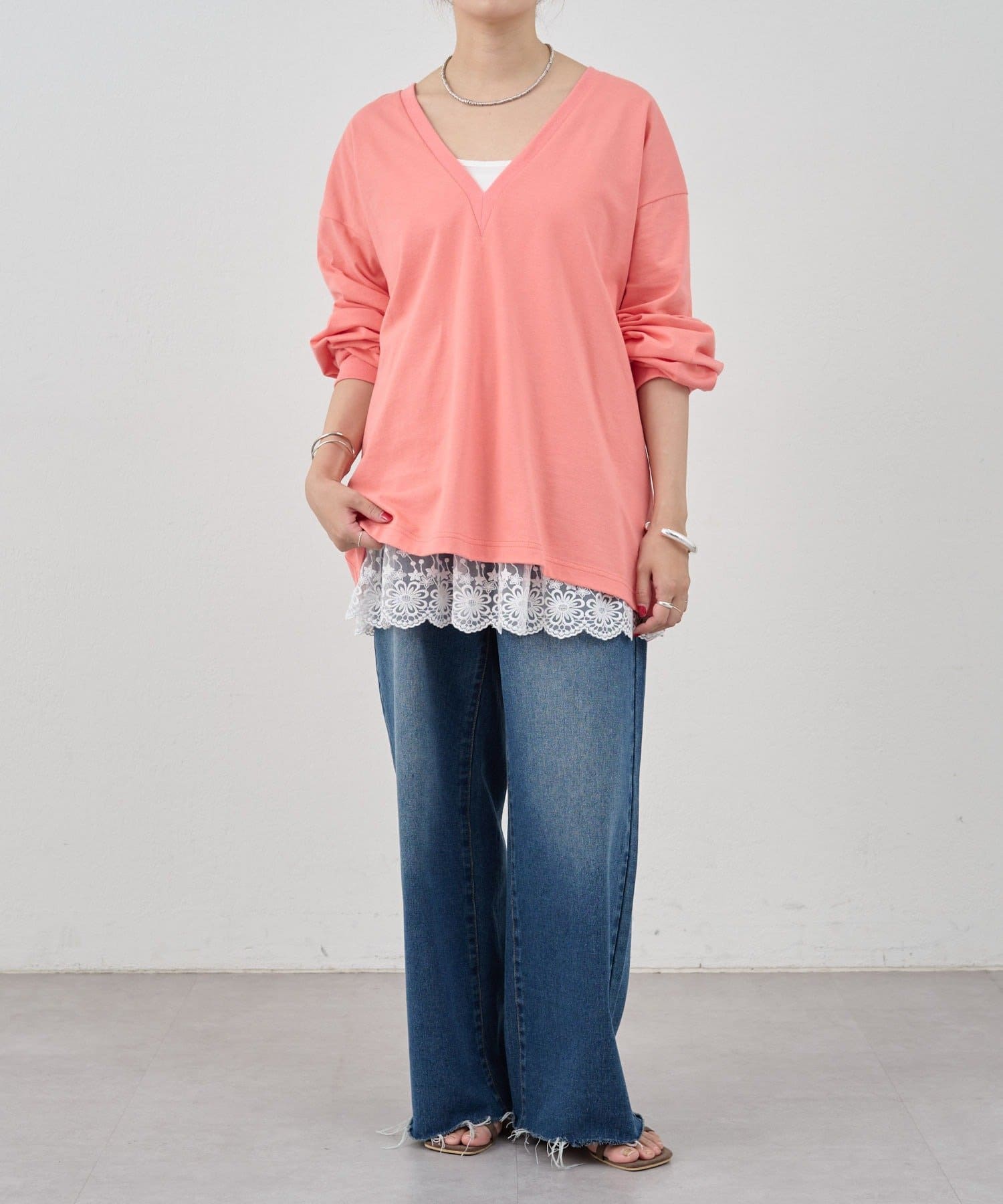 長めの丈がボトムスと被り、レースがスタイリングのアクセントになってくれます!