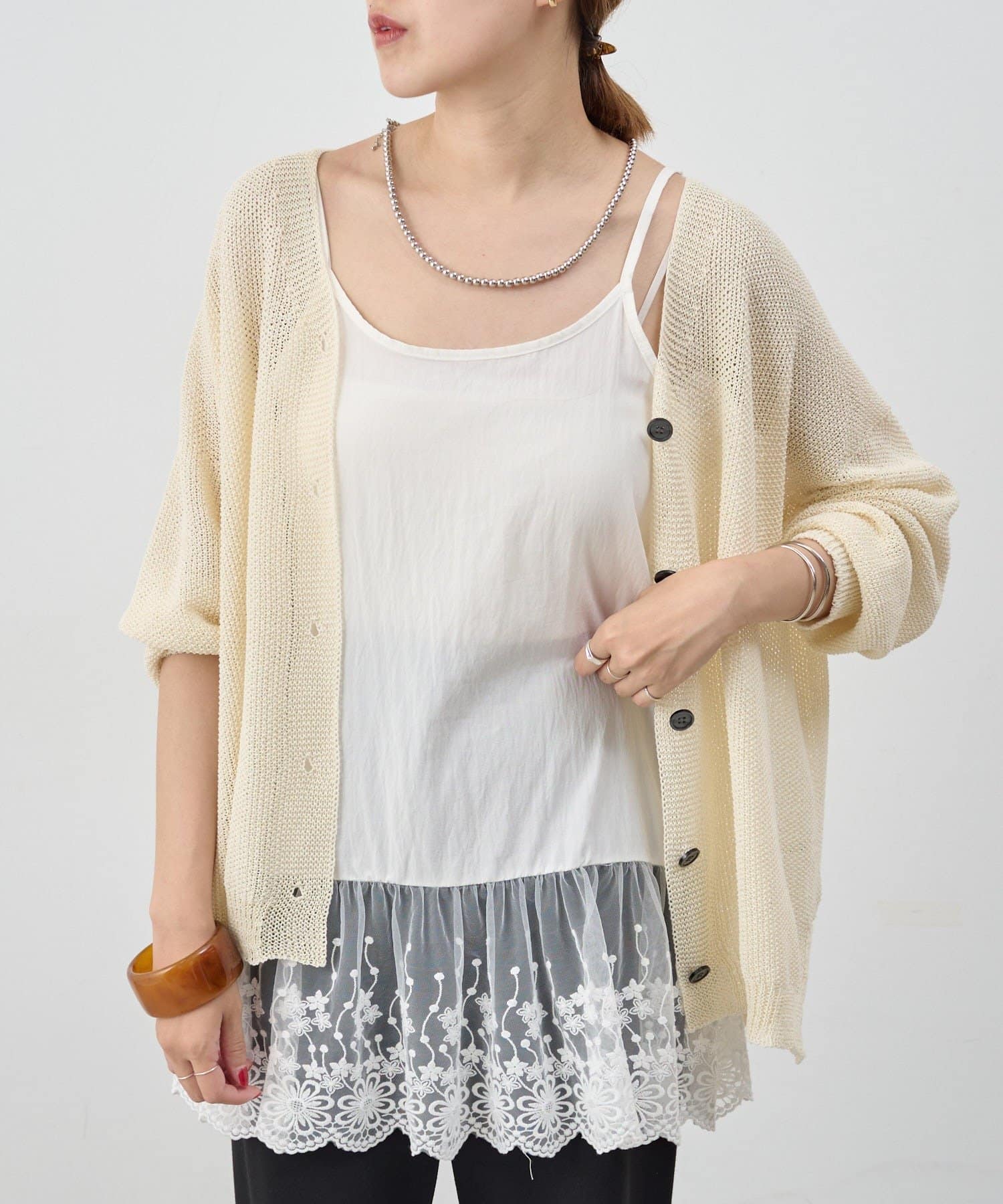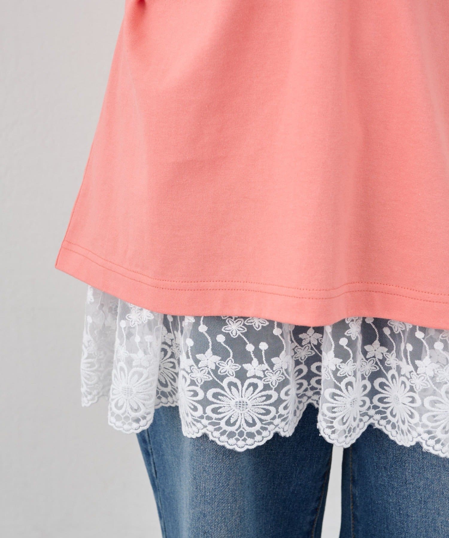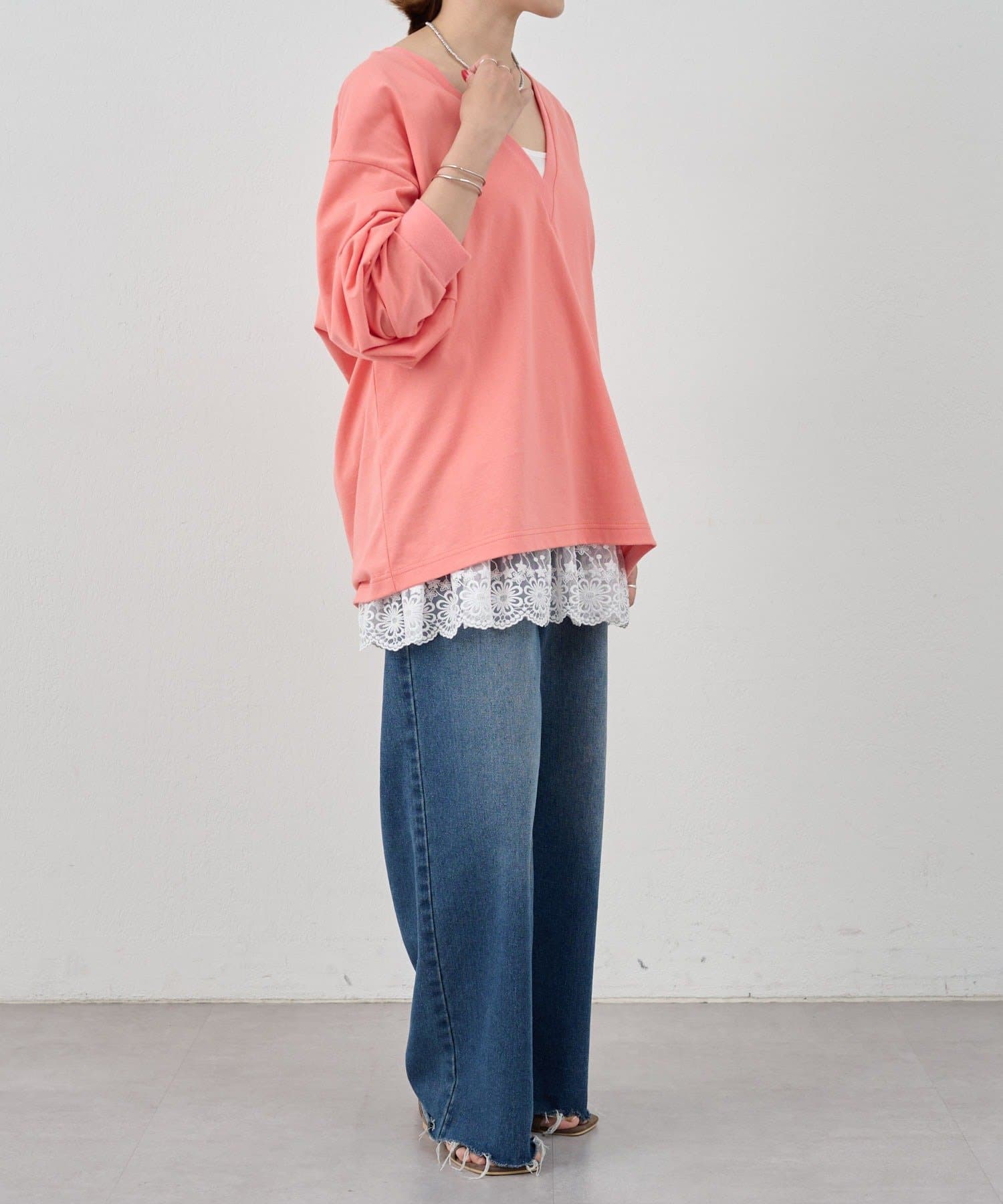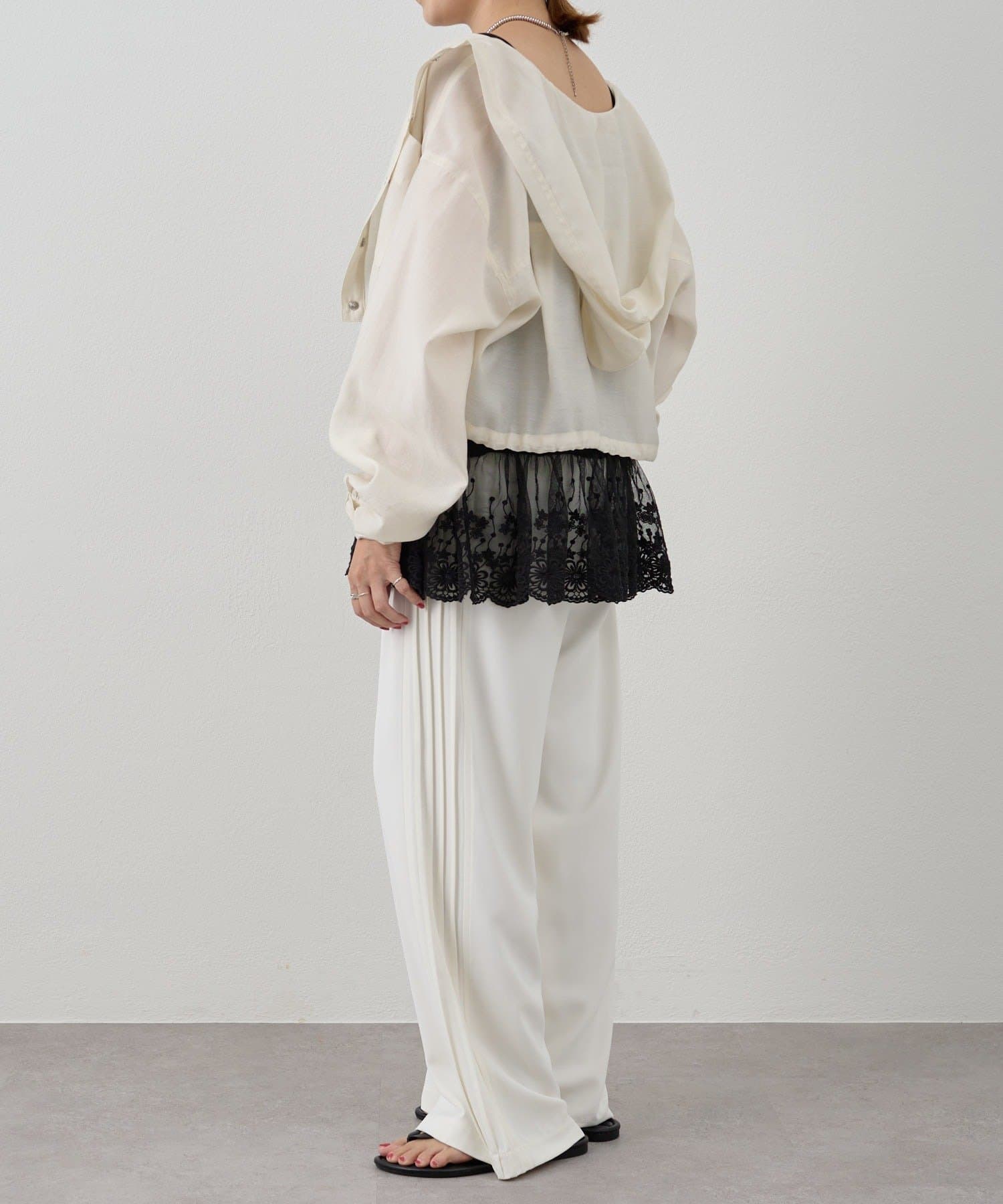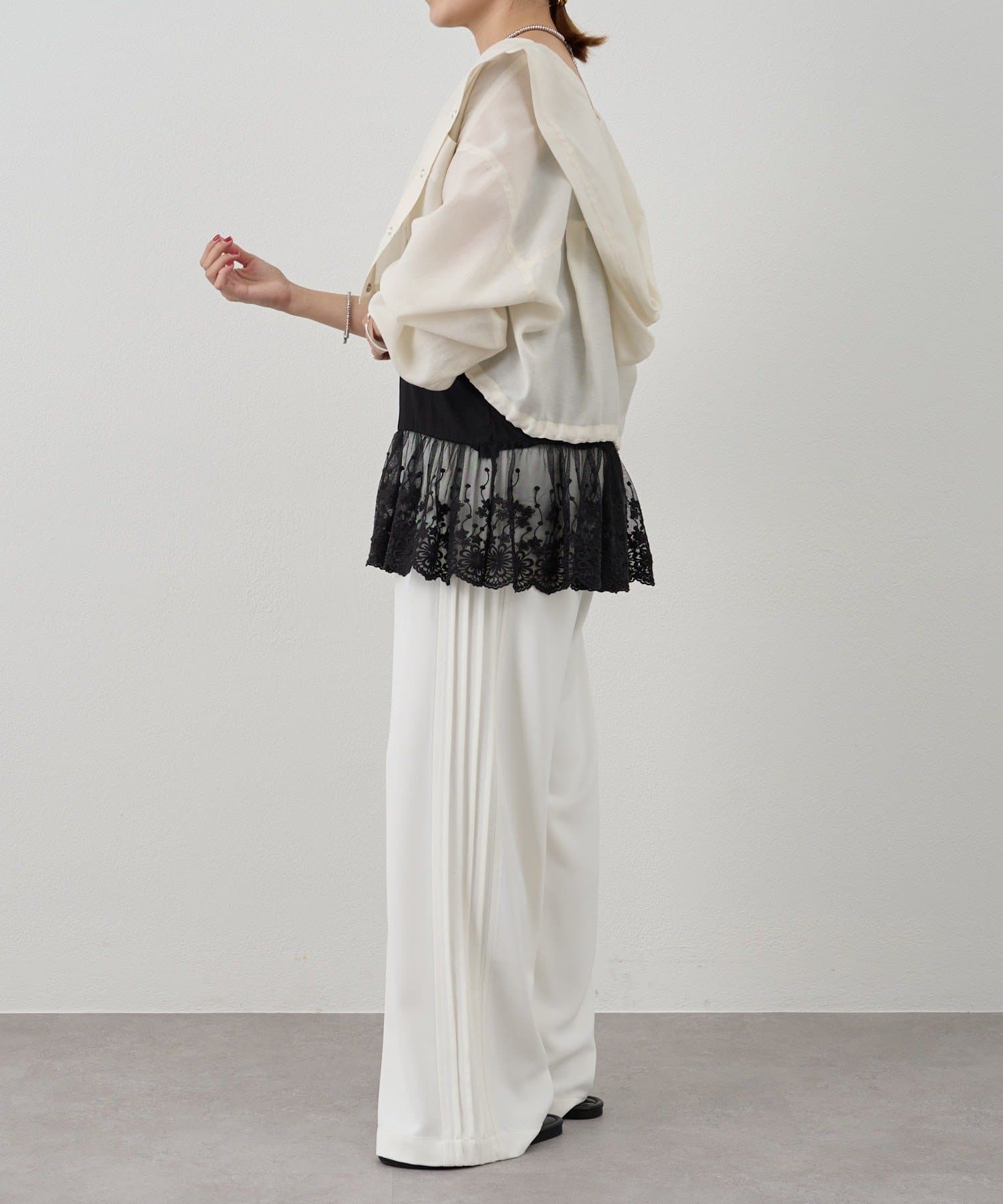 長めの丈がボトムスと被り、レースがスタイリングのアクセントになってくれます!