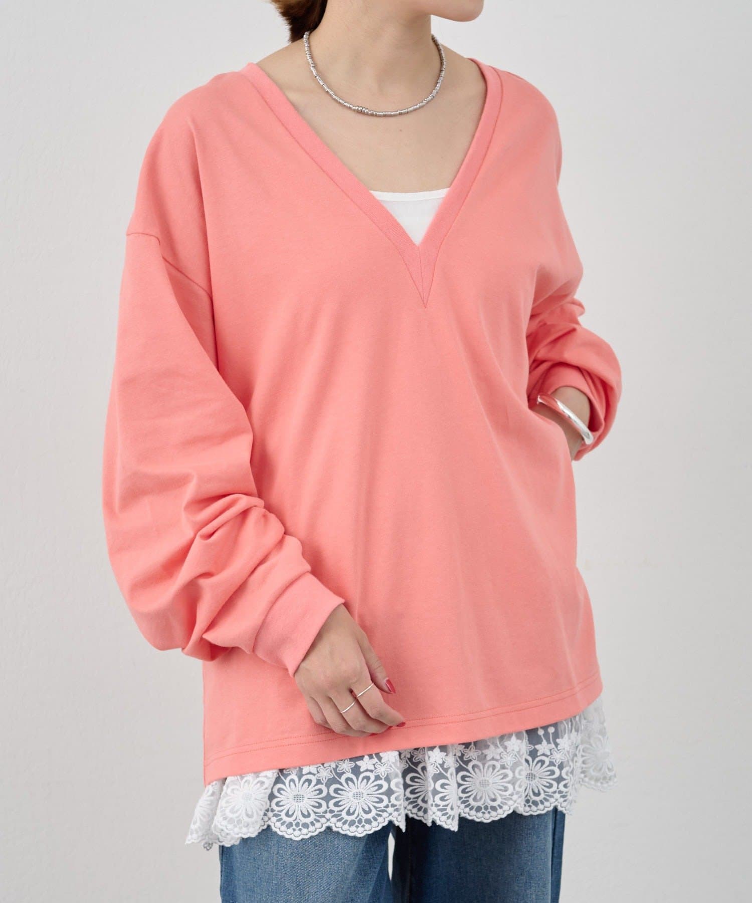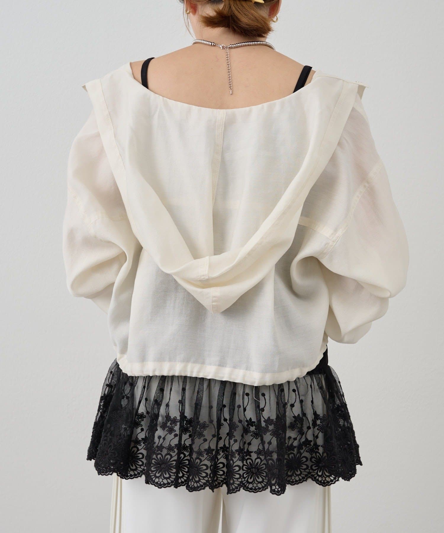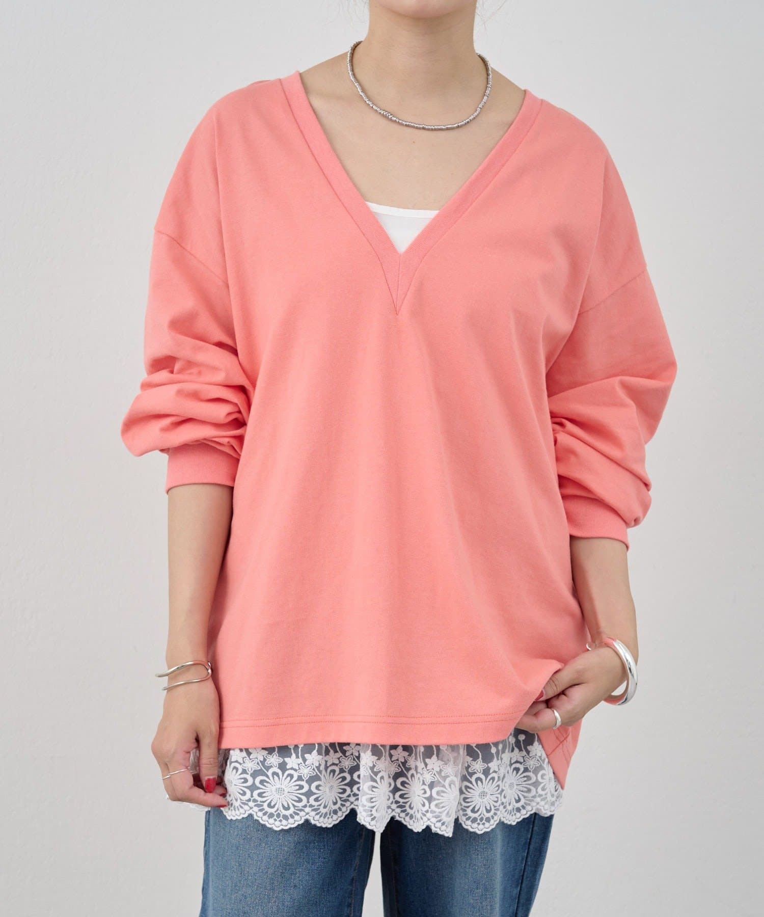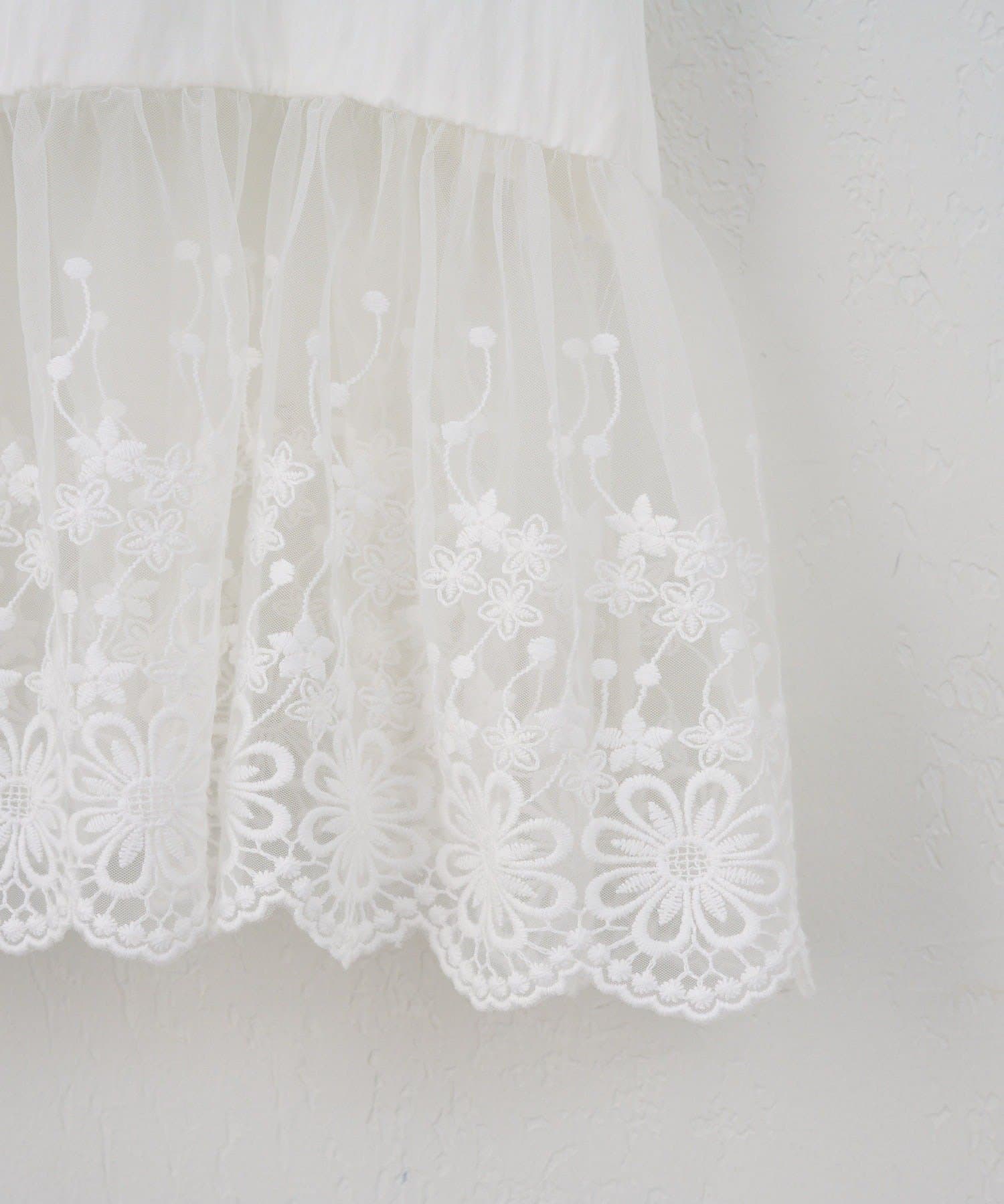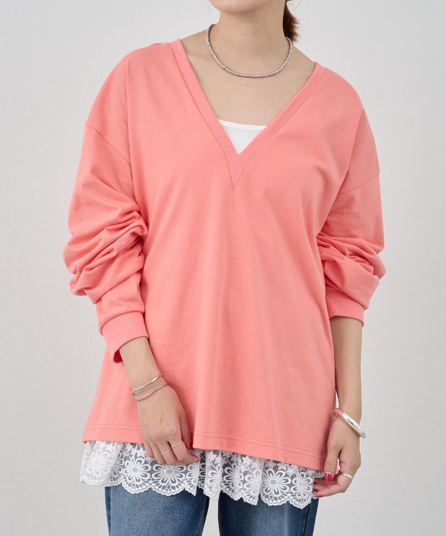 長めの丈がボトムスと被り、レースがスタイリングのアクセントになってくれます!