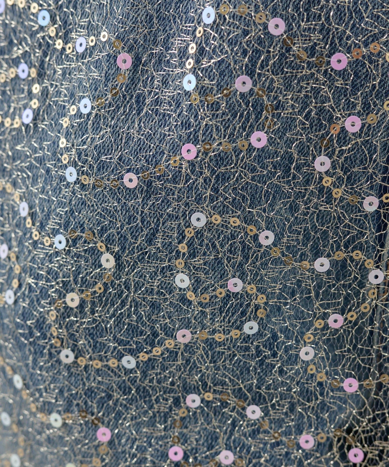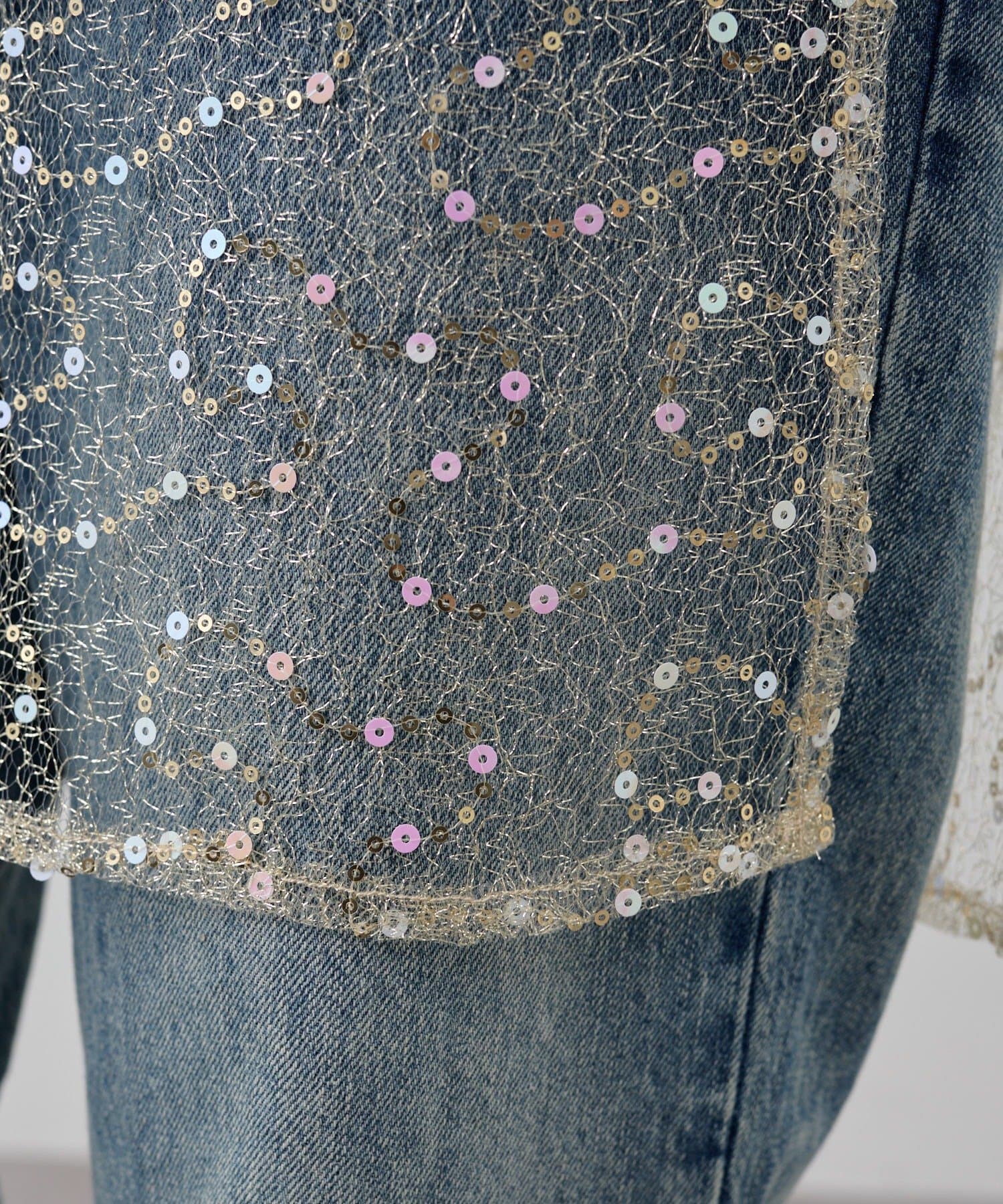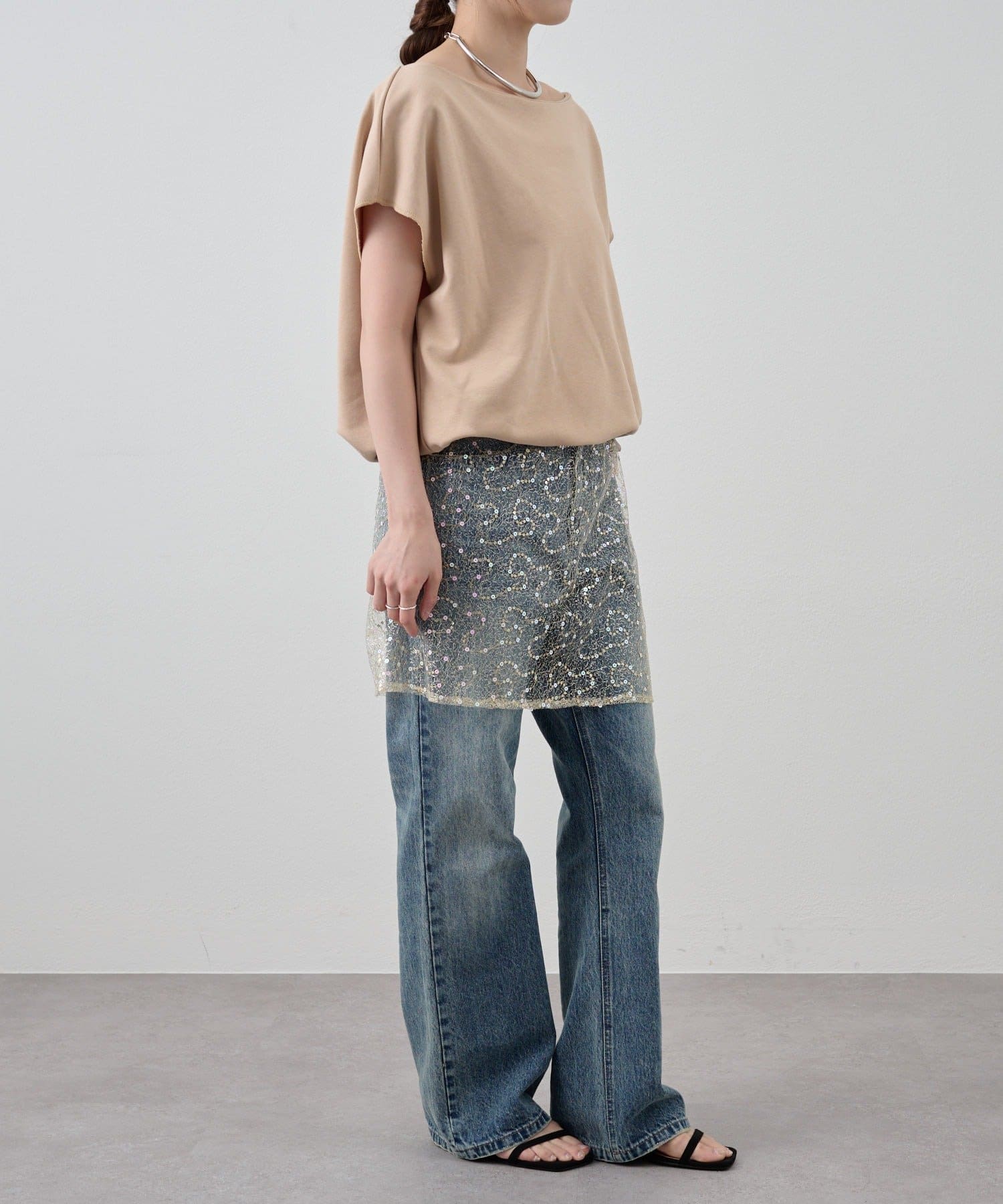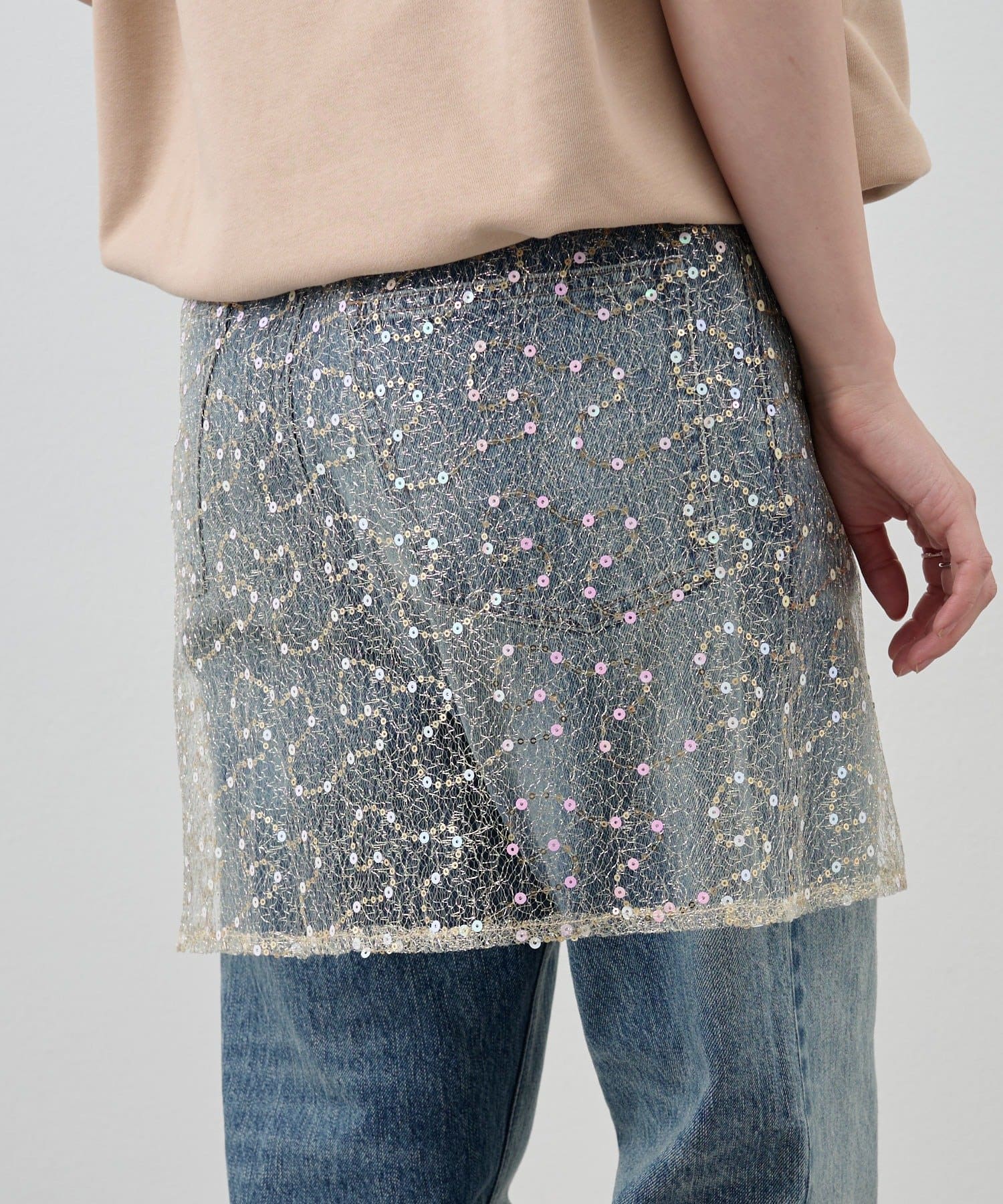 動く度にキラキラと輝くスパンコールがいつものコーデを