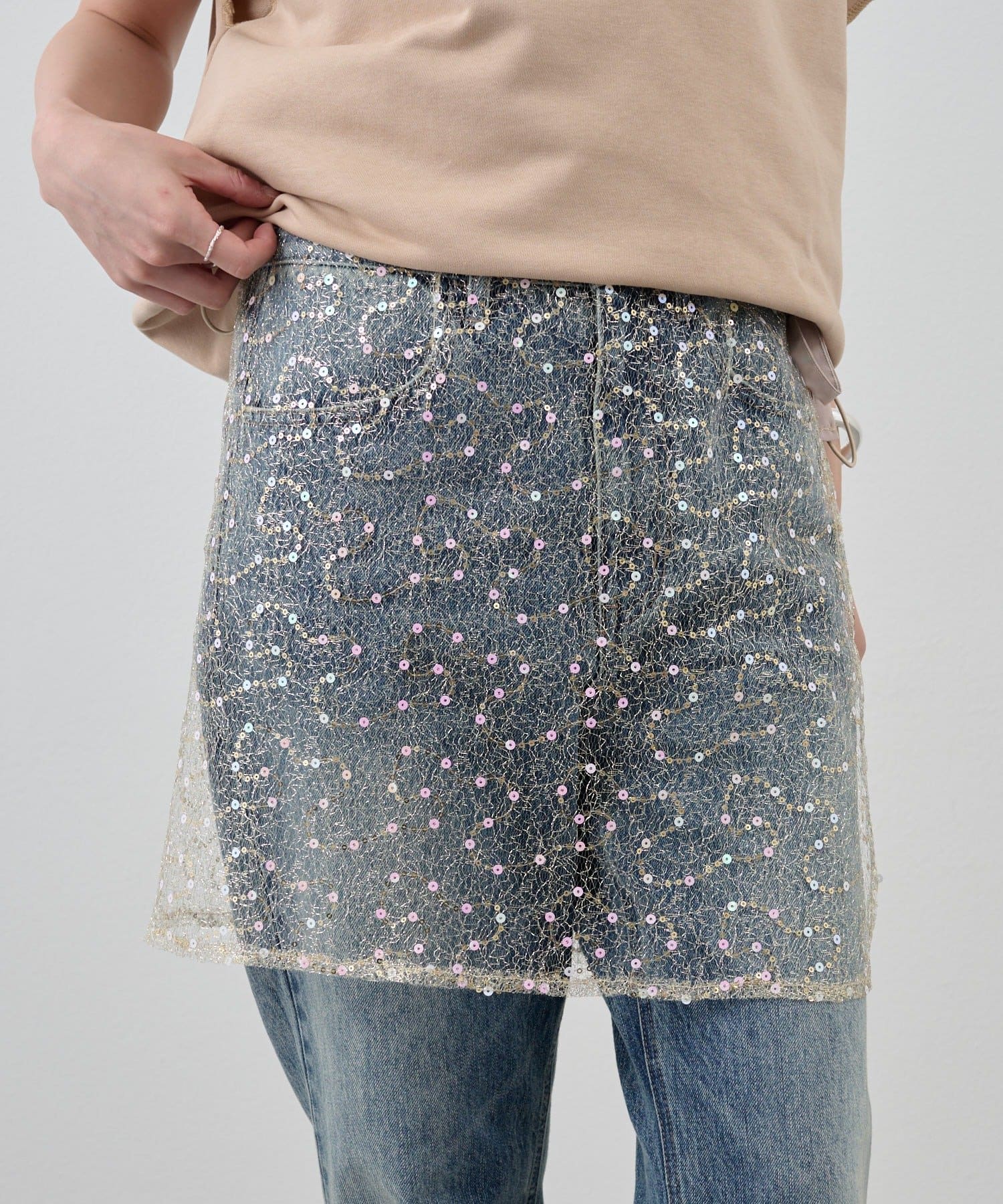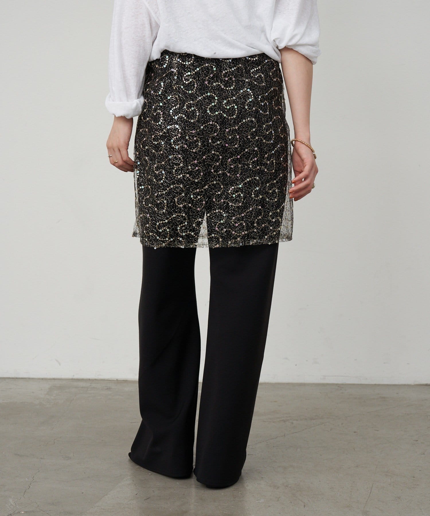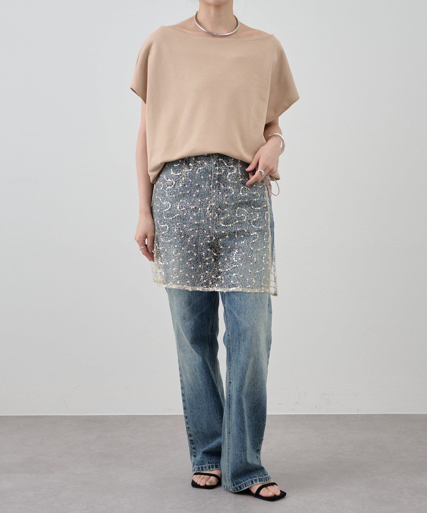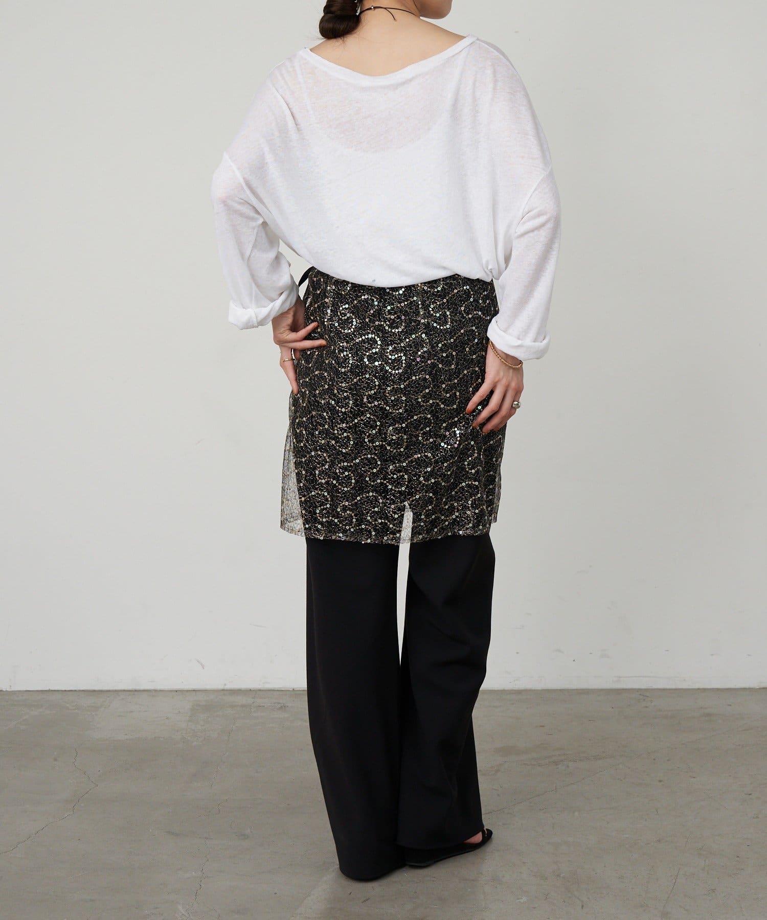 動く度にキラキラと輝くスパンコールがいつものコーデを