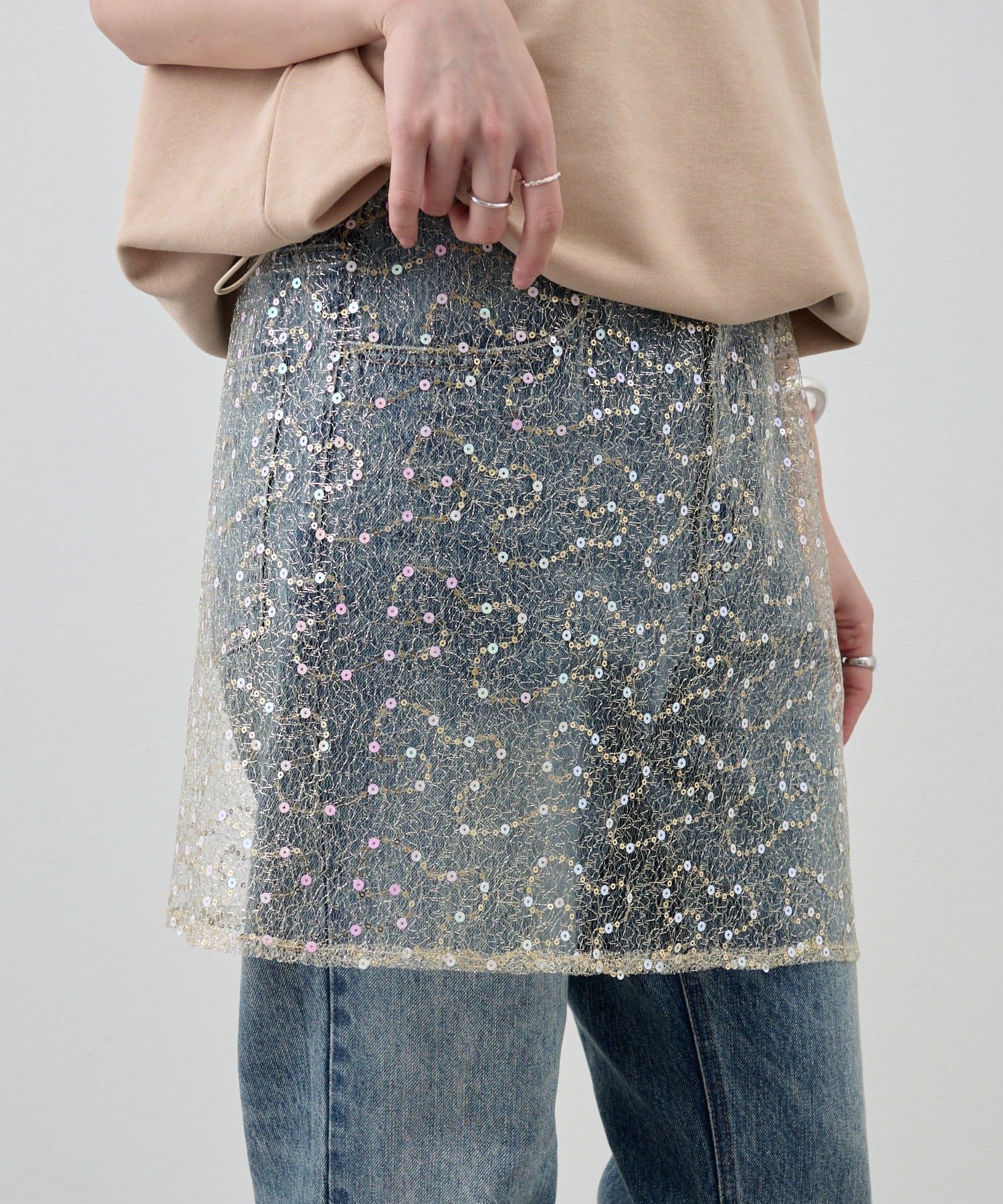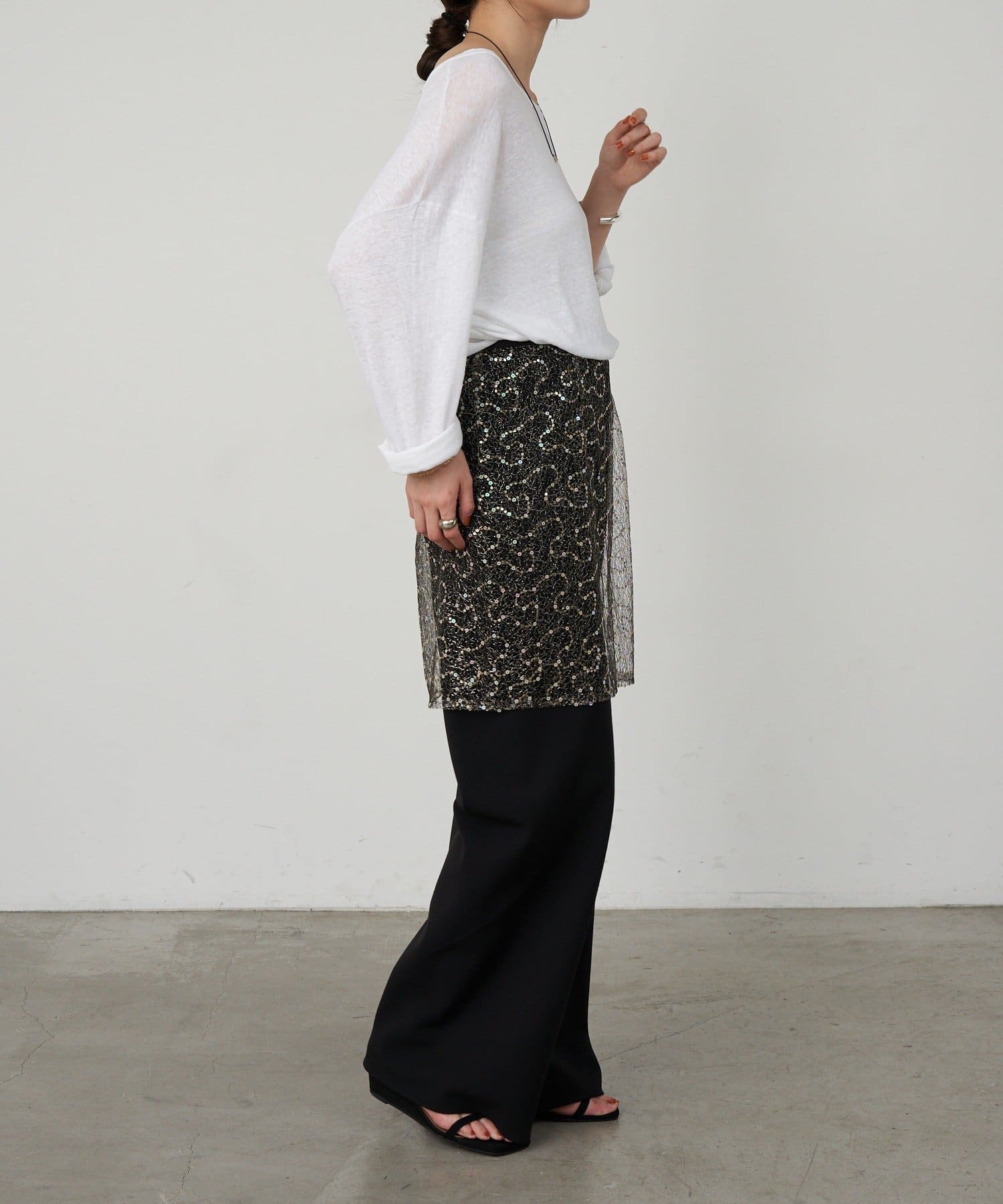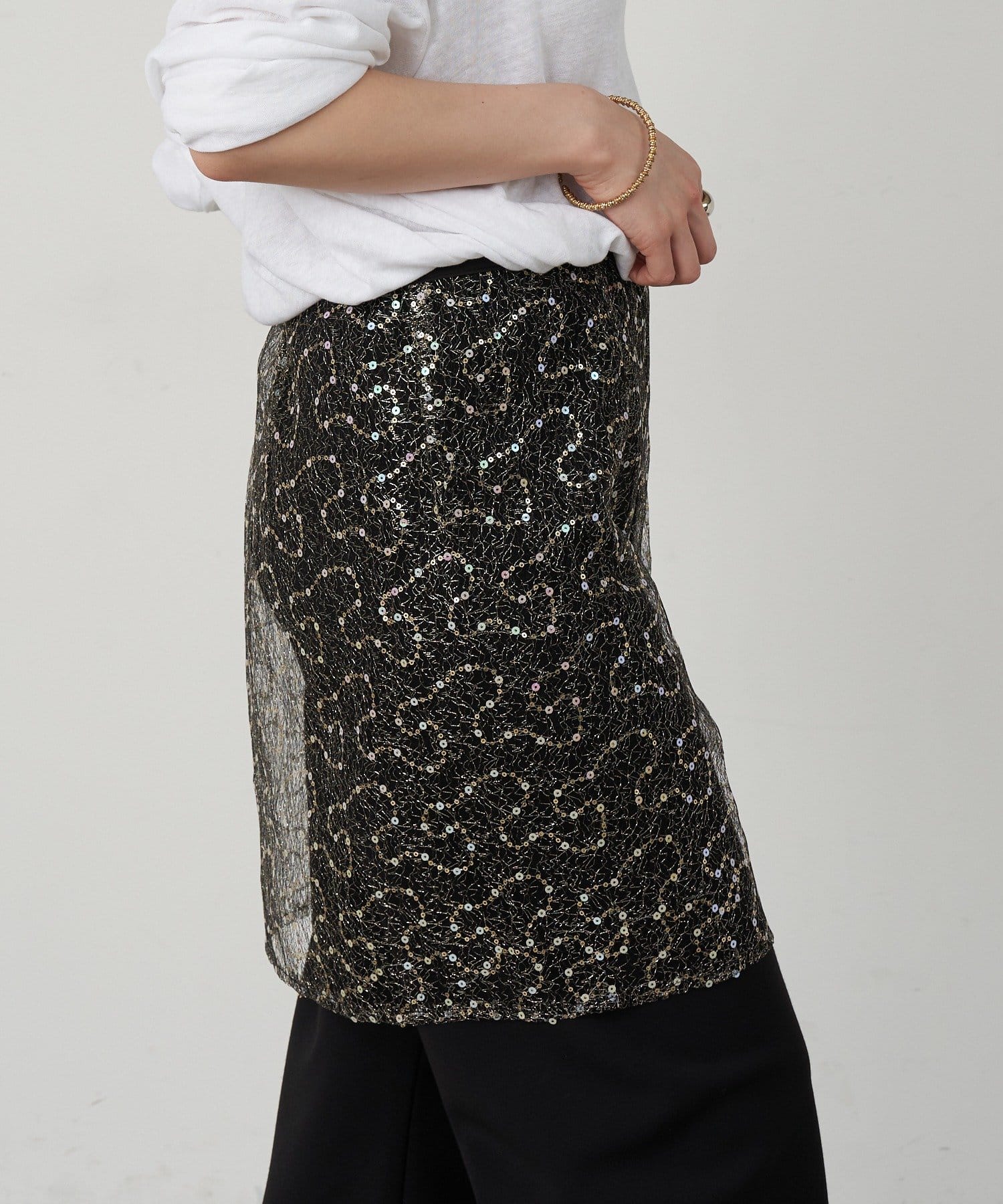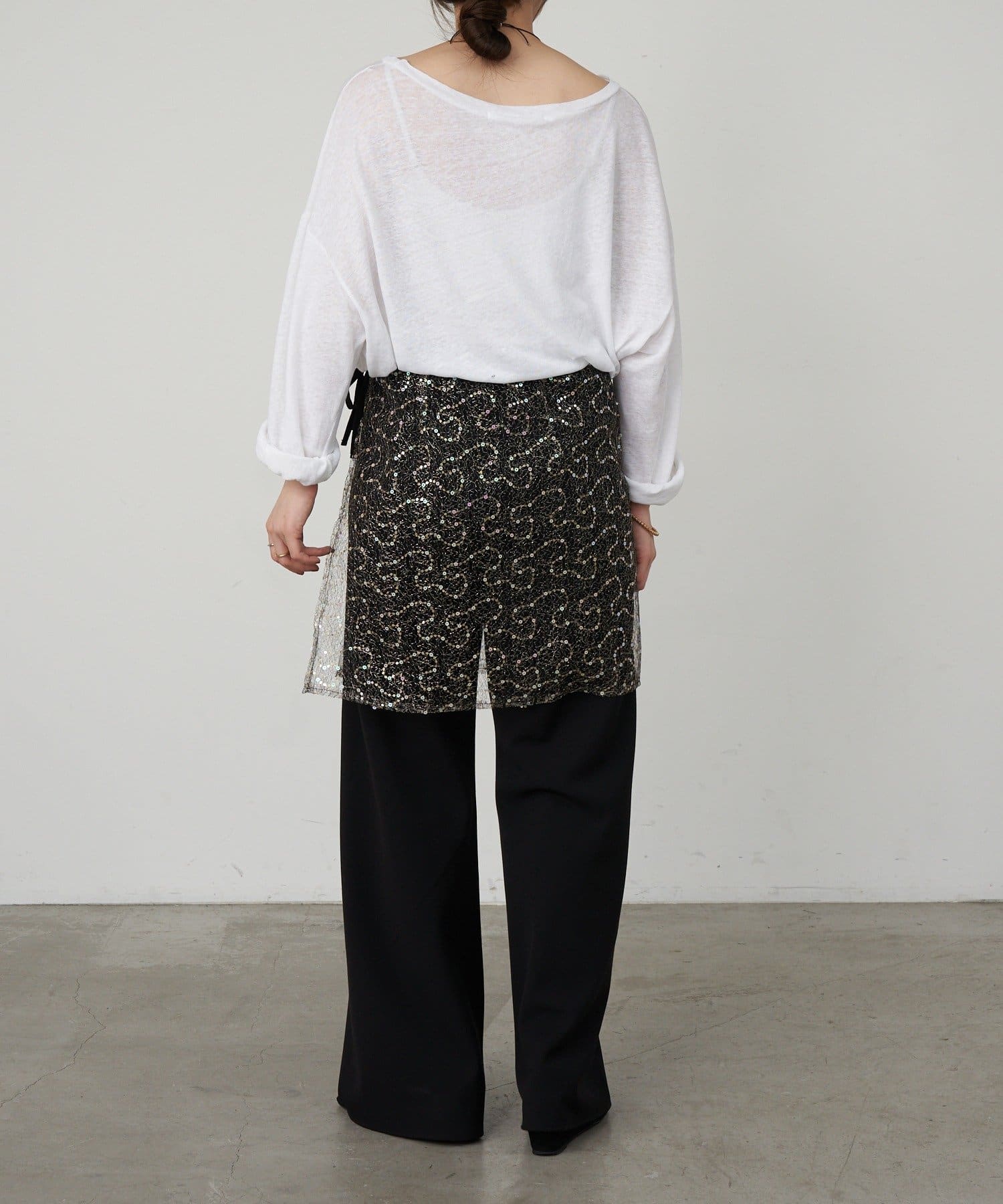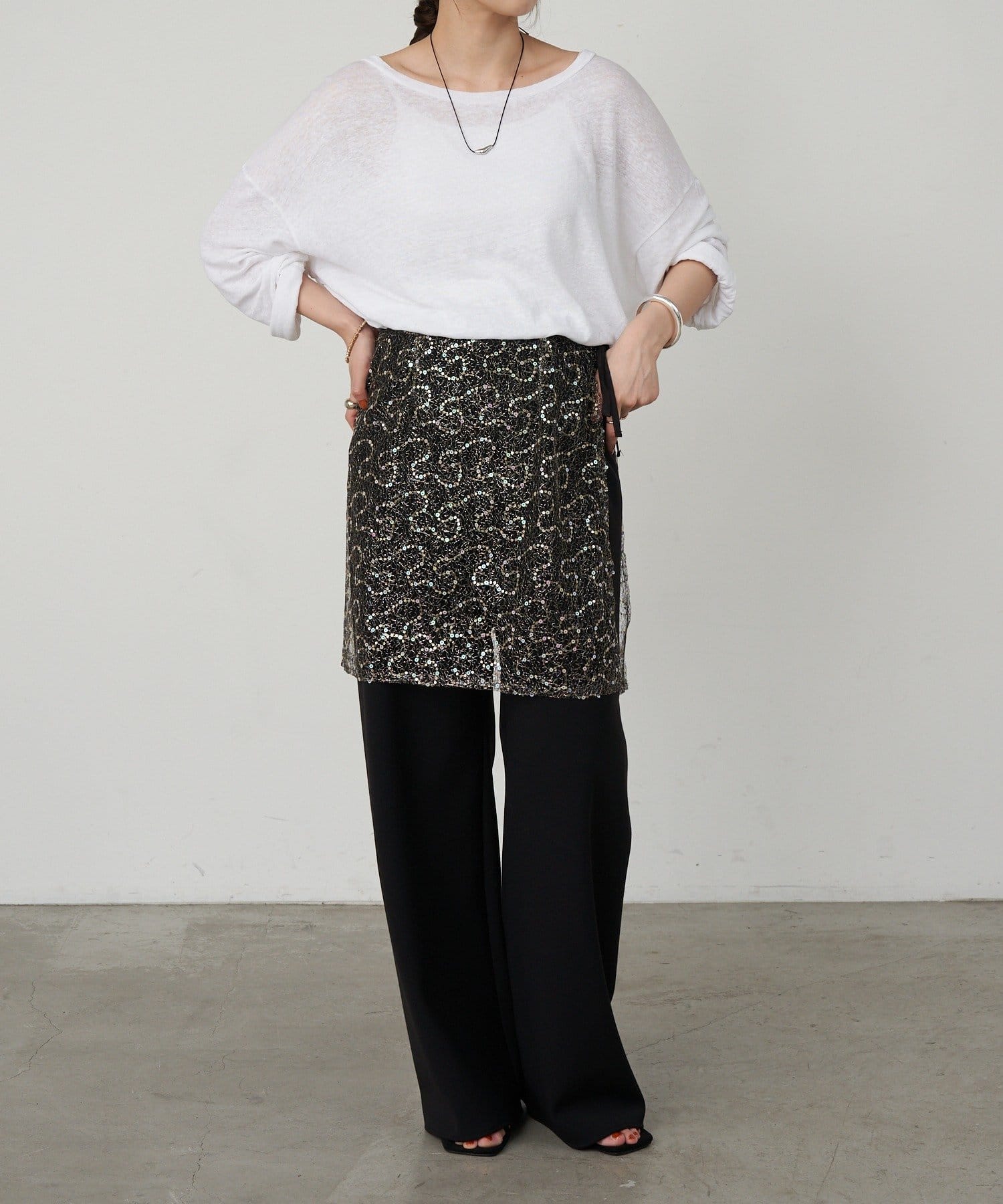 動く度にキラキラと輝くスパンコールがいつものコーデを
