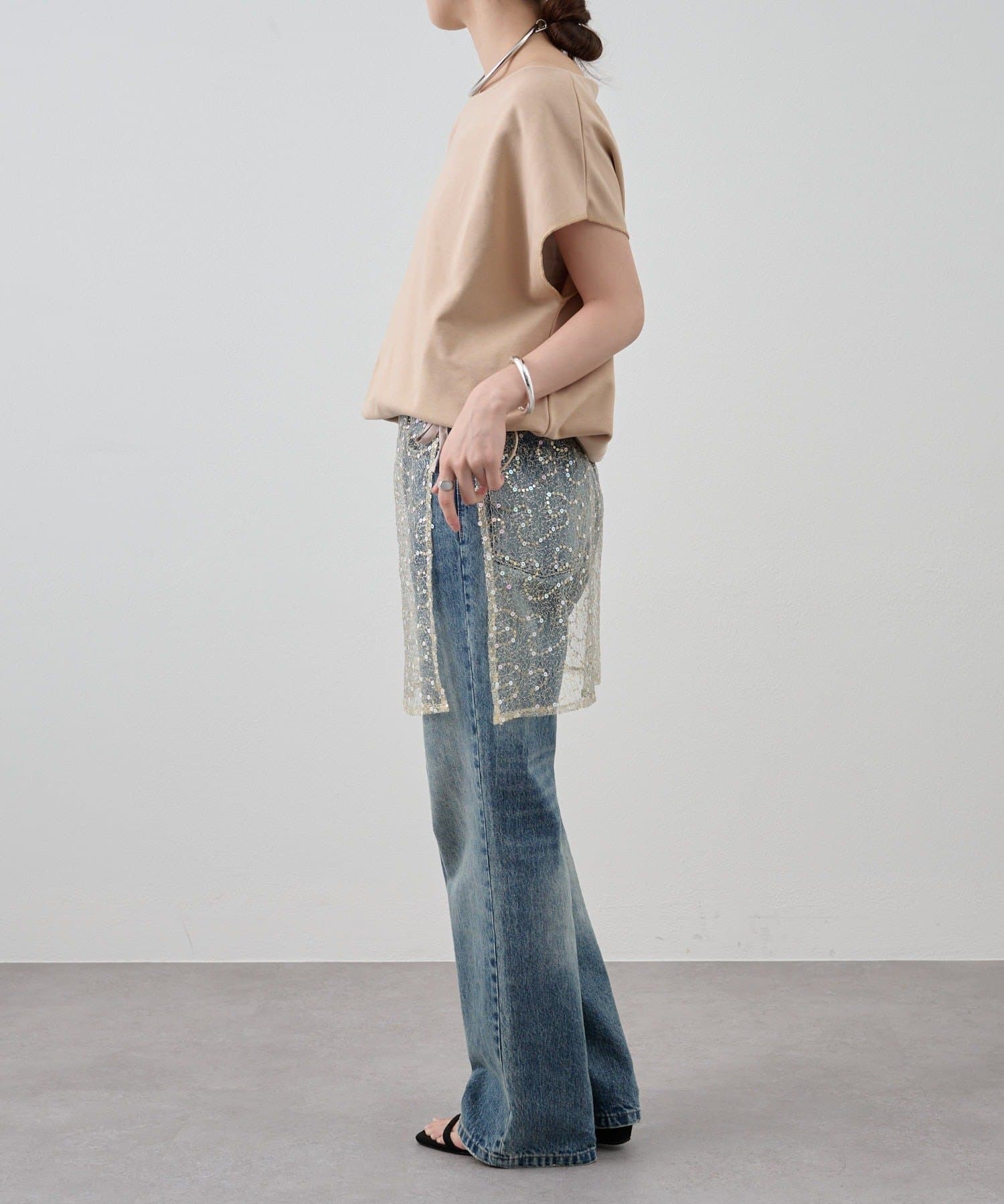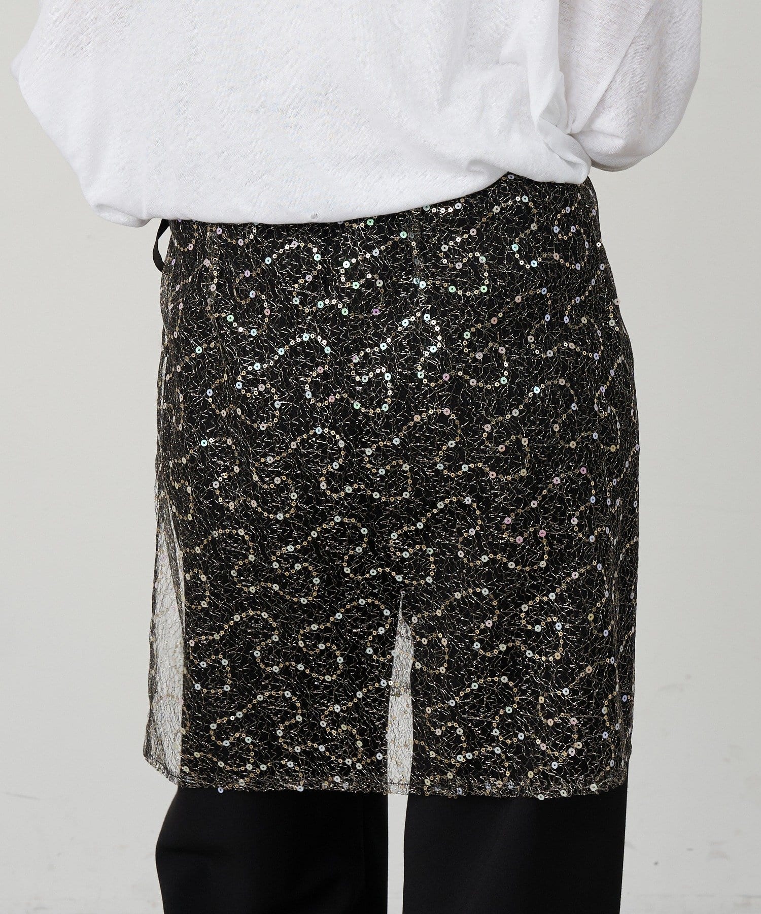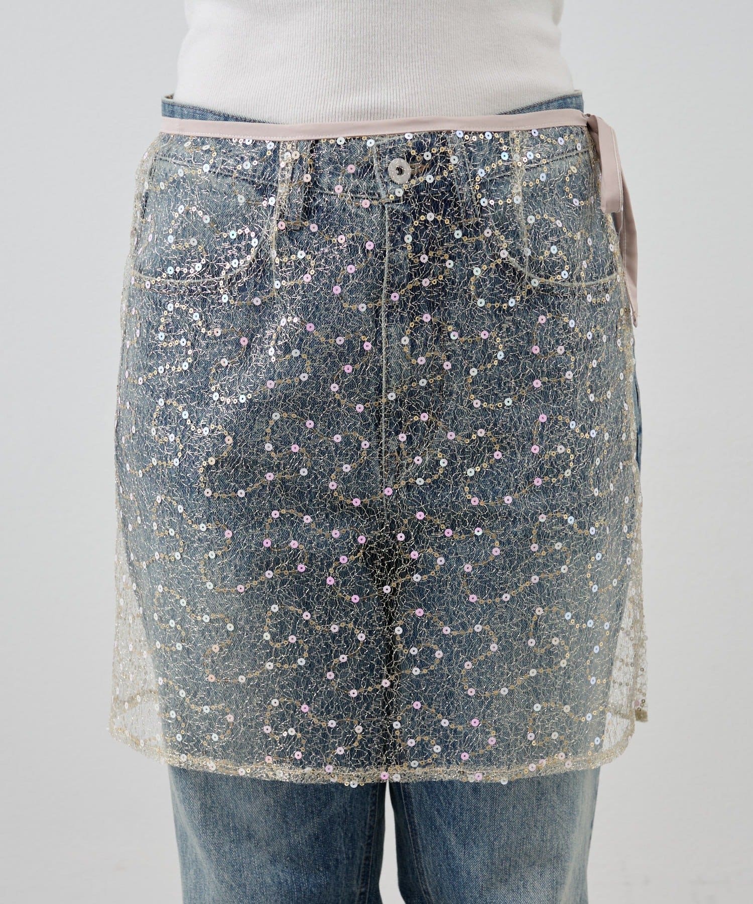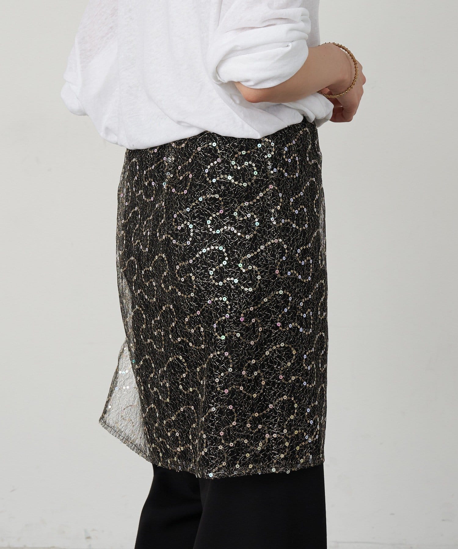 動く度にキラキラと輝くスパンコールがいつものコーデを