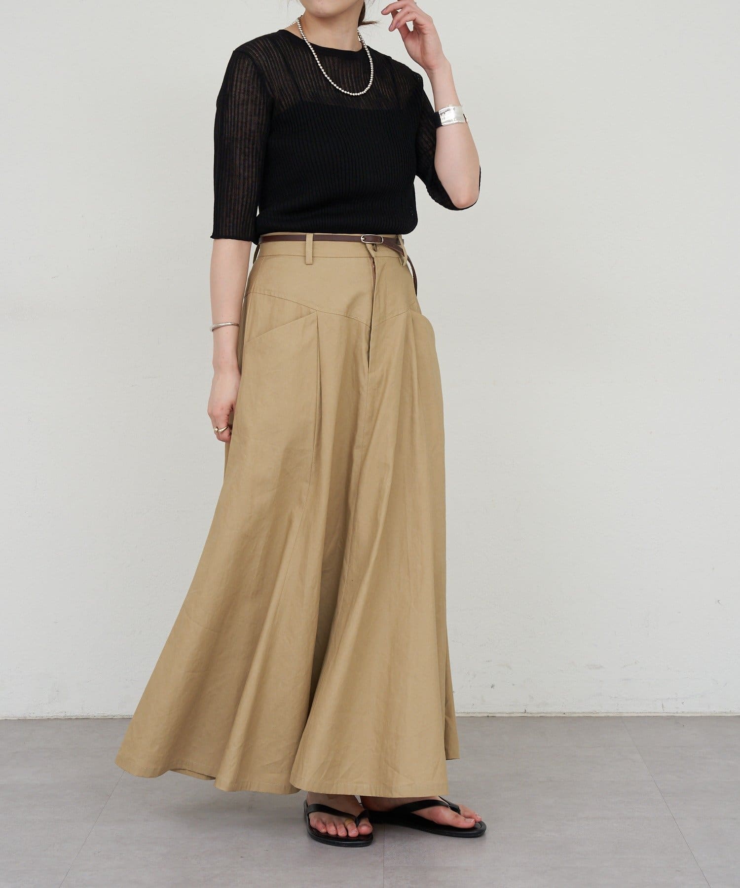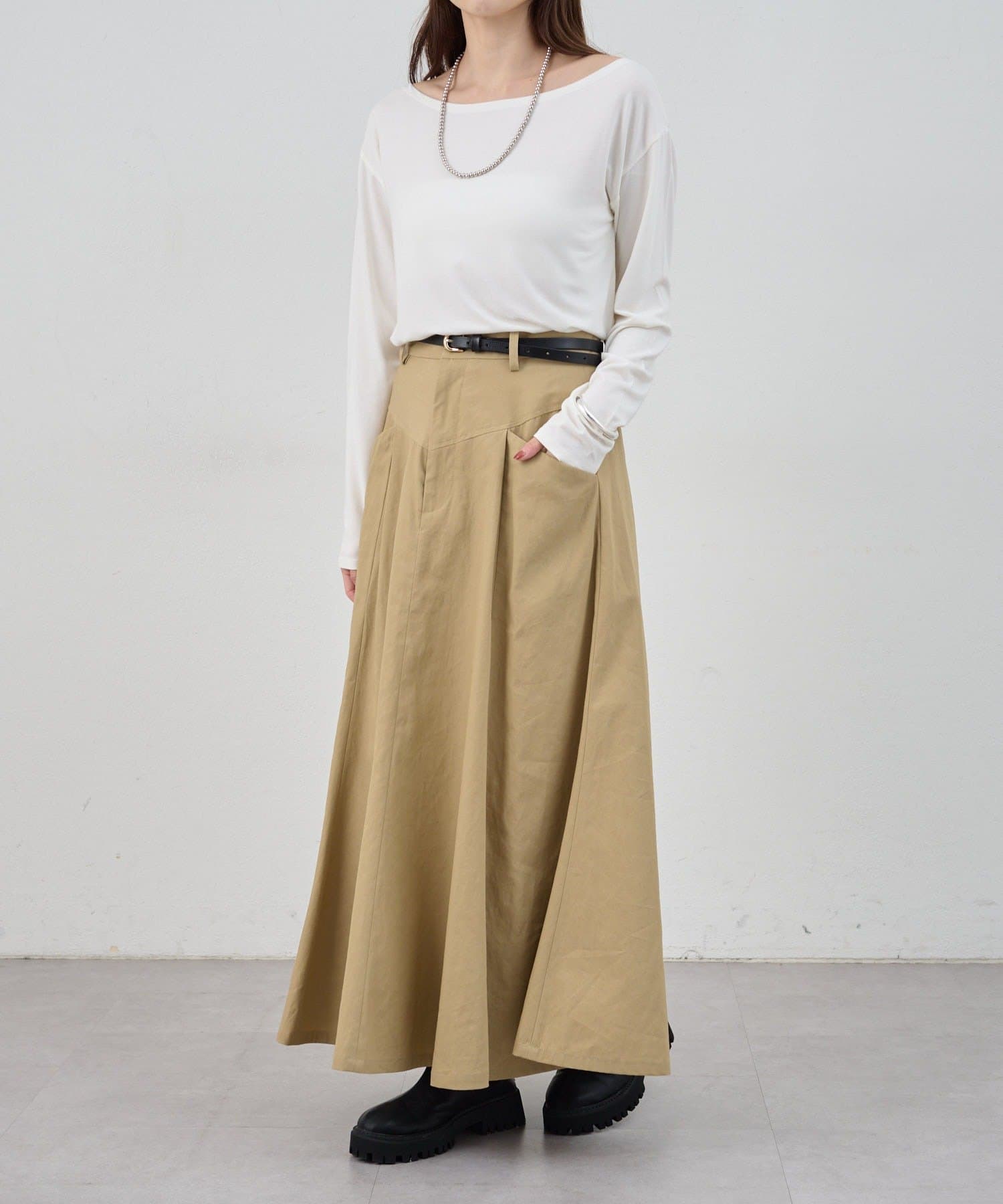しっかりと長さがあるのでシンプルにカットソーと合わせても