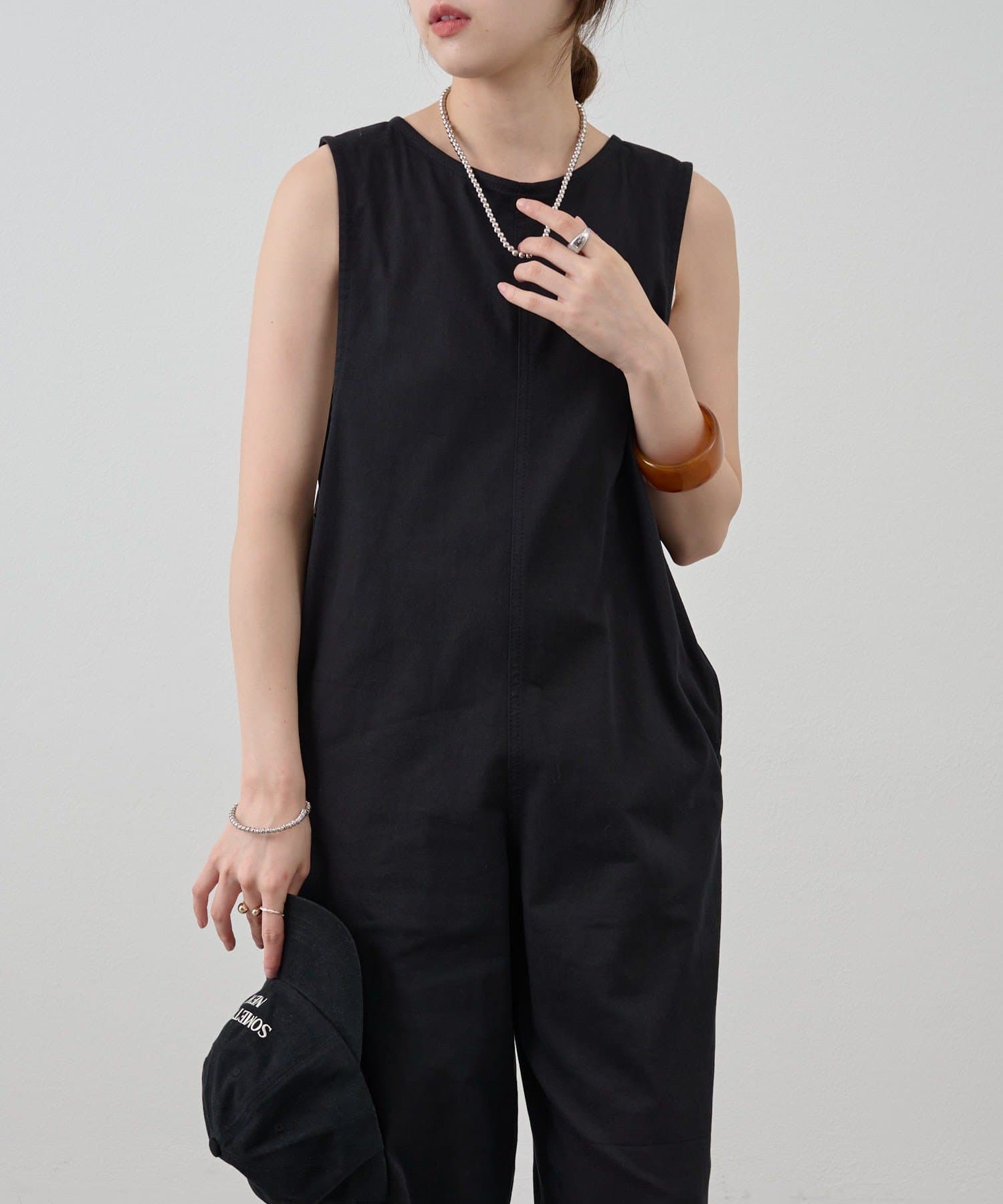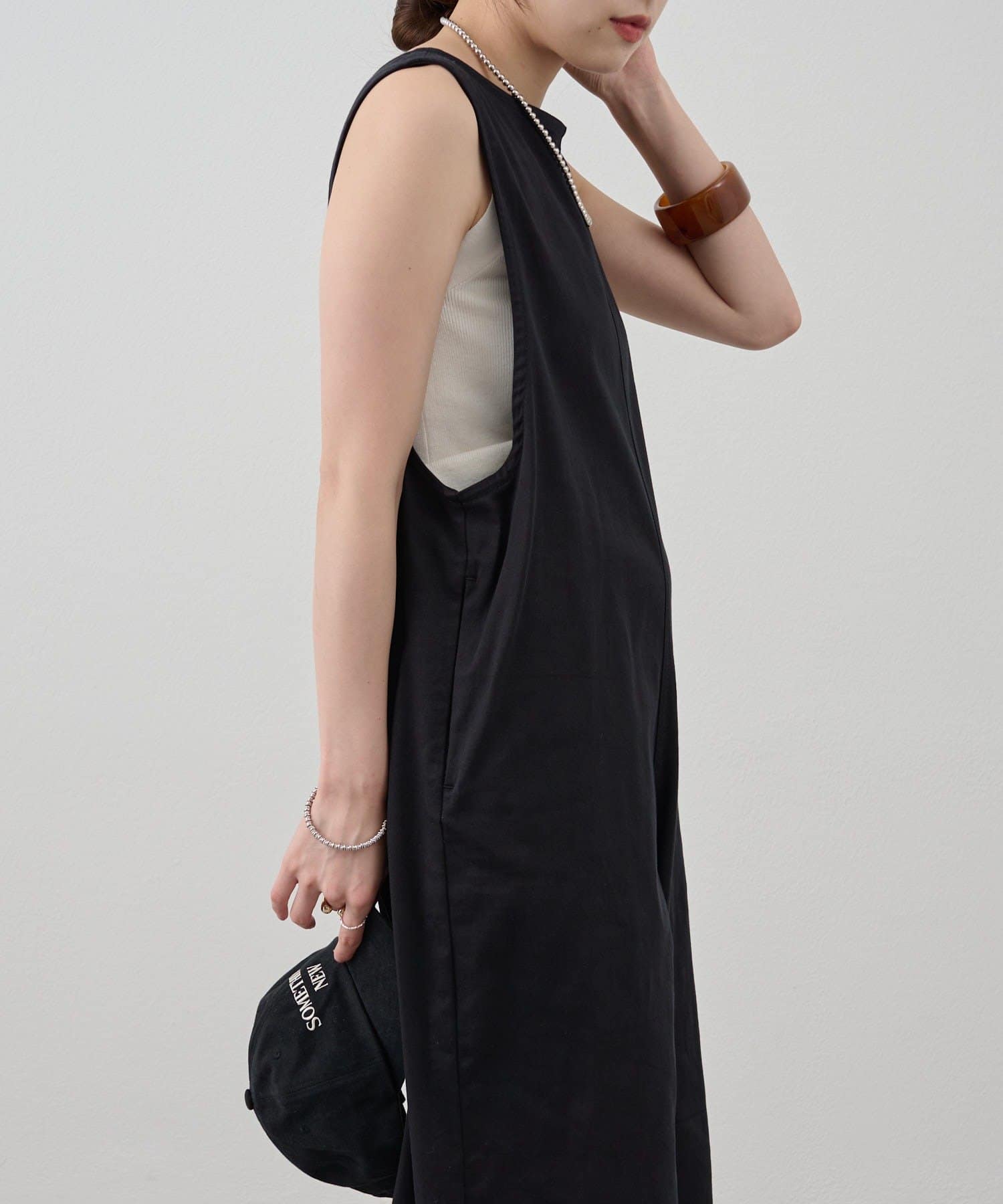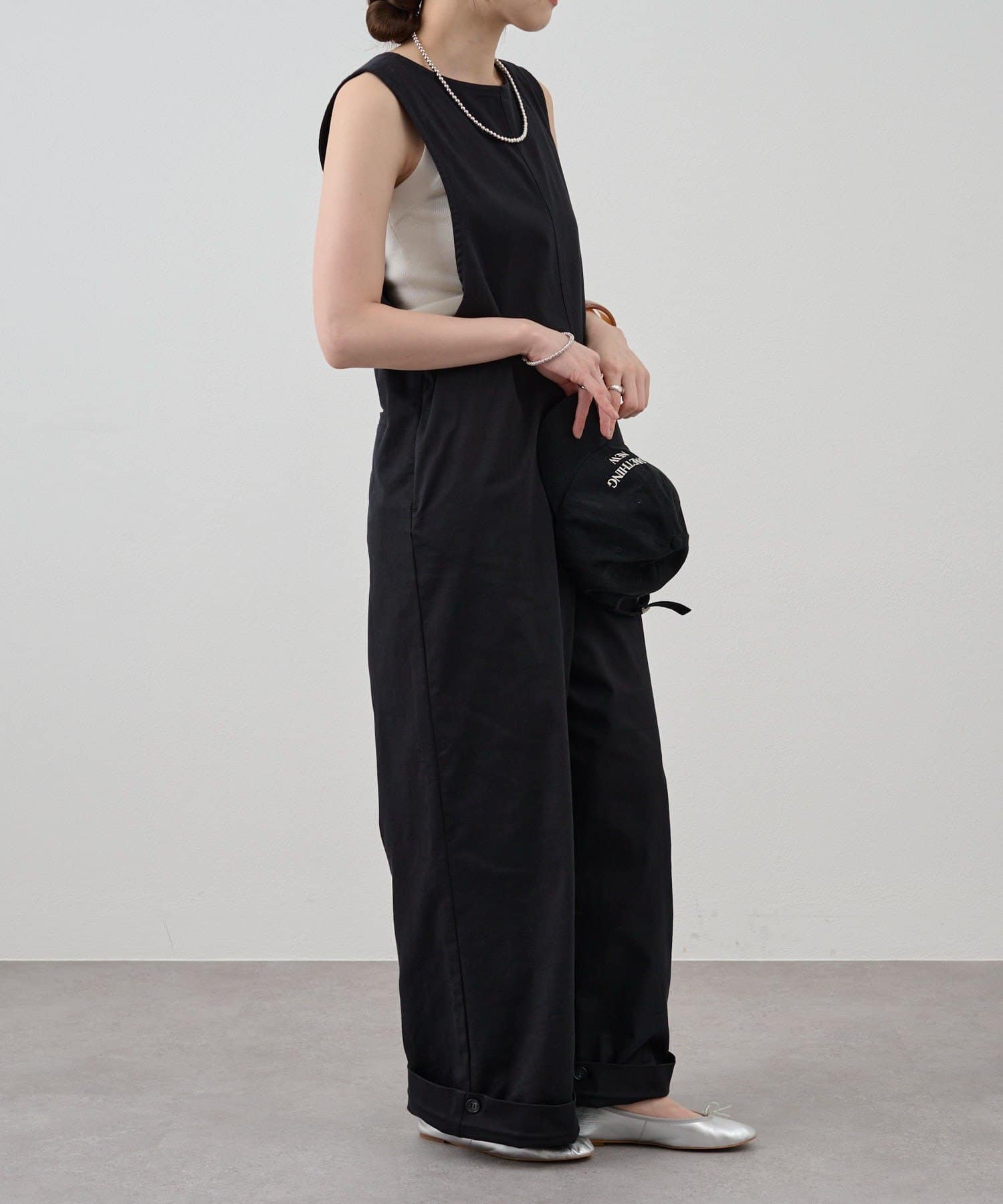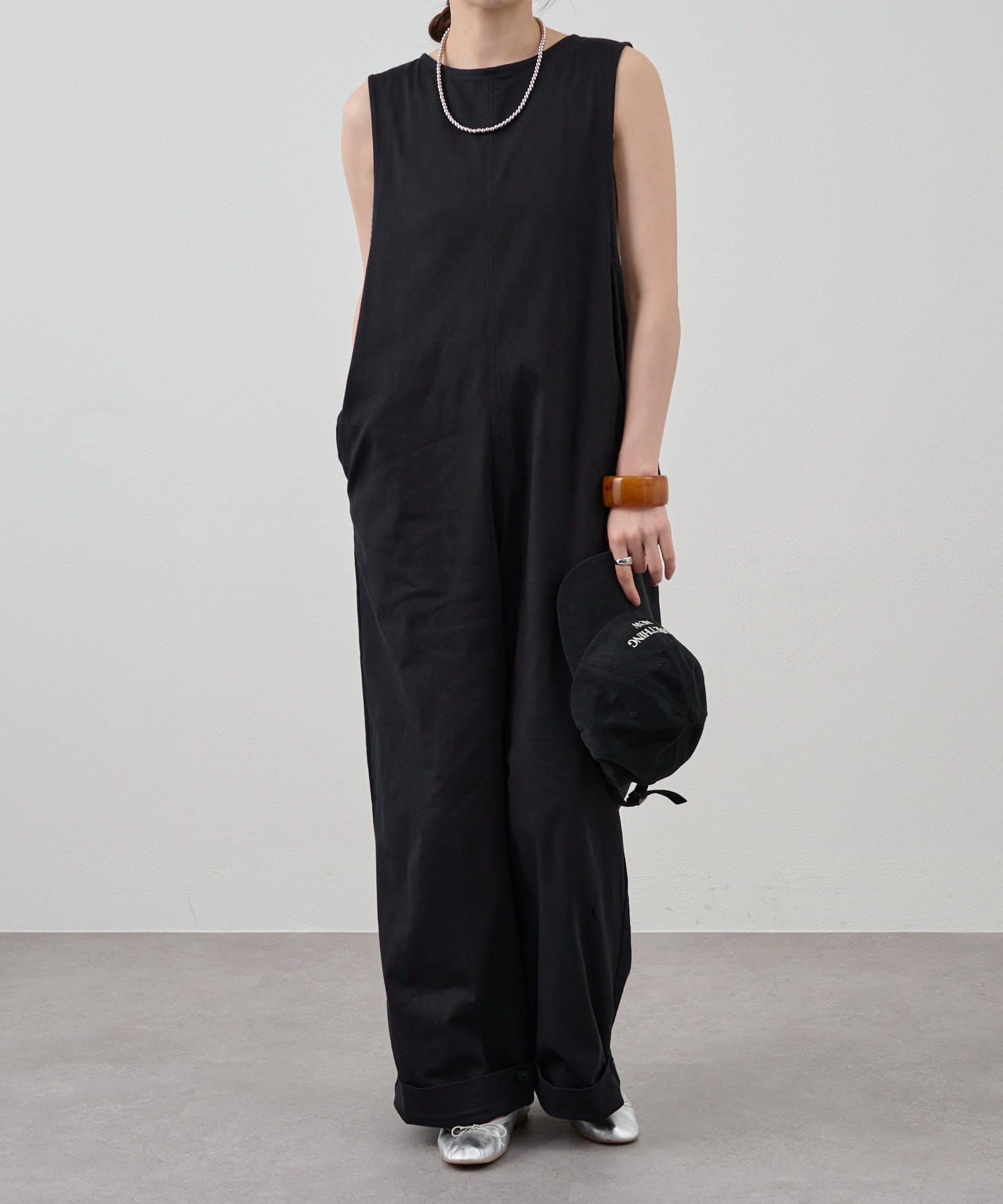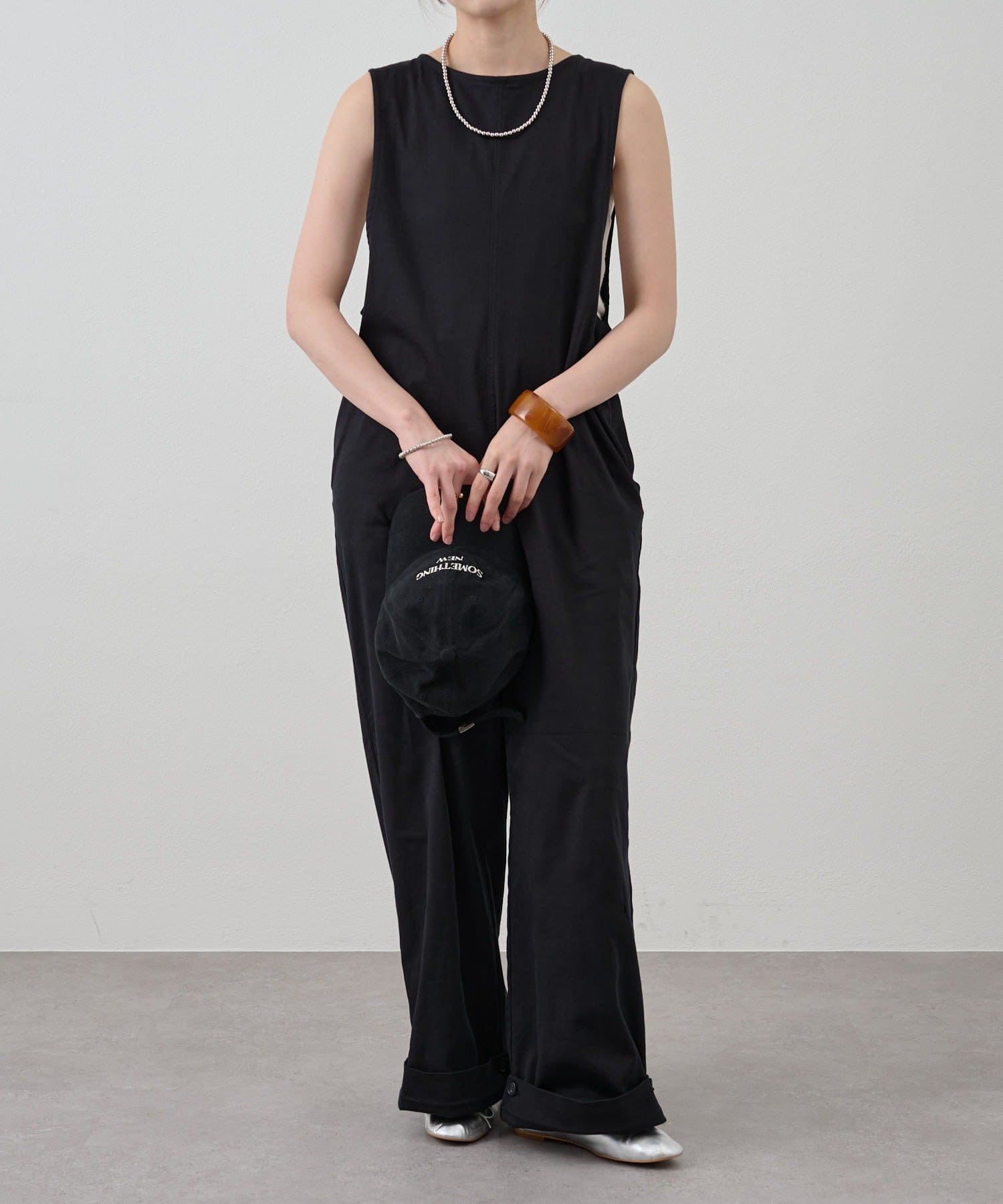 オールインワンならではのルーズさもありつつ、ネックラインをややボートネックにすることで