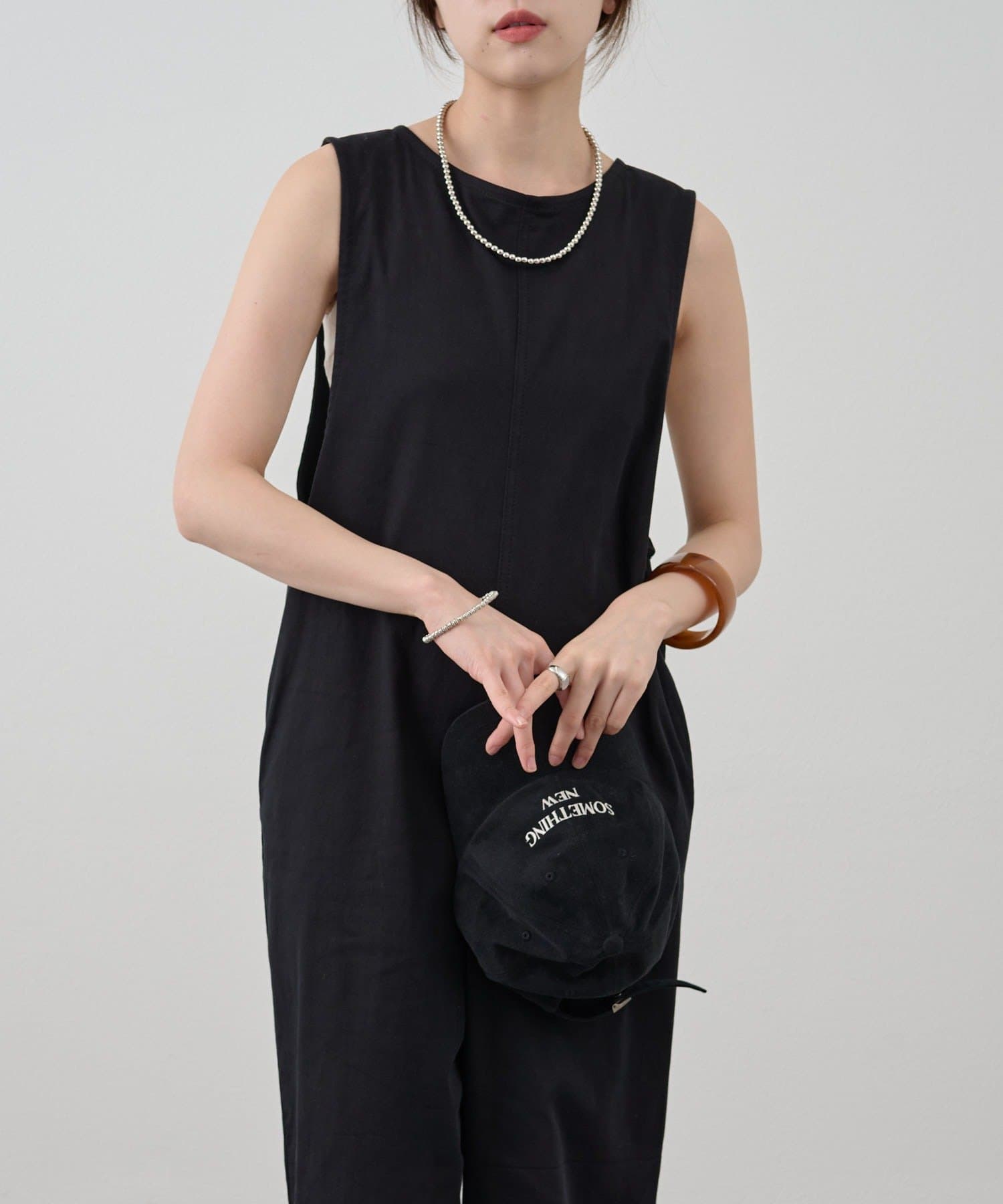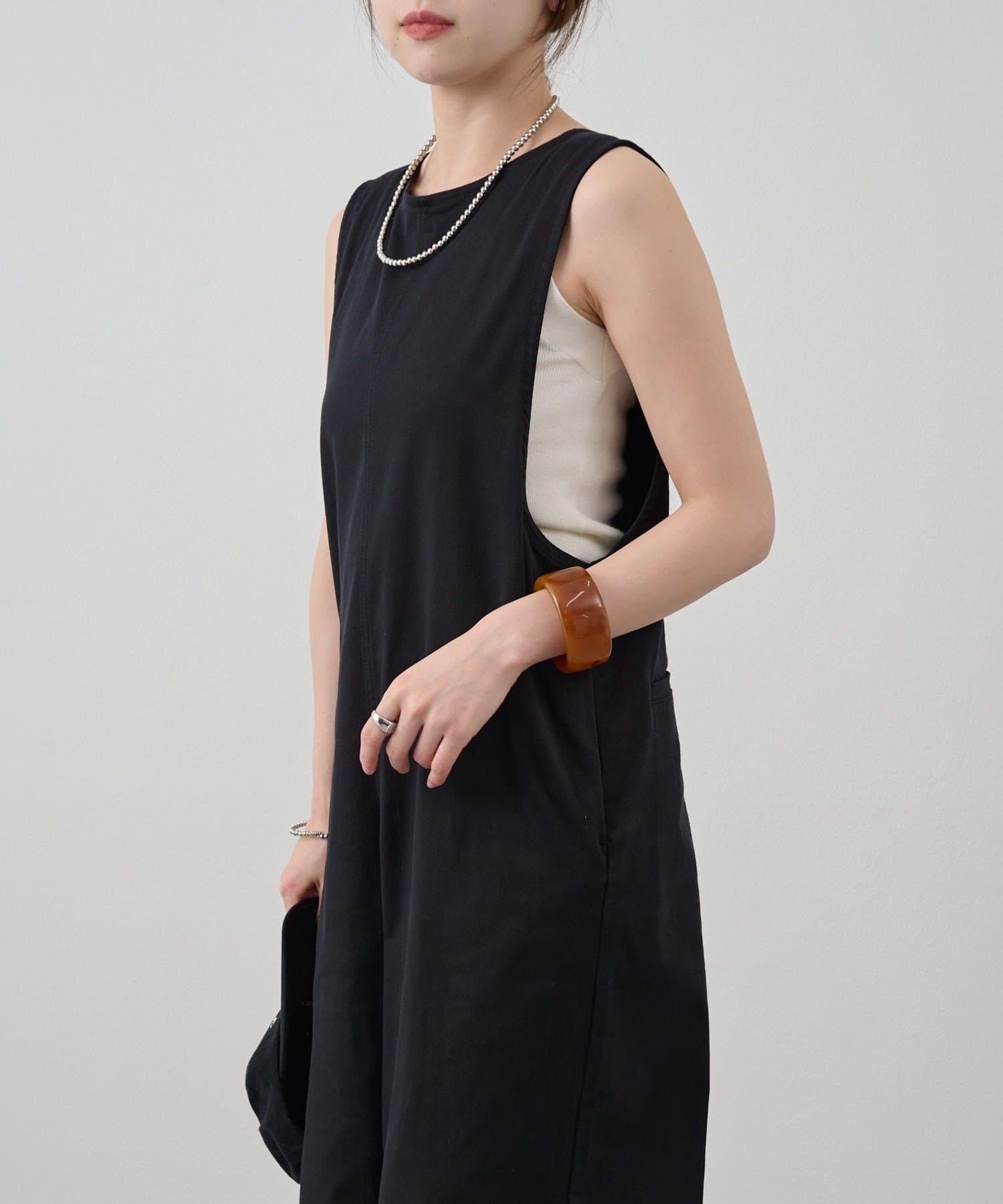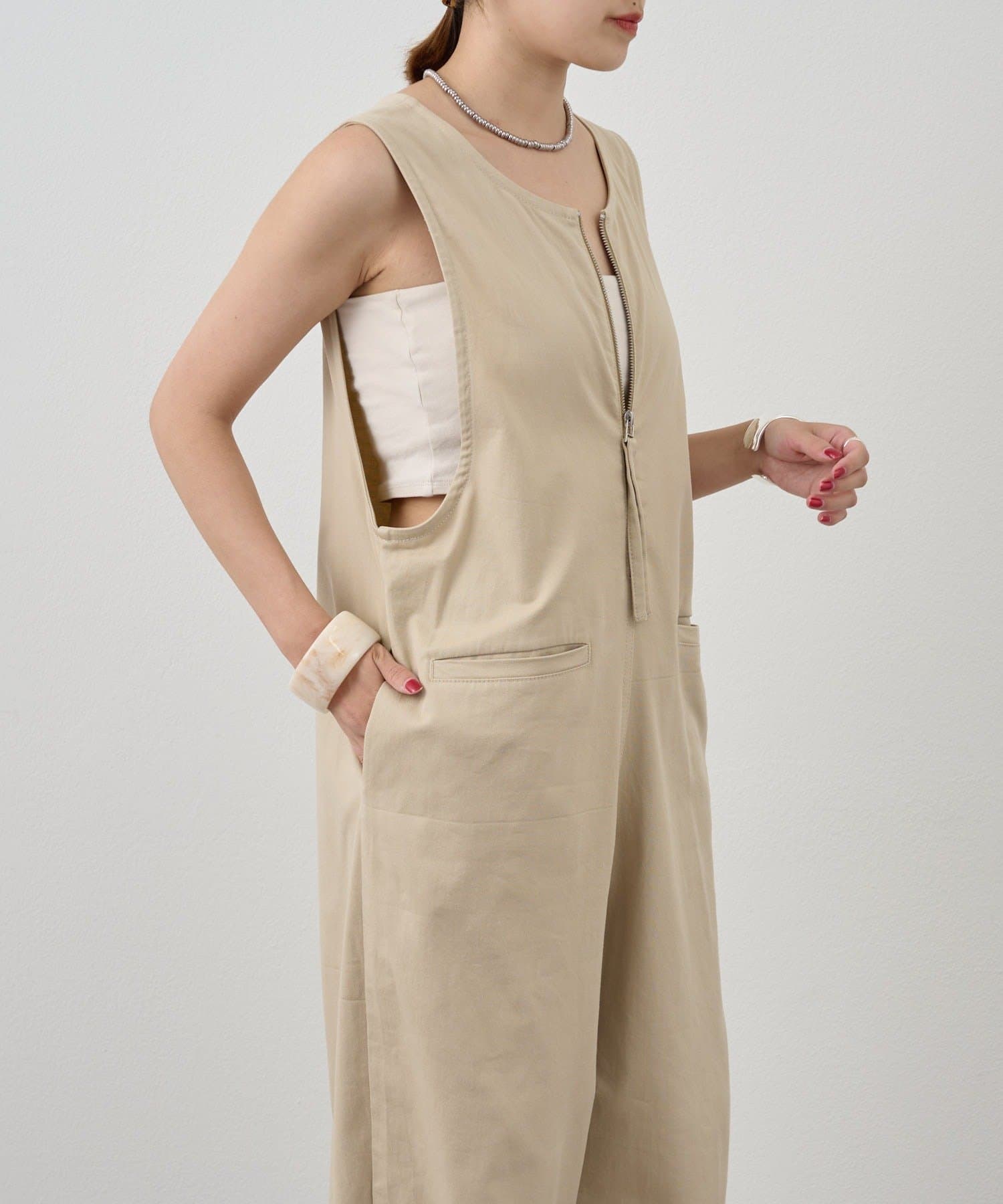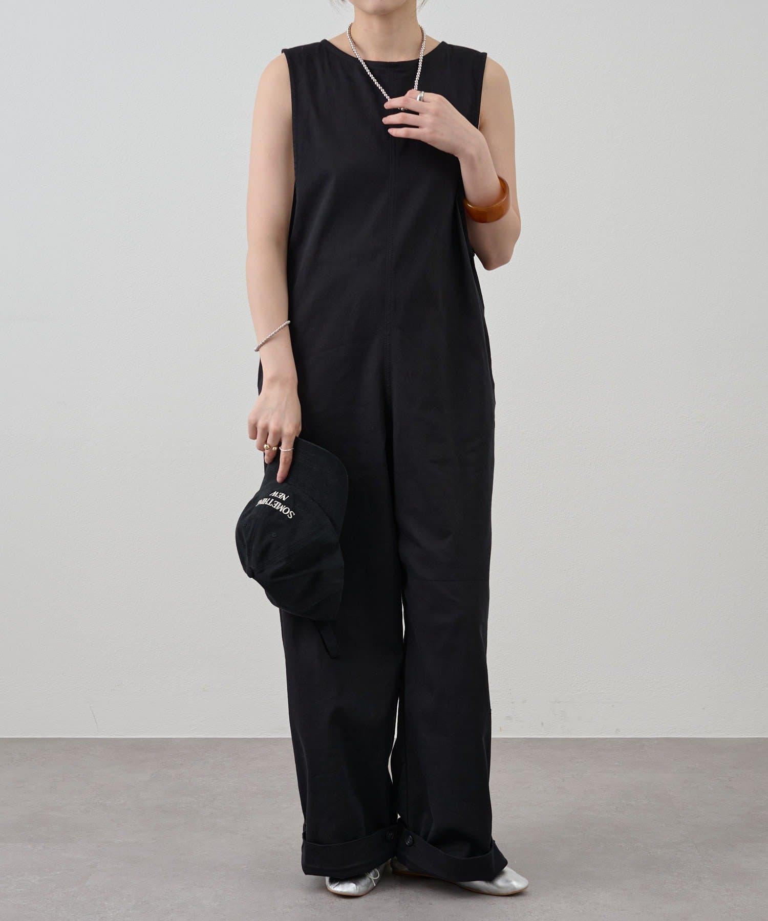 オールインワンならではのルーズさもありつつ、ネックラインをややボートネックにすることで