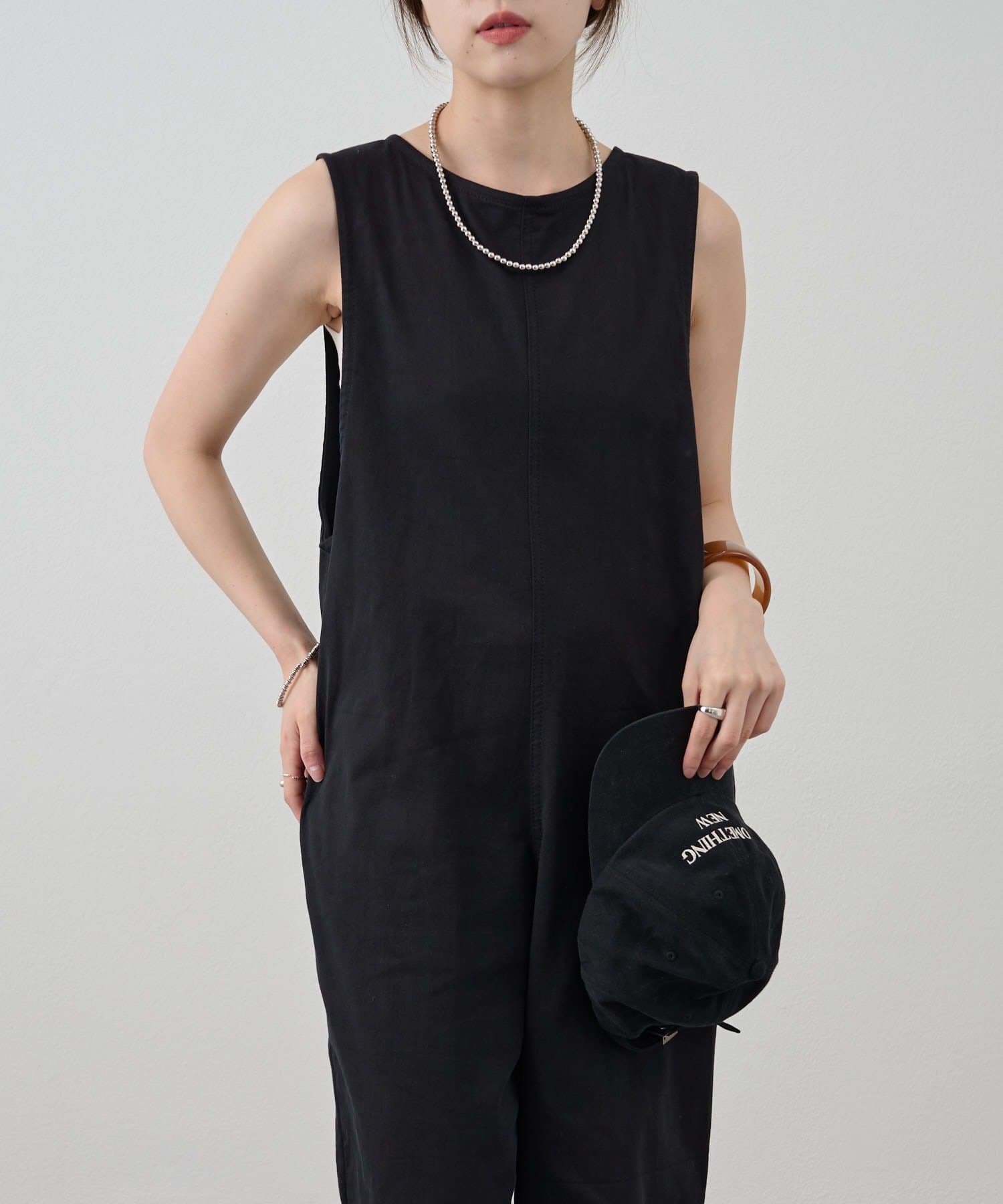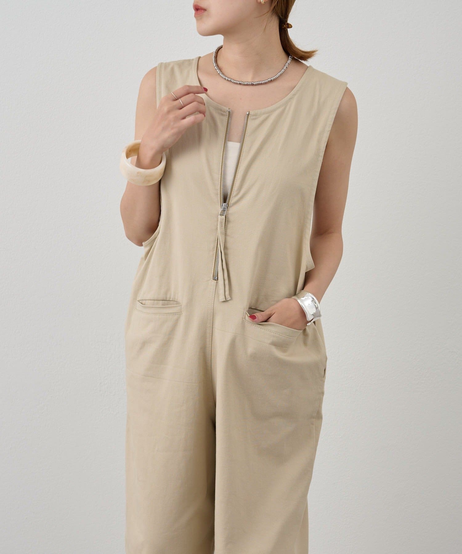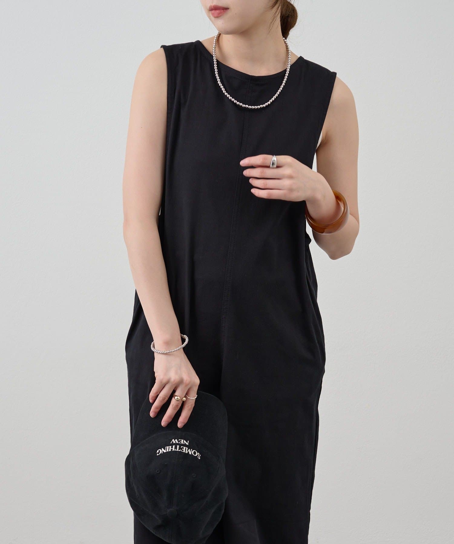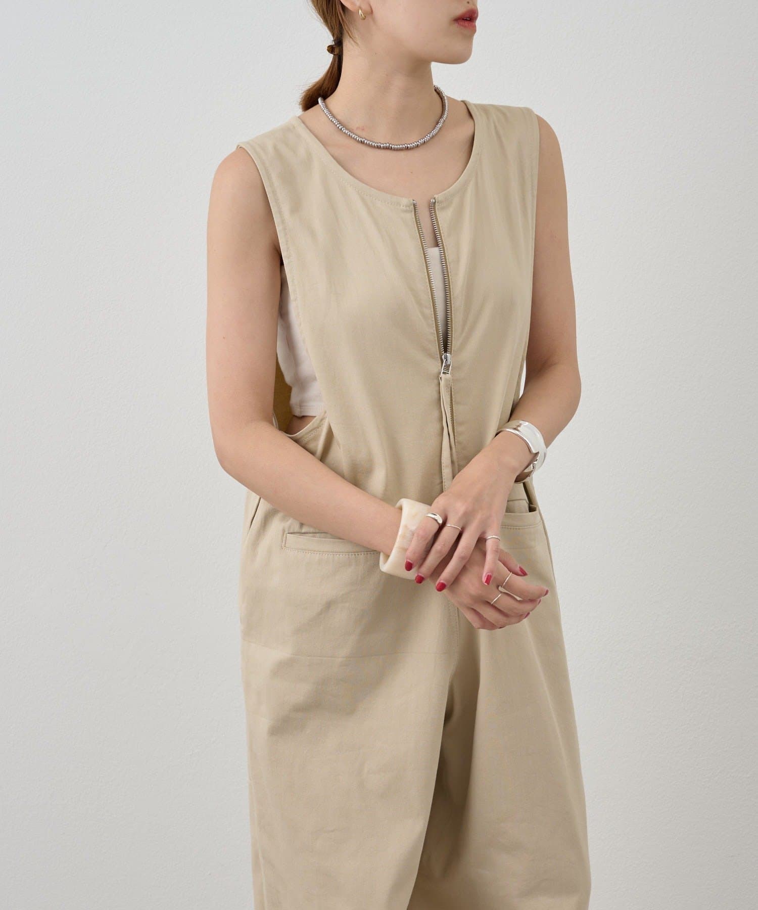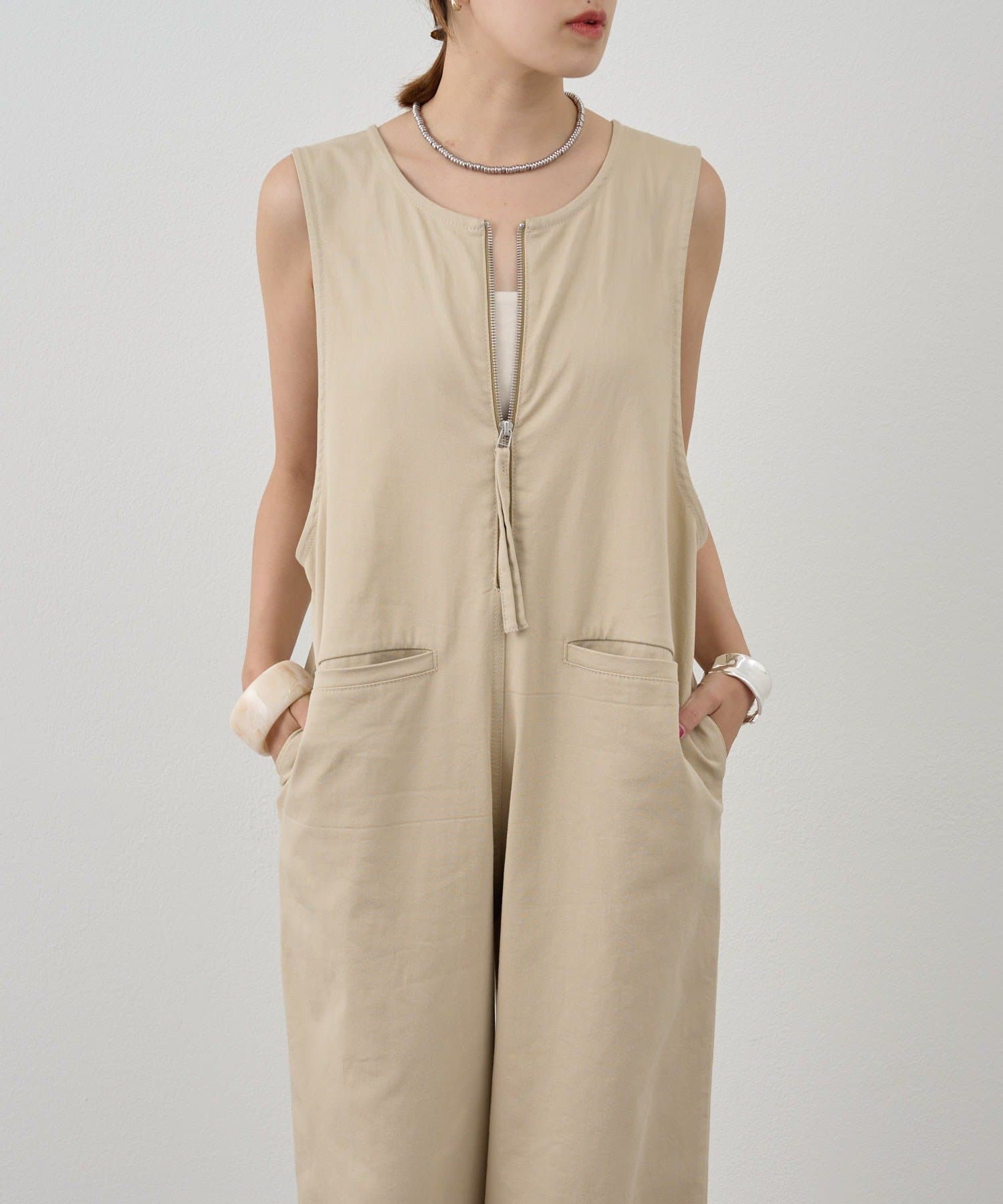 オールインワンならではのルーズさもありつつ、ネックラインをややボートネックにすることで