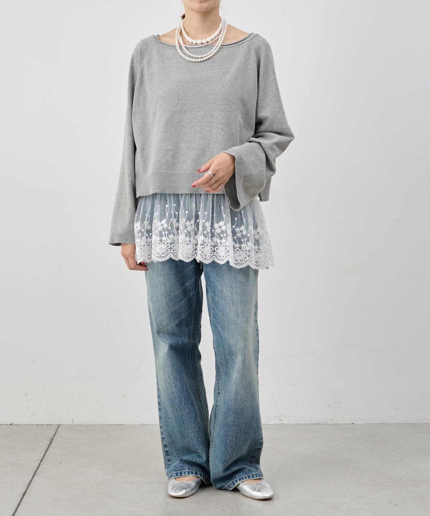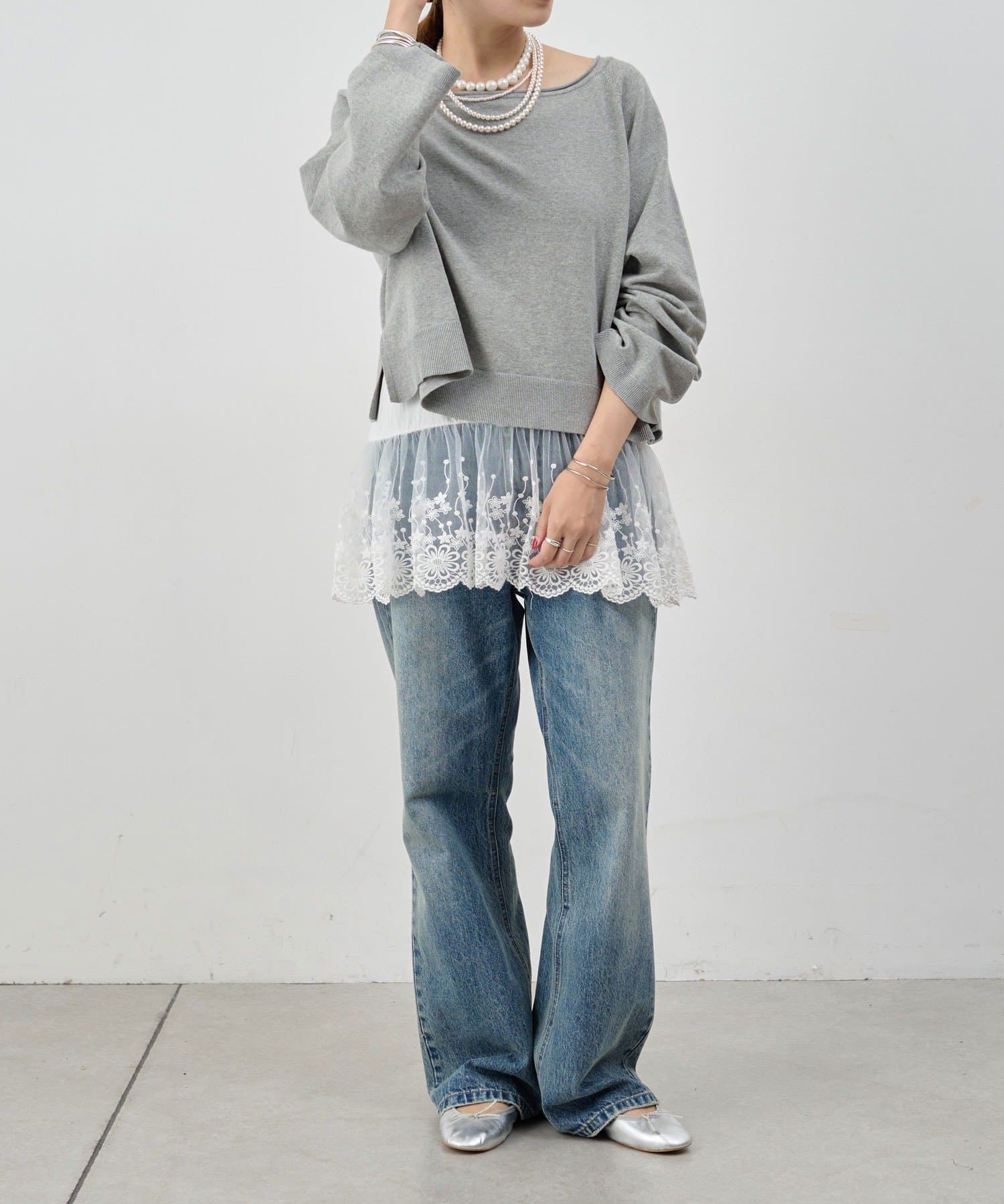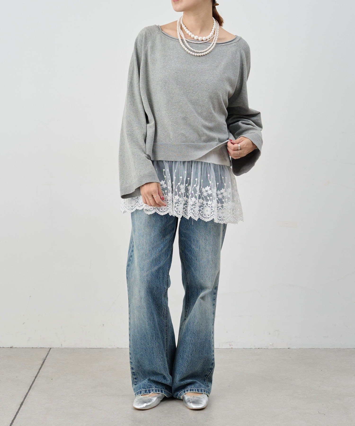 丈の長いトップスとのレイヤードもすっきり見えのシルエット。