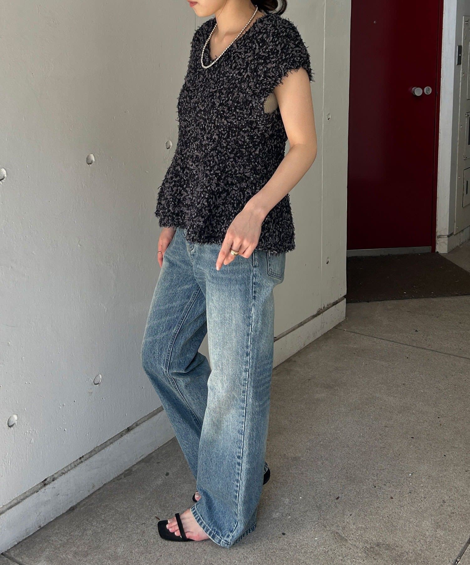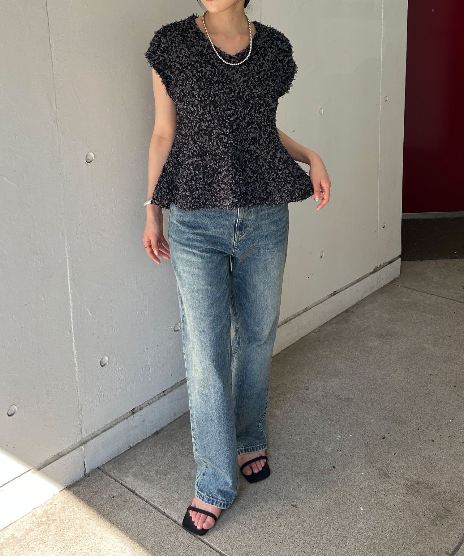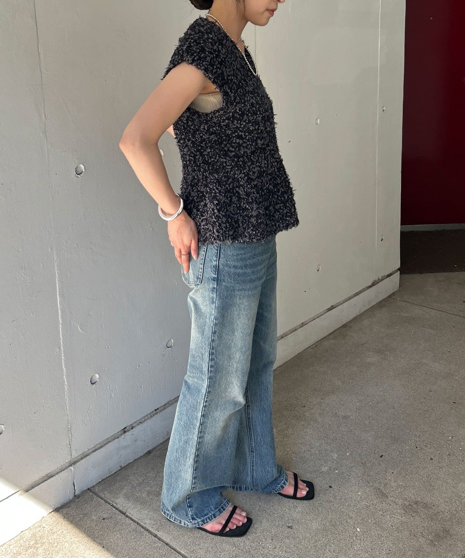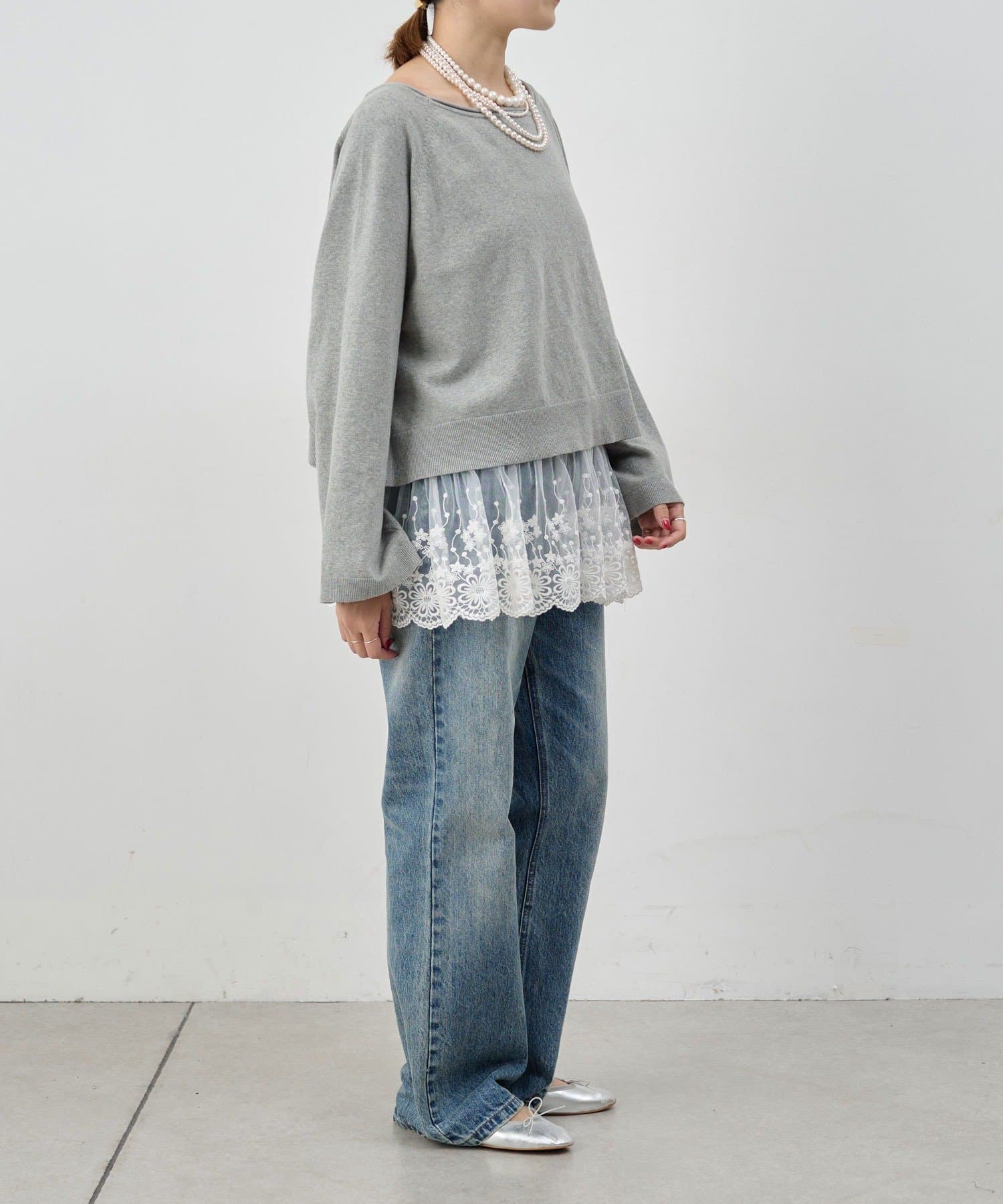 丈の長いトップスとのレイヤードもすっきり見えのシルエット。