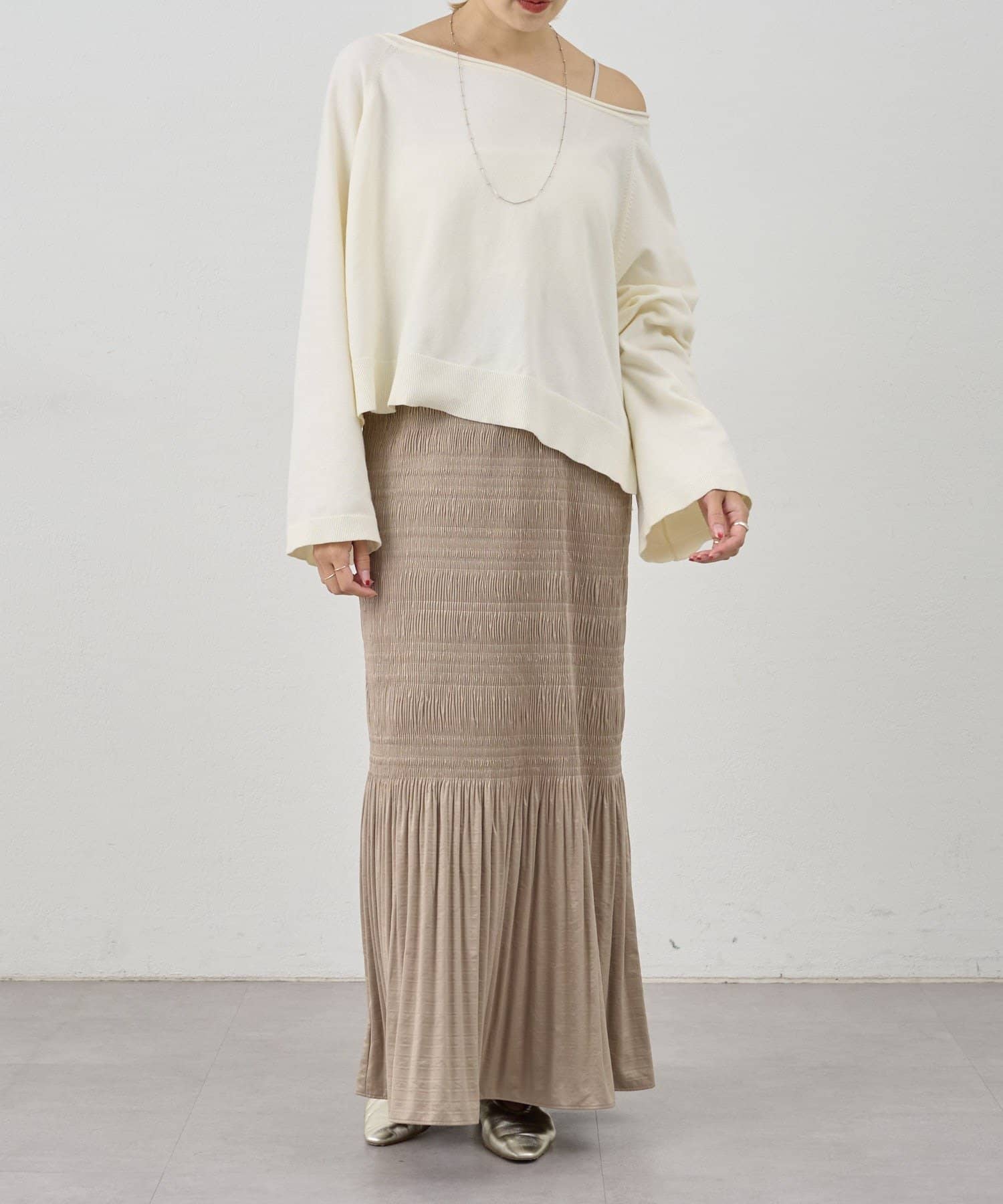 クロップド丈とルーズなデザインがトレンド感溢れるニット。