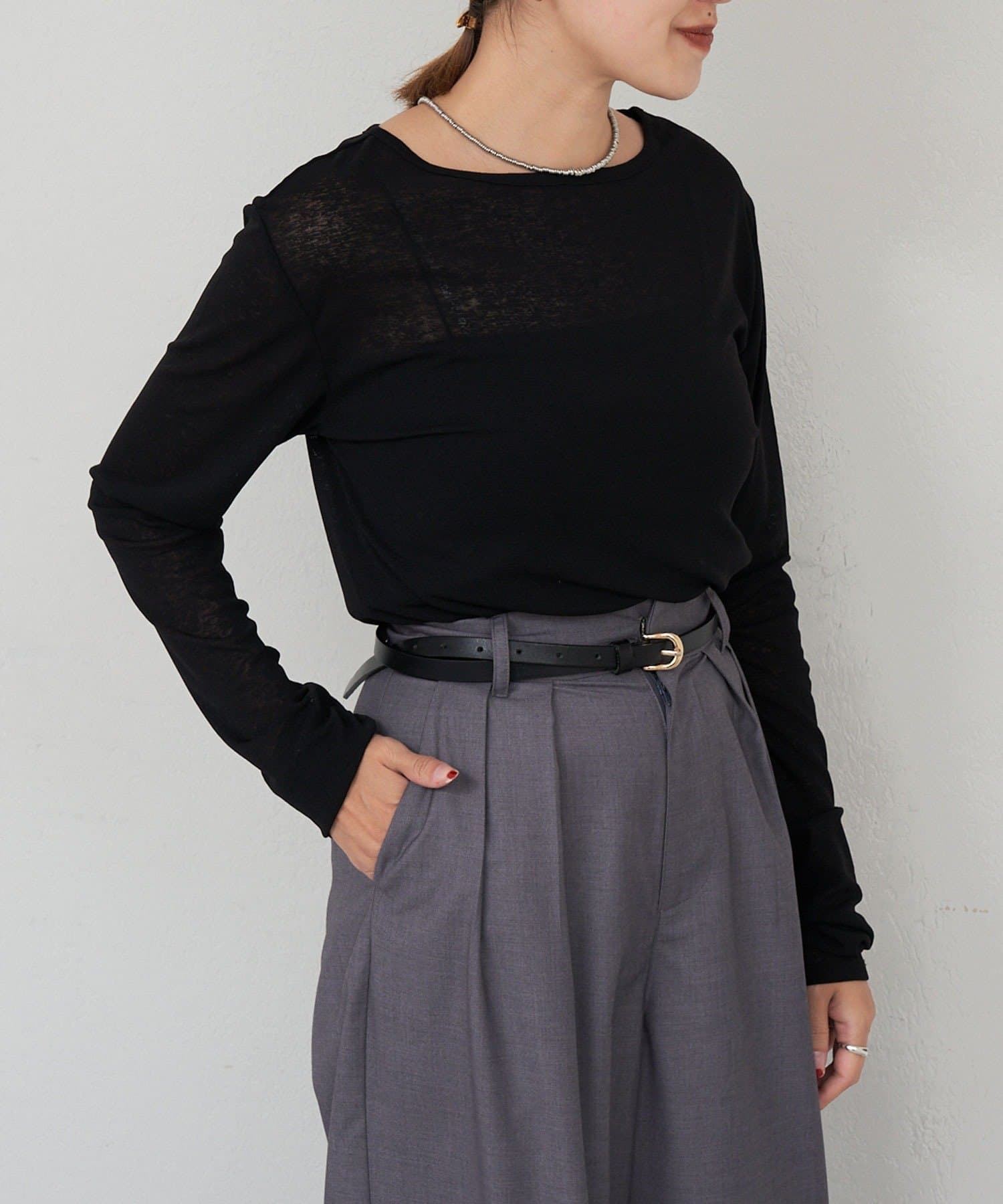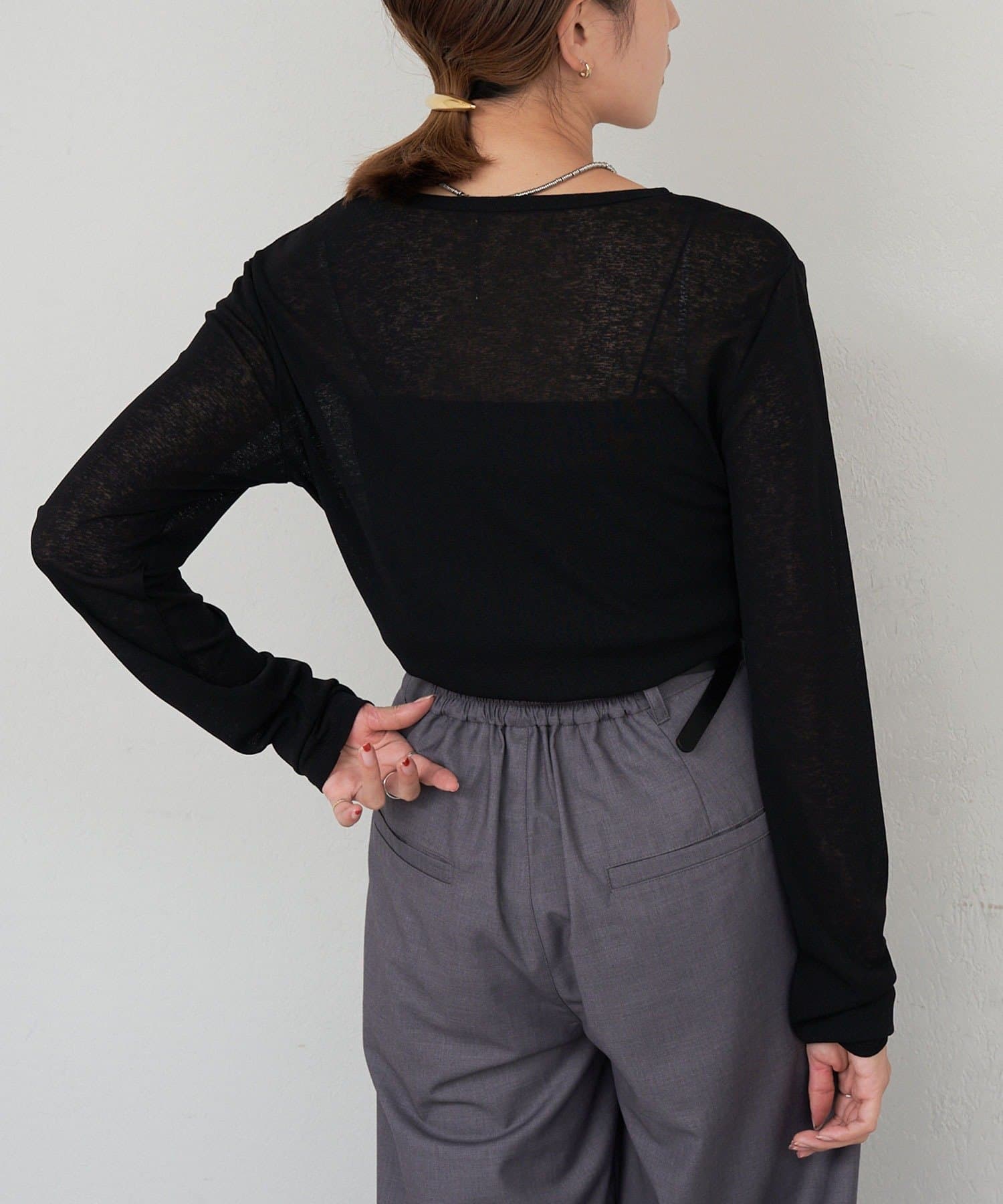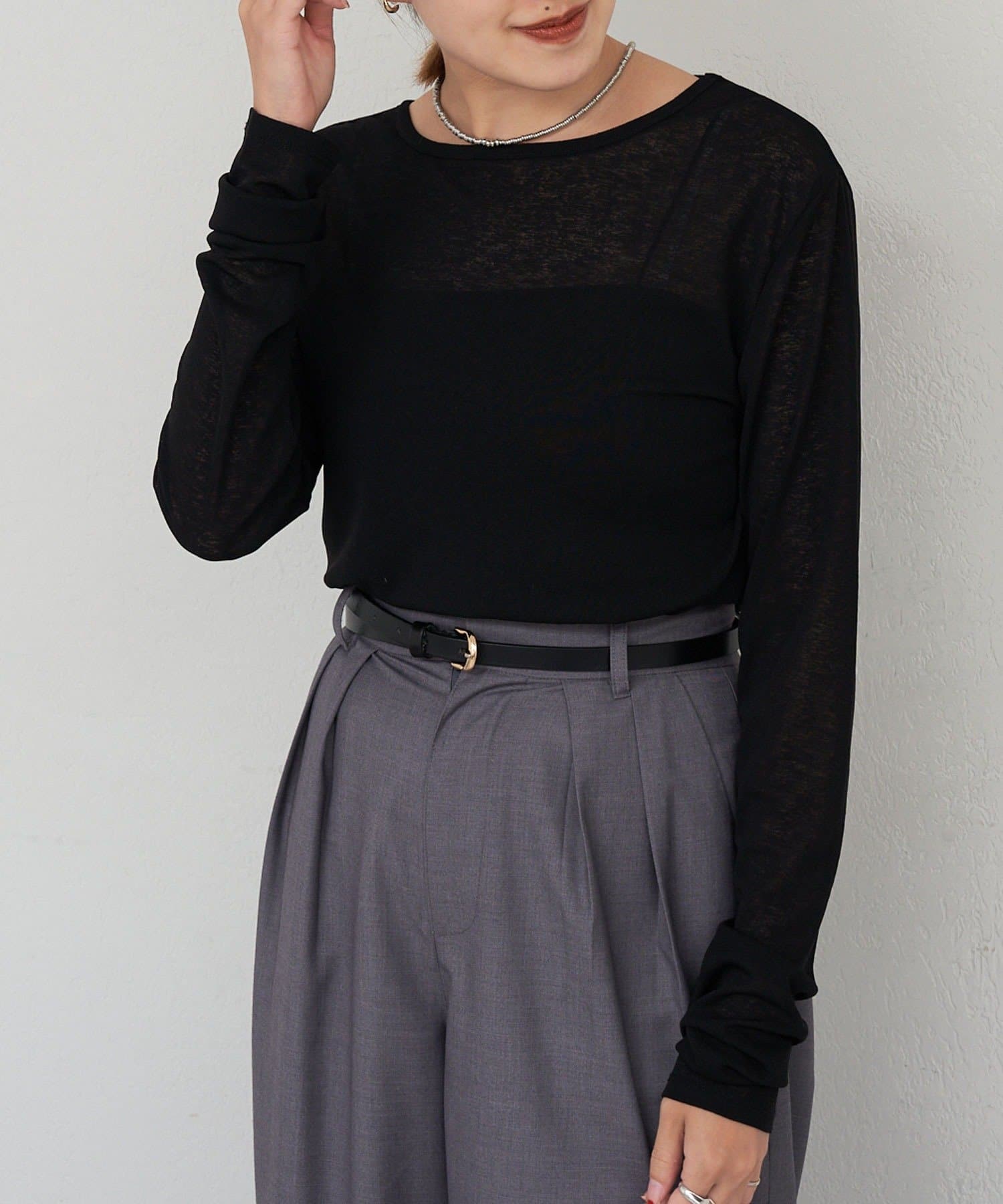 程良い透け感で肌馴染みの良いシアートップス
