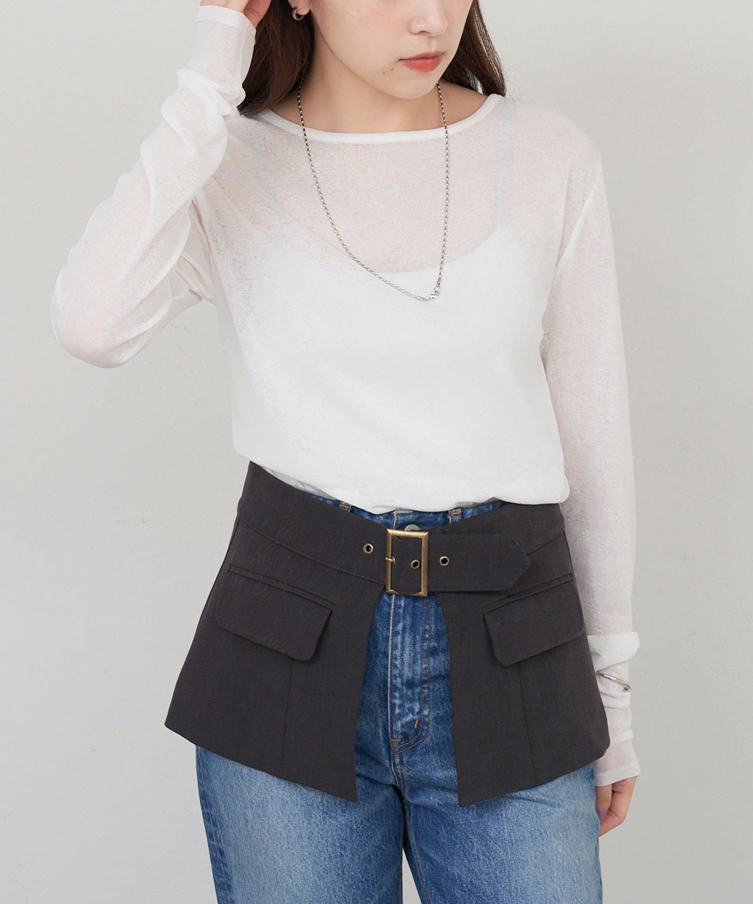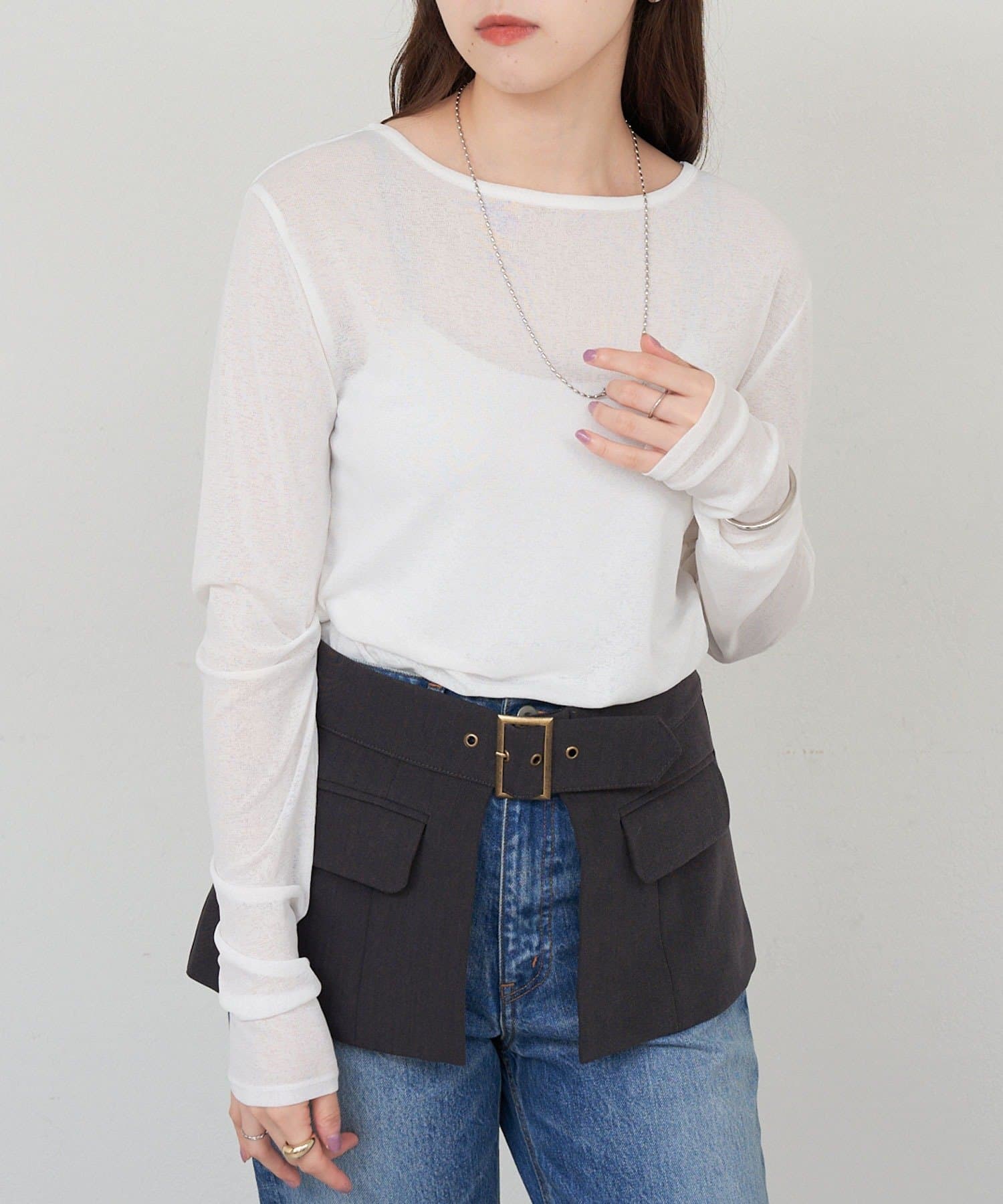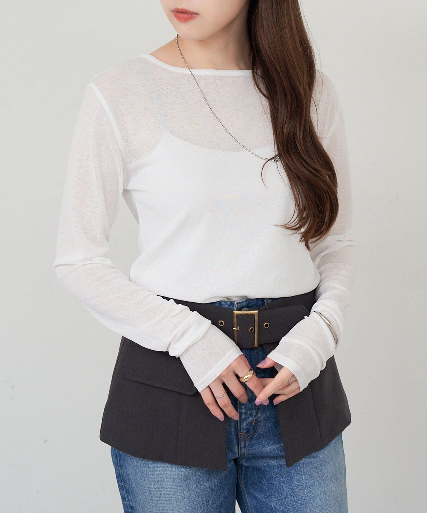 程良い透け感で肌馴染みの良いシアートップス