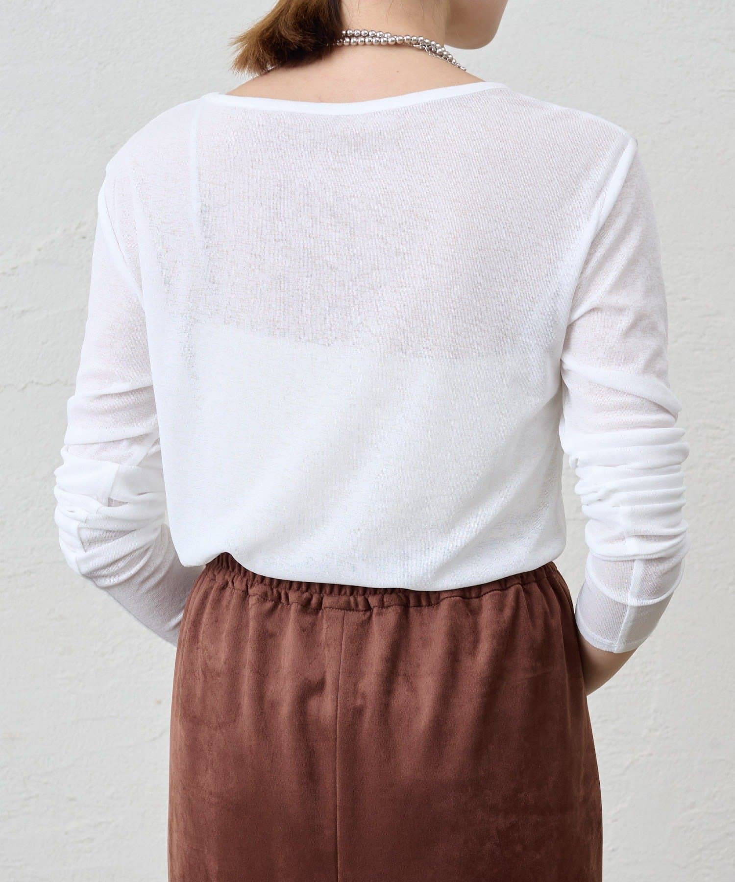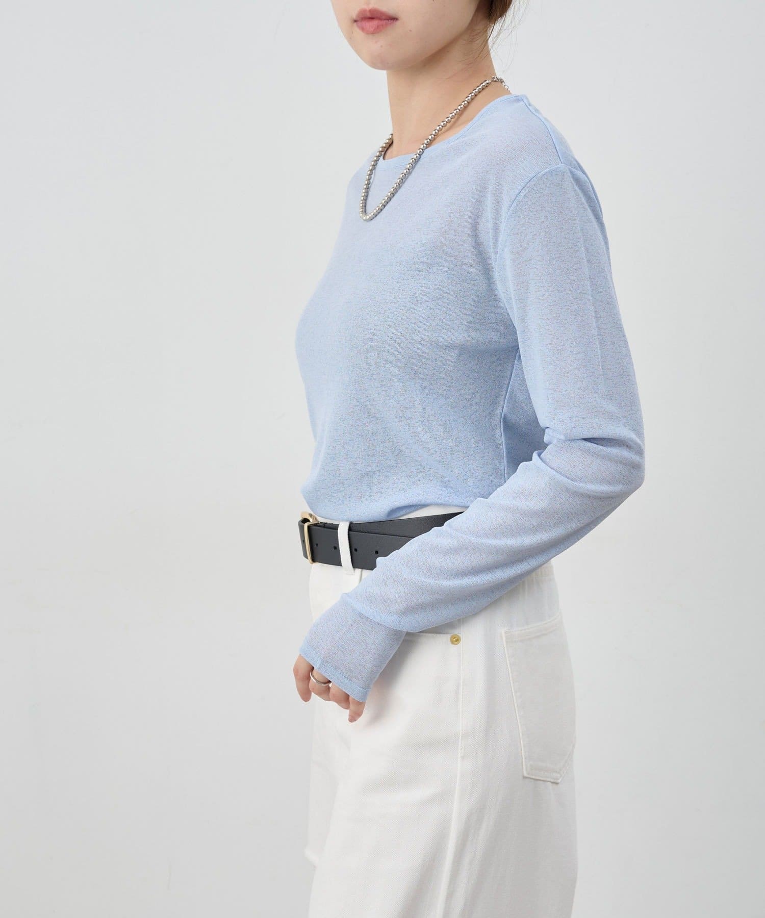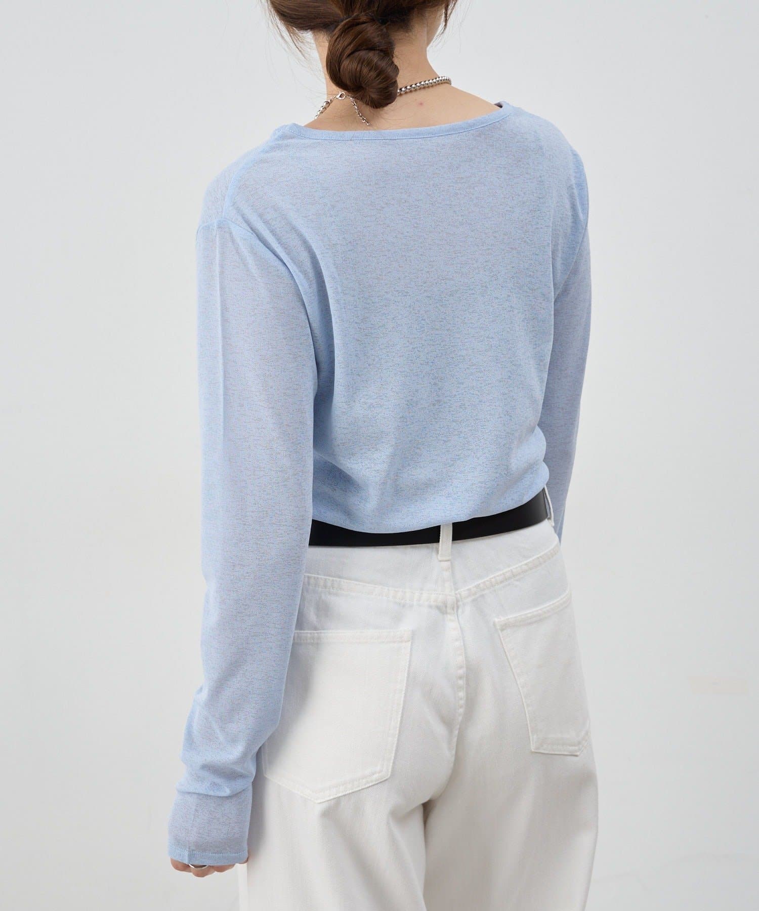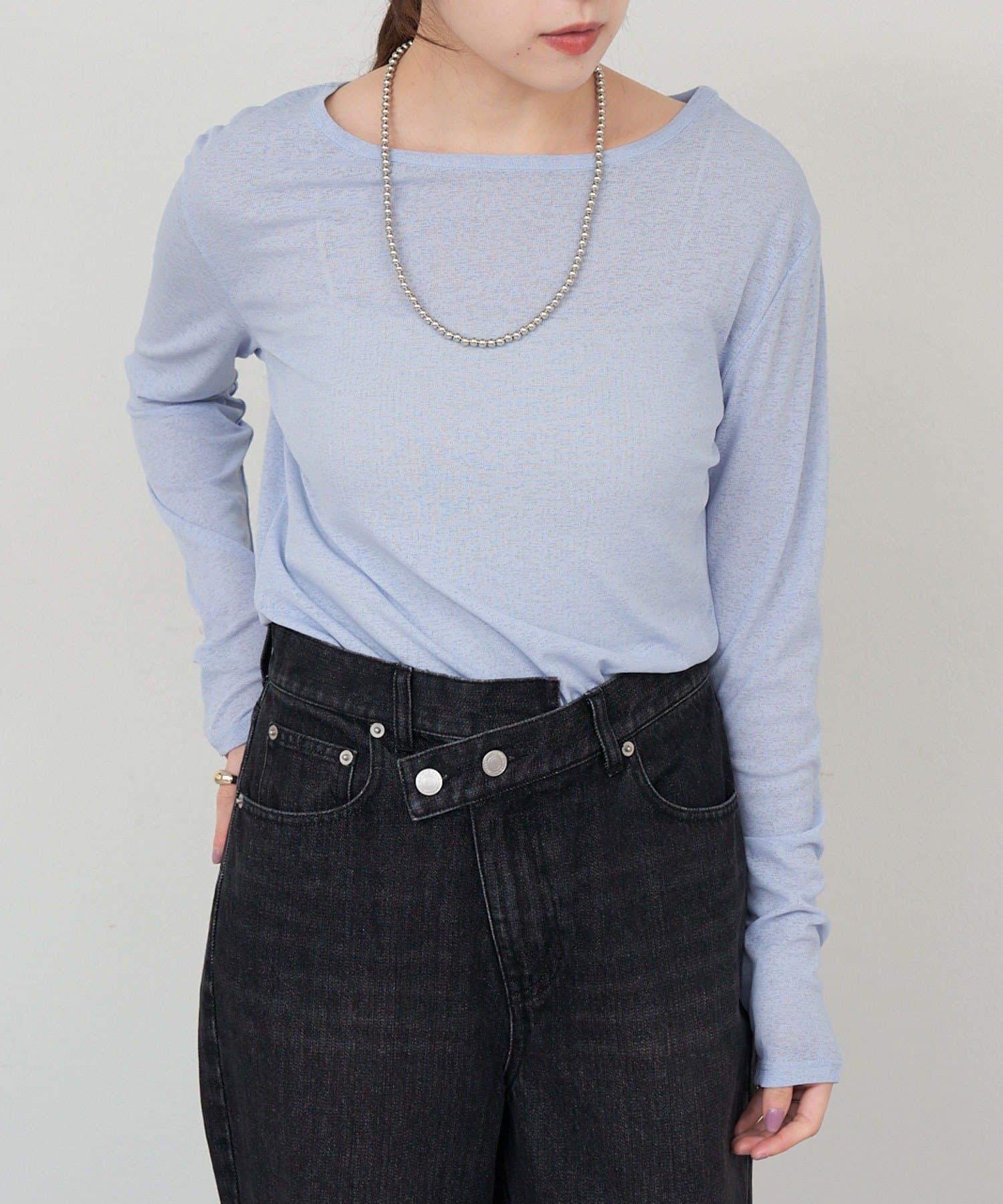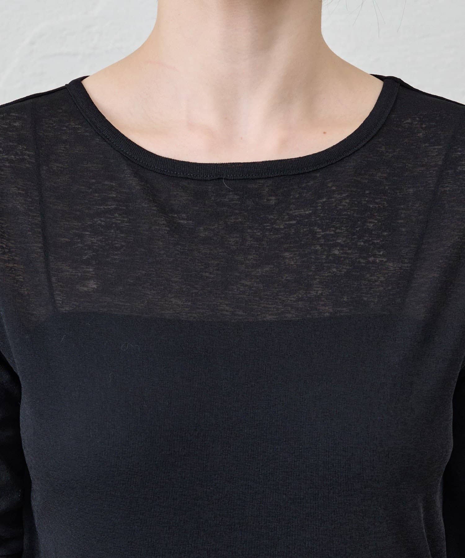 程よいシアー感がきれいで、1枚着としてもレイヤードとしても活躍する1枚。