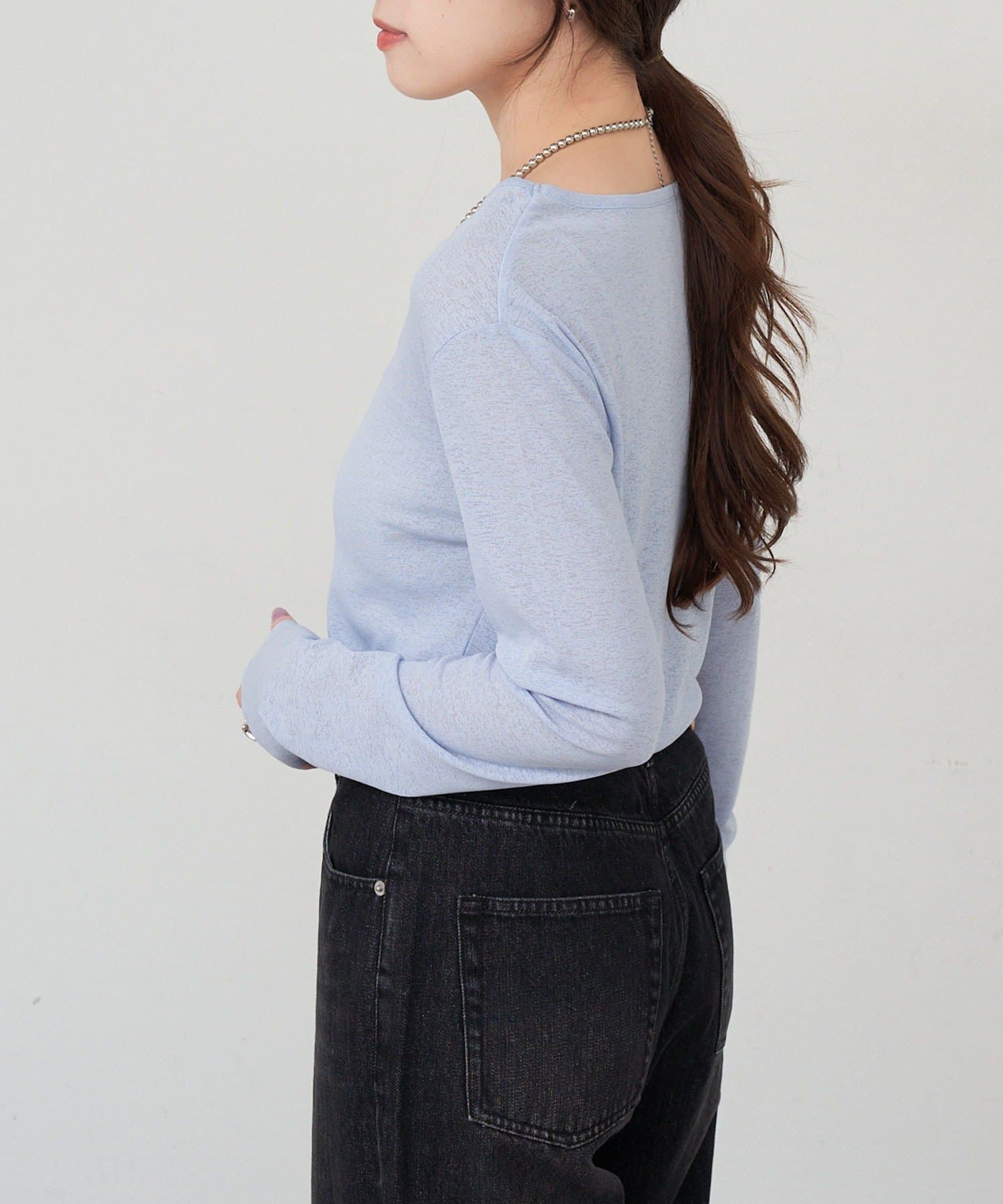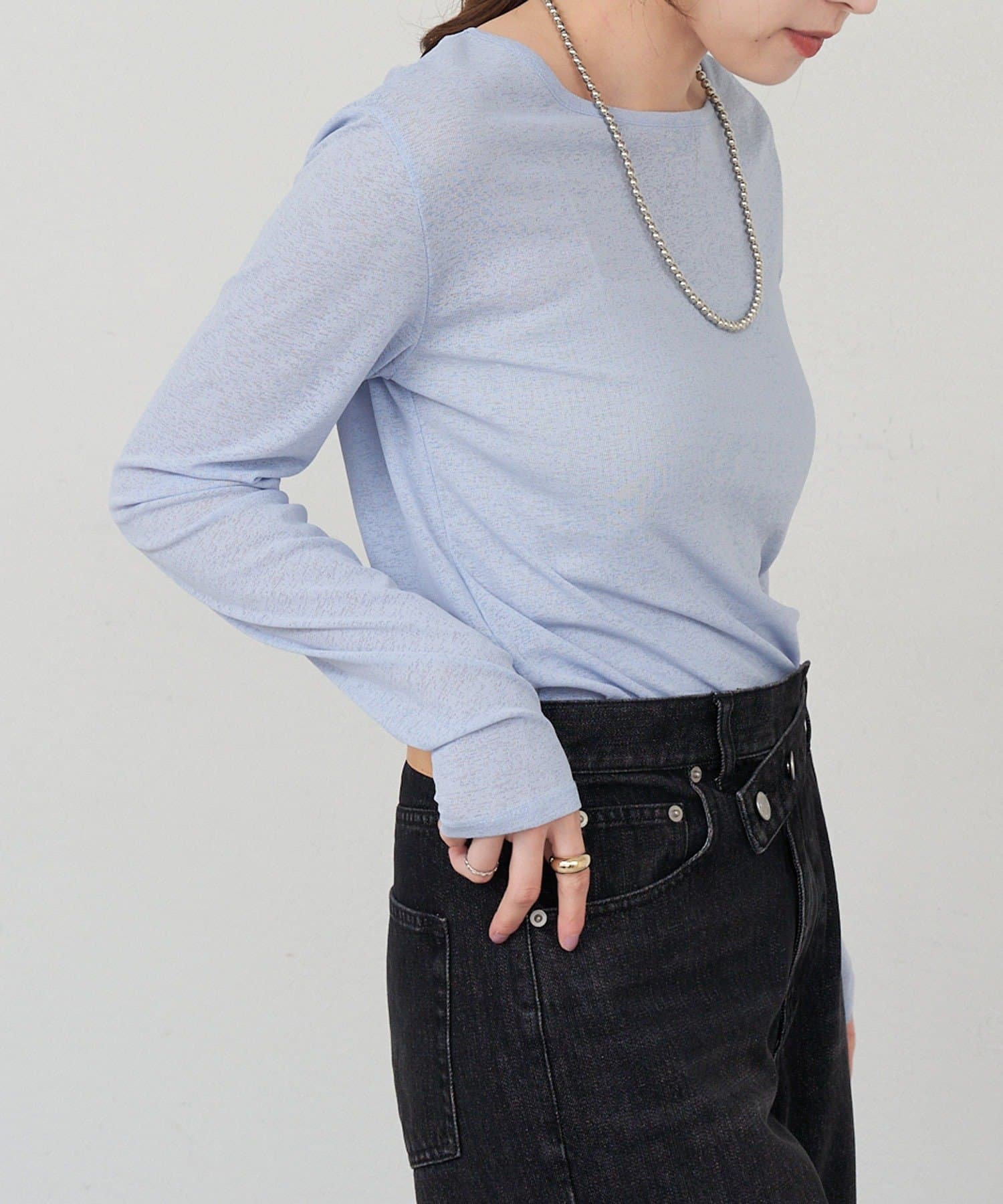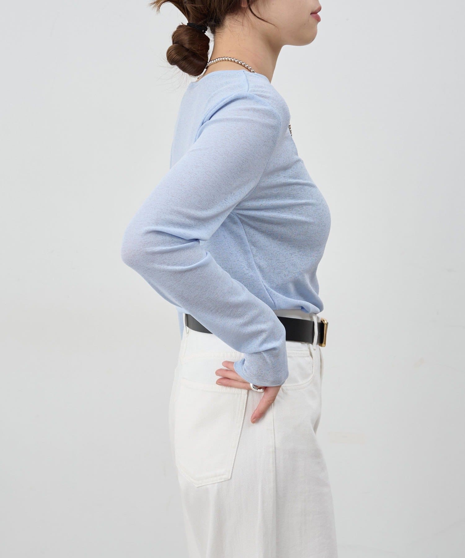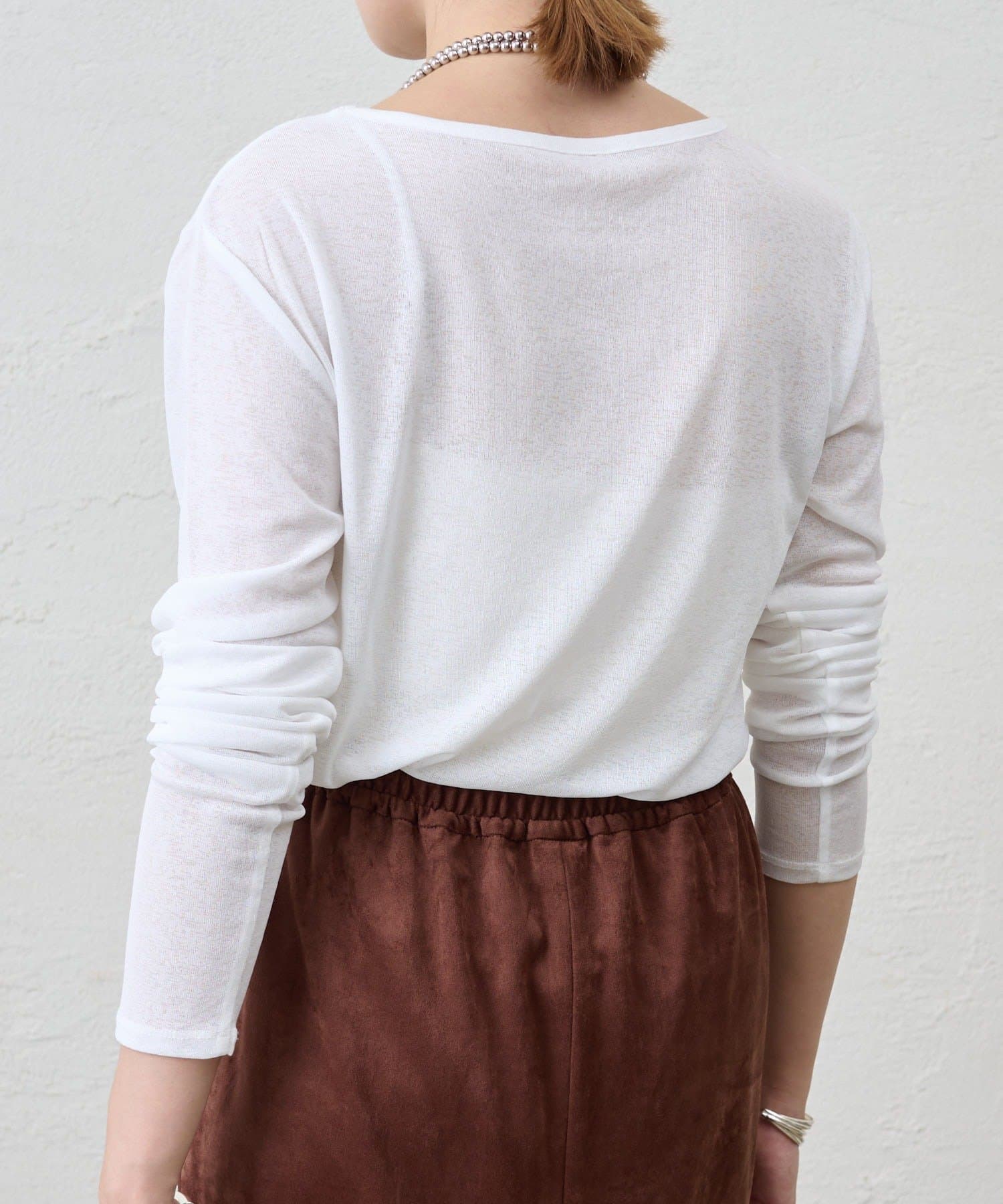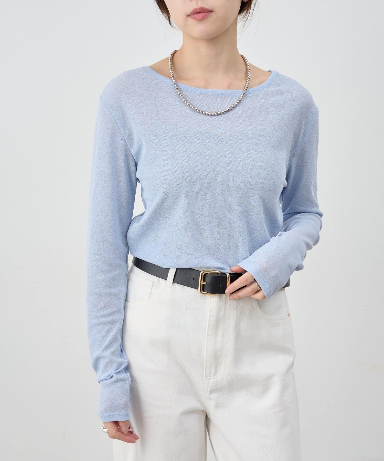 程よいシアー感がきれいで、1枚着としてもレイヤードとしても活躍する1枚。
