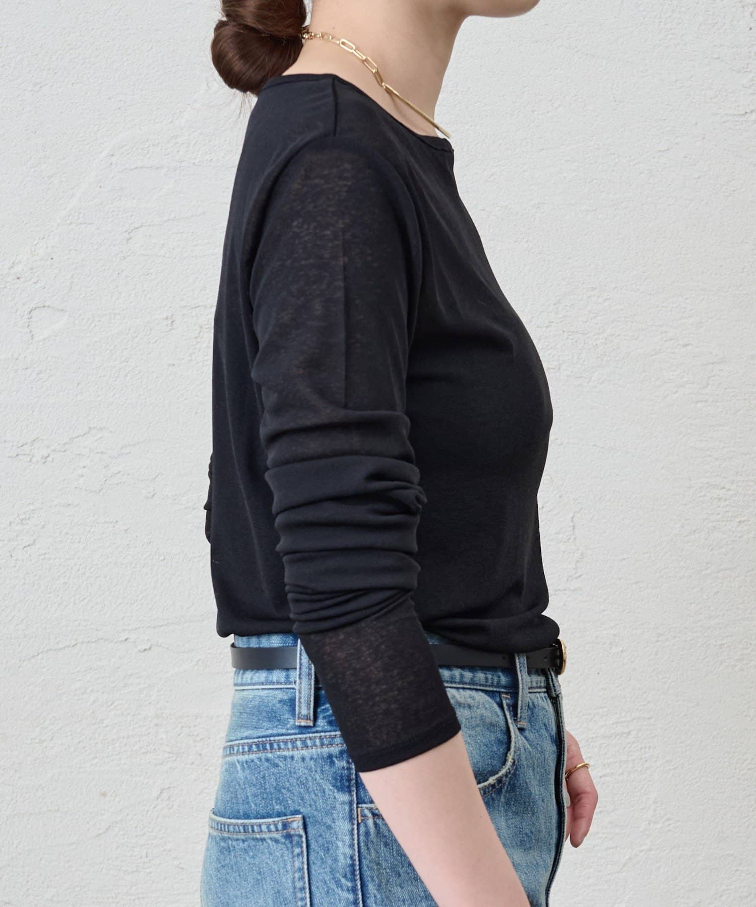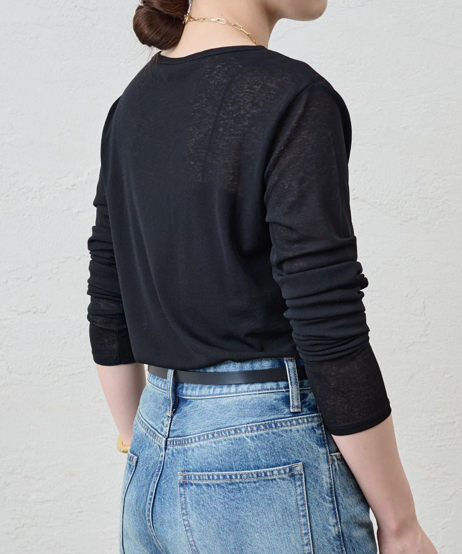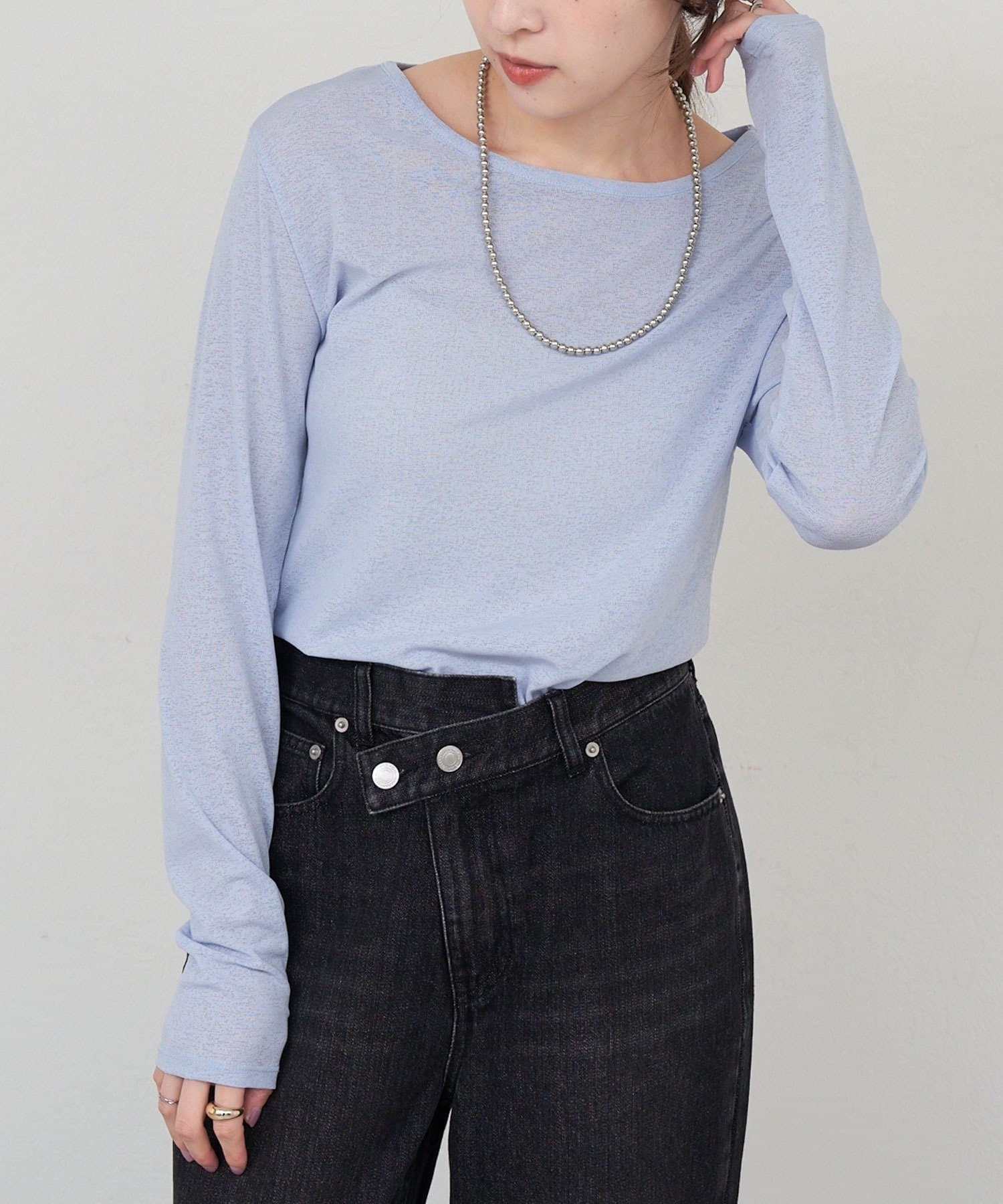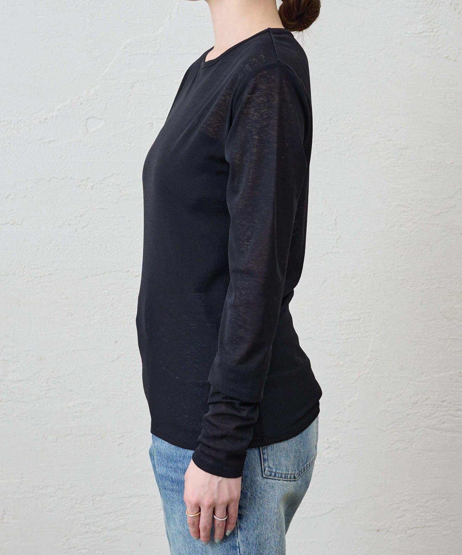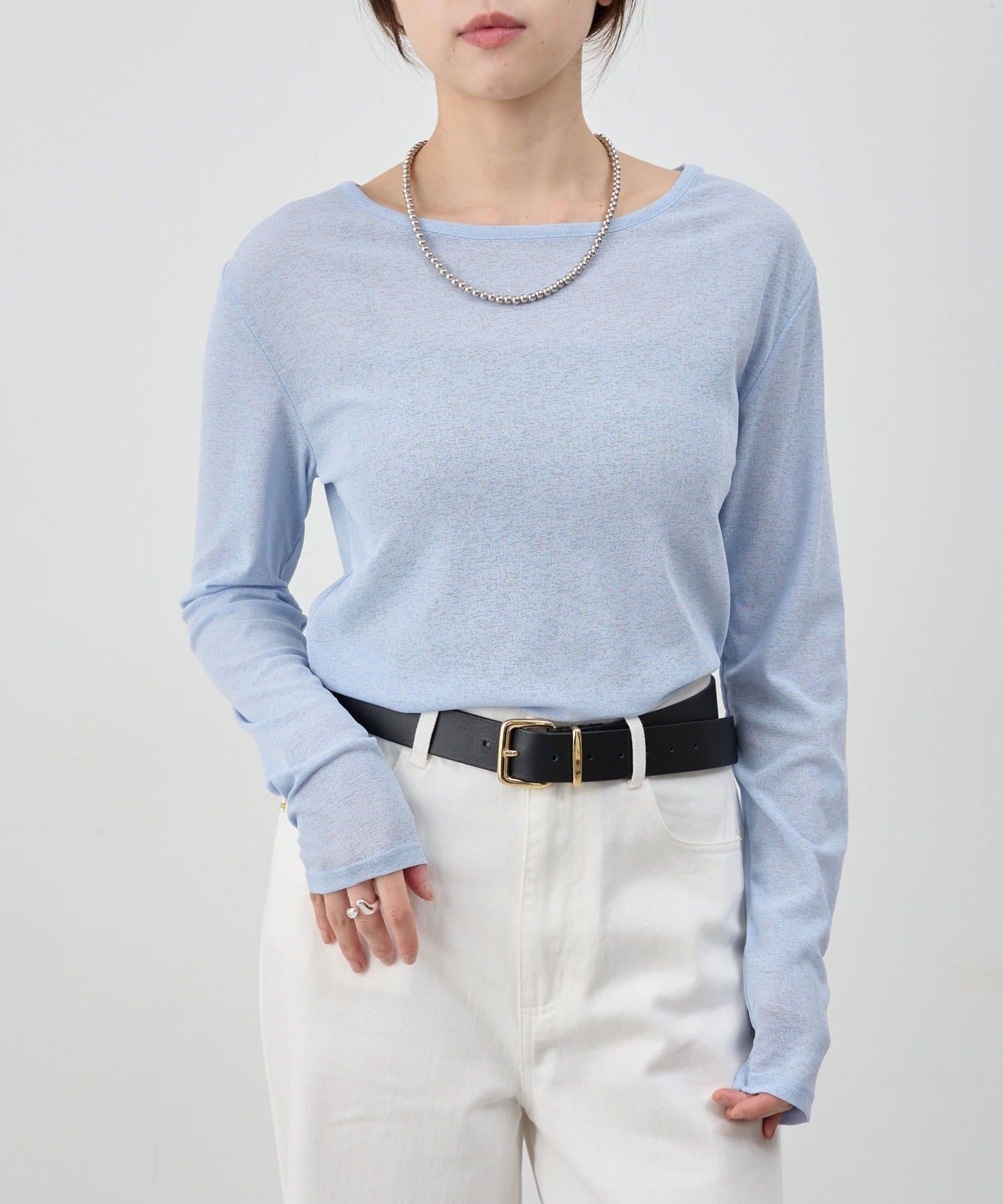 程よいシアー感がきれいで、1枚着としてもレイヤードとしても活躍する1枚。