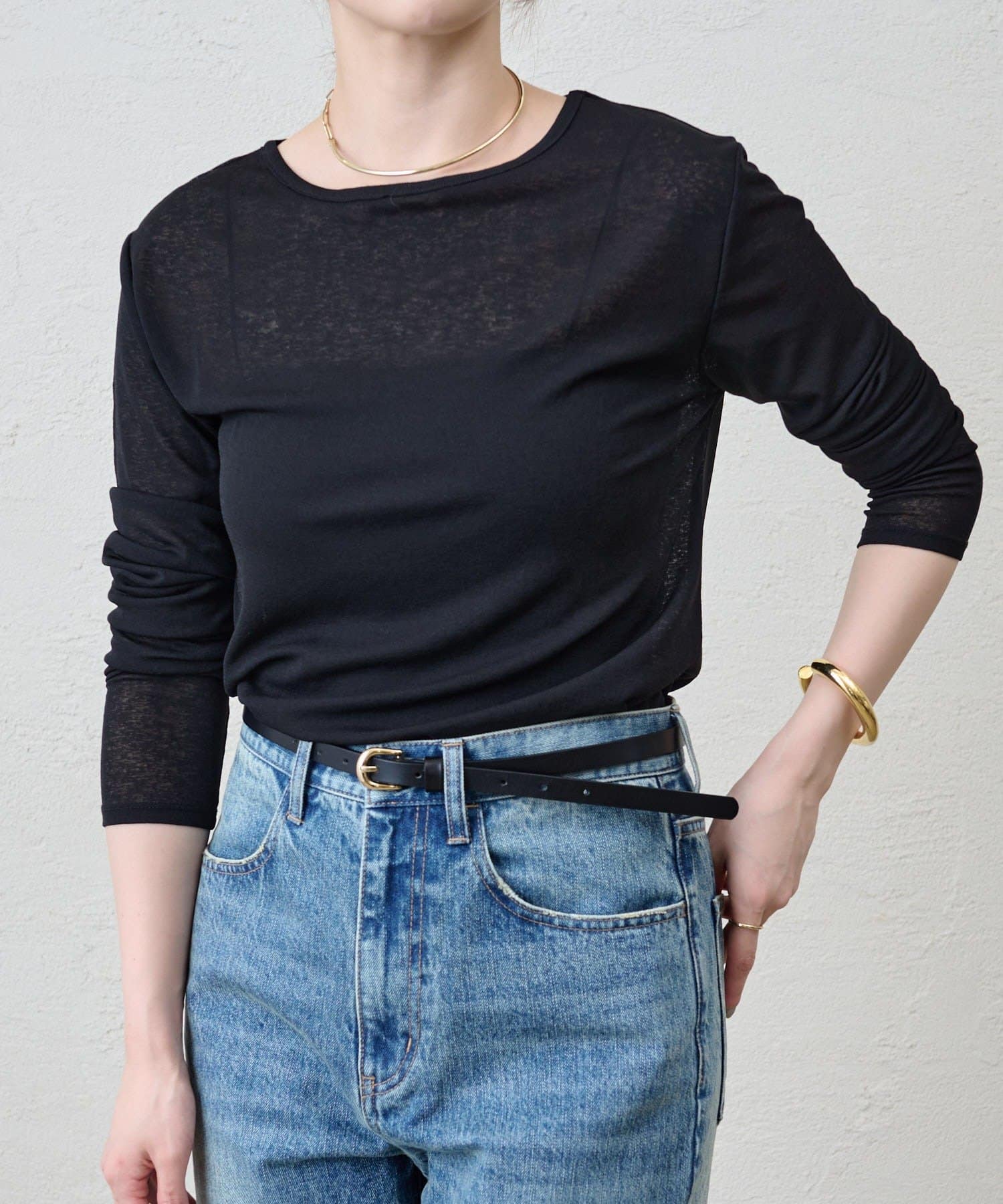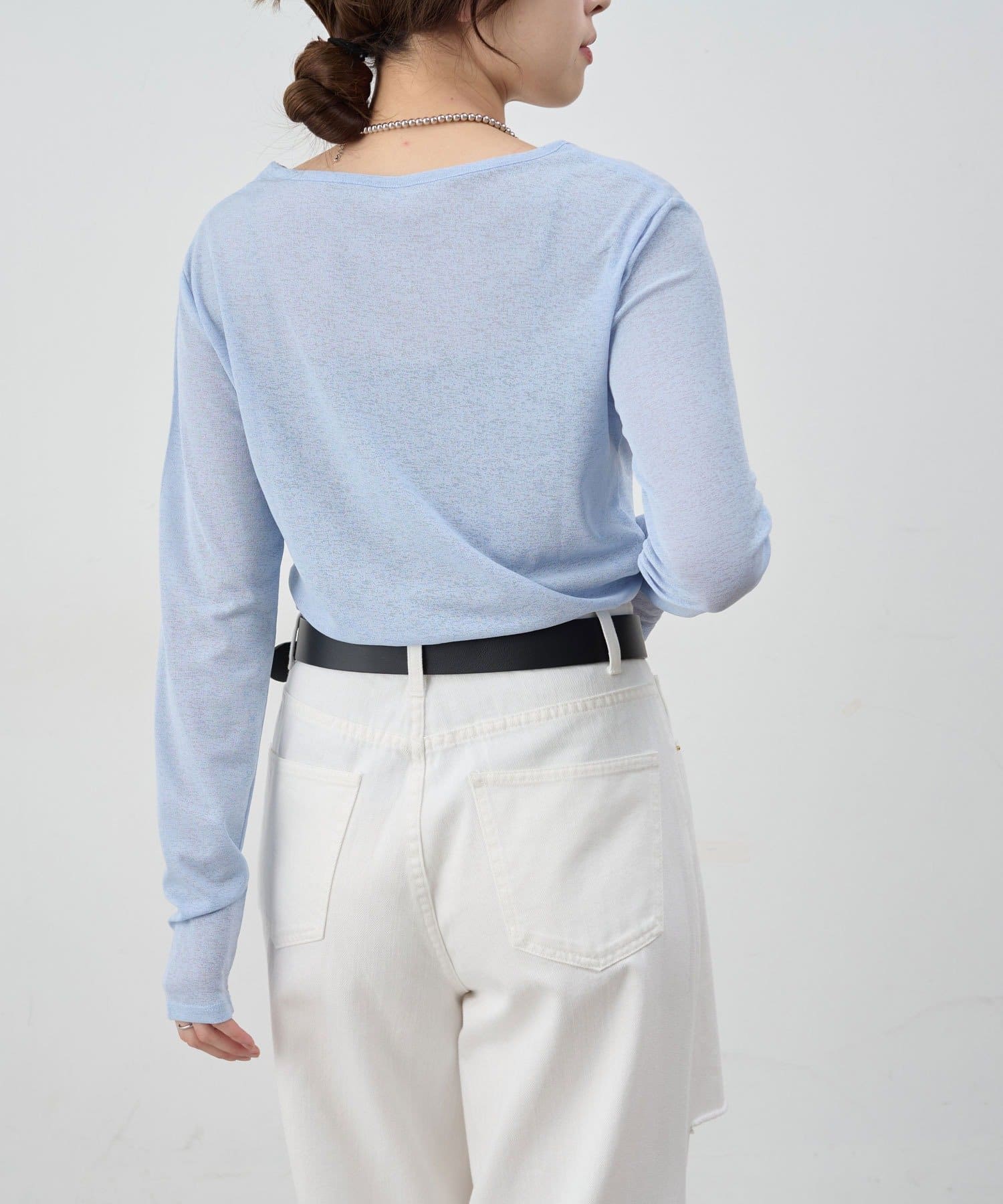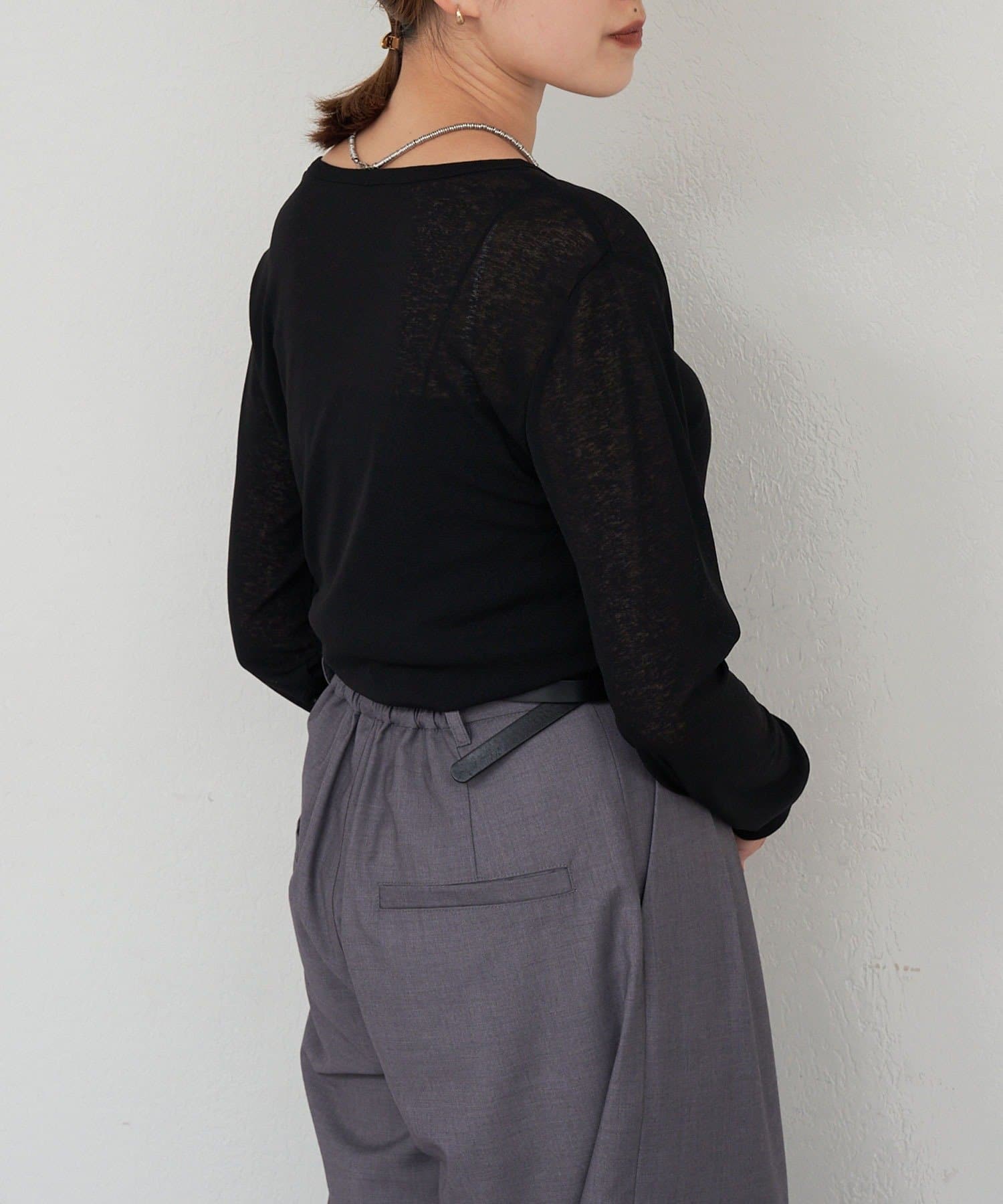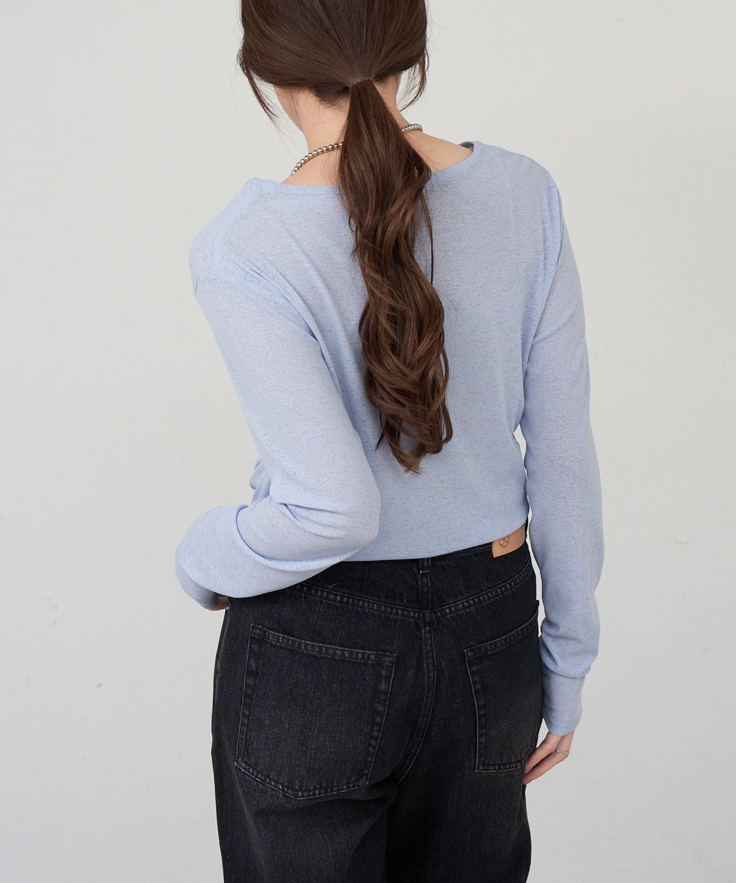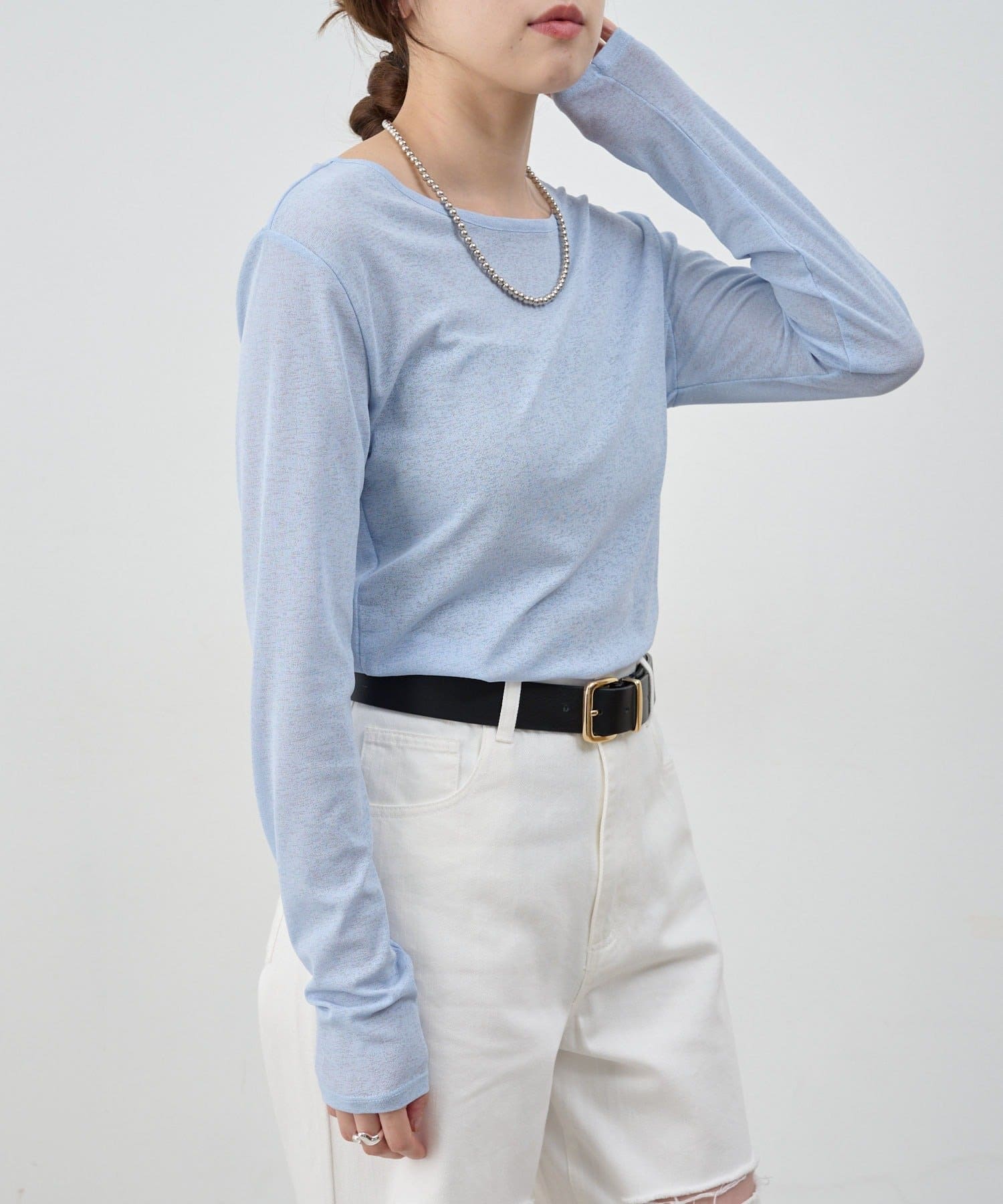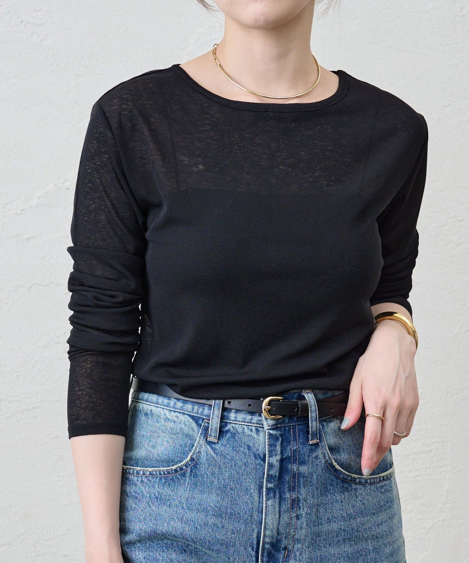 程よいシアー感がきれいで、1枚着としてもレイヤードとしても活躍する1枚。