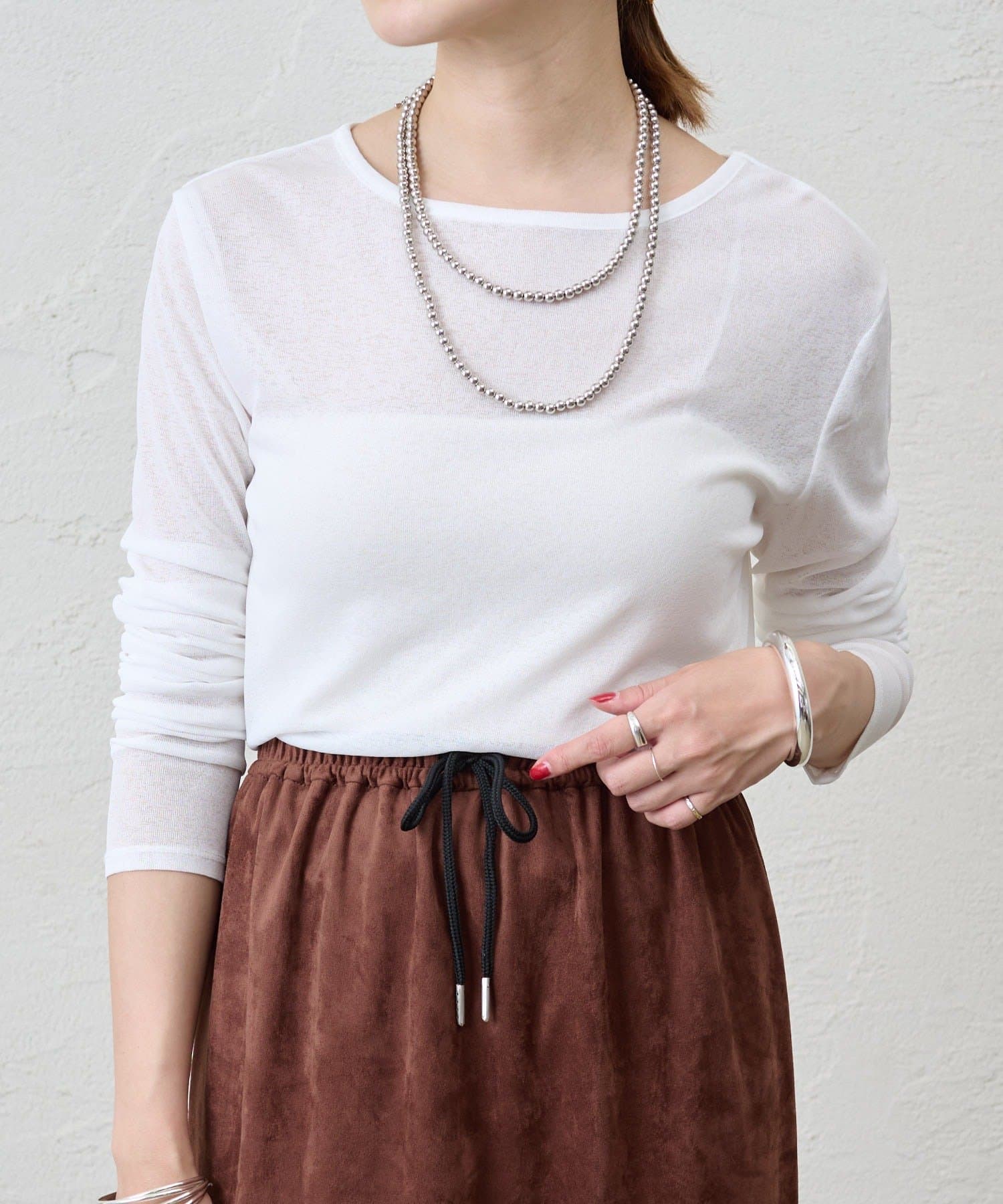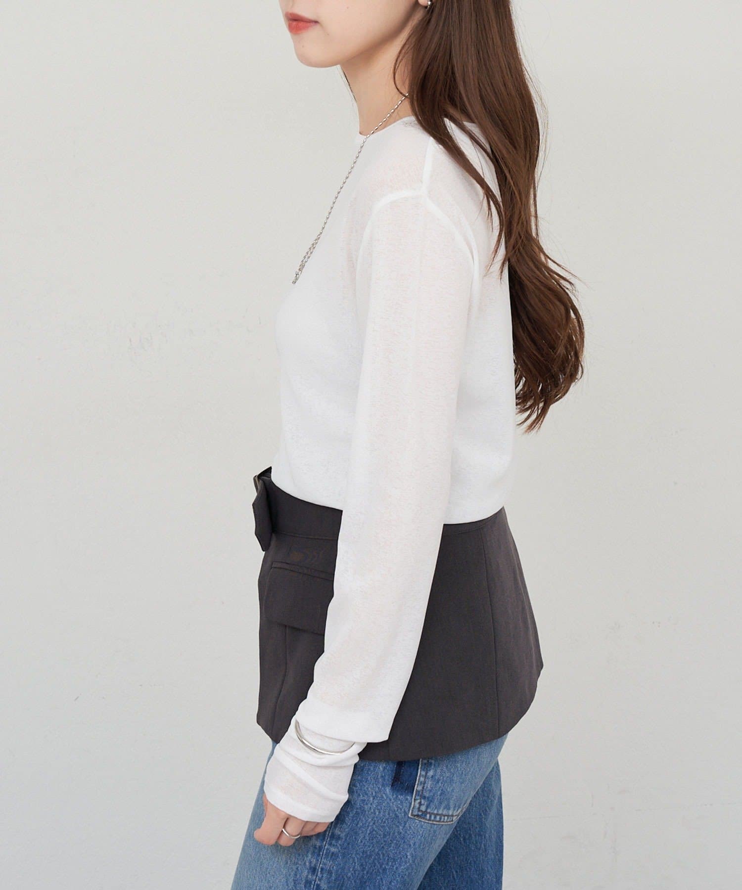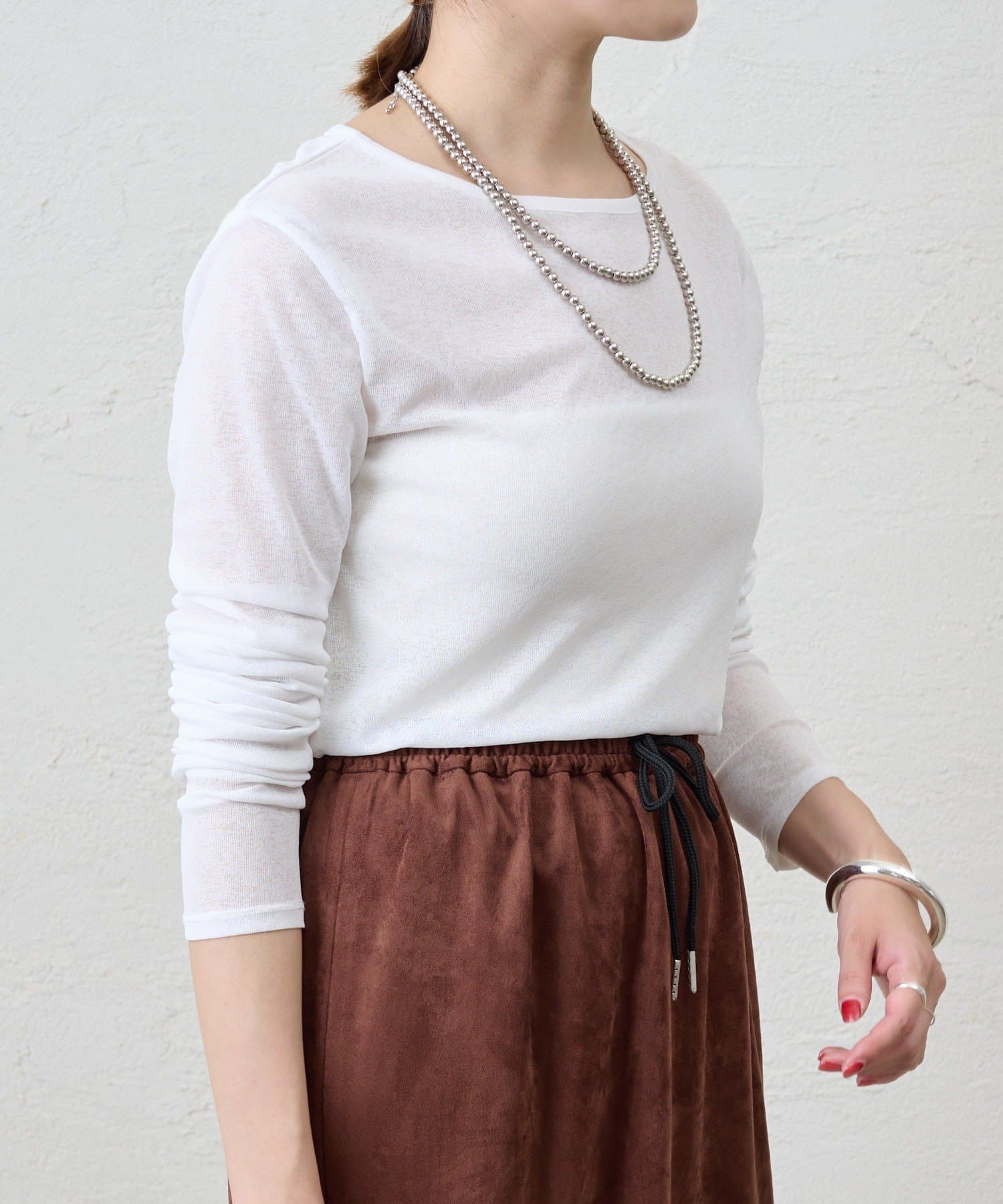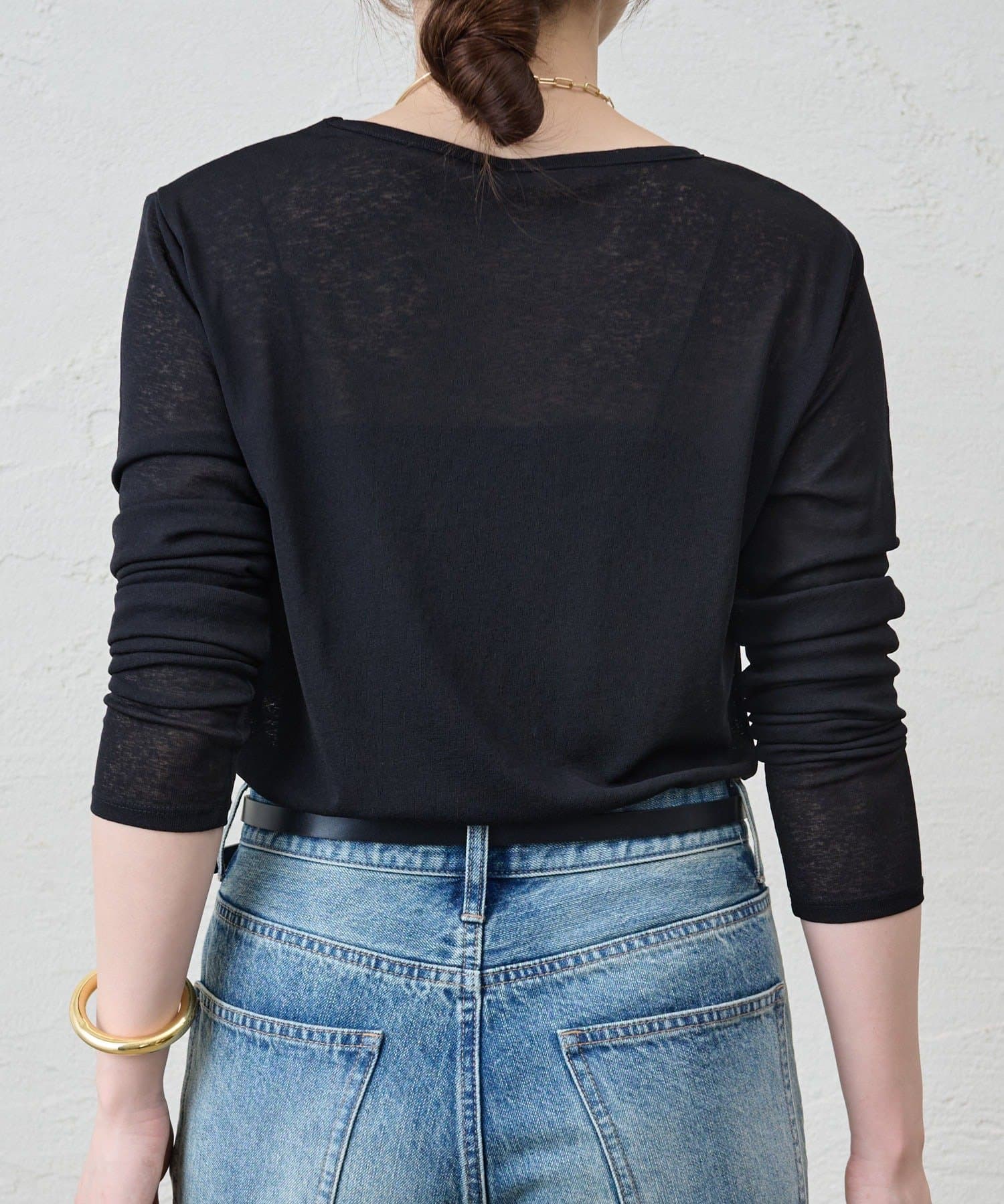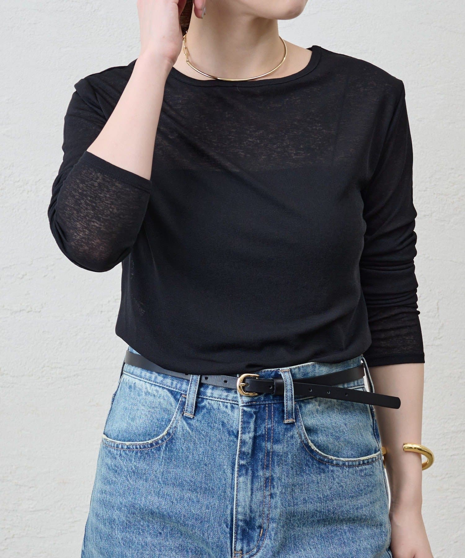 程よいシアー感がきれいで、1枚着としてもレイヤードとしても活躍する1枚。