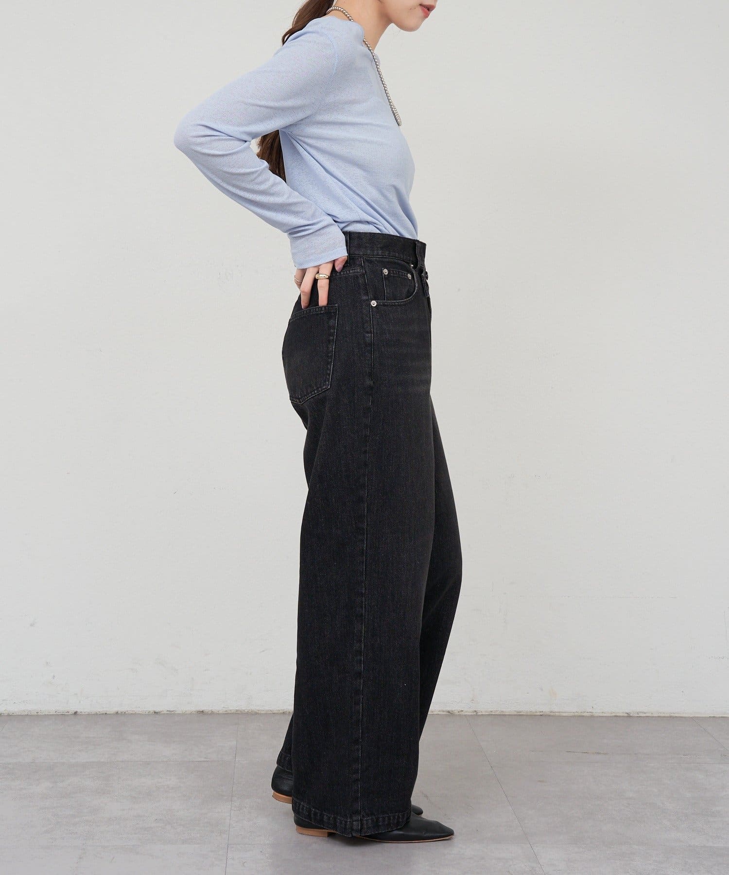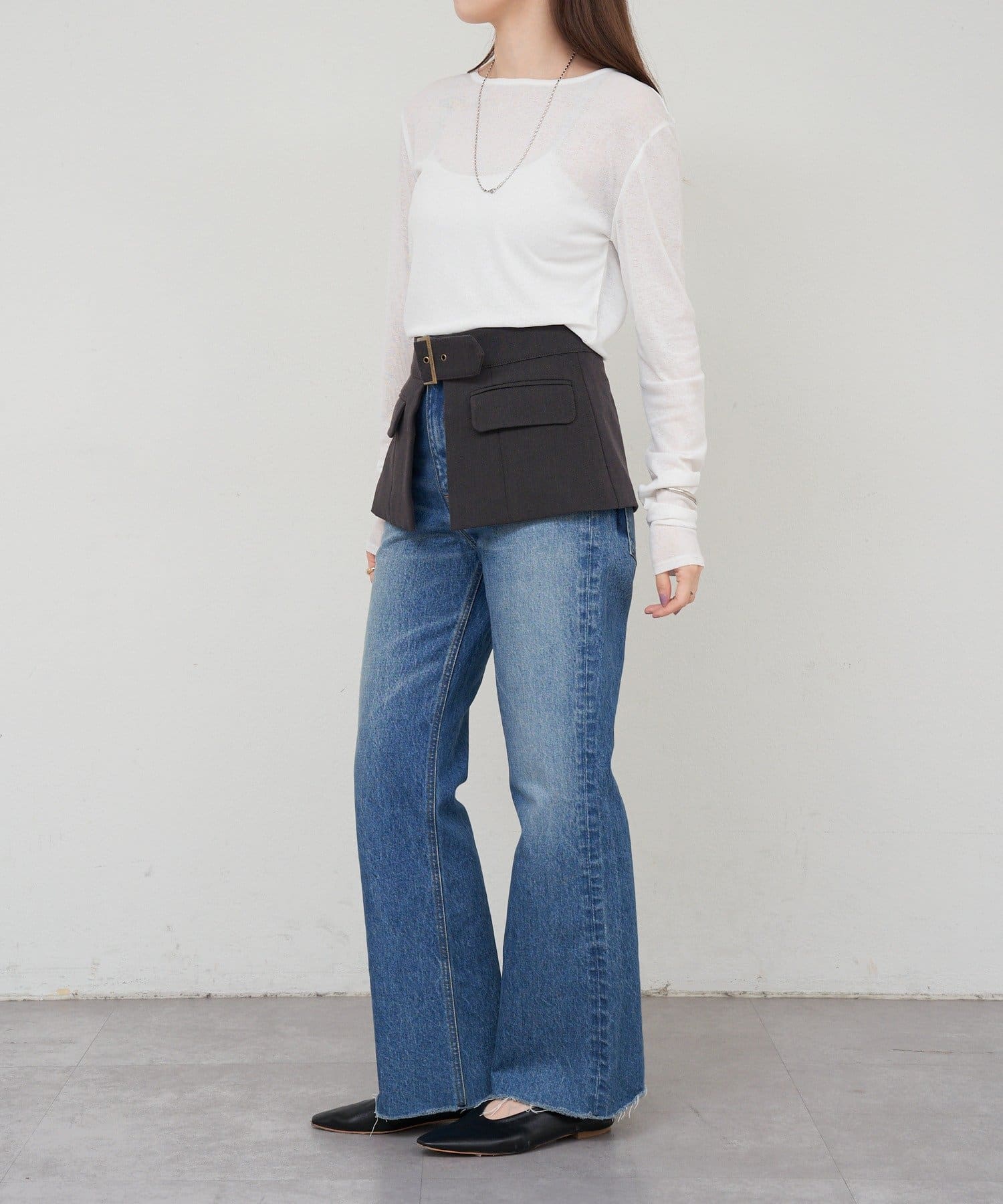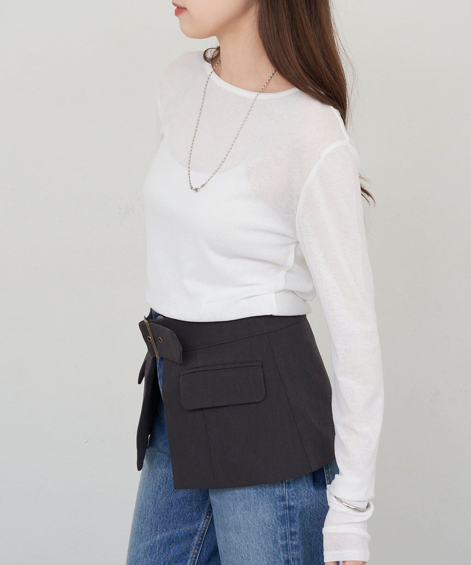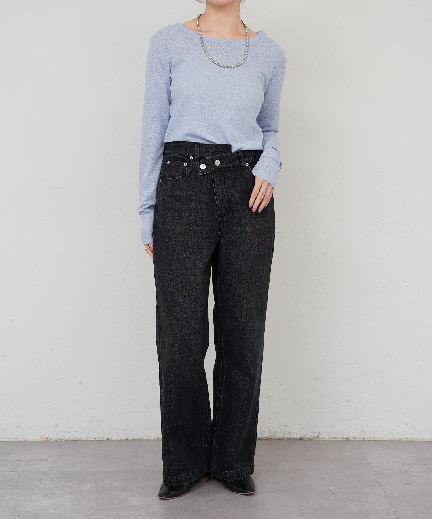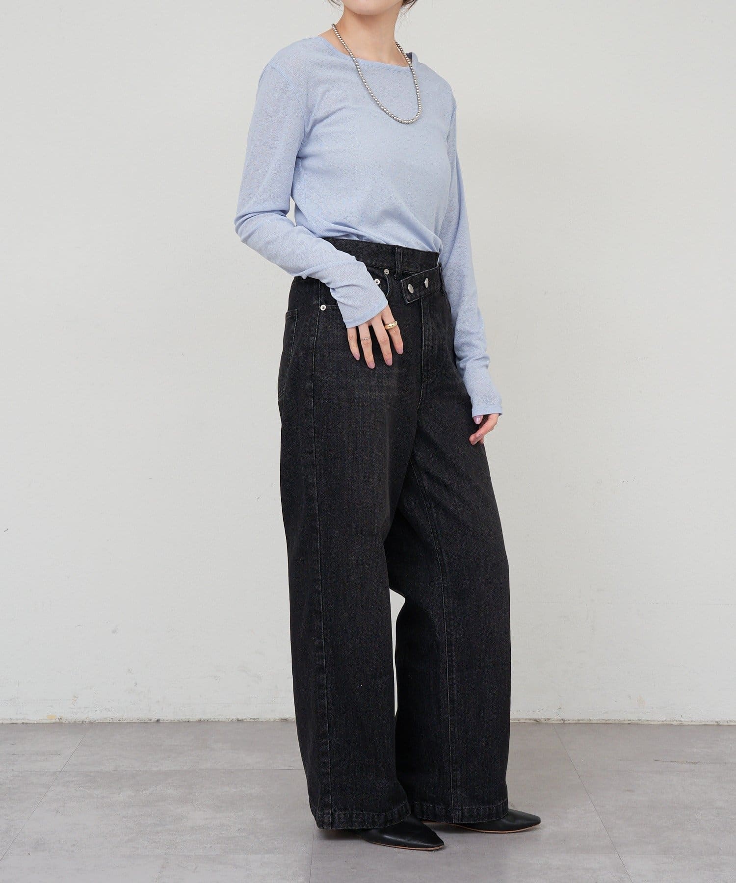 程よいシアー感がきれいで、1枚着としてもレイヤードとしても活躍する1枚。