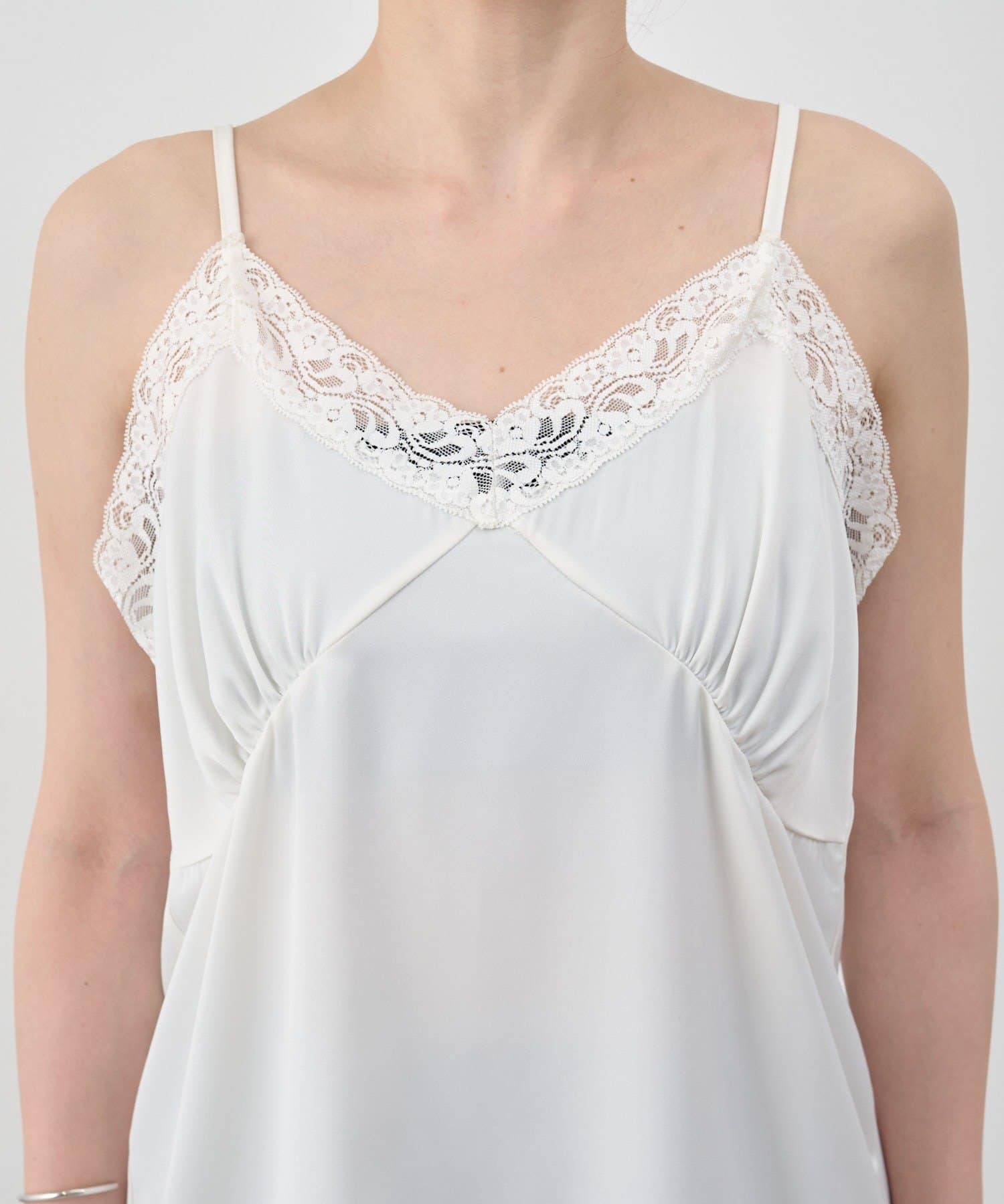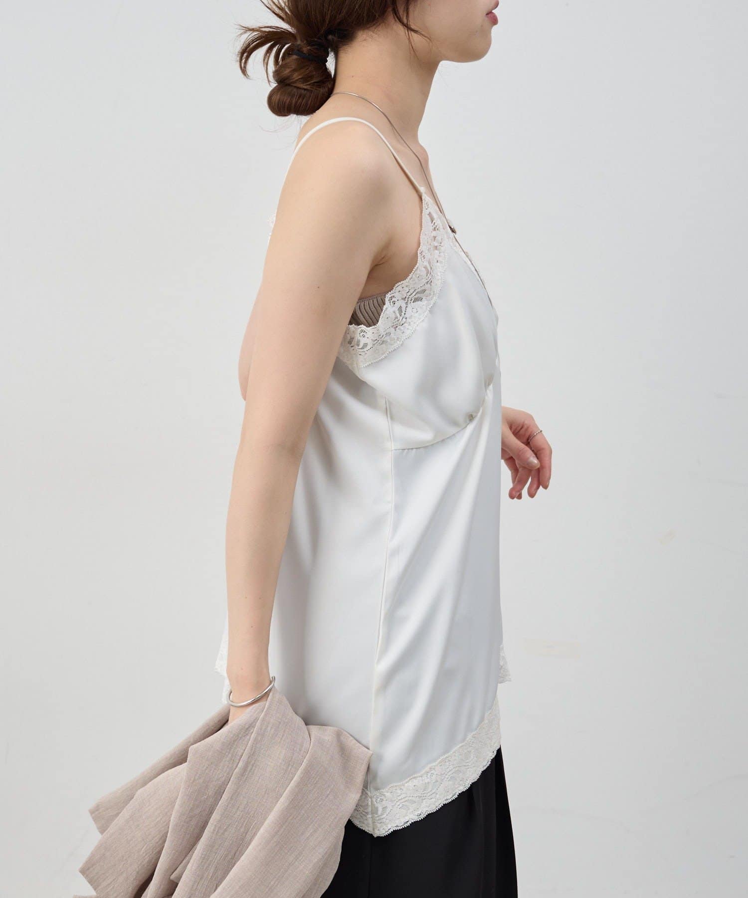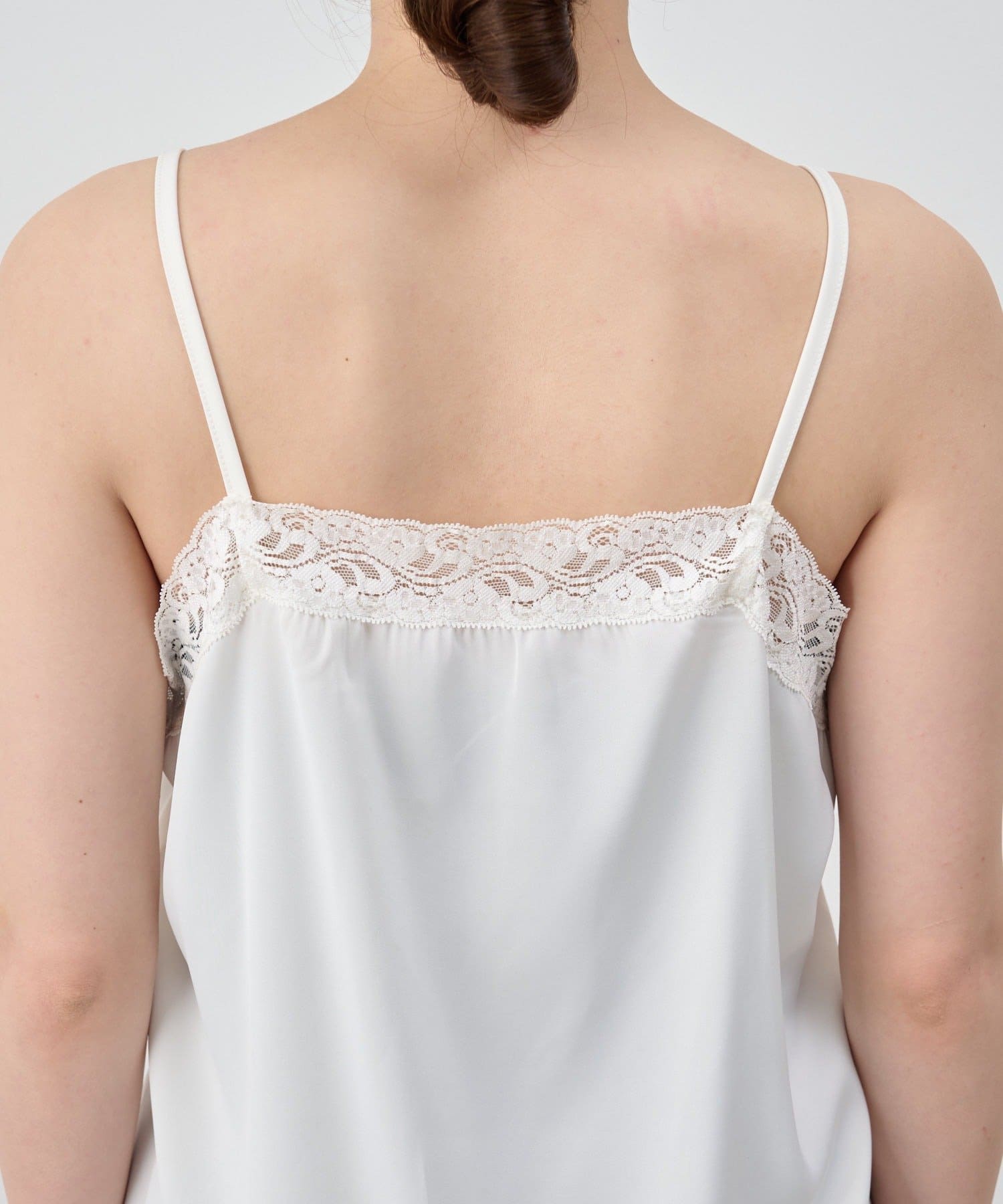 華奢なストラップやVネックに施された繊細なレースで女性らしさのある1枚。
