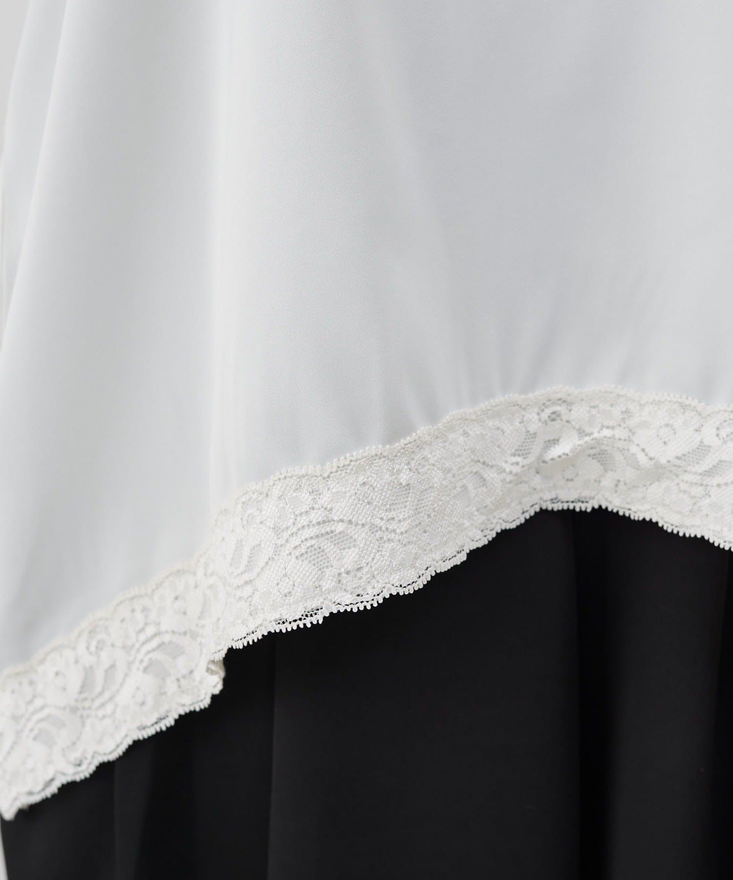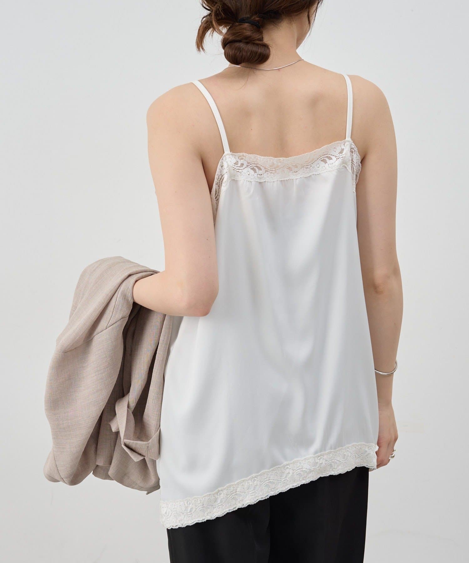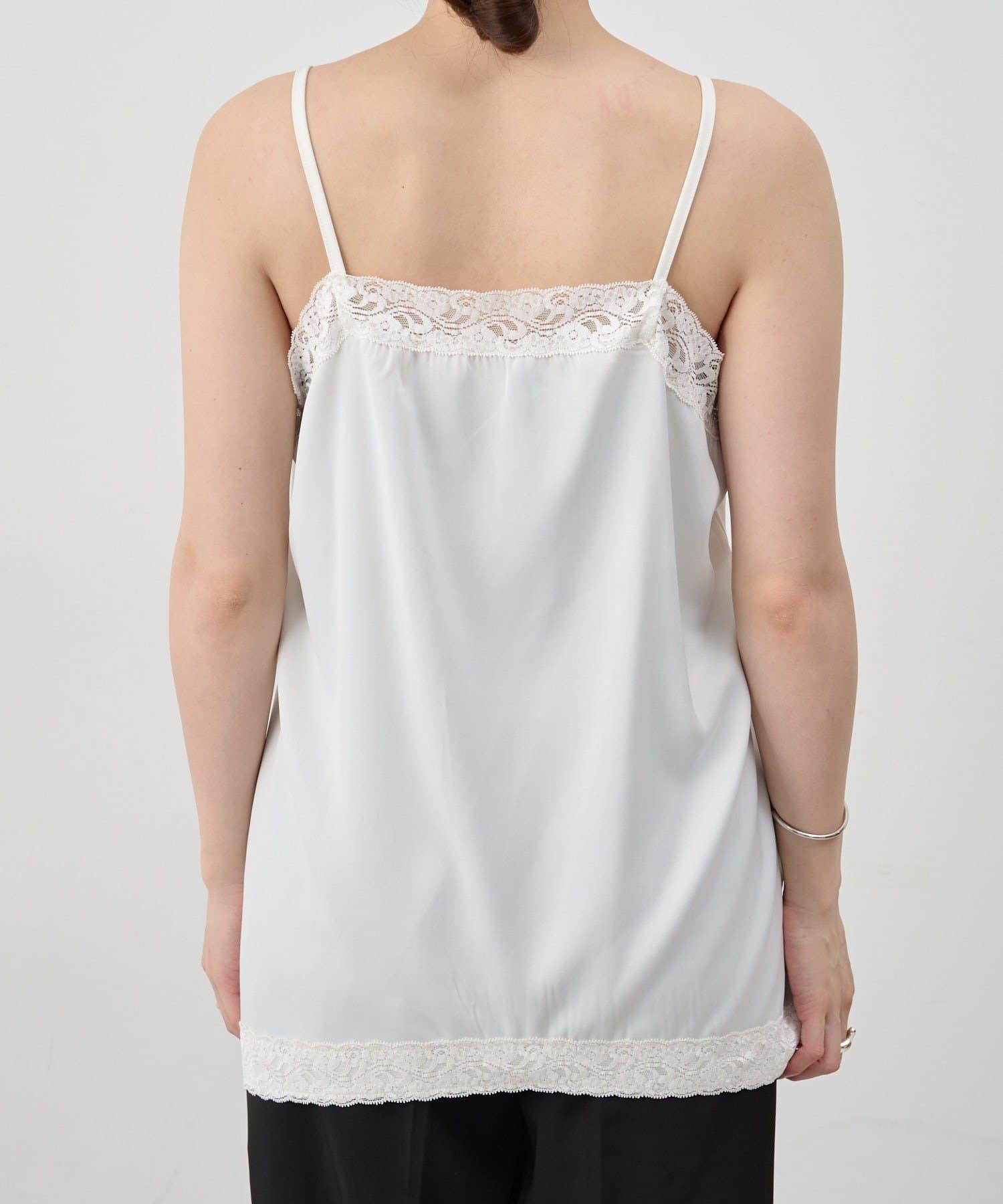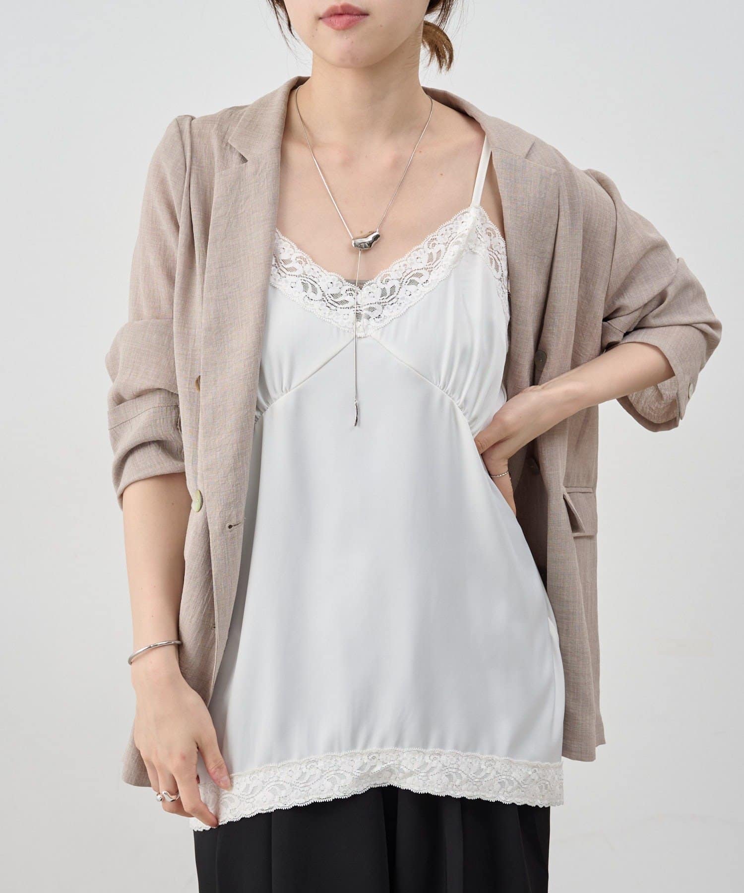 華奢なストラップやVネックに施された繊細なレースで女性らしさのある1枚。